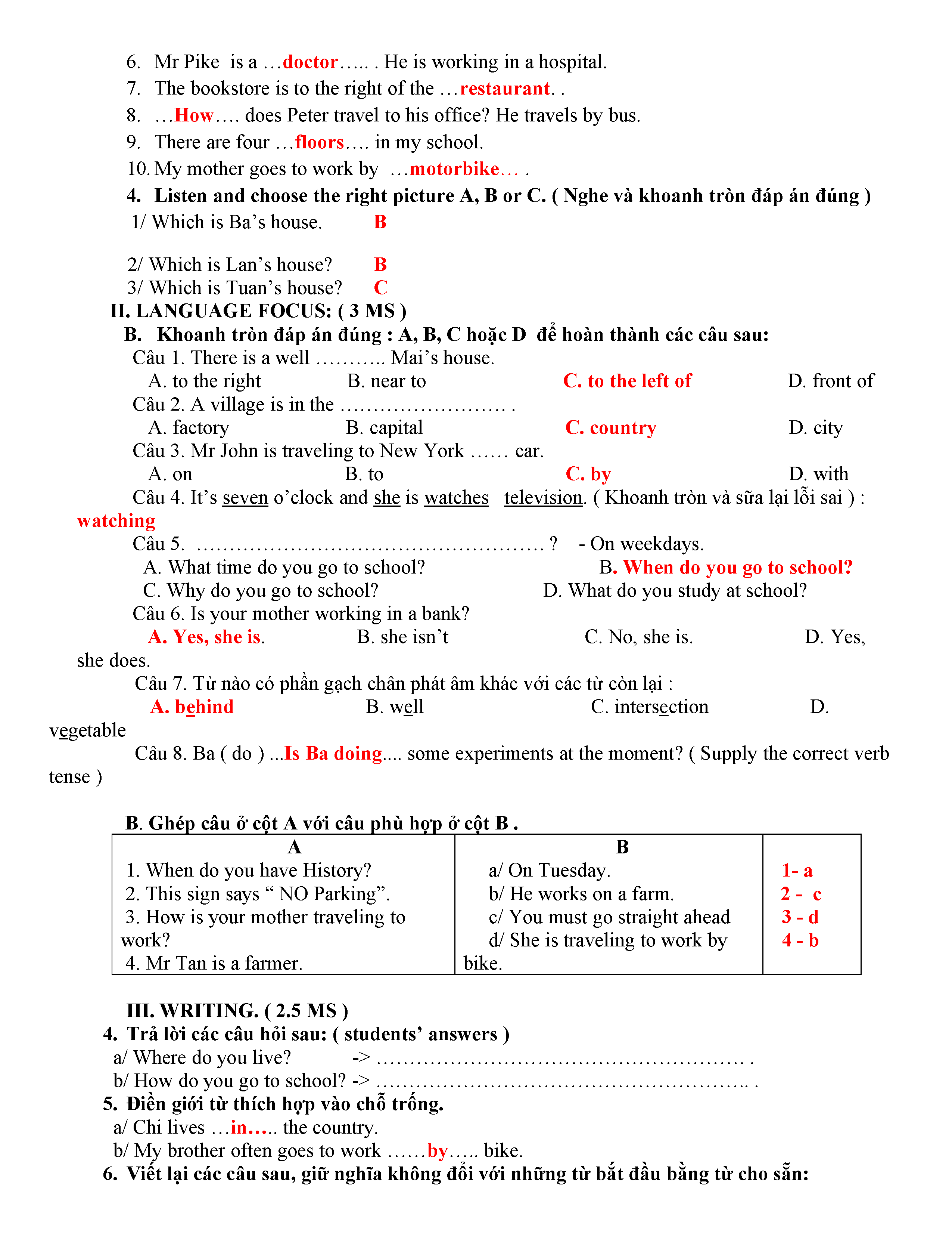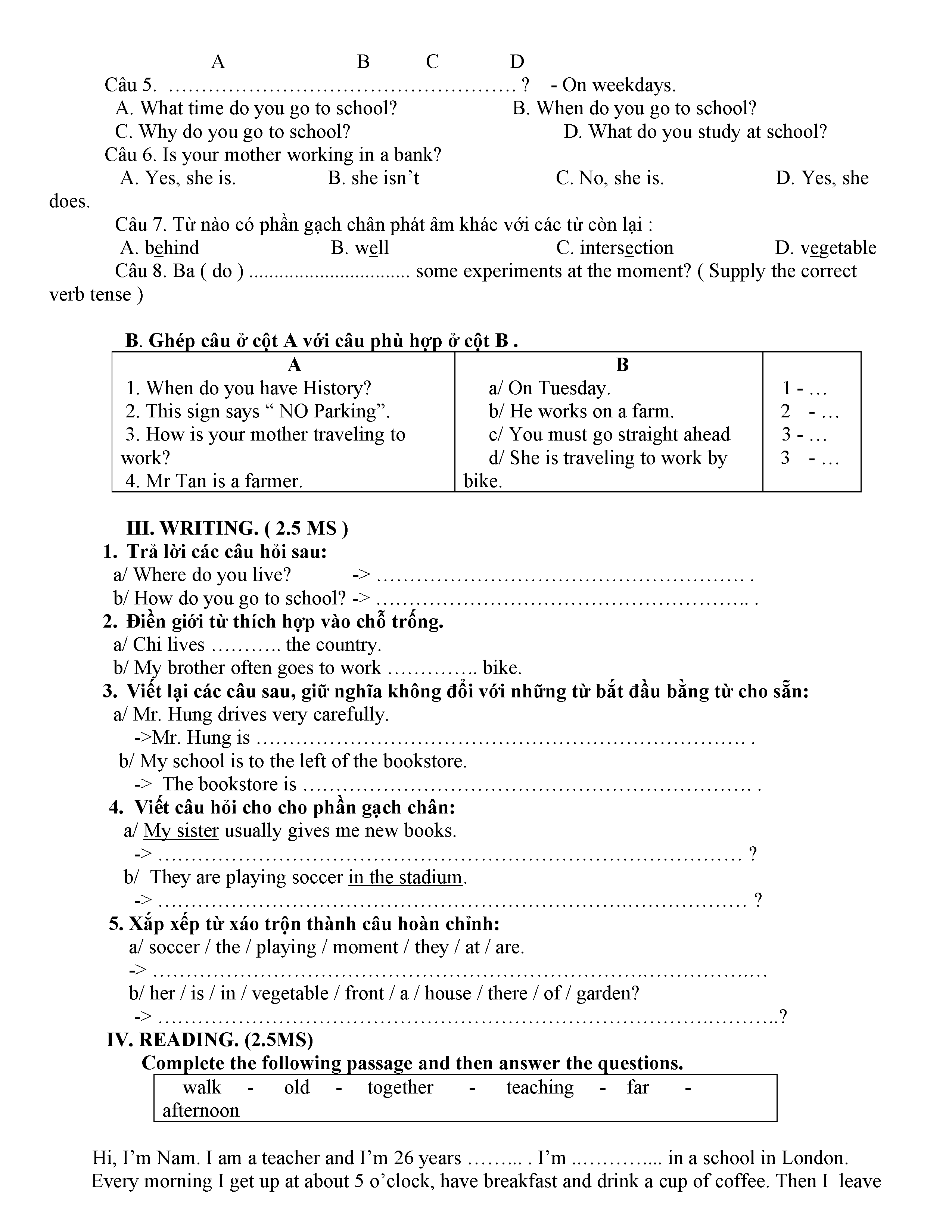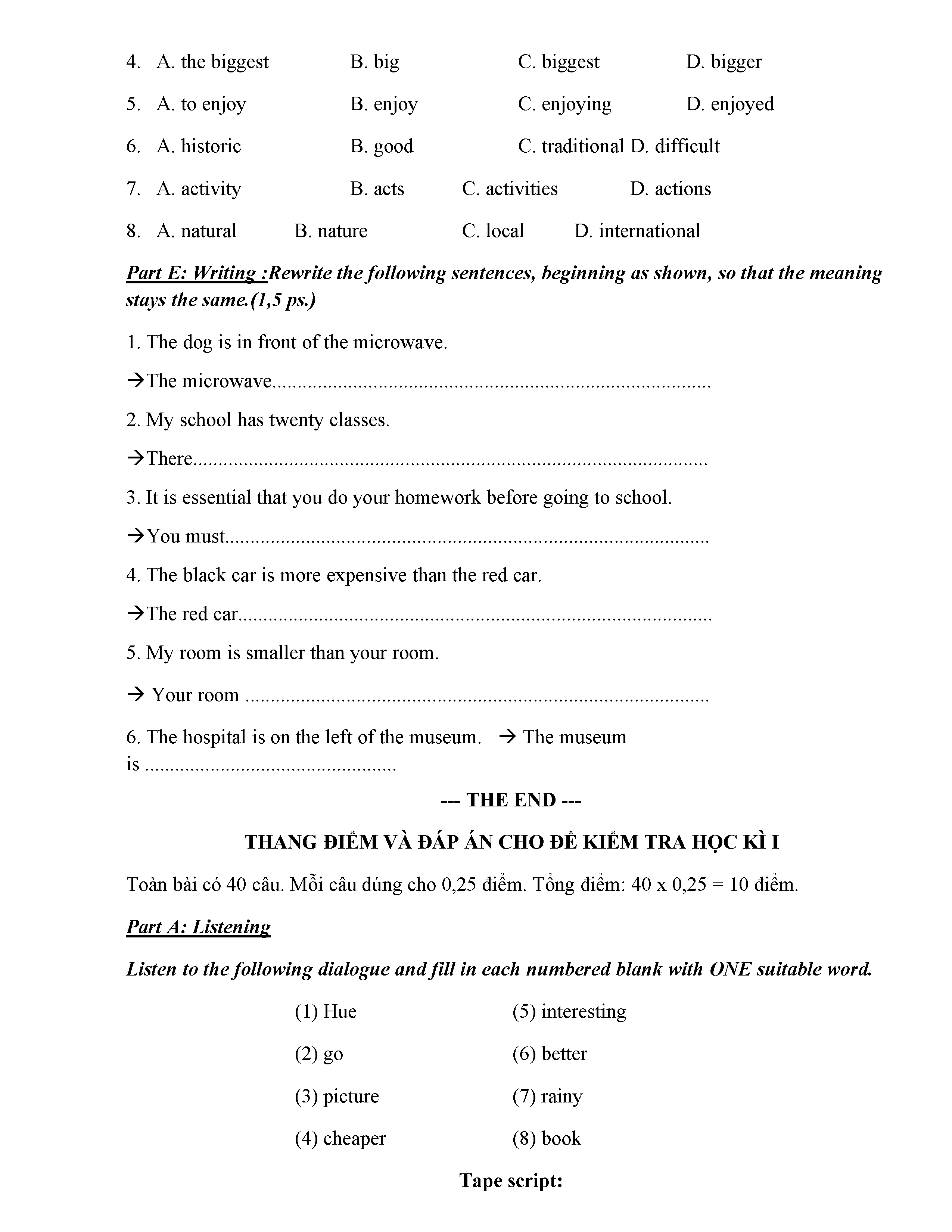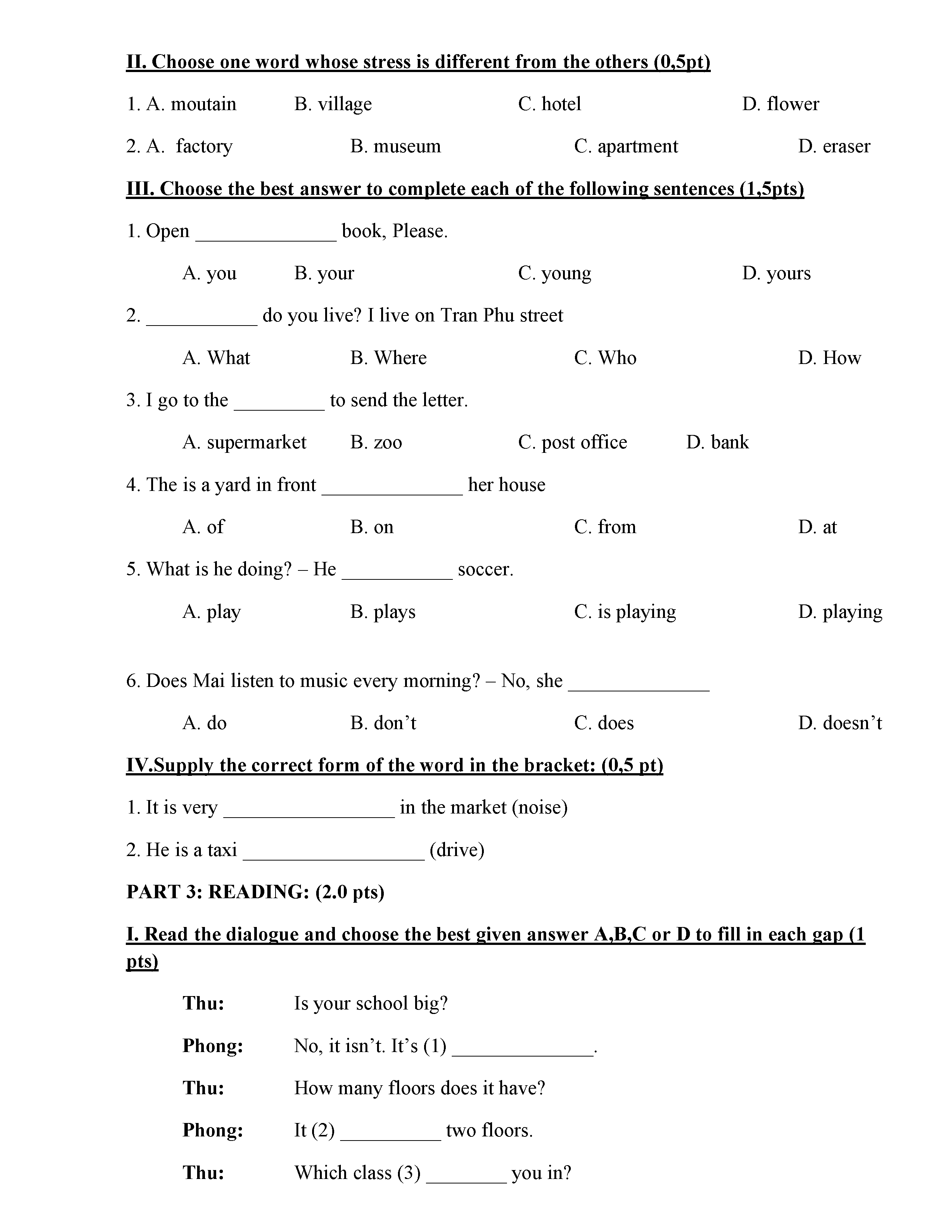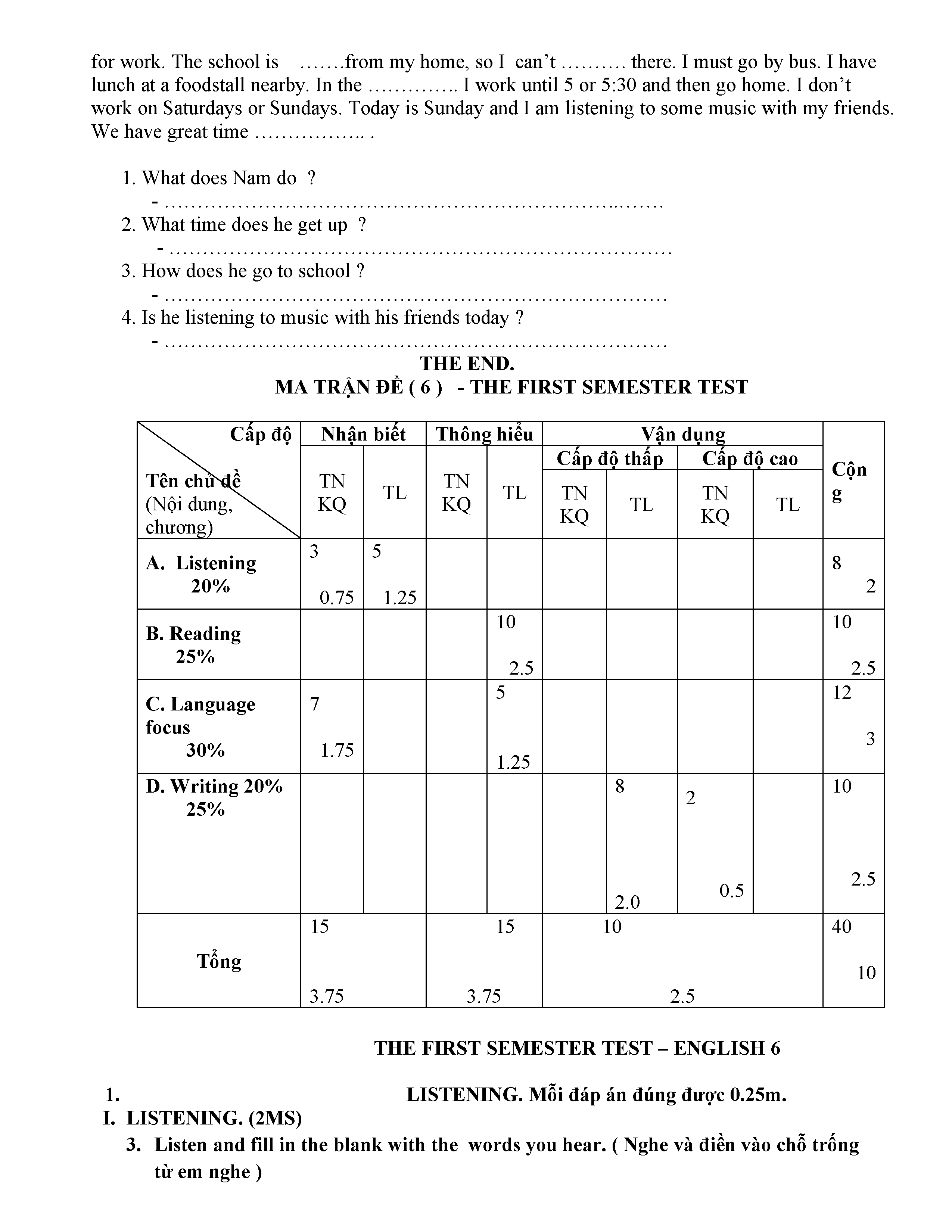 ĐỀ THI TIẾNG ANH 6 NĂM HỌC 2019-2020