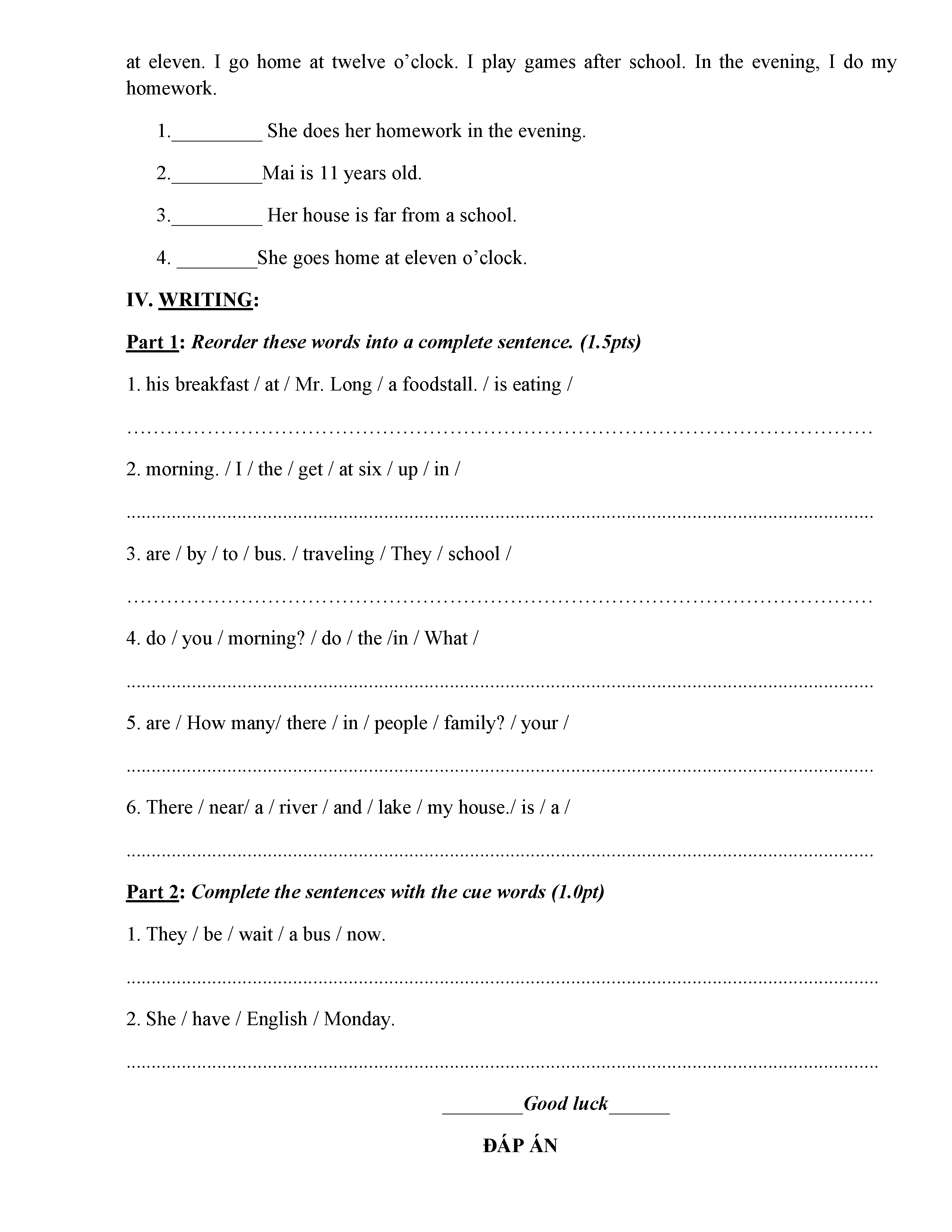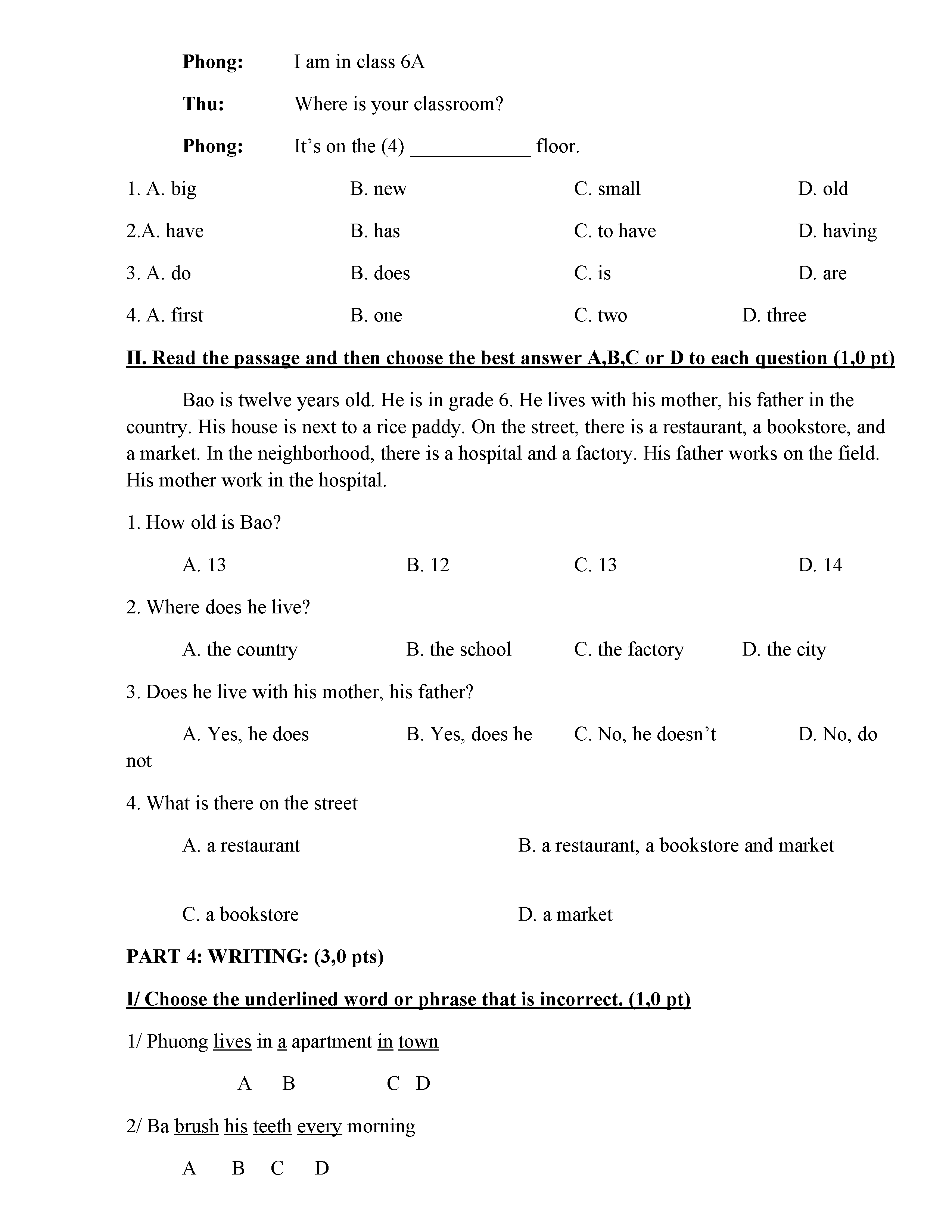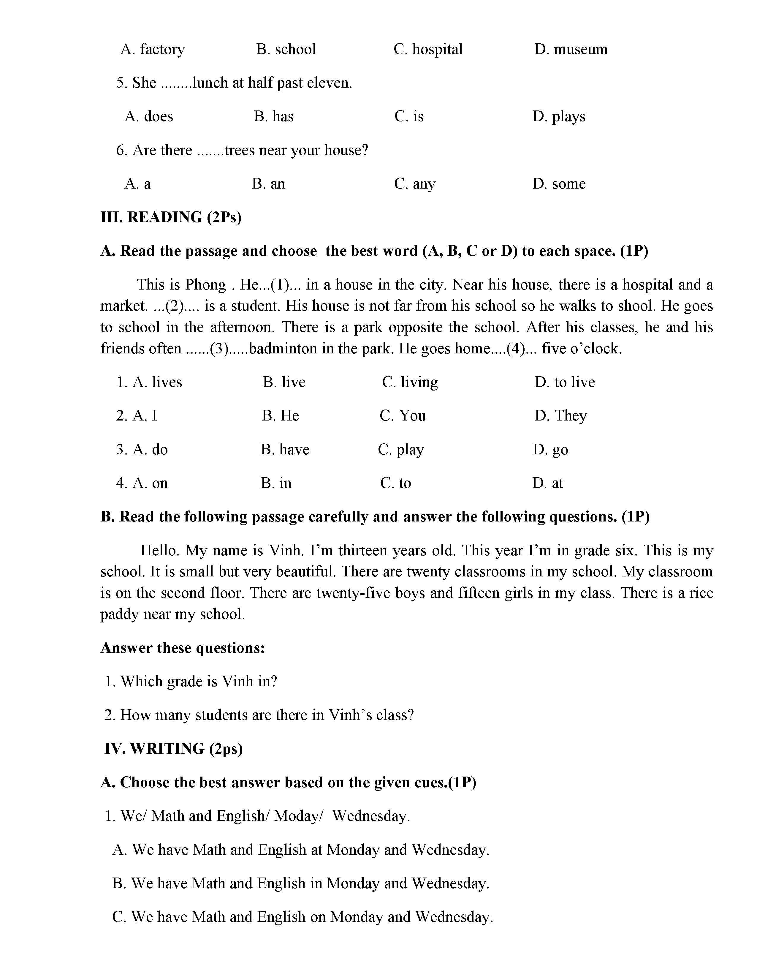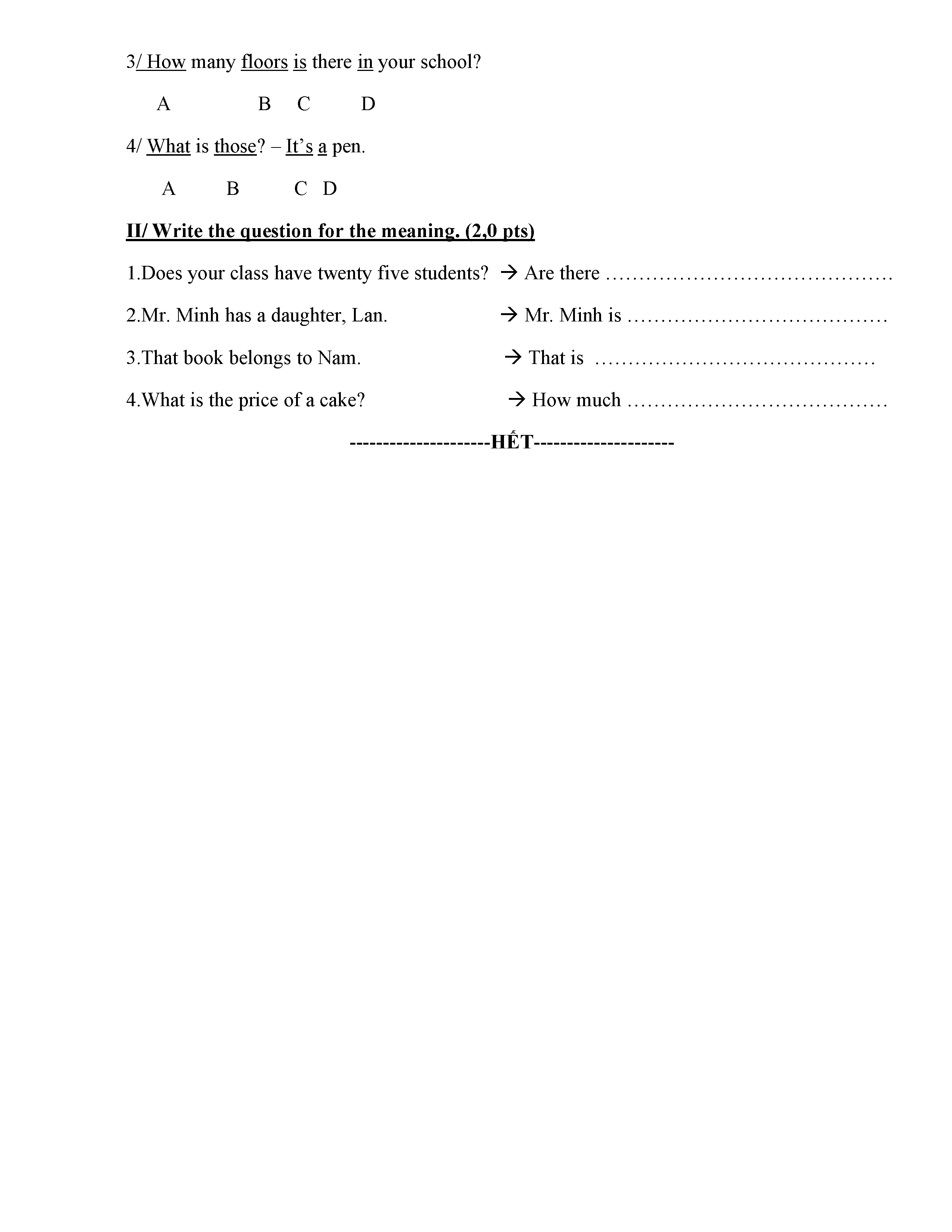 ĐỀ THI TIẾNG ANH 6 NĂM HỌC 2019-2020