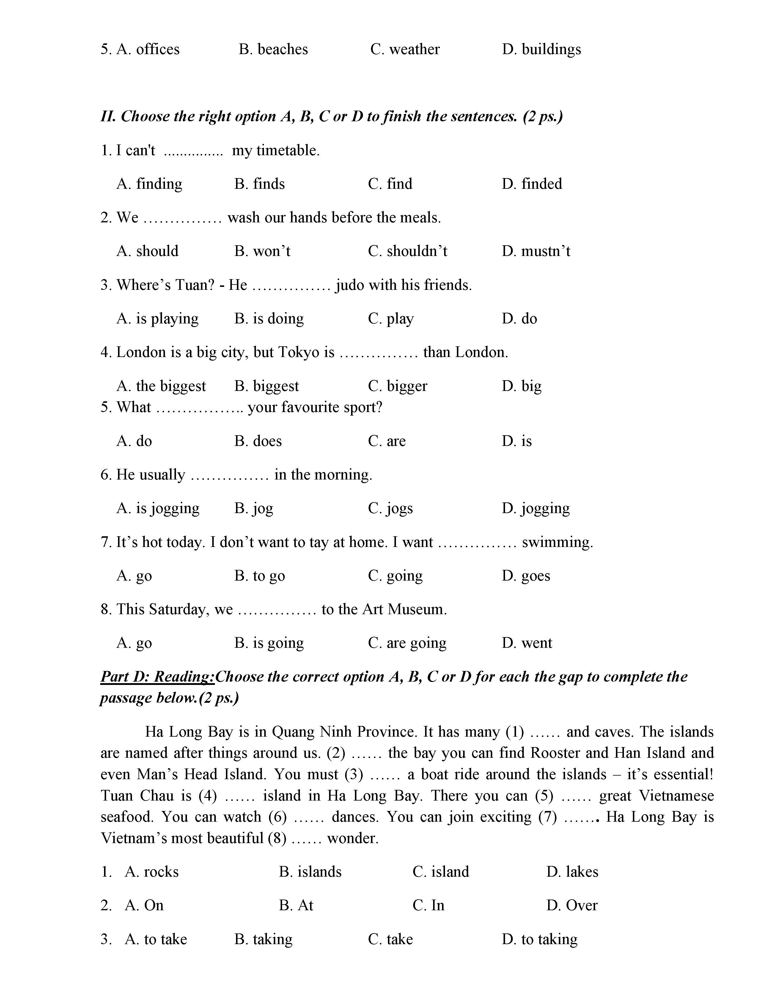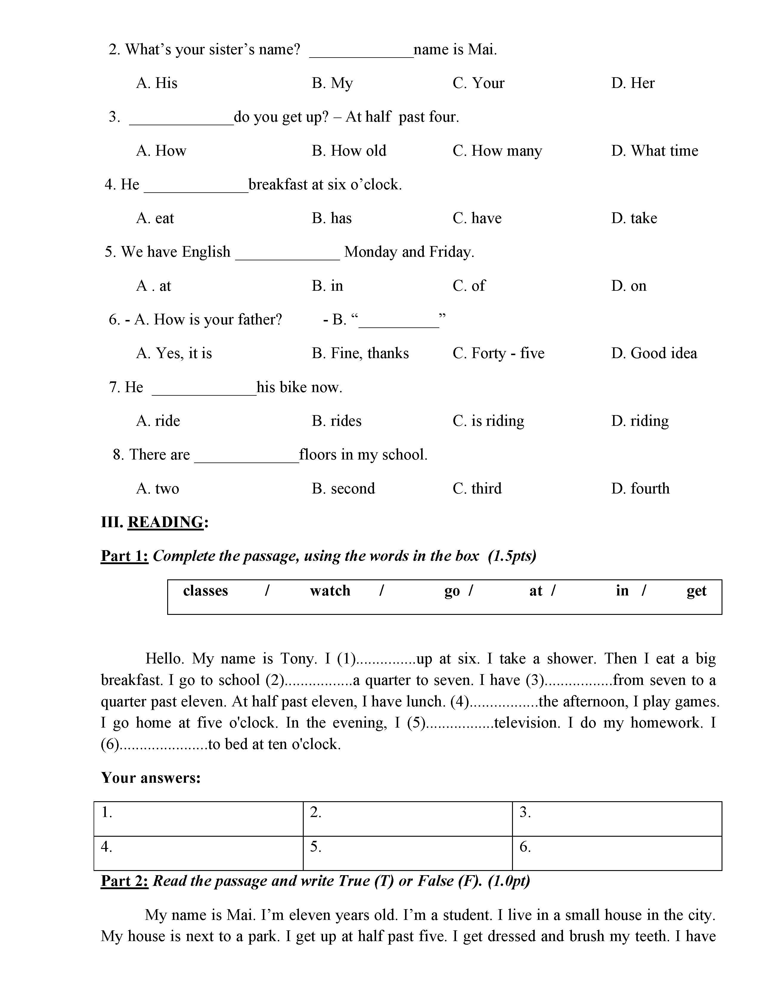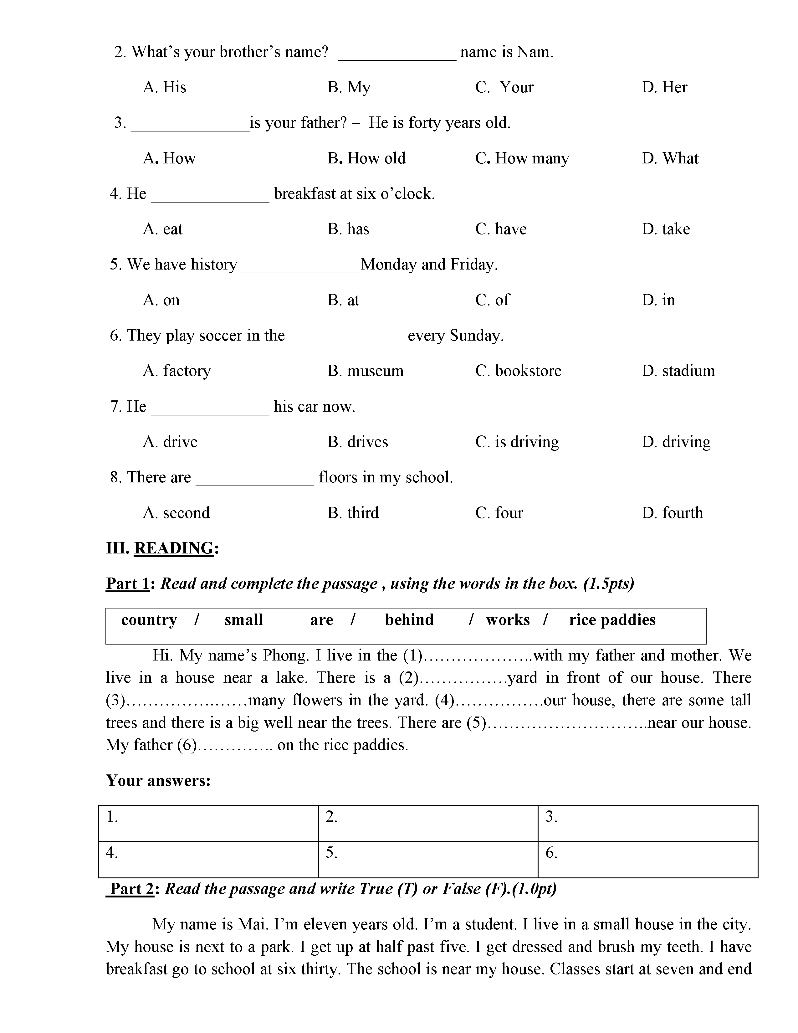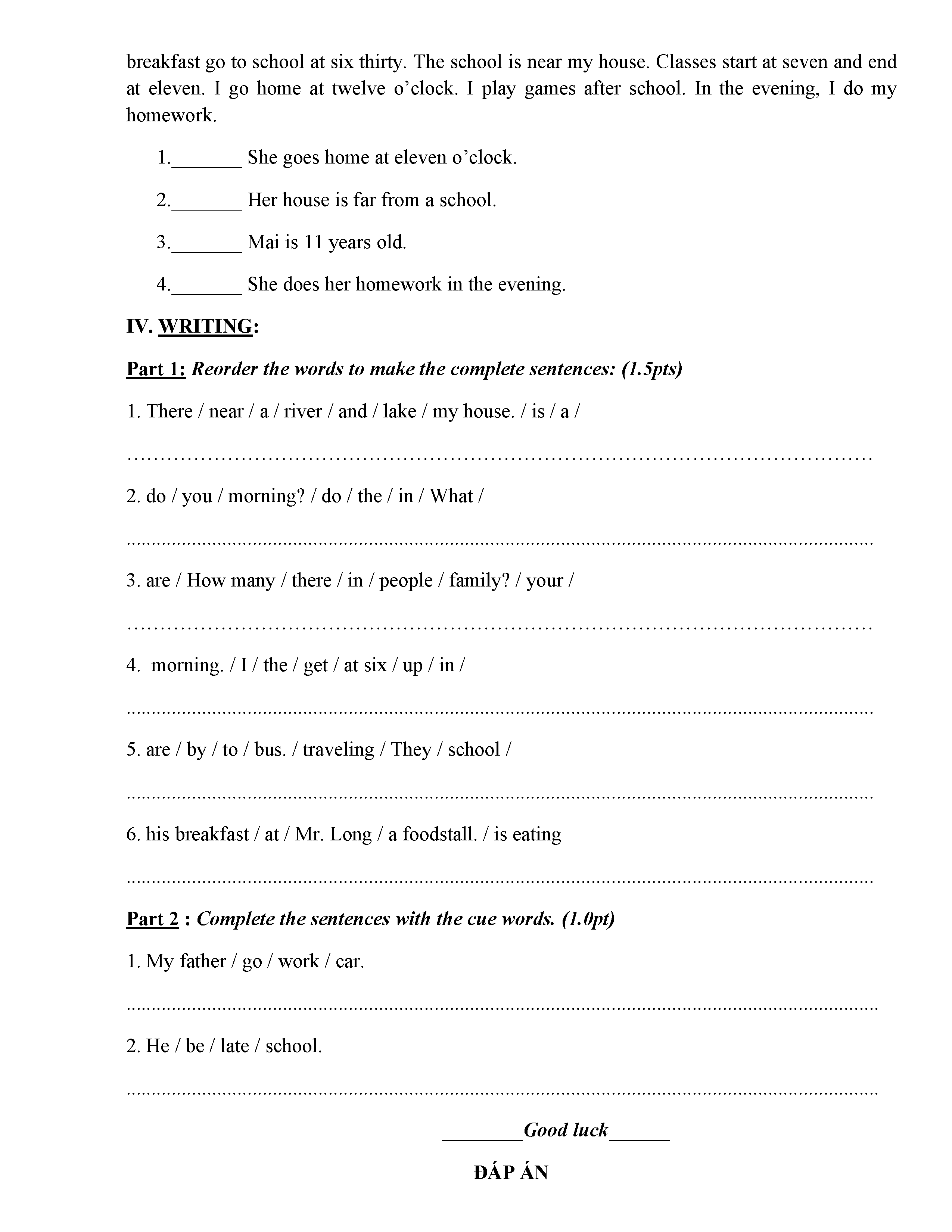 ĐỀ THI TIẾNG ANH 6 NĂM HỌC 2019-2020