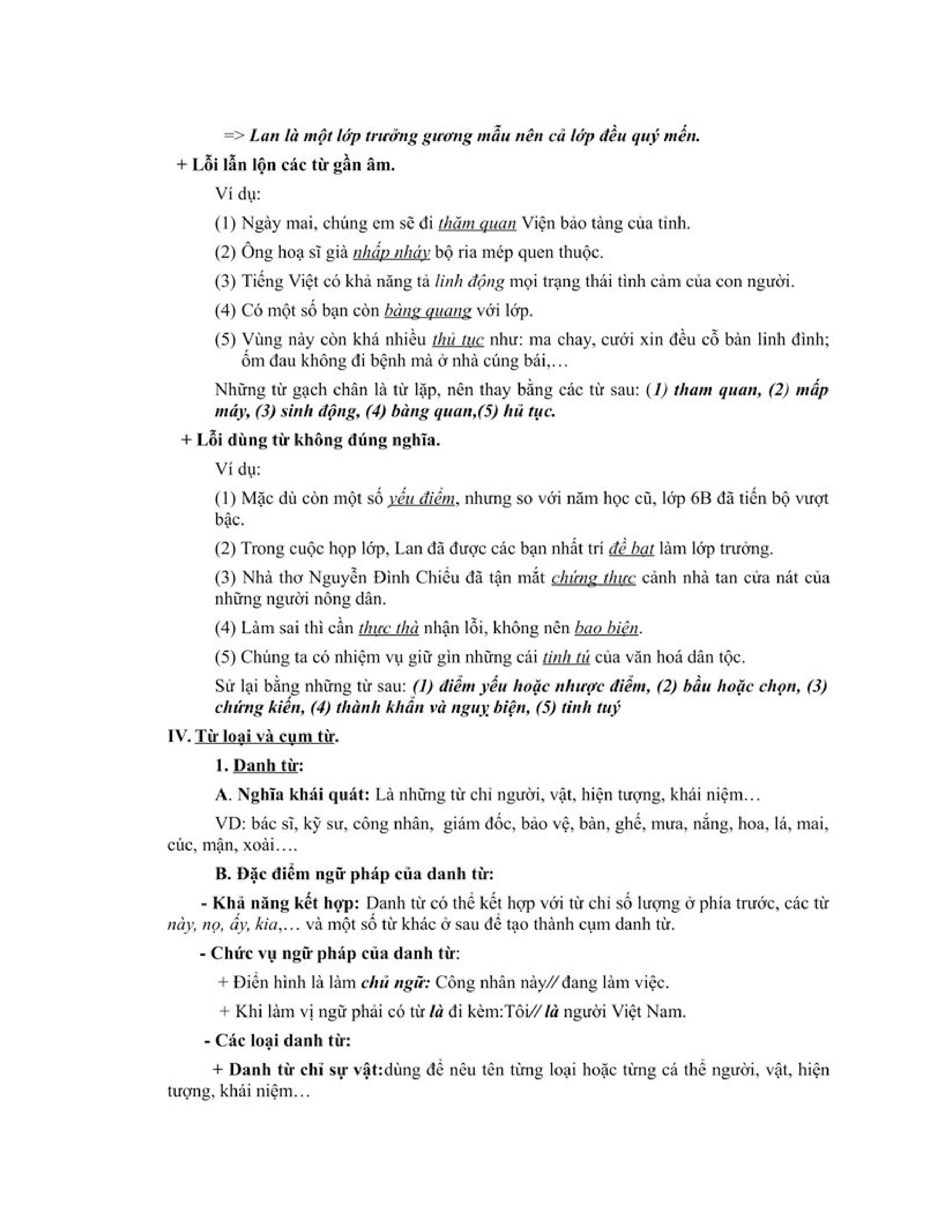 HỆ THỐNG KIẾN THỨC ÔN TẬP HỌC KỲ 1 MÔN NGỮ VĂN 6