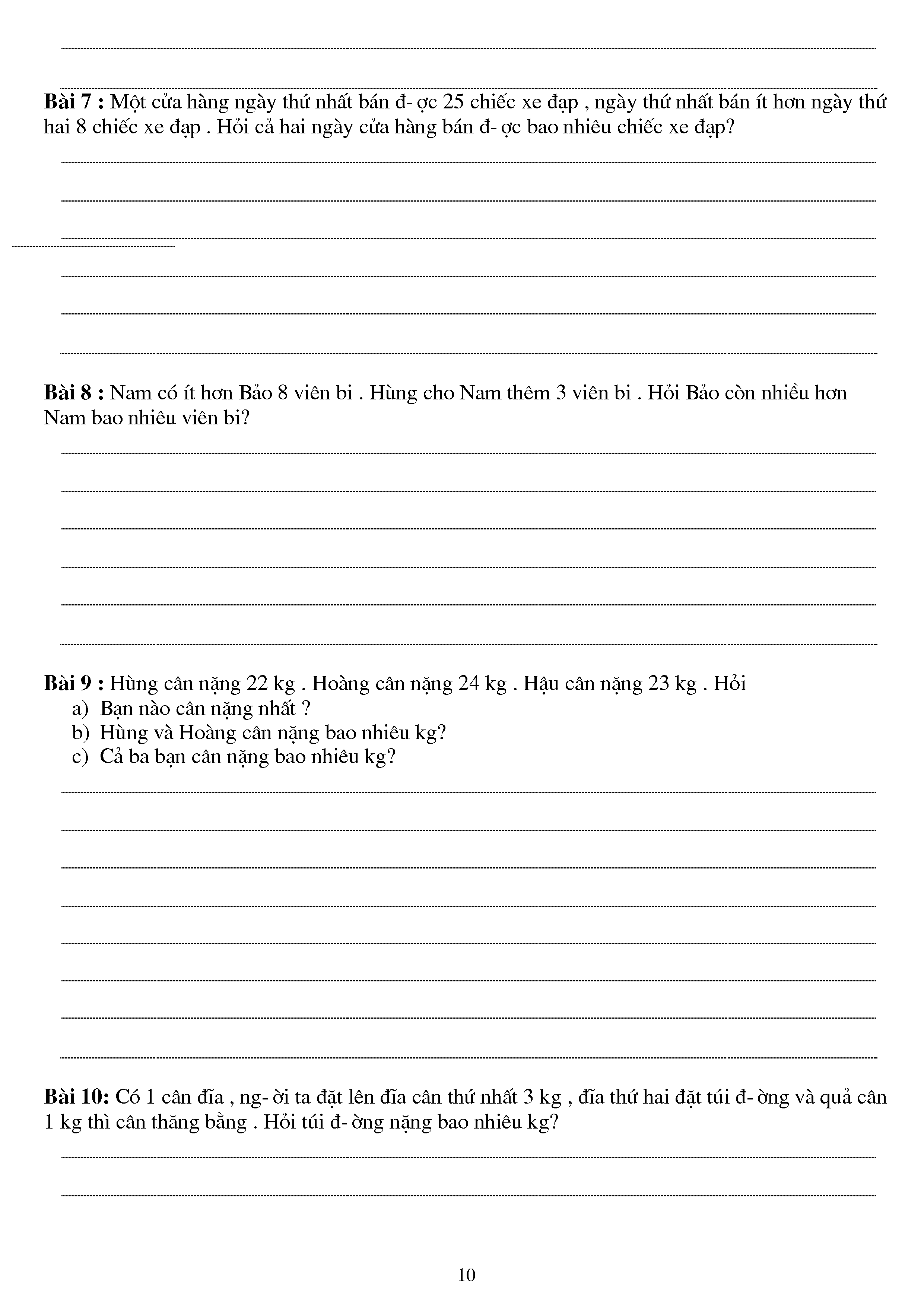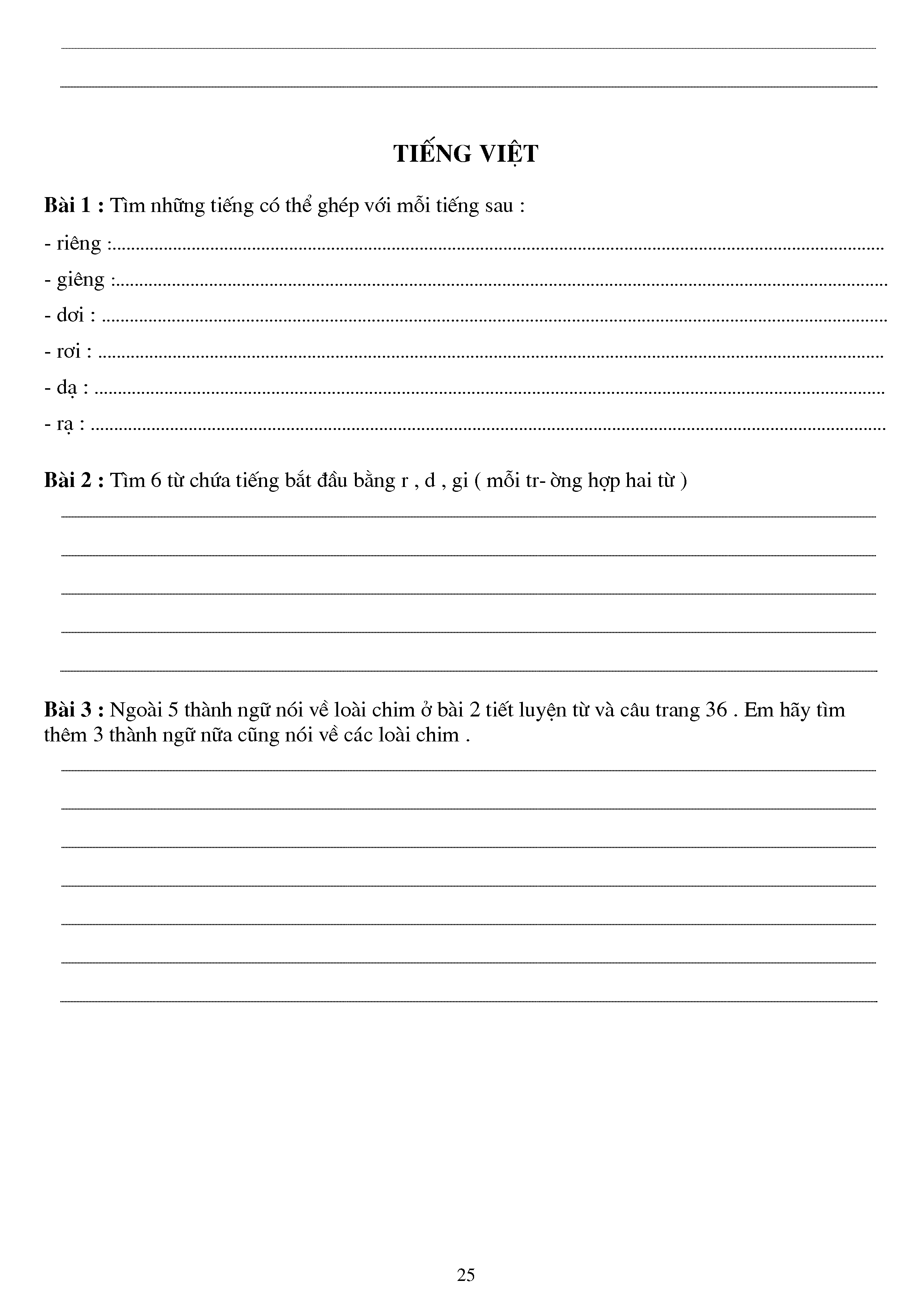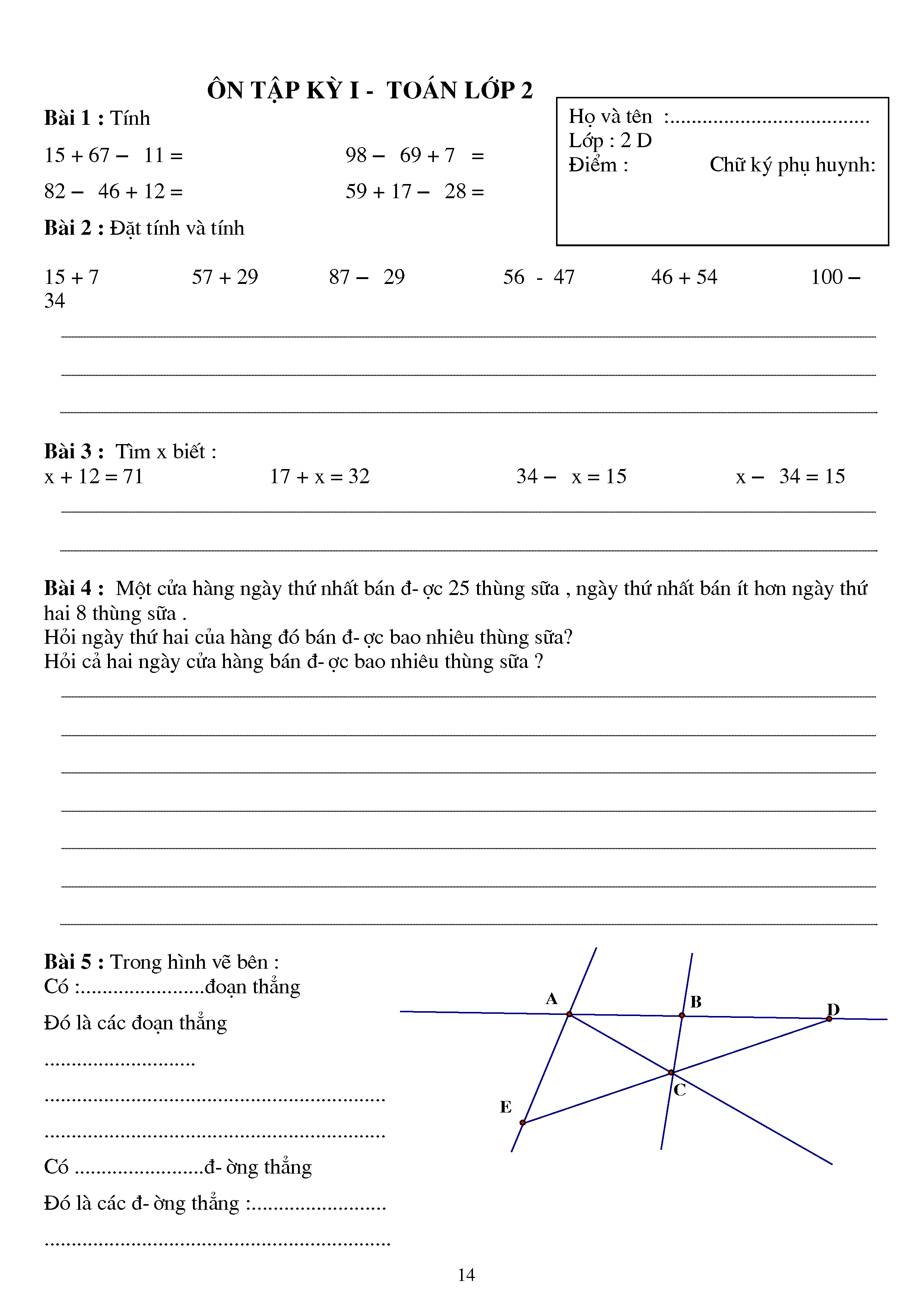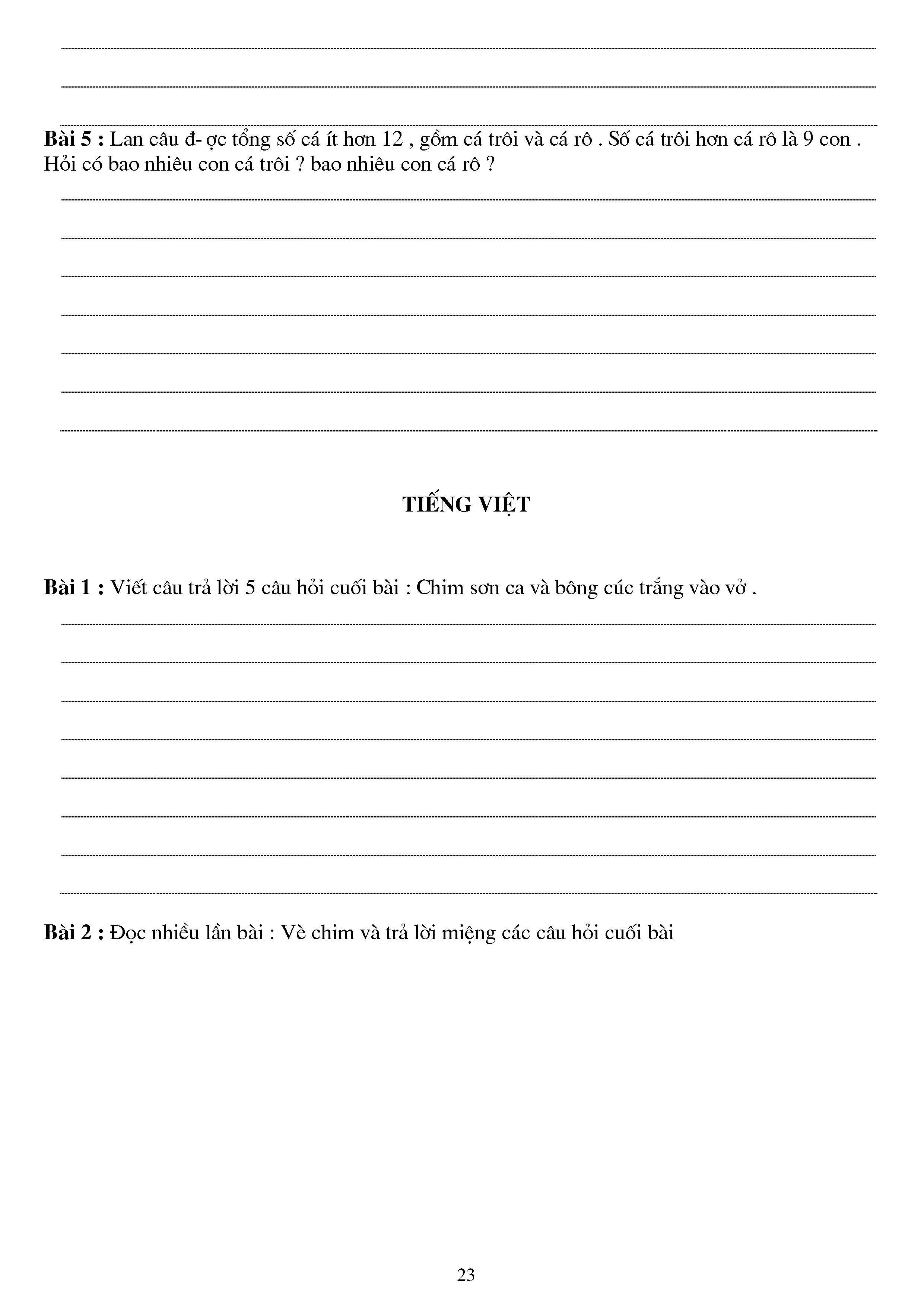 Tổng hợp các bài Toán + Tiếng Việt ôn thi học kì lớp 2