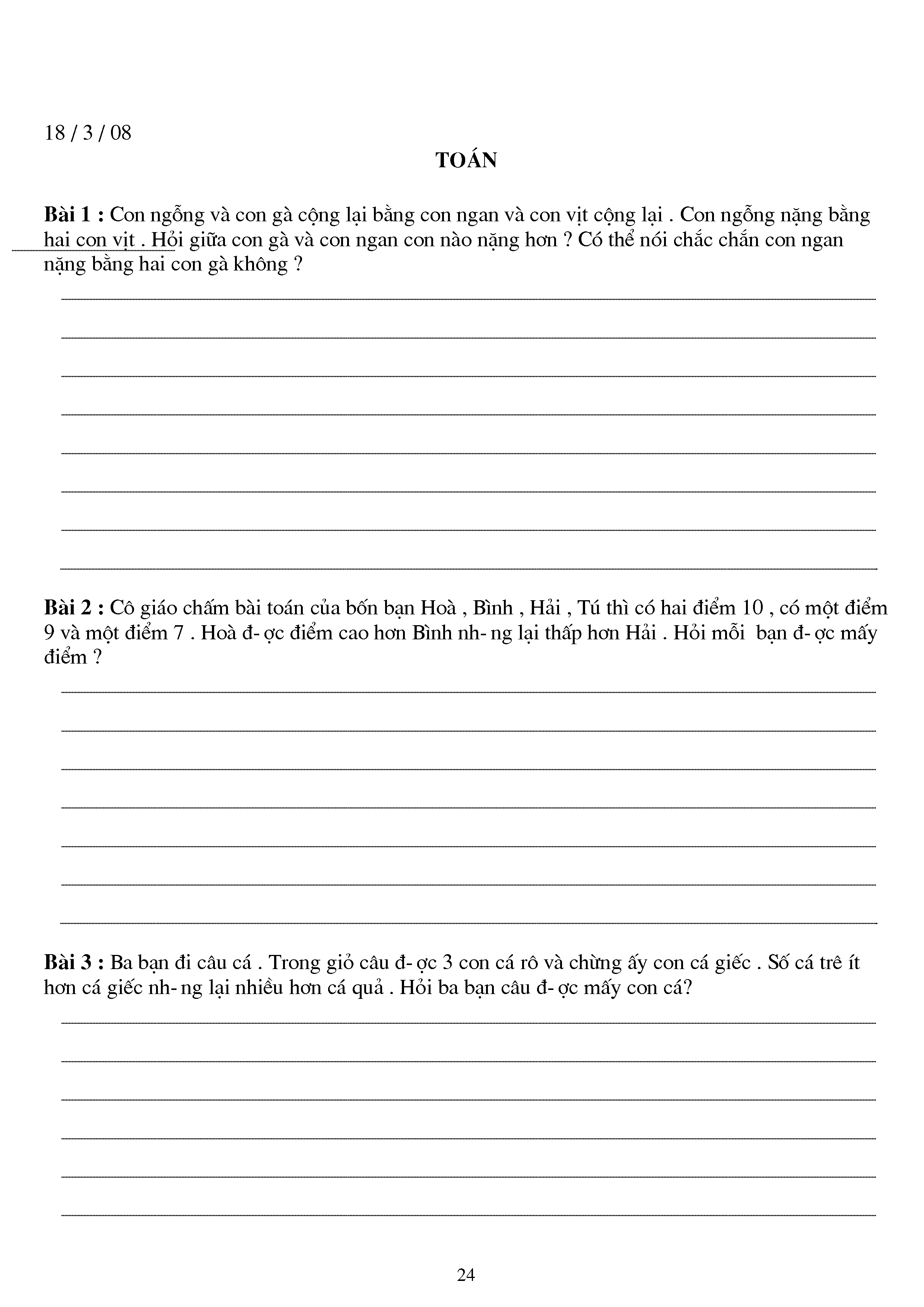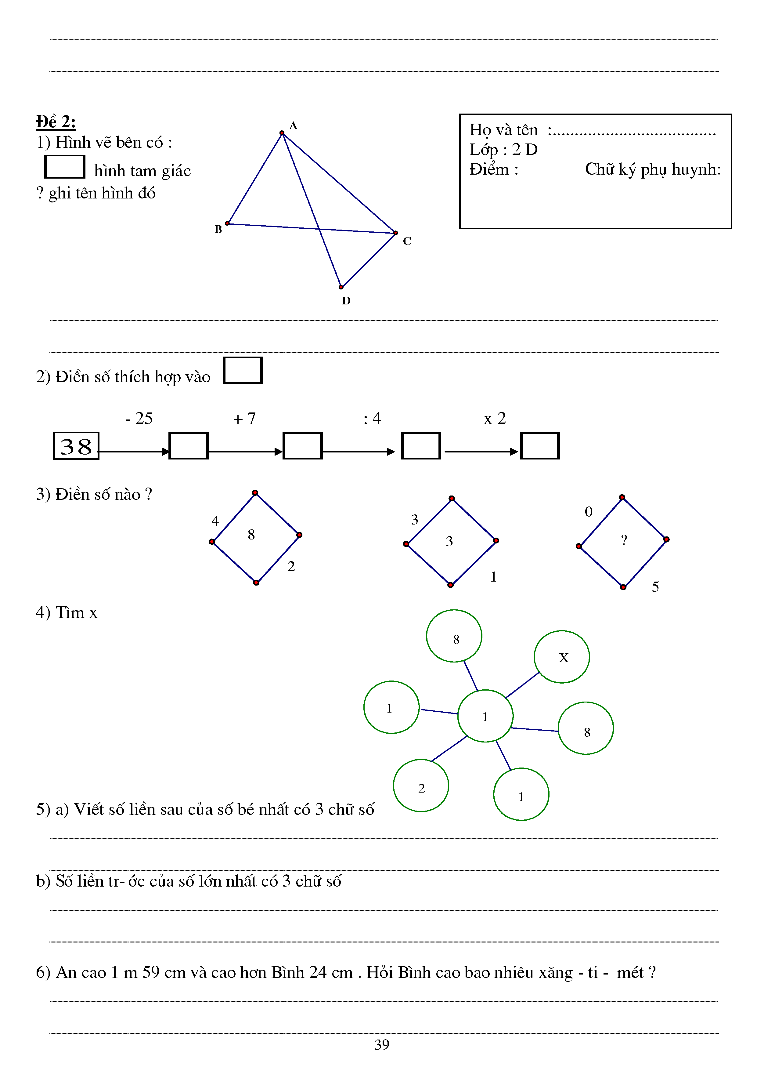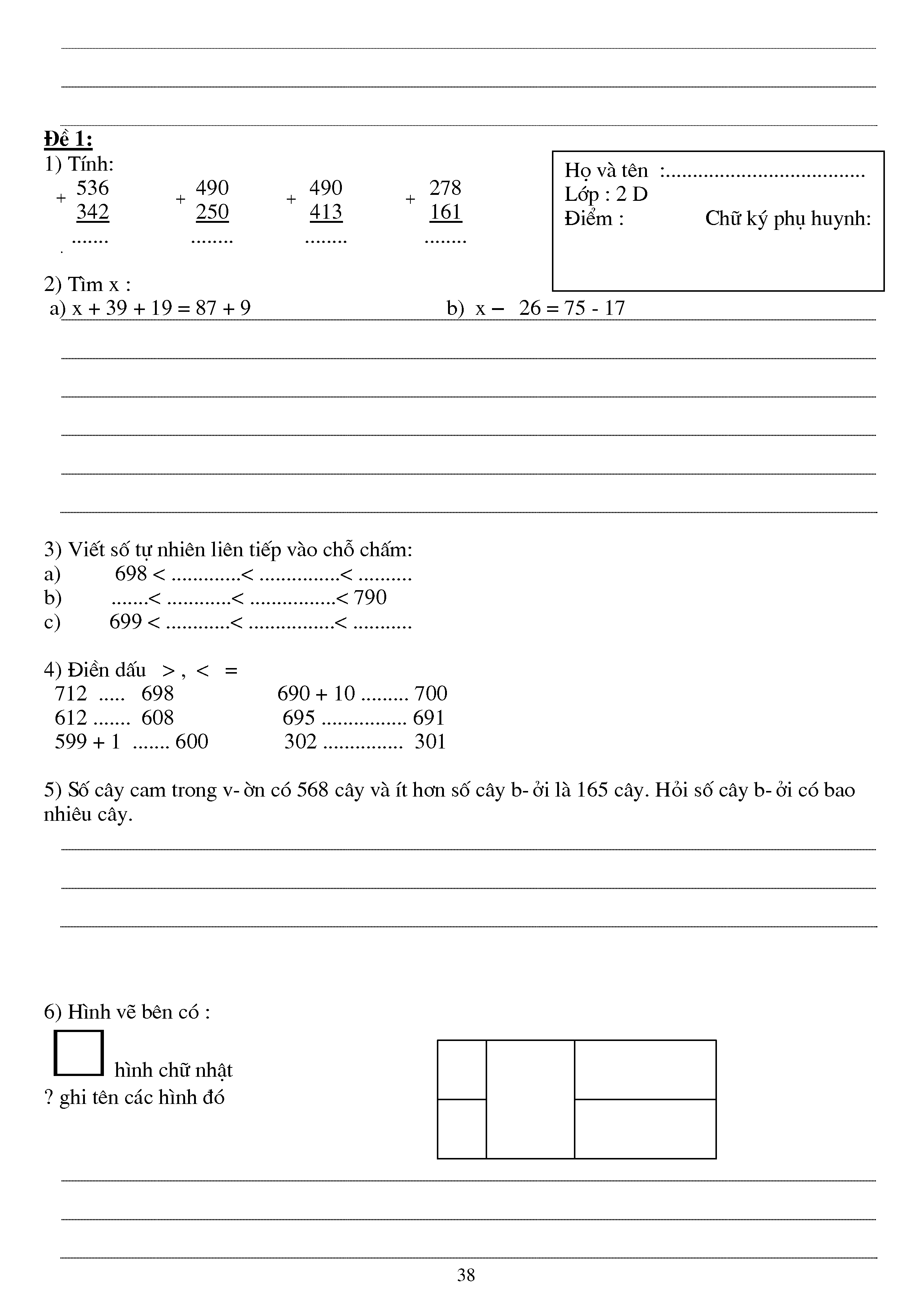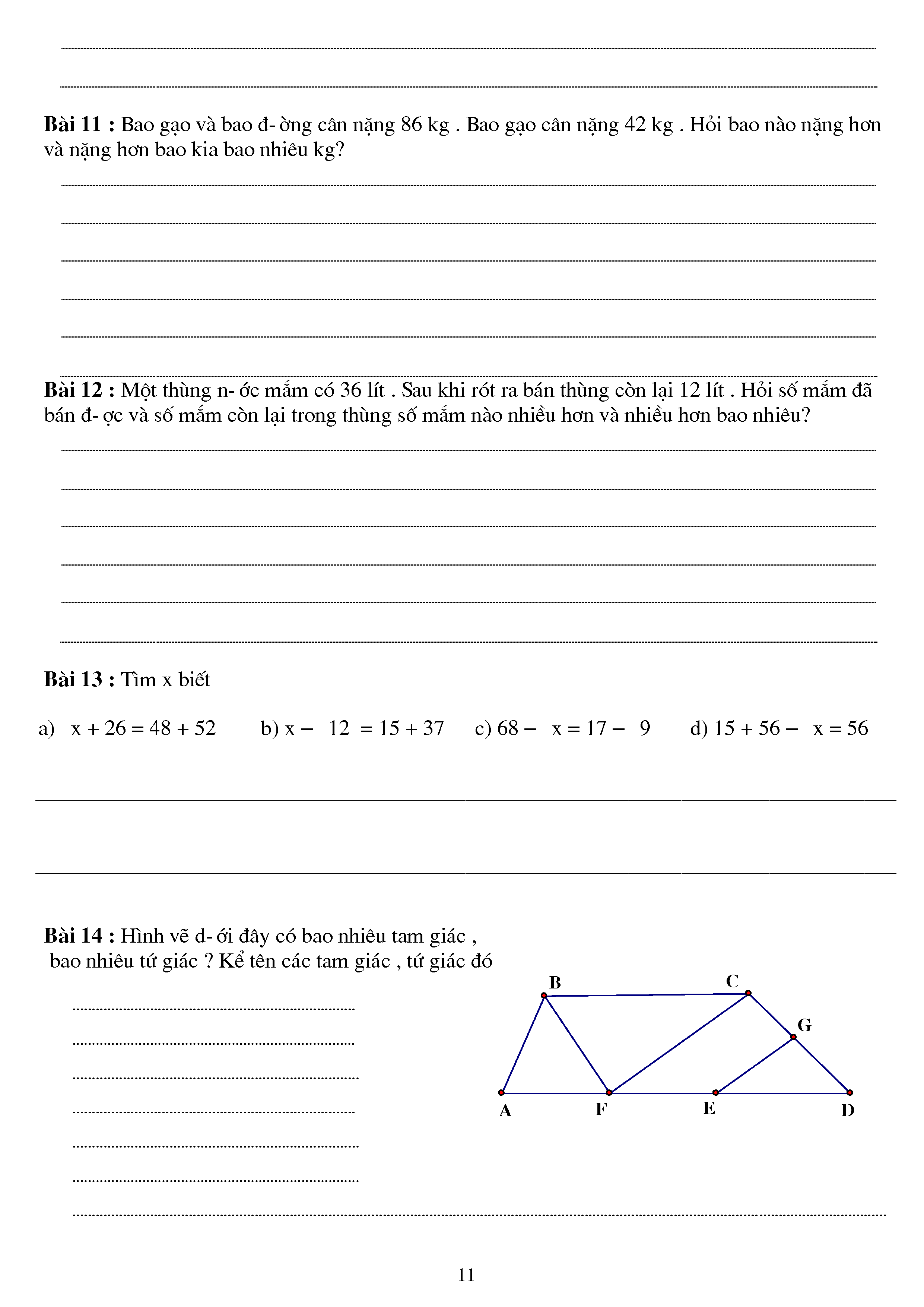 Tổng hợp các bài Toán + Tiếng Việt ôn thi học kì lớp 2