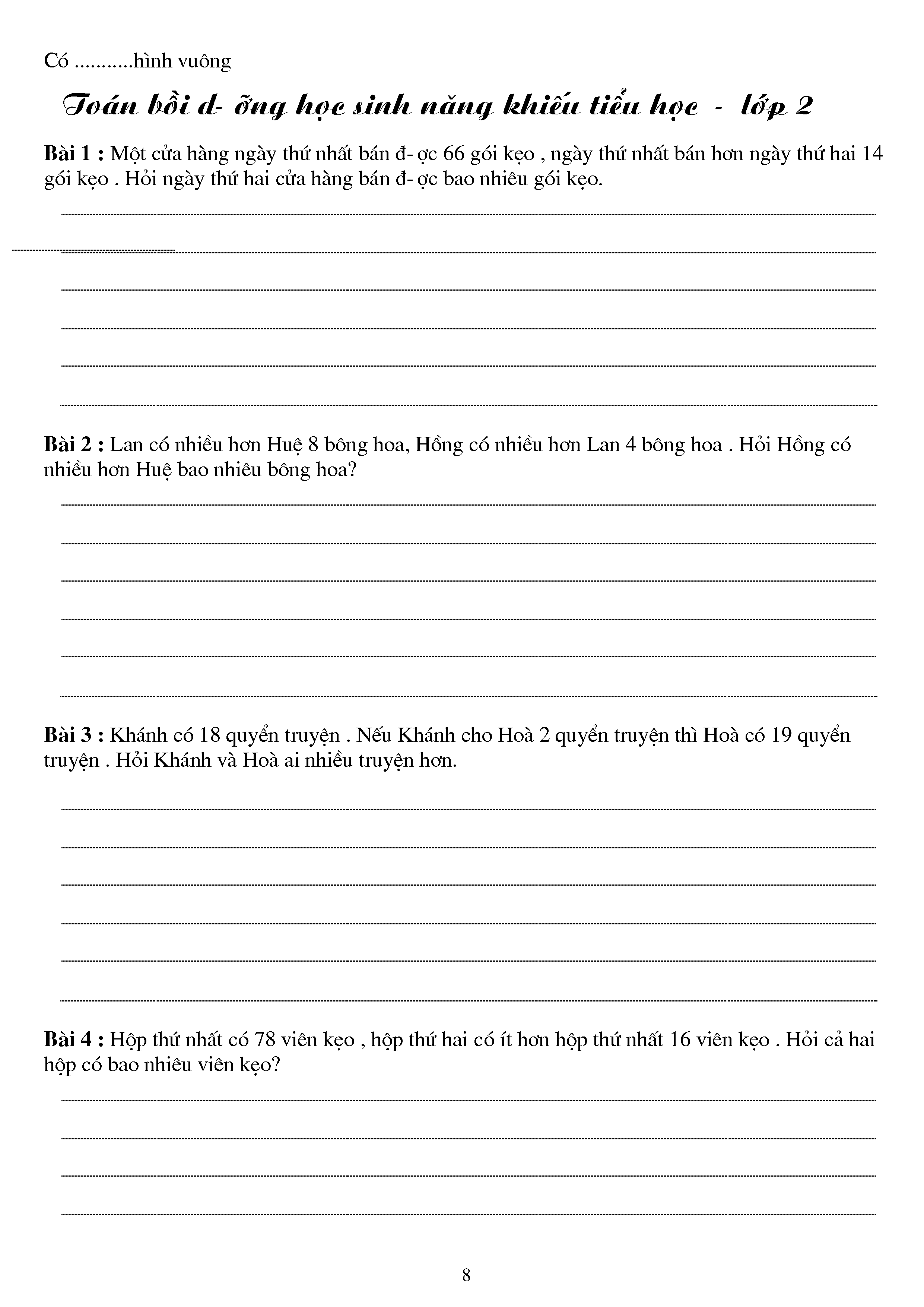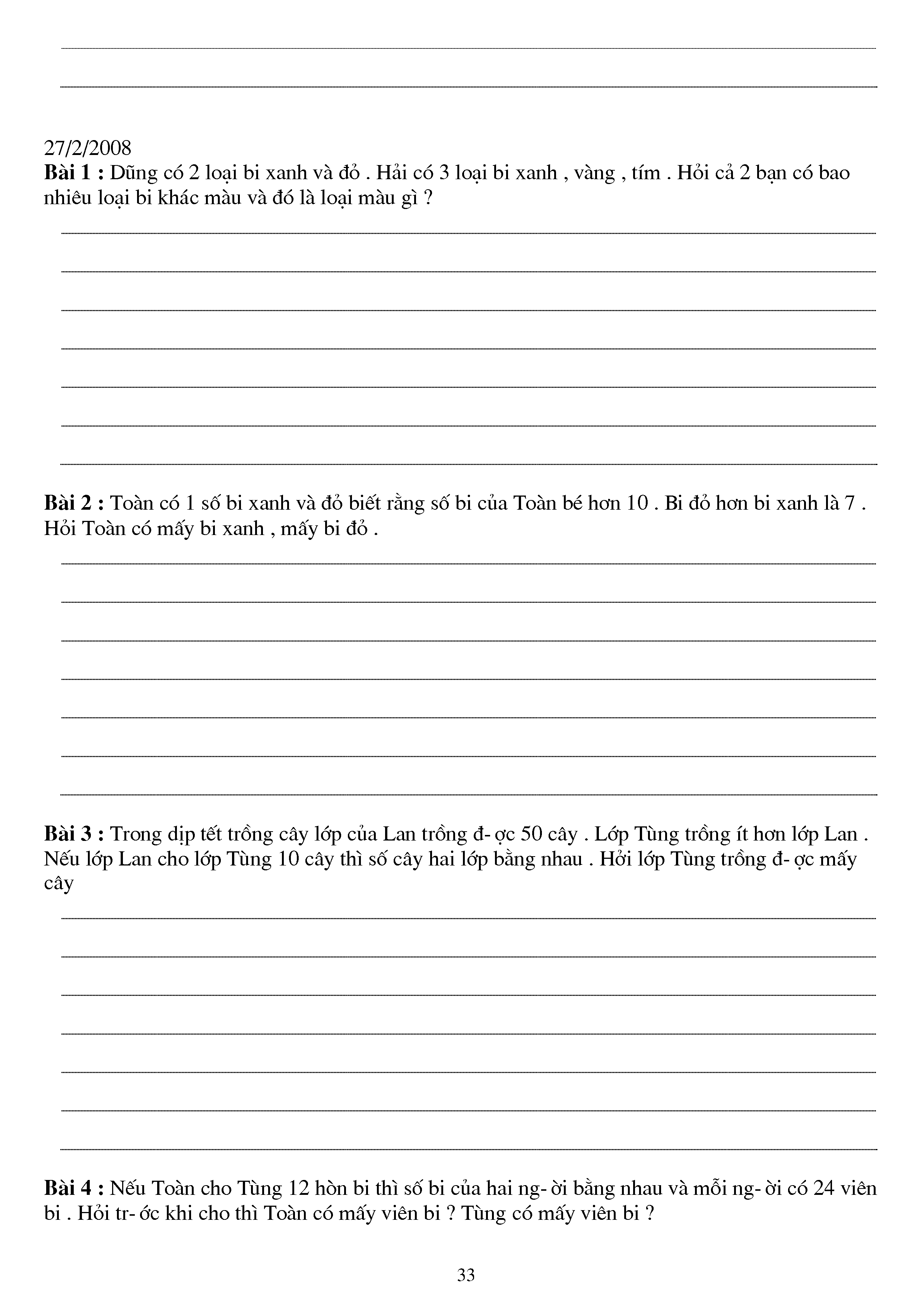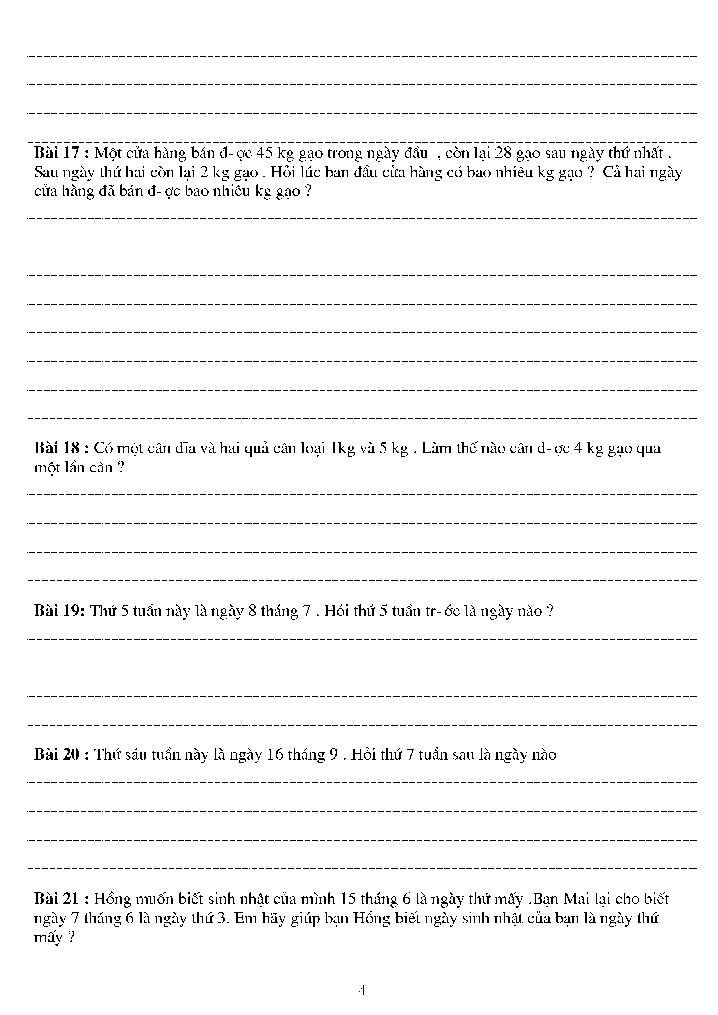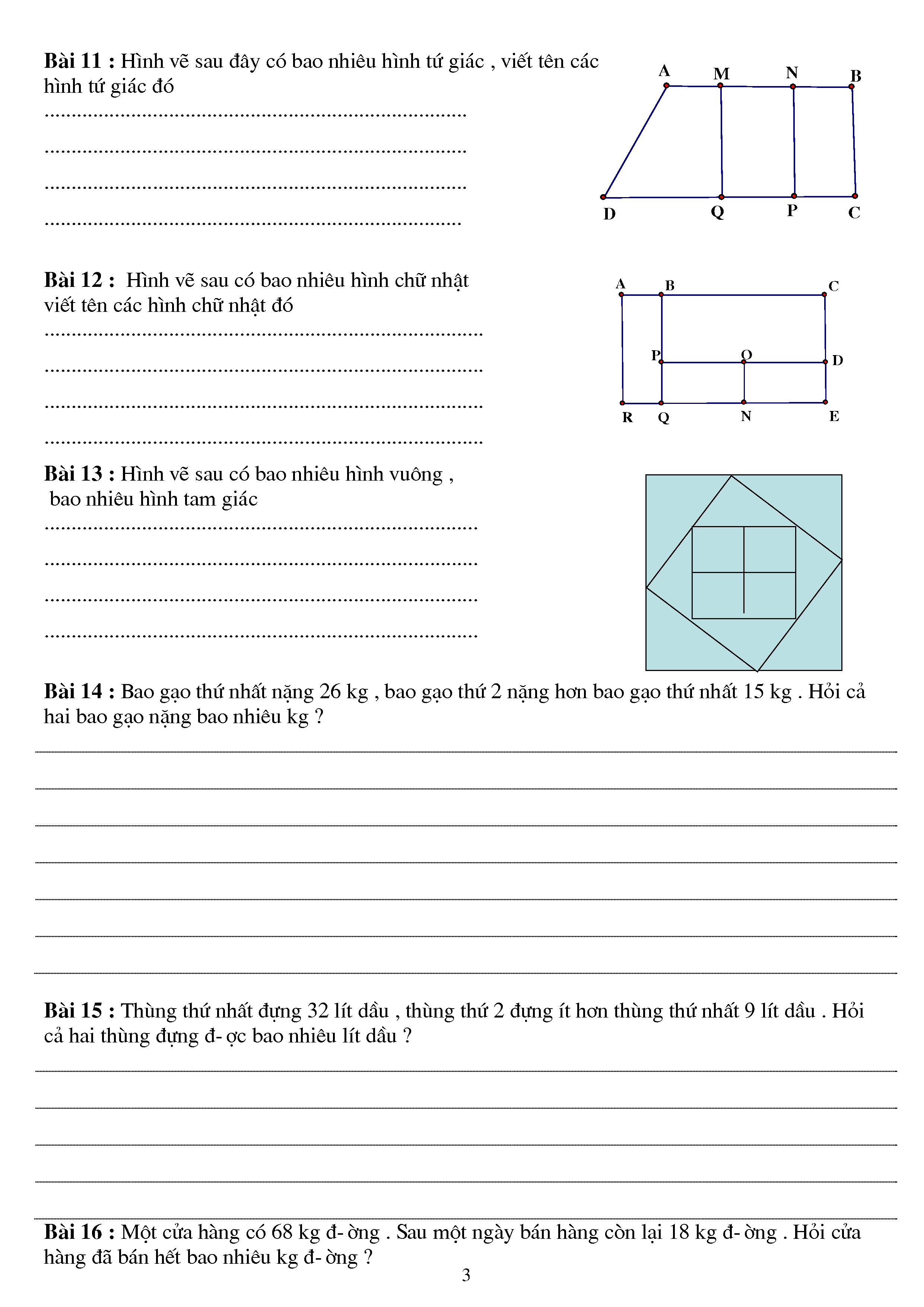 Tổng hợp các bài Toán + Tiếng Việt ôn thi học kì lớp 2