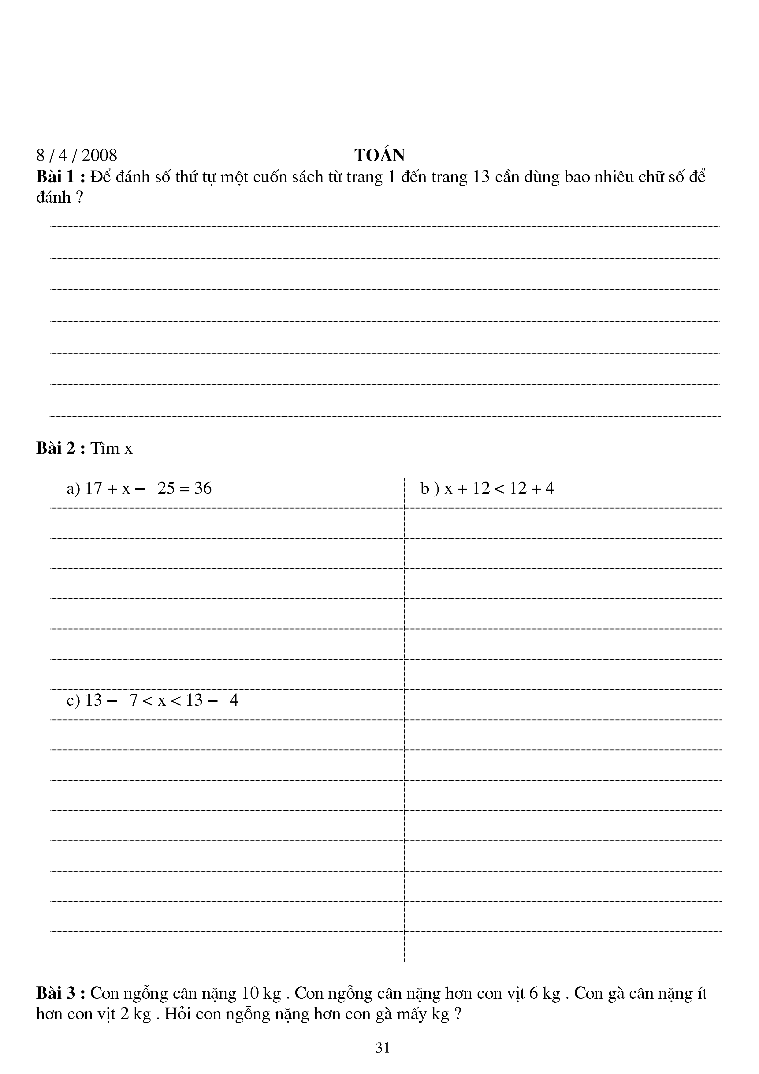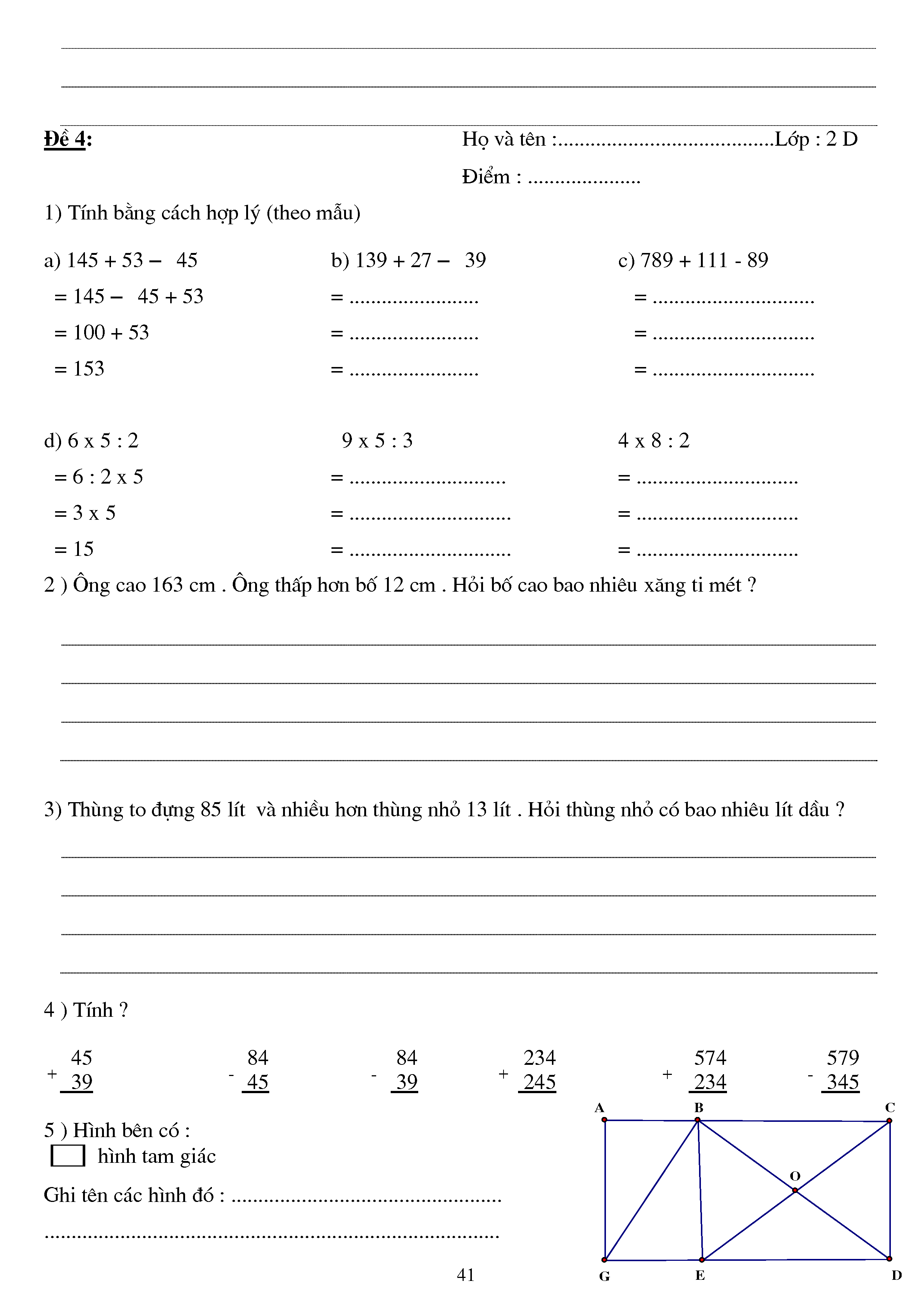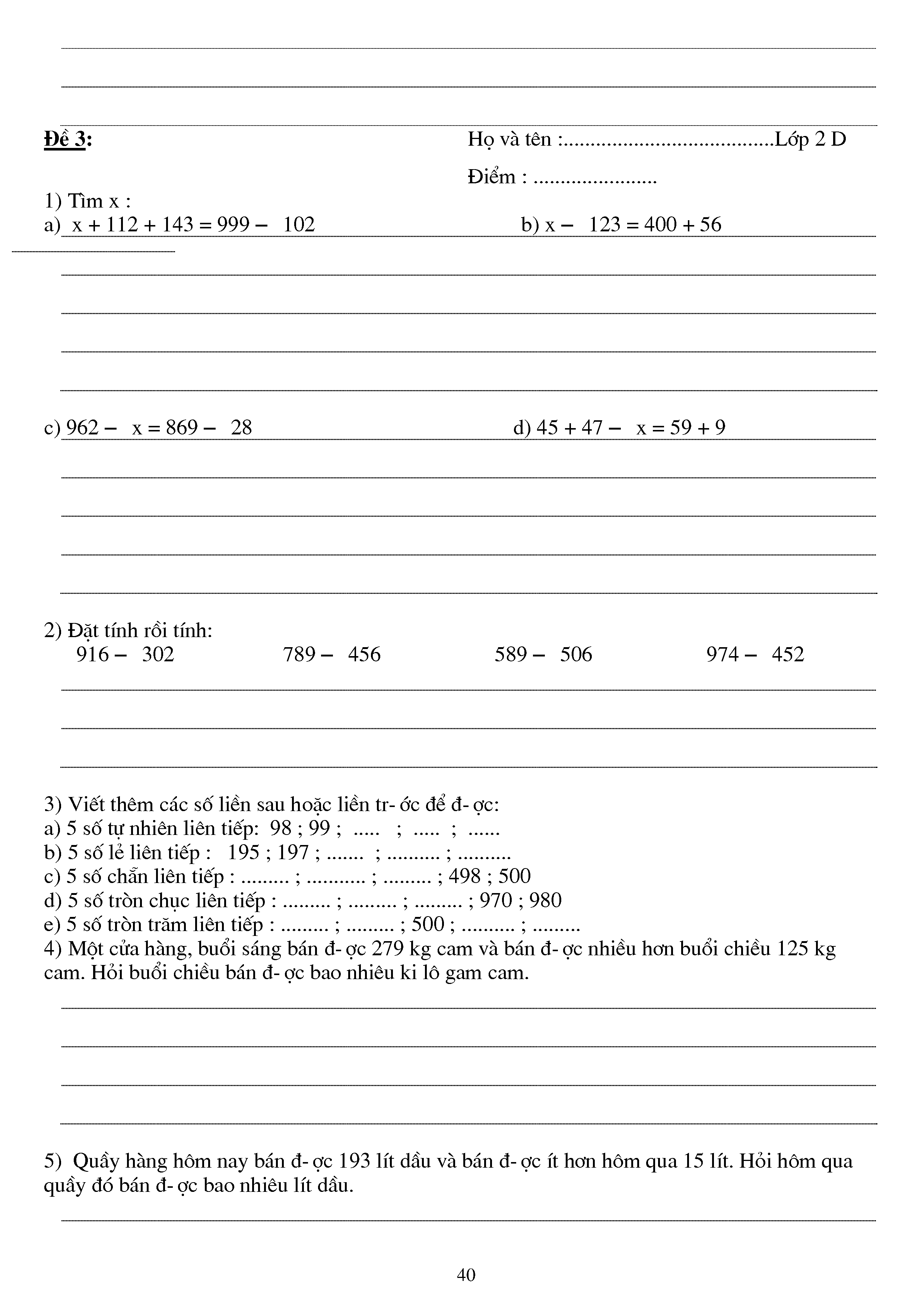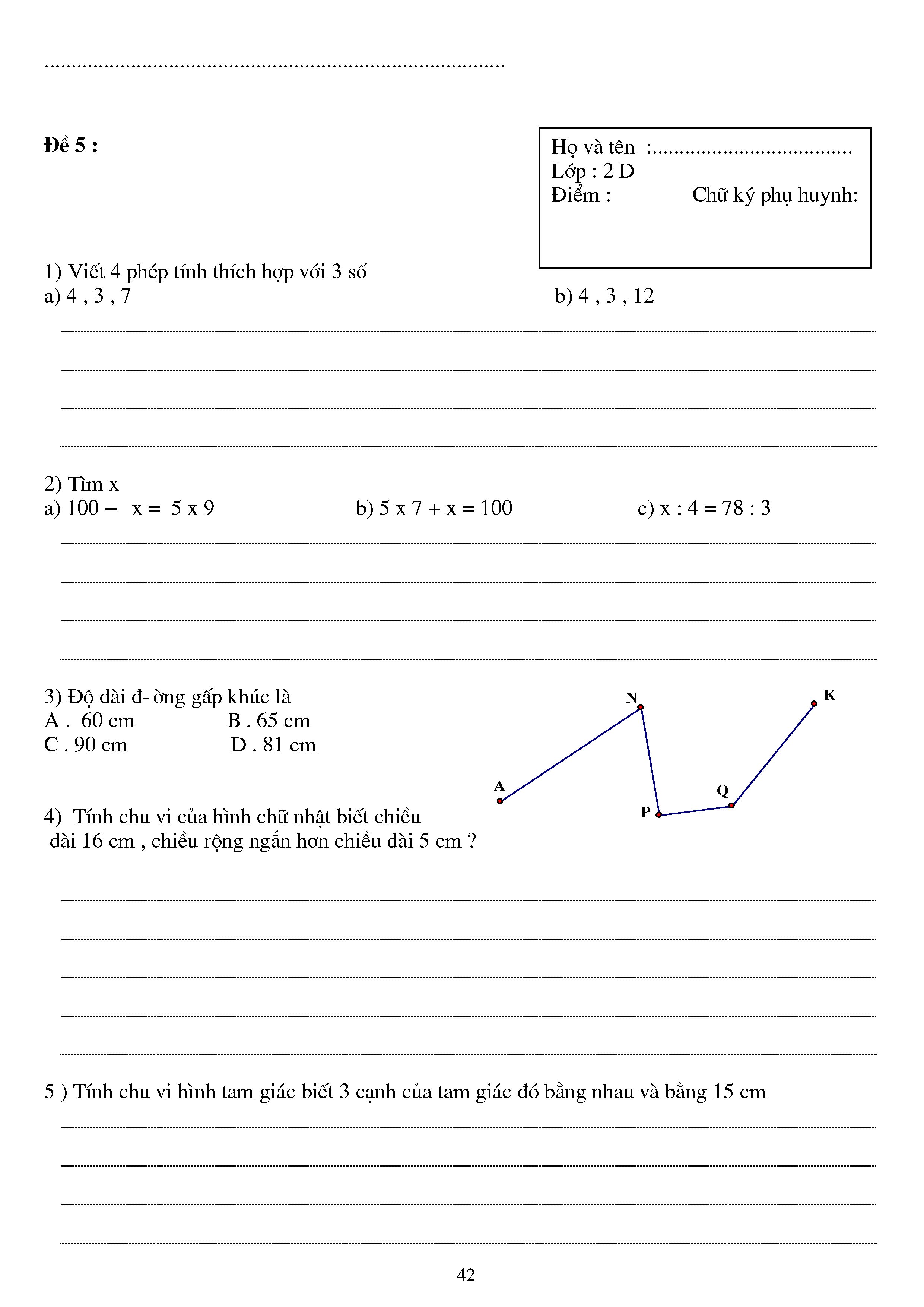 Tổng hợp các bài Toán + Tiếng Việt ôn thi học kì lớp 2