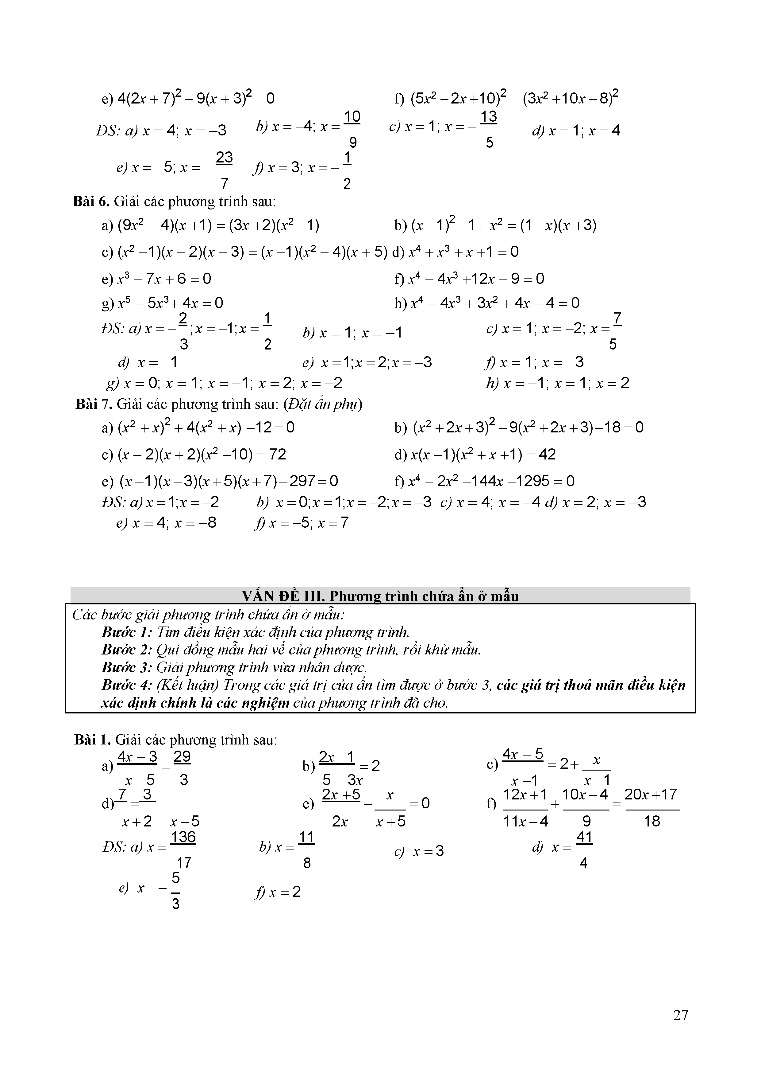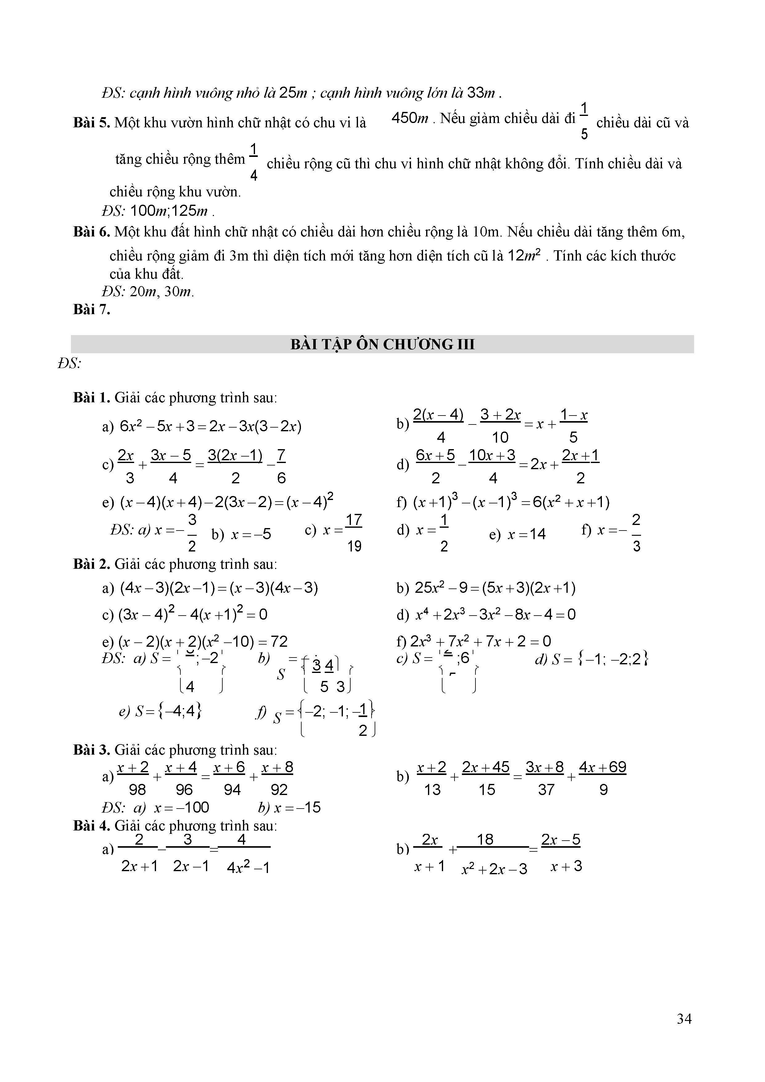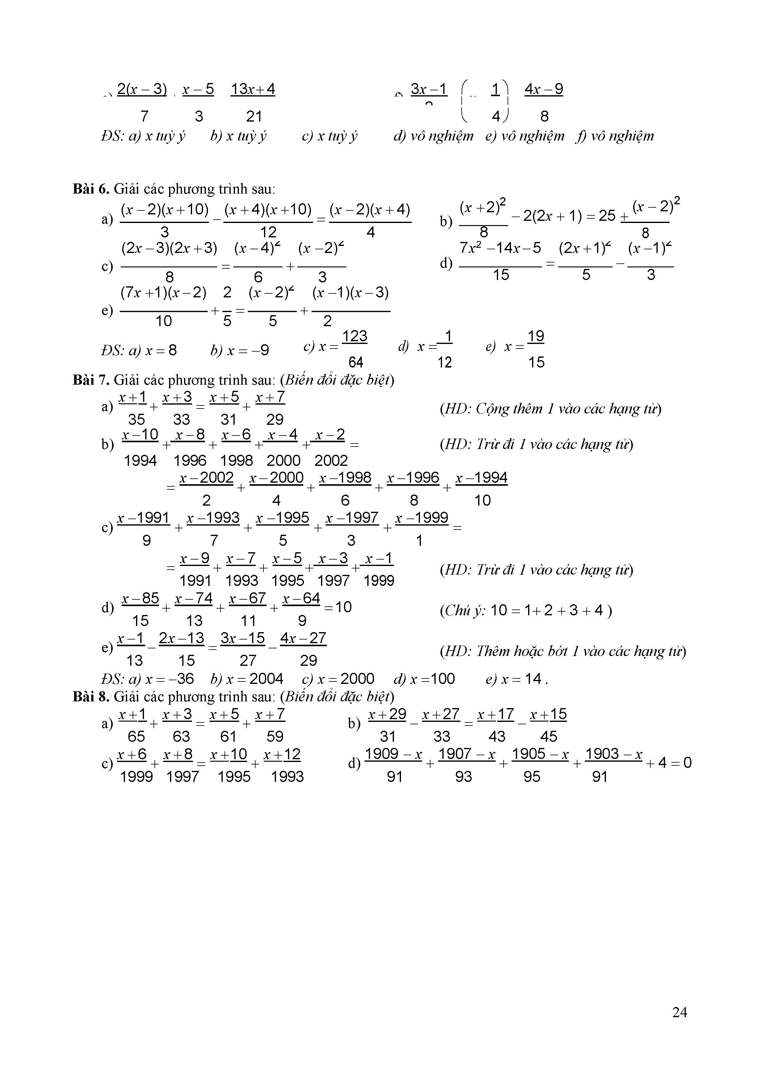 TOÁN 8 - CÁC DẠNG BÀI TẬP VỀ PHƯƠNG TRÌNH BẬC NHẤT MỘT ẨN