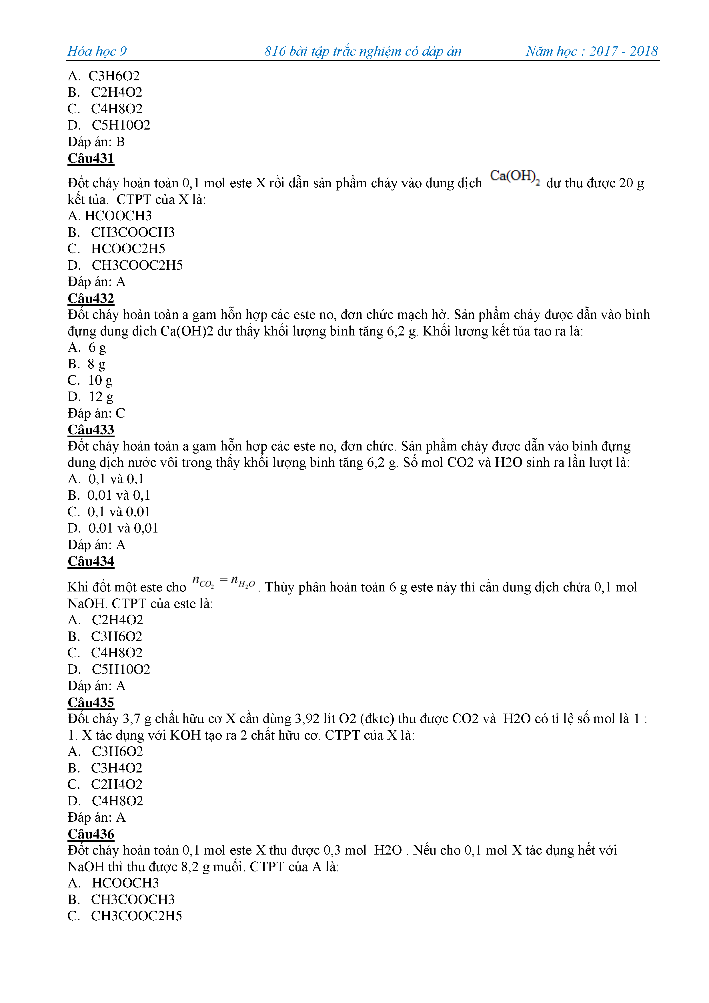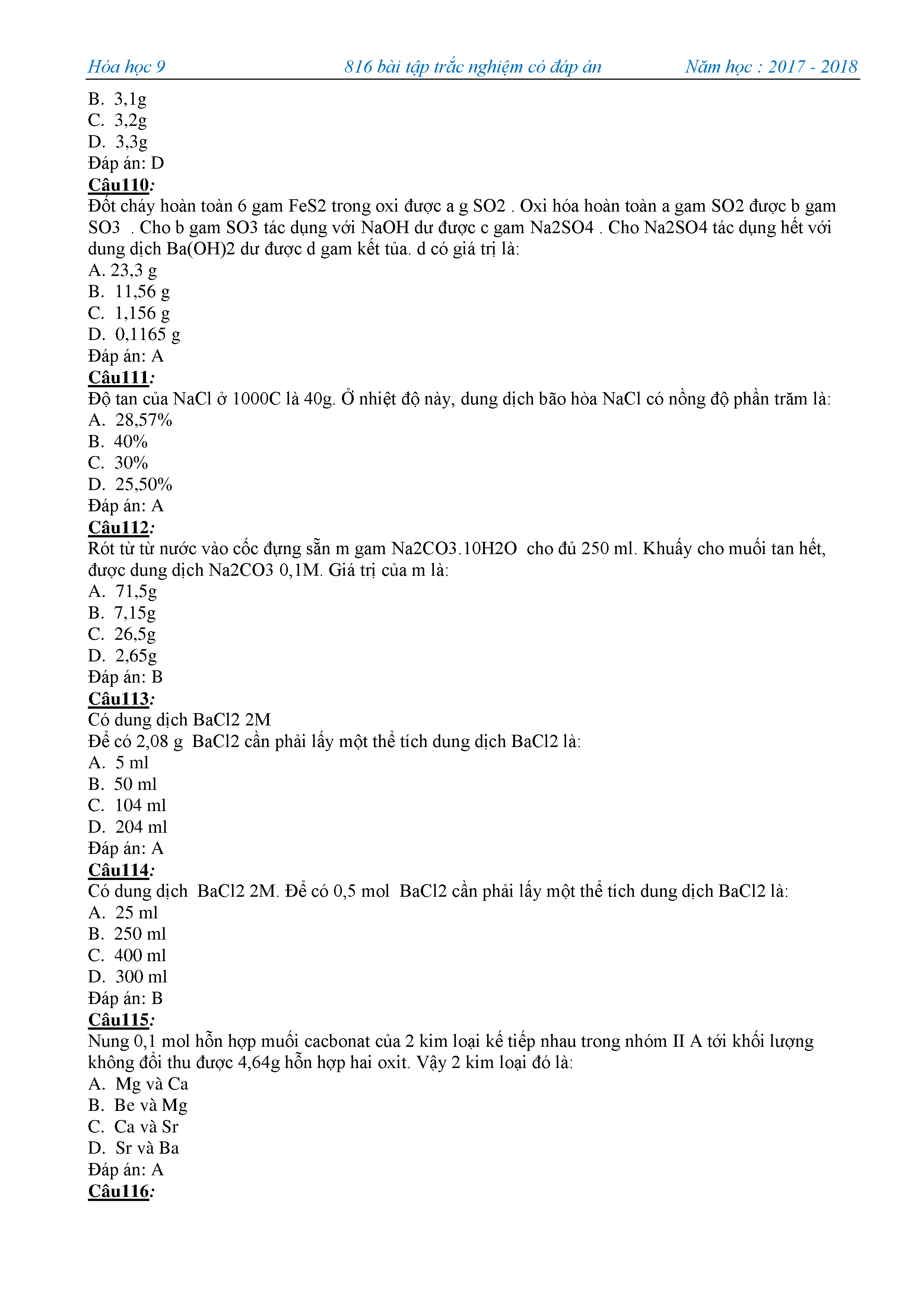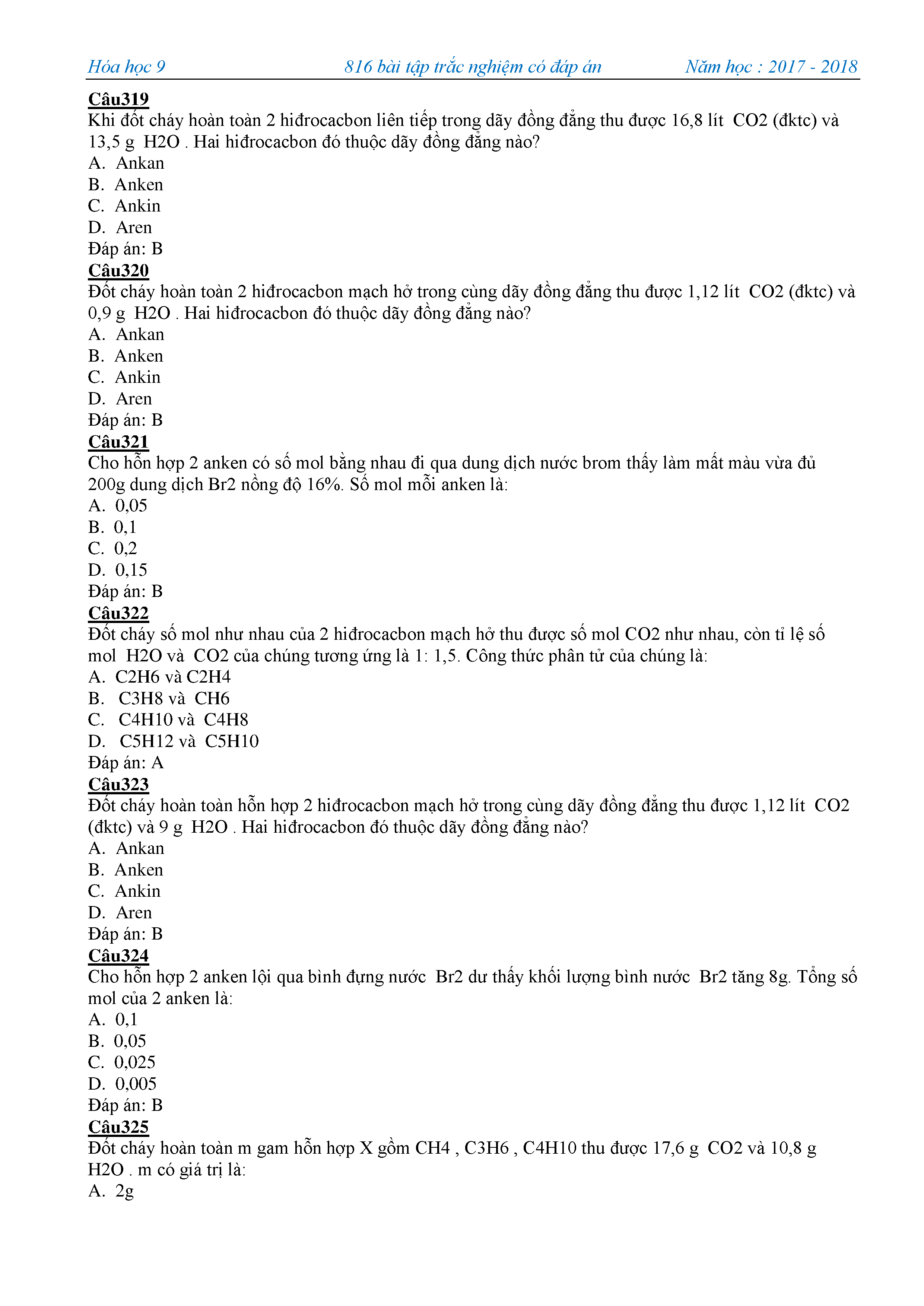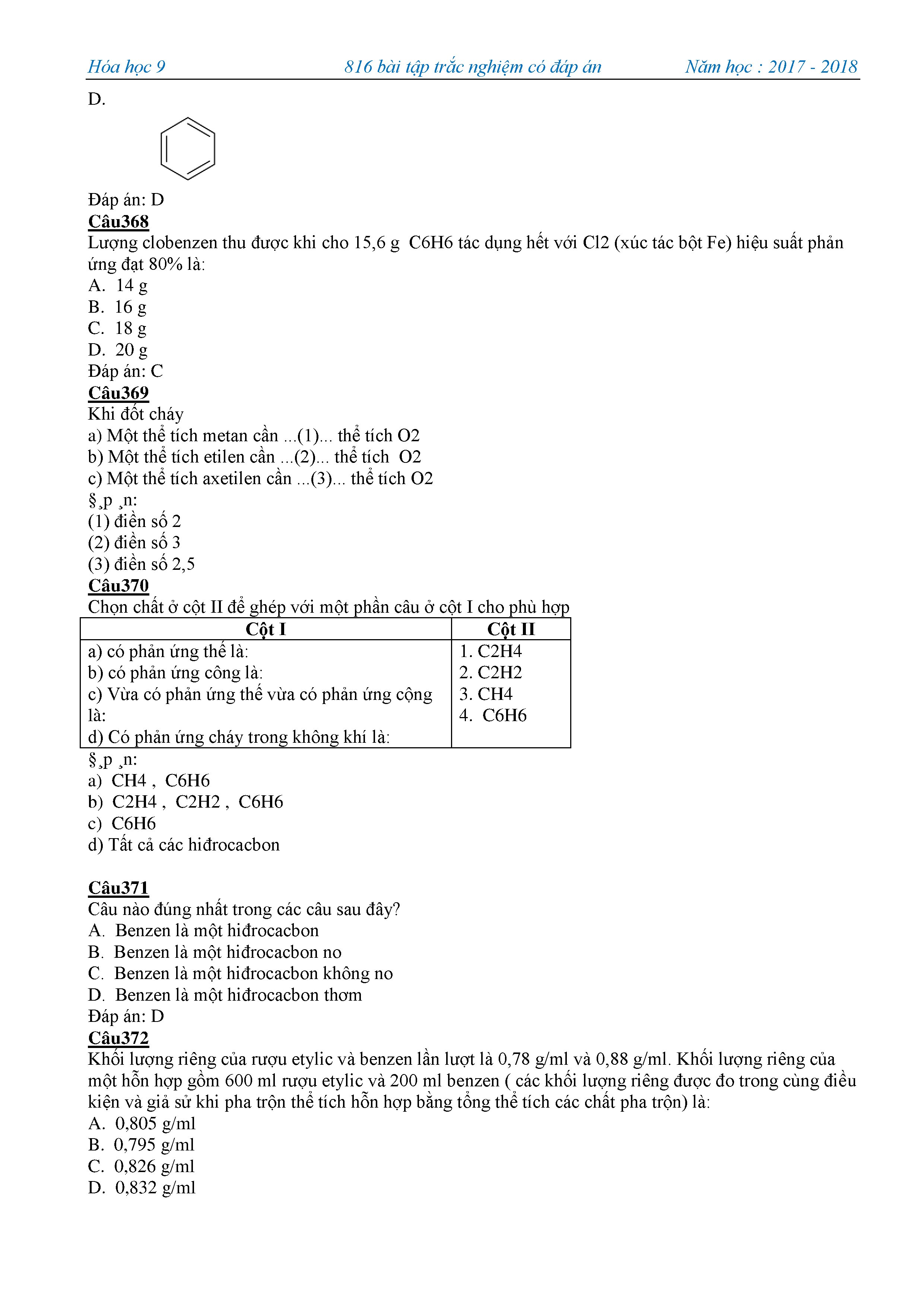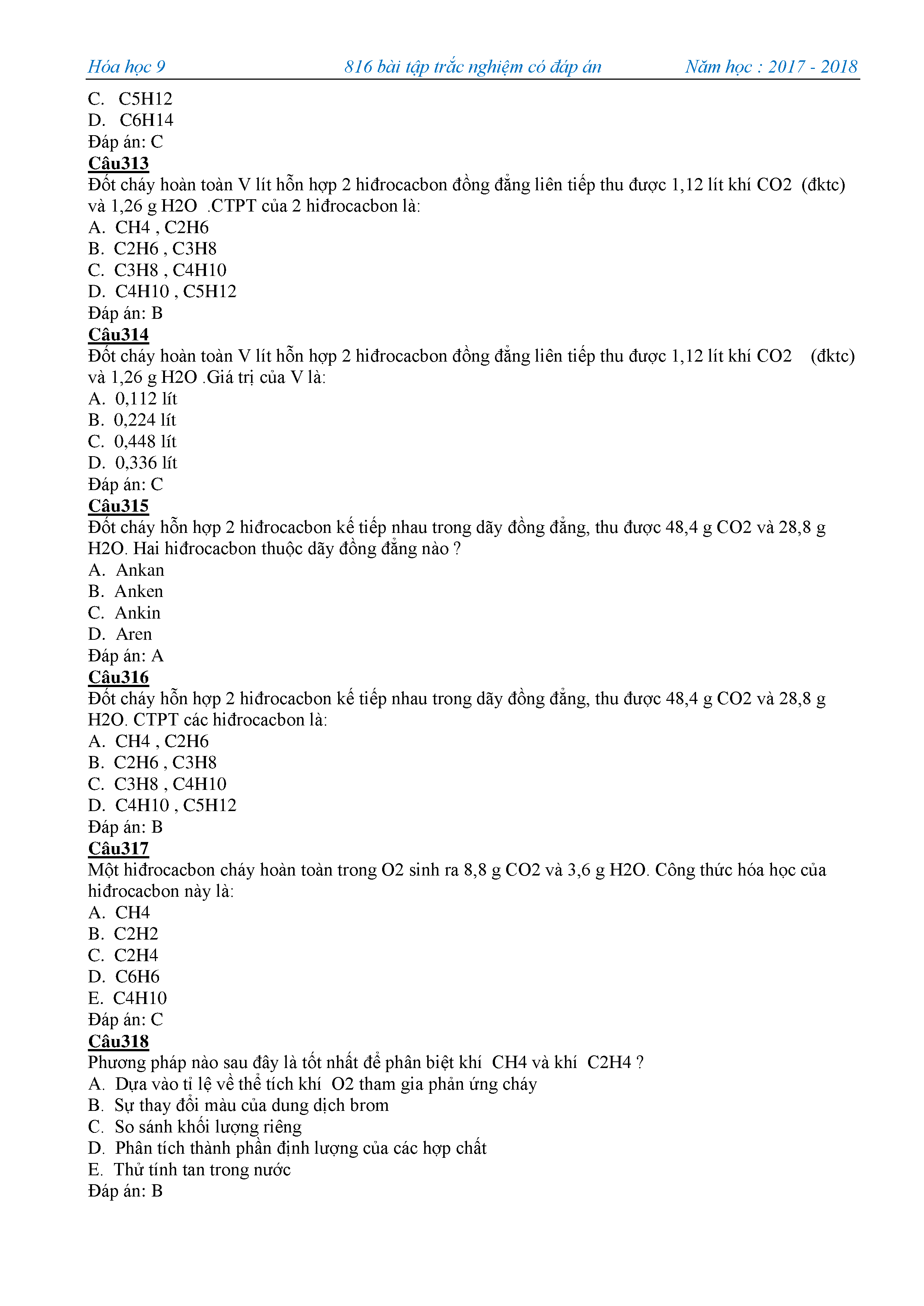 816 CÂU TRẮC NGHIỆM HÓA HỌC 9 (CÓ ĐÁP ÁN)