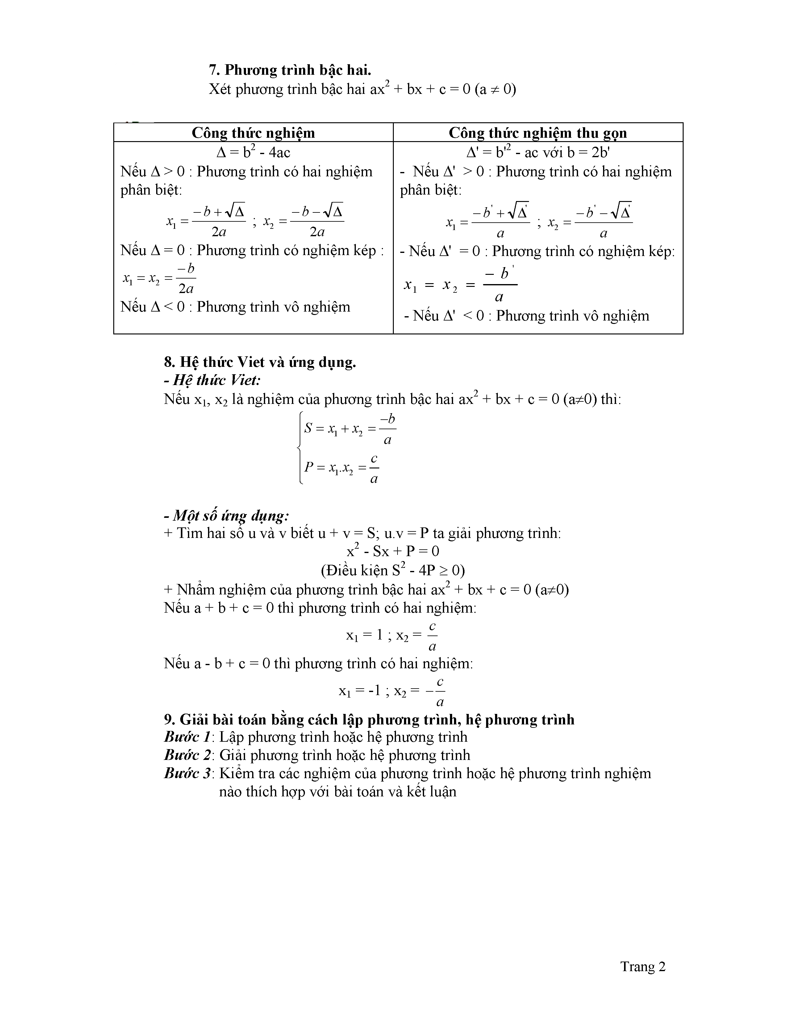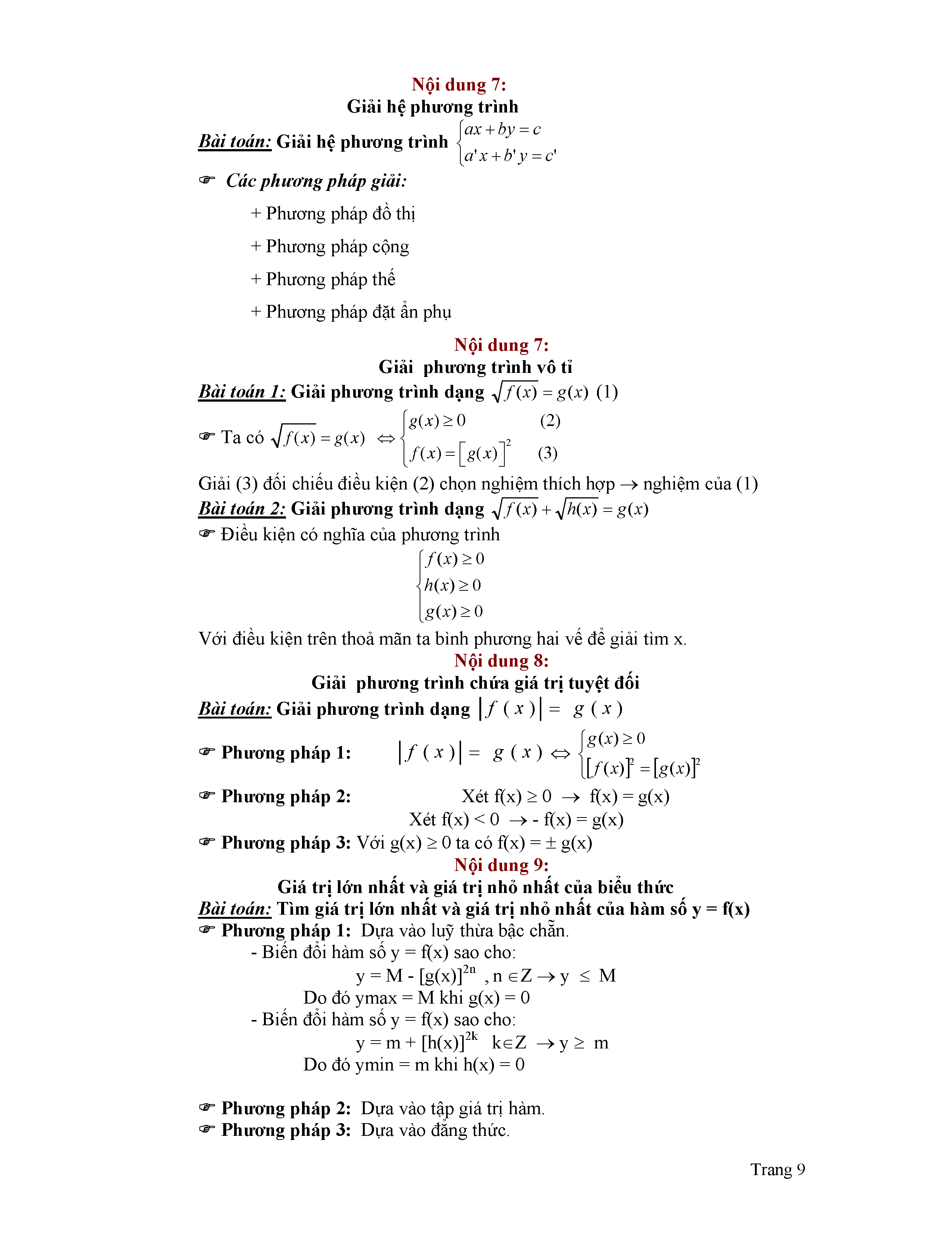 TỔNG HỢP KIẾN THỨC VÀ CÁC DẠNG BÀI TẬP - TOÁN 9