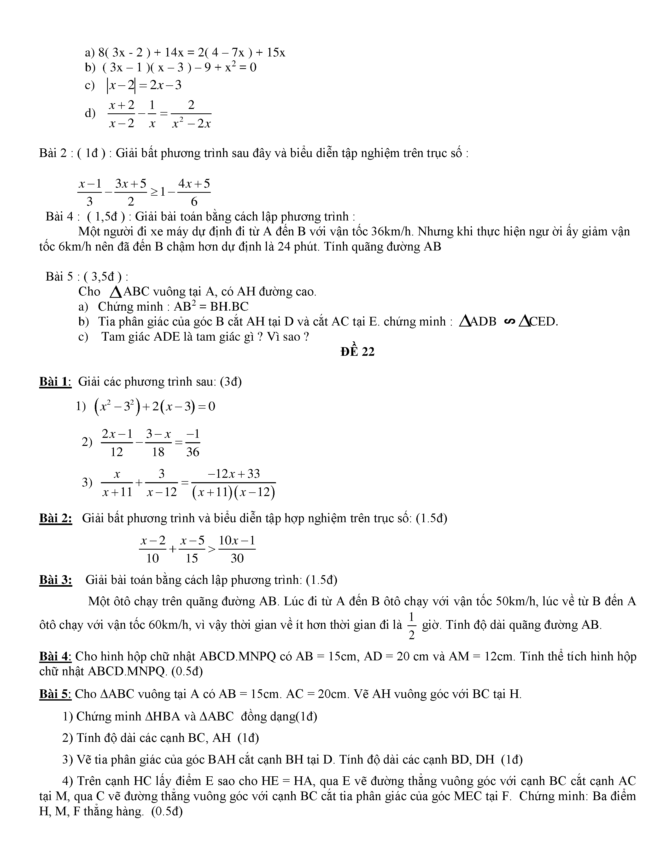 TUYỂN TẬP 27 ĐỀ THI MÔN TOÁN LỚP 8 (CÓ ĐÁP ÁN)