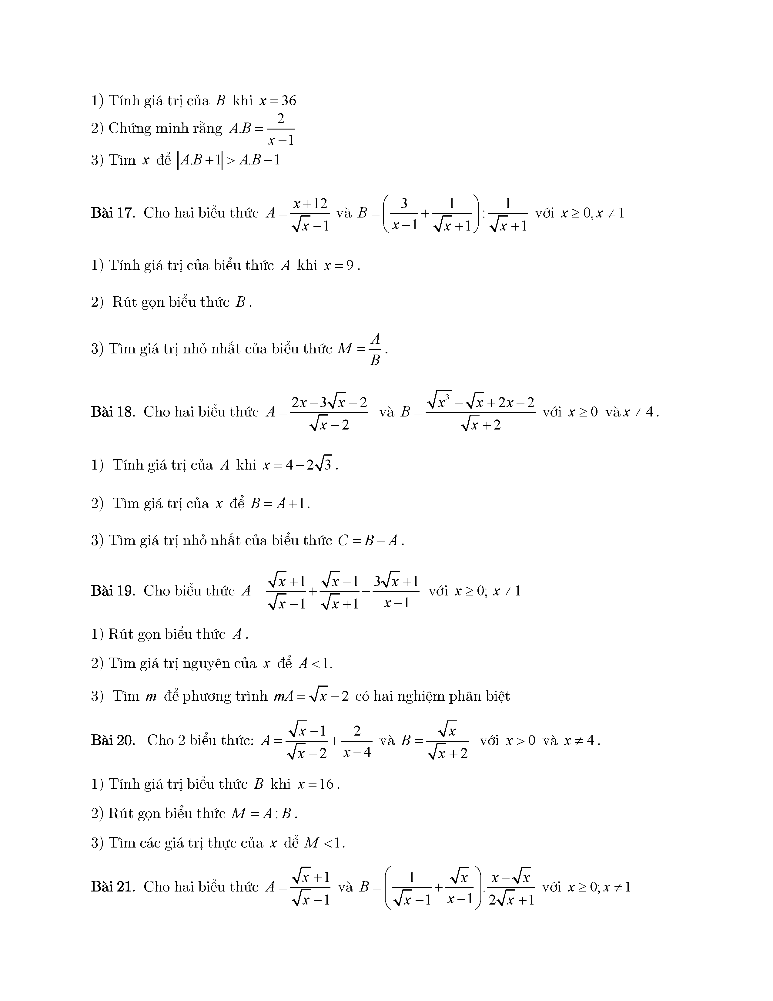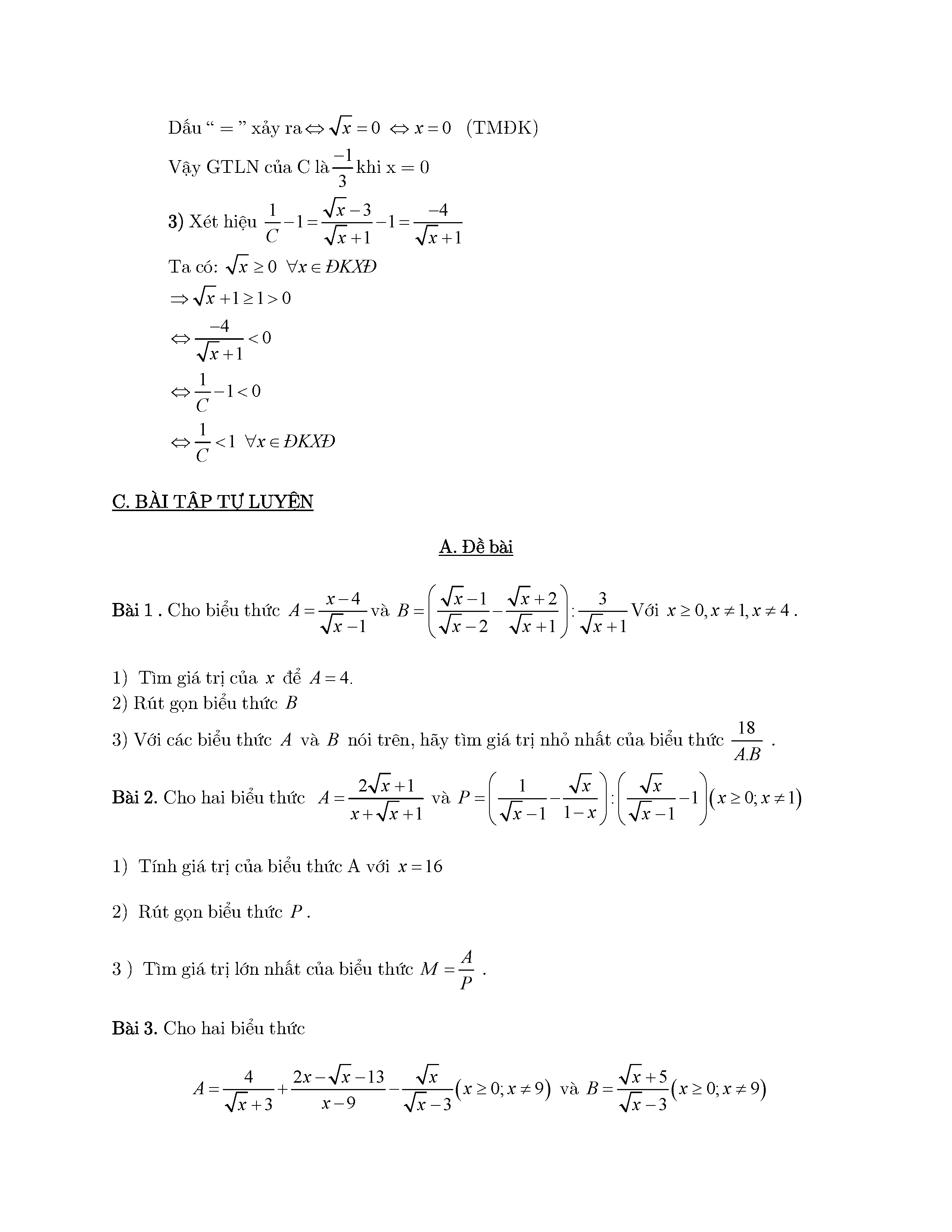 TOÁN 9: CHUYÊN ĐỀ RÚT GỌN BIỂU THỨC VÀ CÁC DẠNG TOÁN LIÊN QUAN
