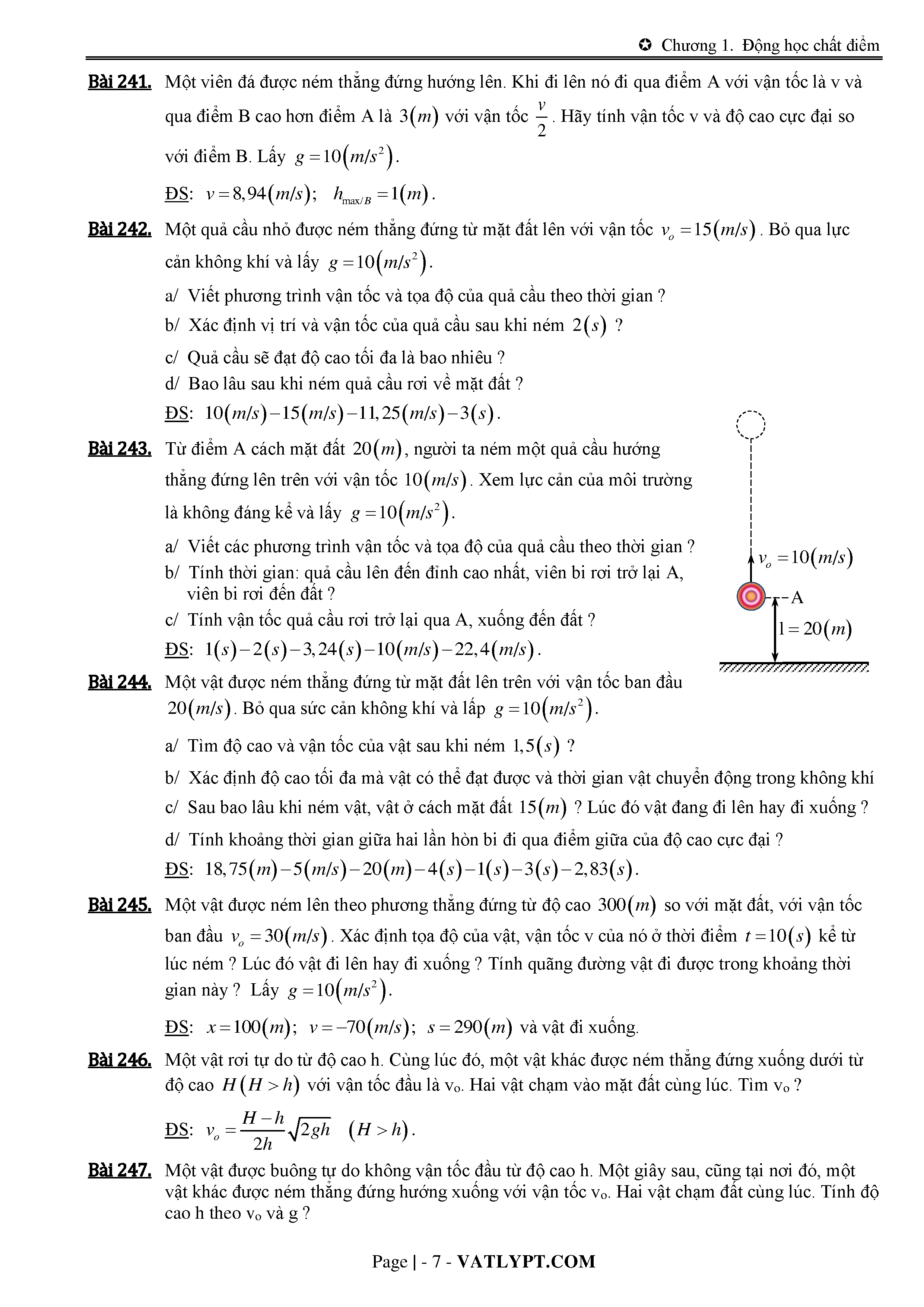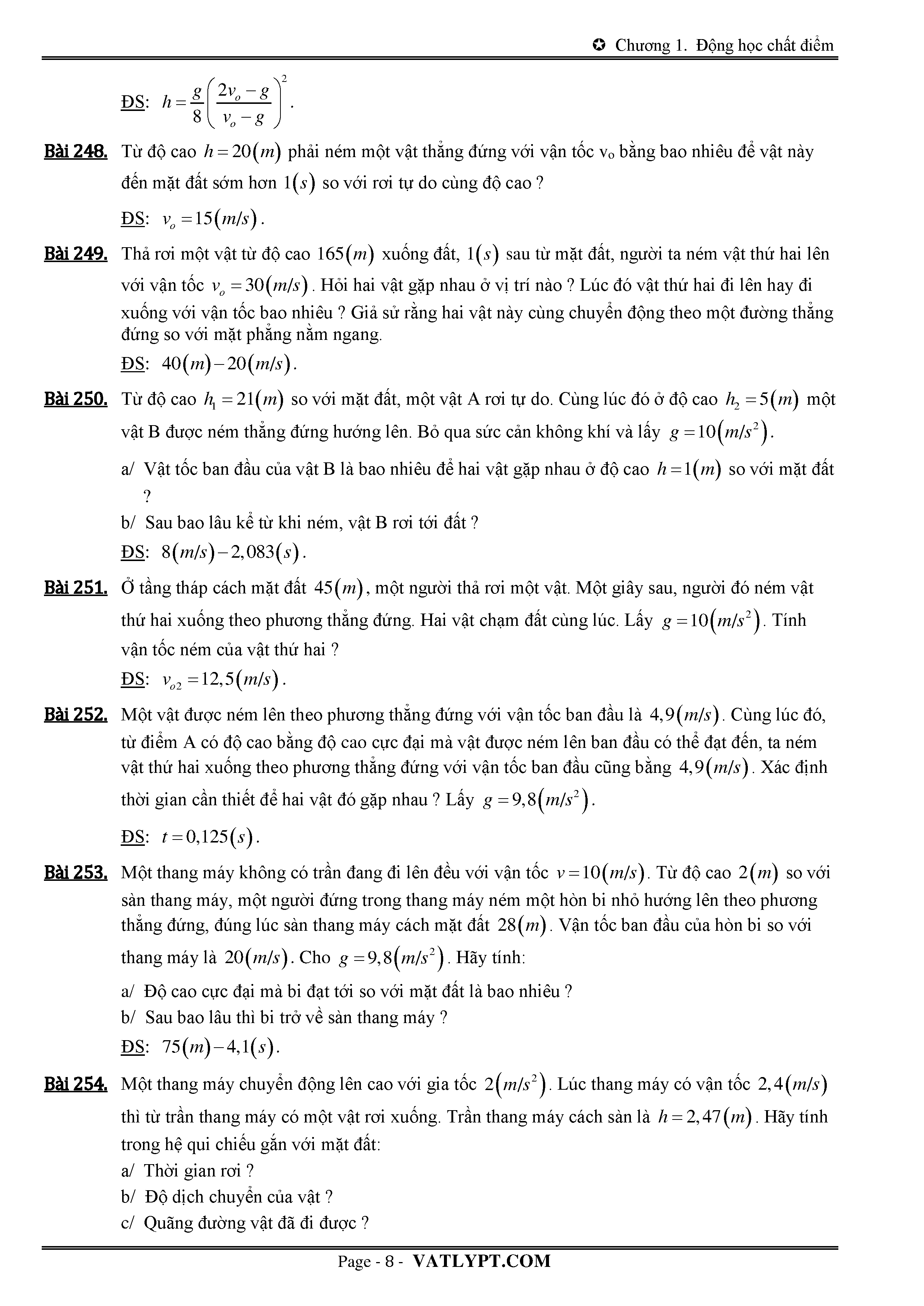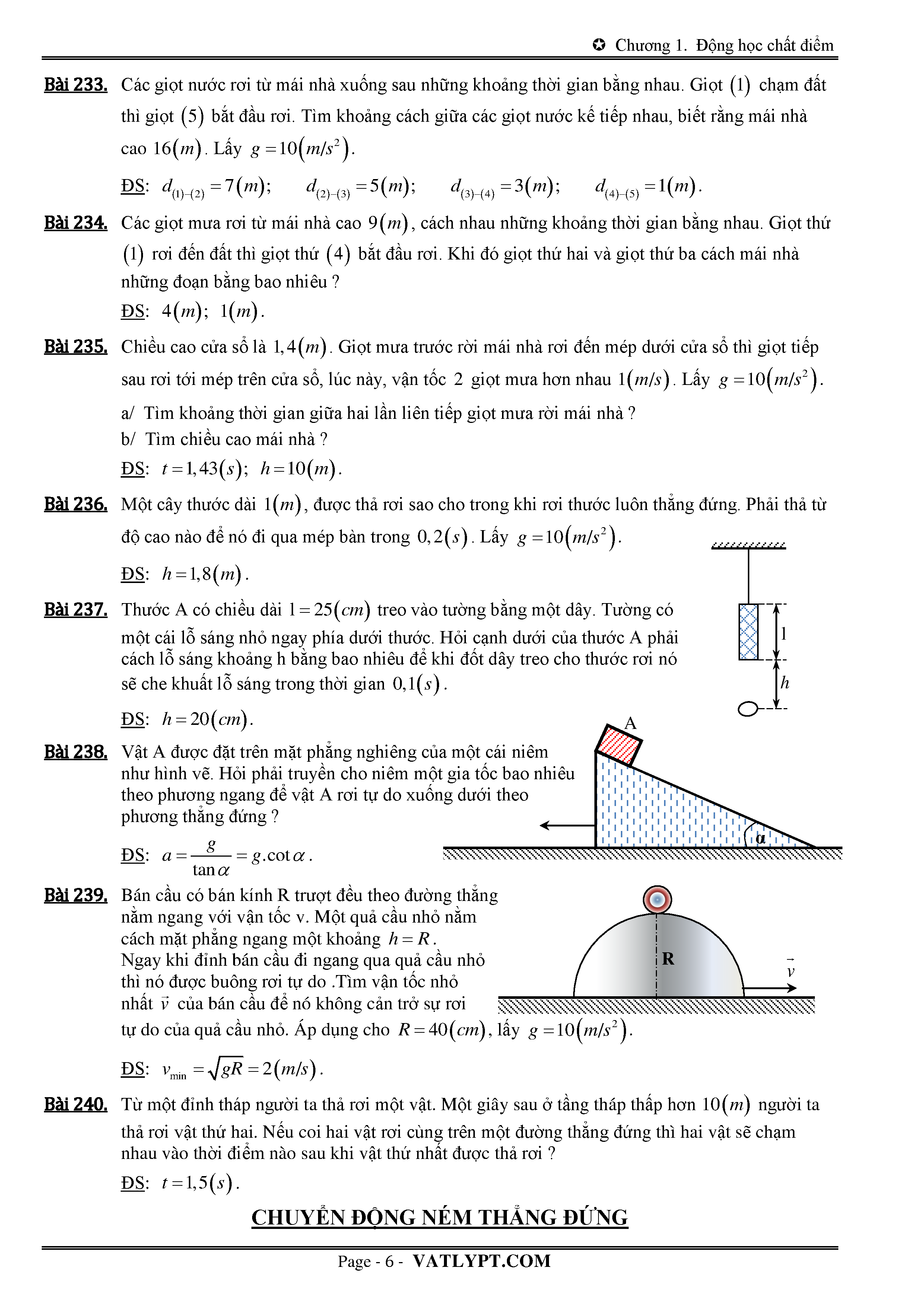 Lý thuyết và bài tập về chuyển động rơi tự do và chuyển động ném thắng đứng