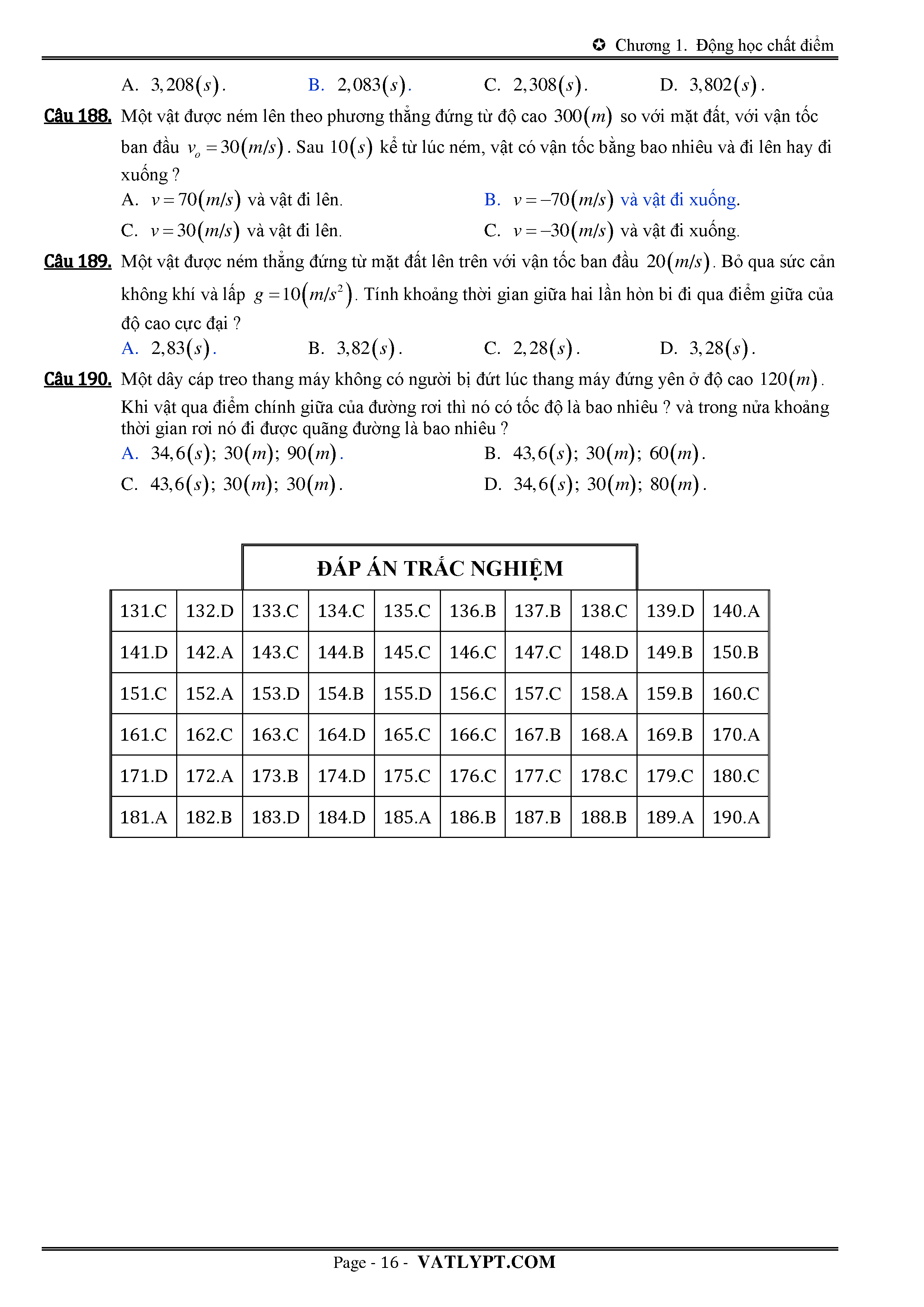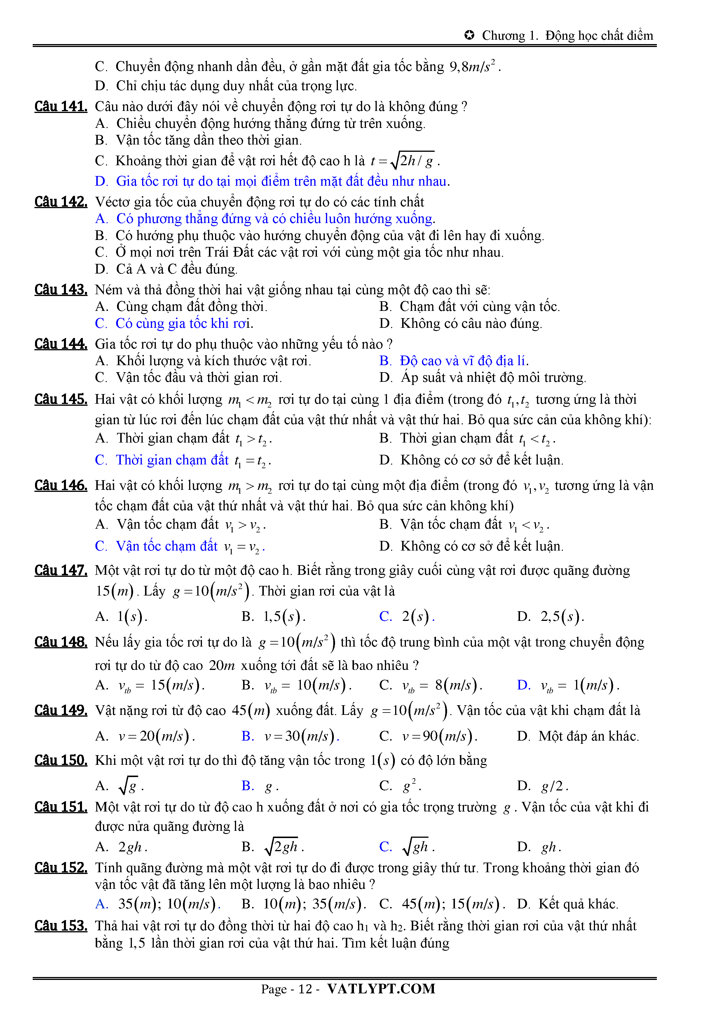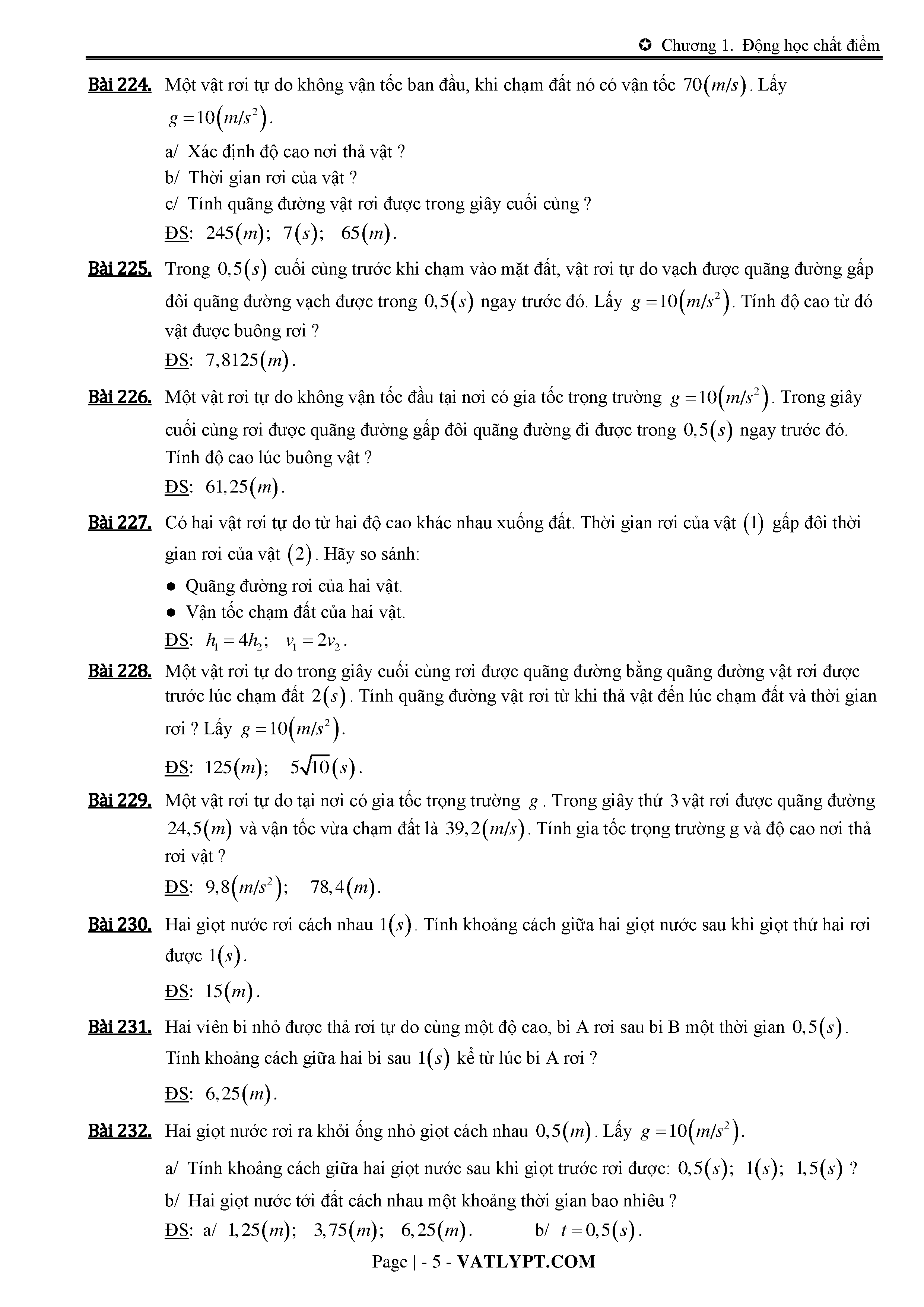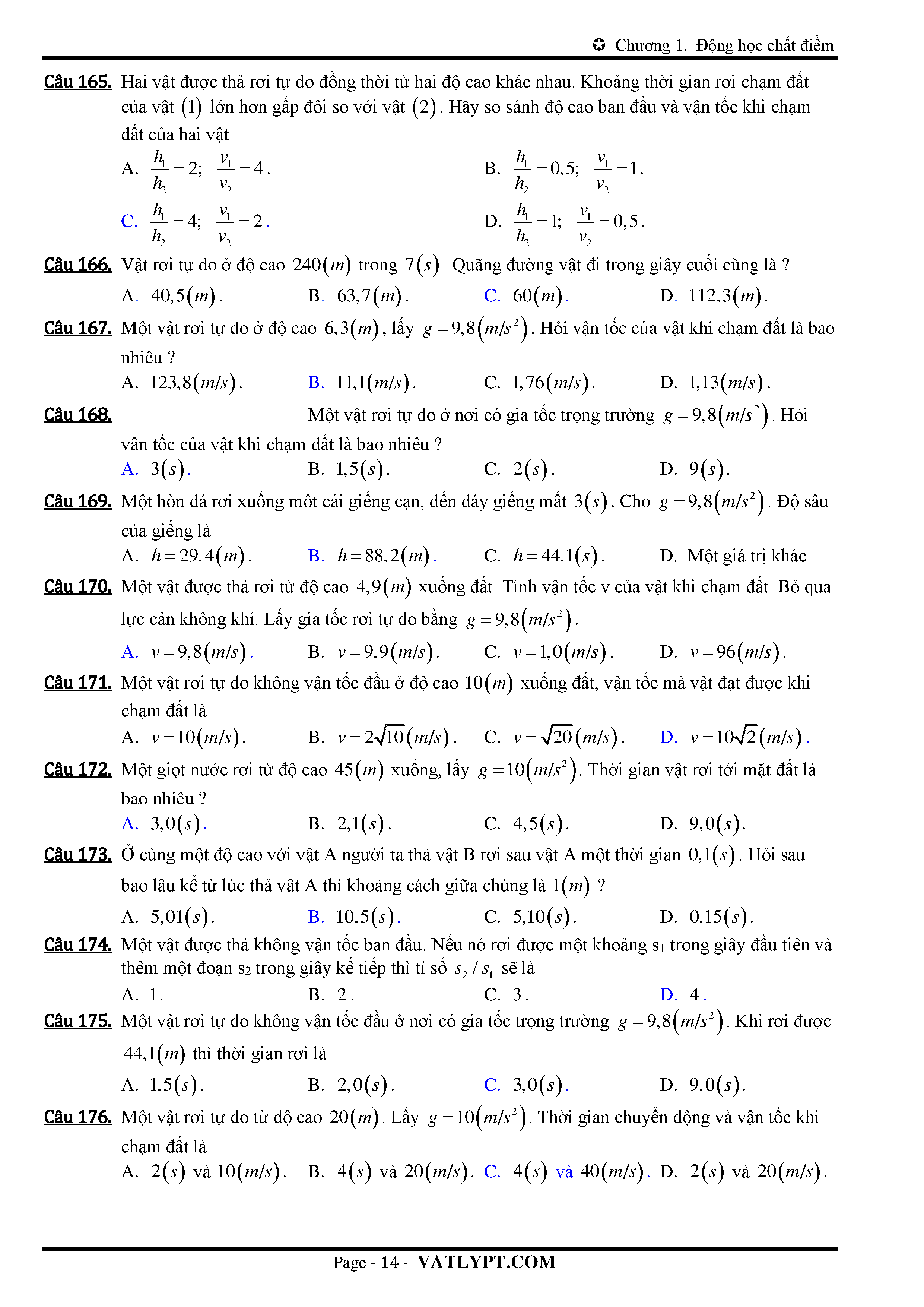 Lý thuyết và bài tập về chuyển động rơi tự do và chuyển động ném thắng đứng