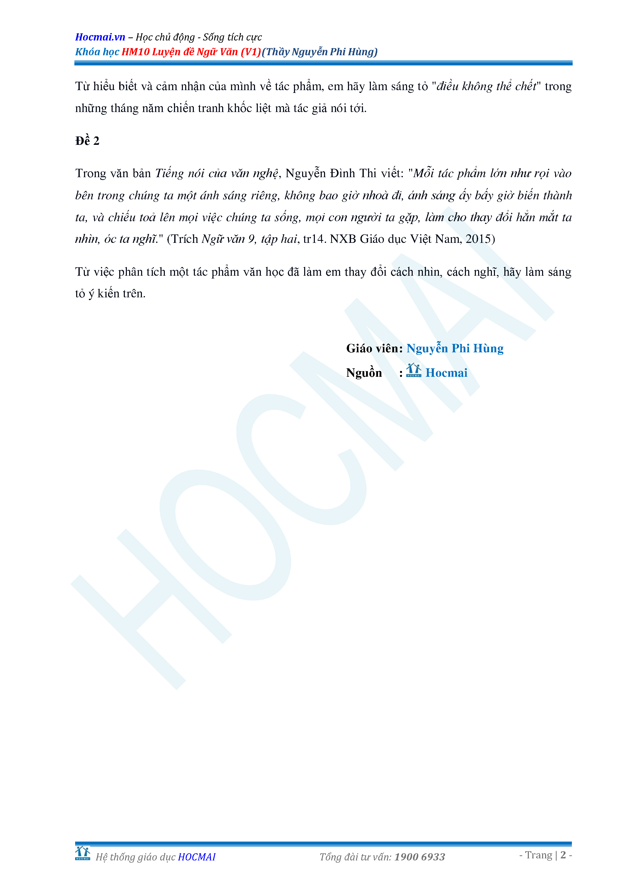 Đề HM10 Luyện đề Ngữ Văn (V1) - Số 01