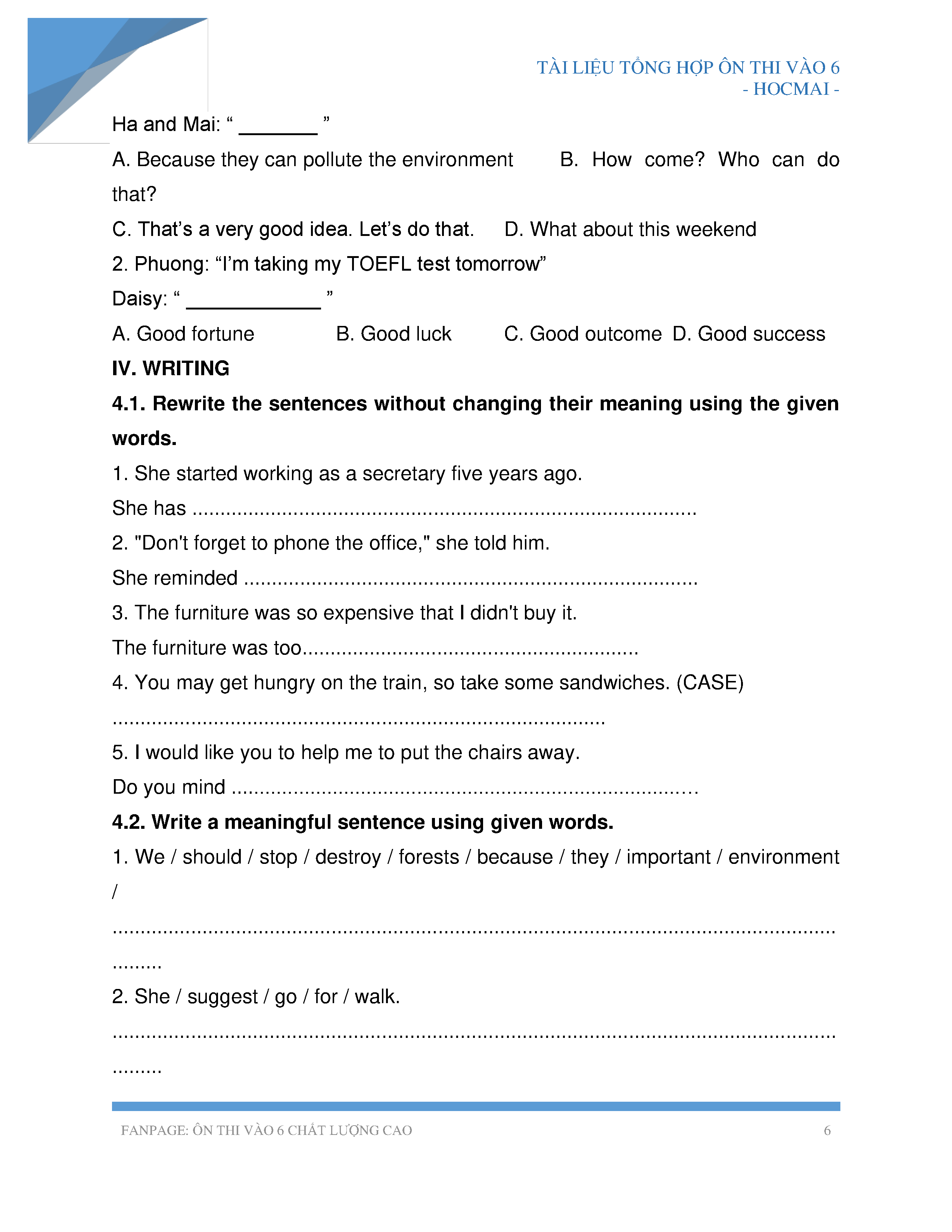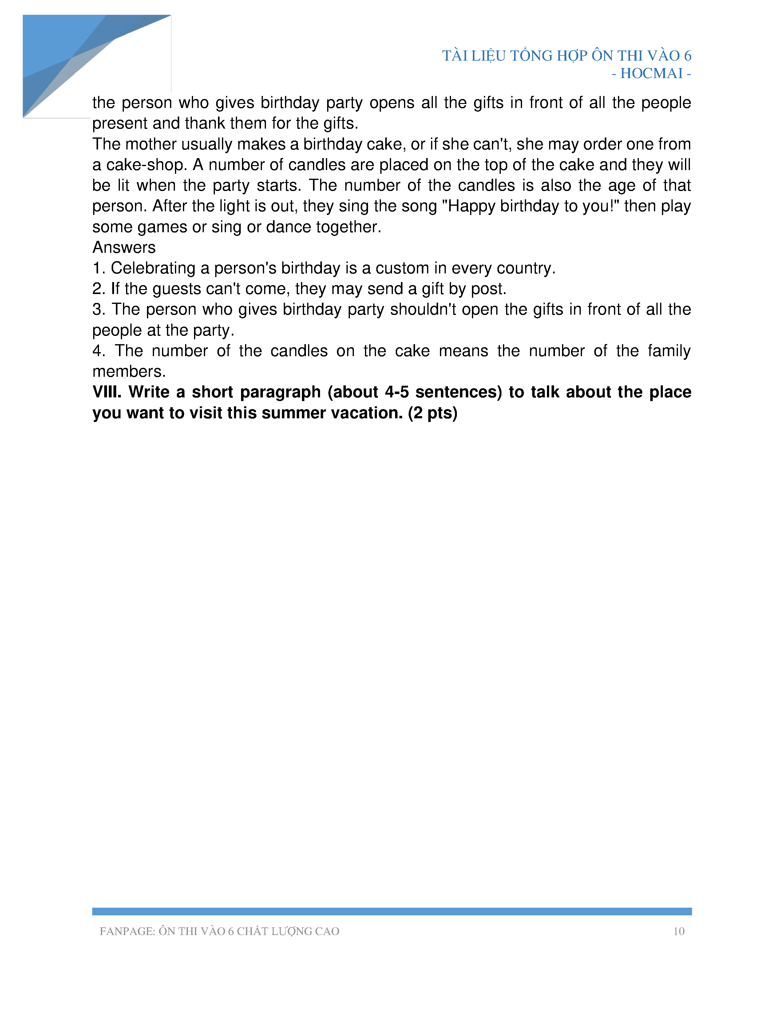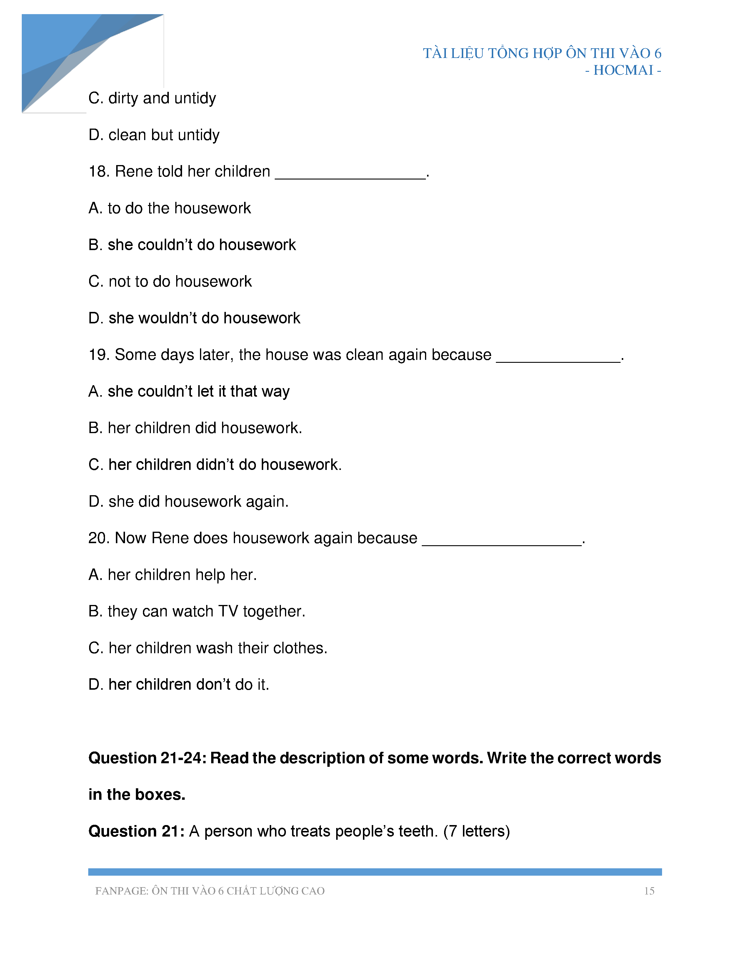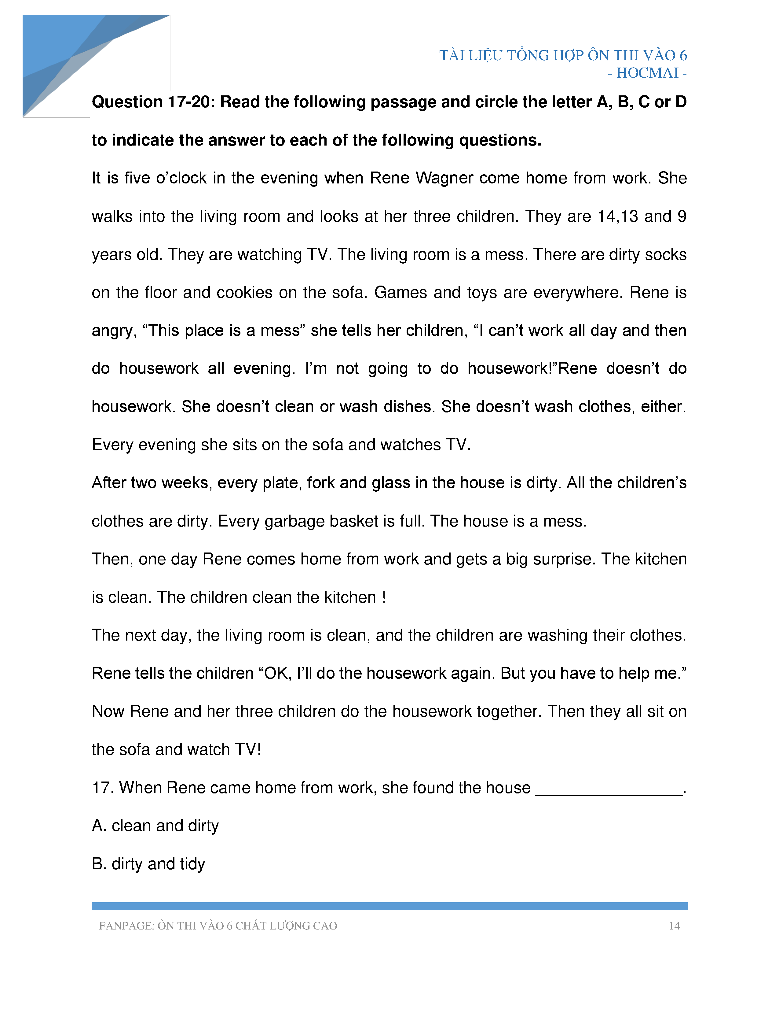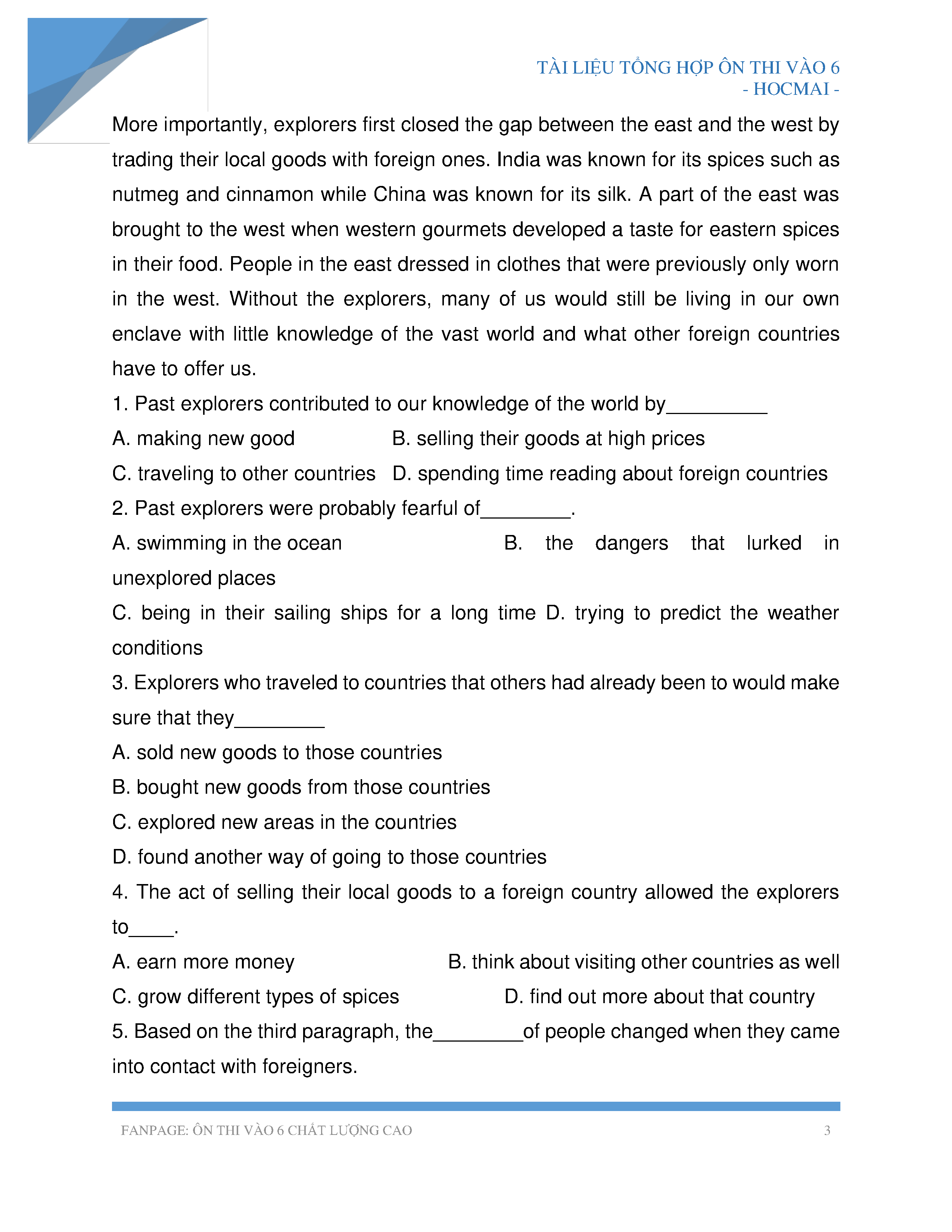BỘ ĐỀ THI VÀO 6 CÁC TRƯỜNG NĂM 2019-2020 (3 ĐỀ) MÔN TIẾNG ANH