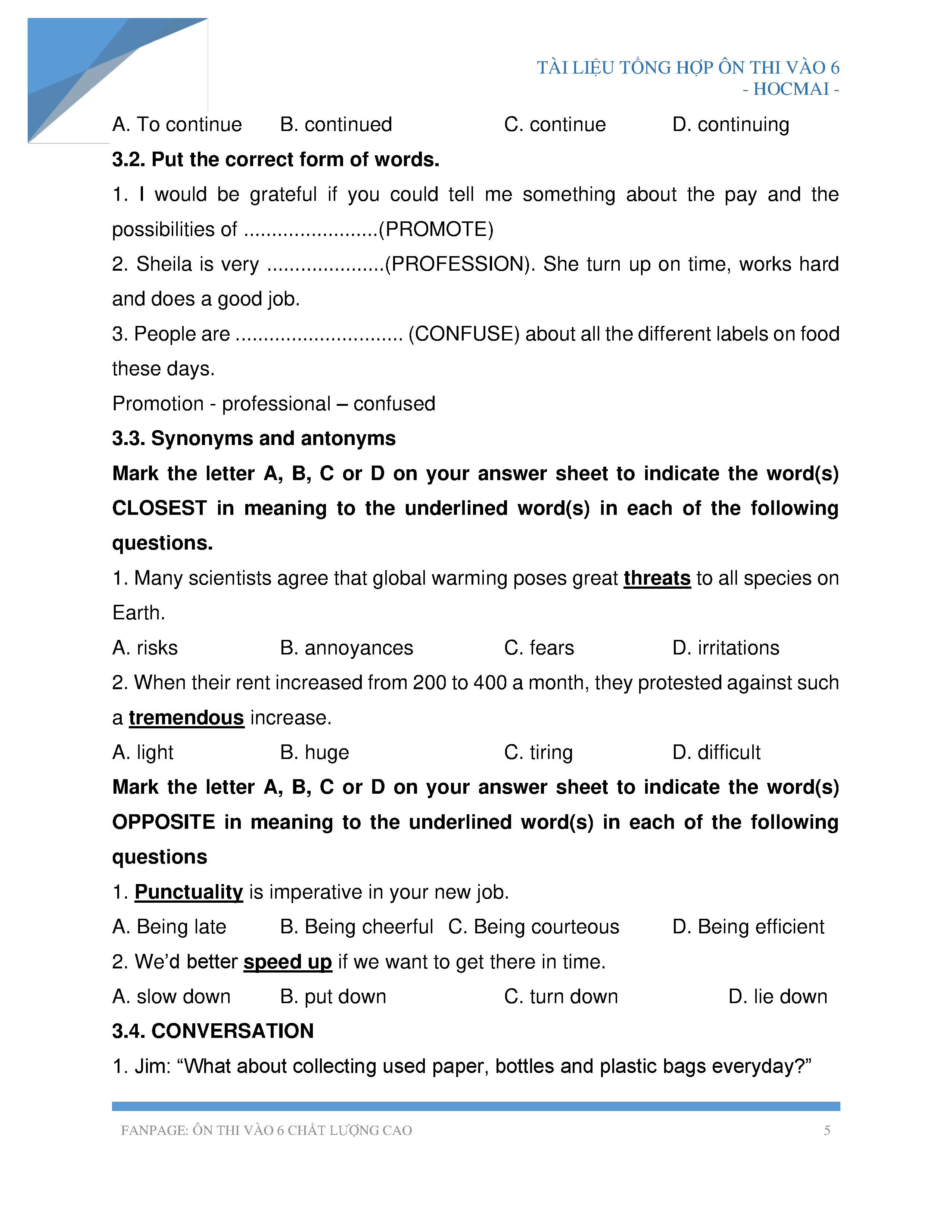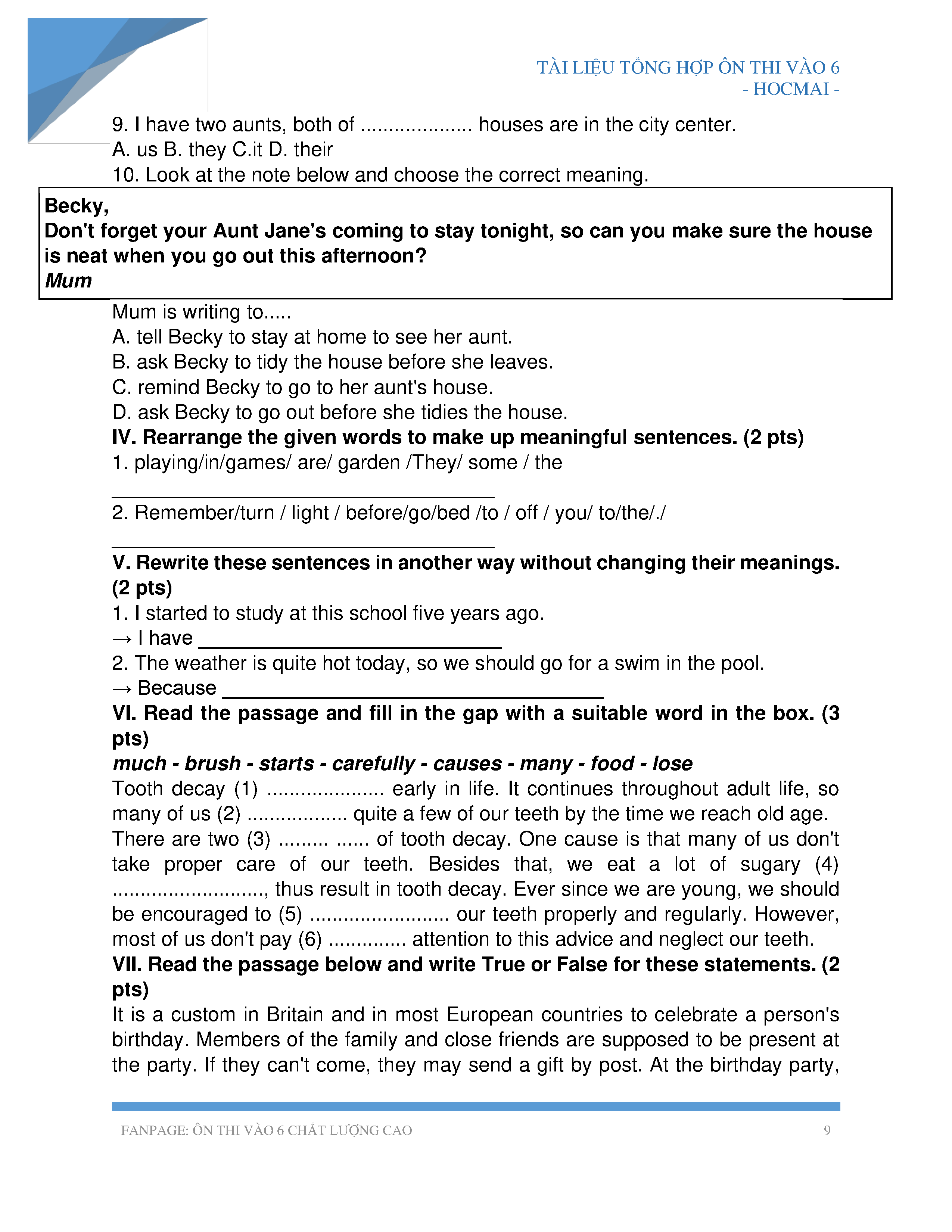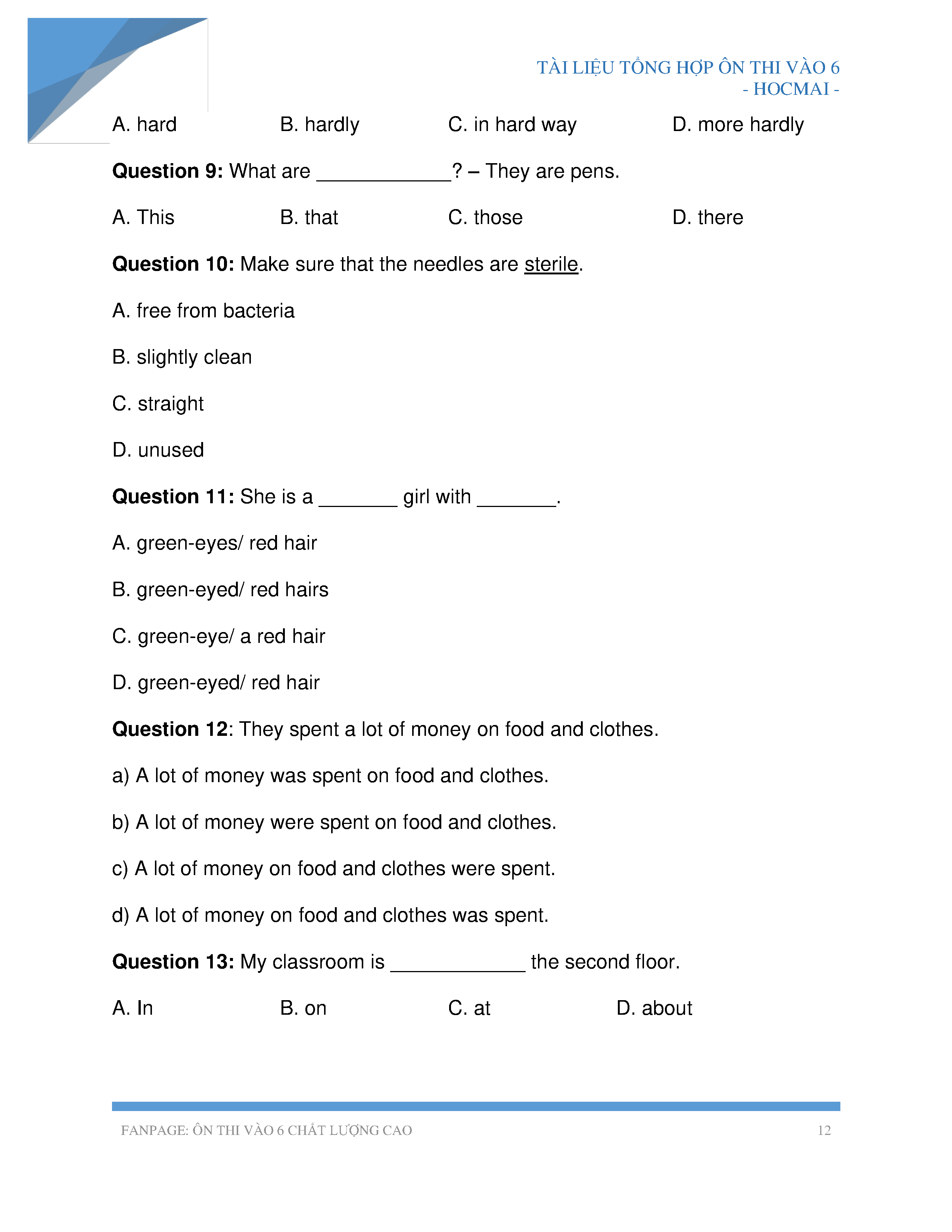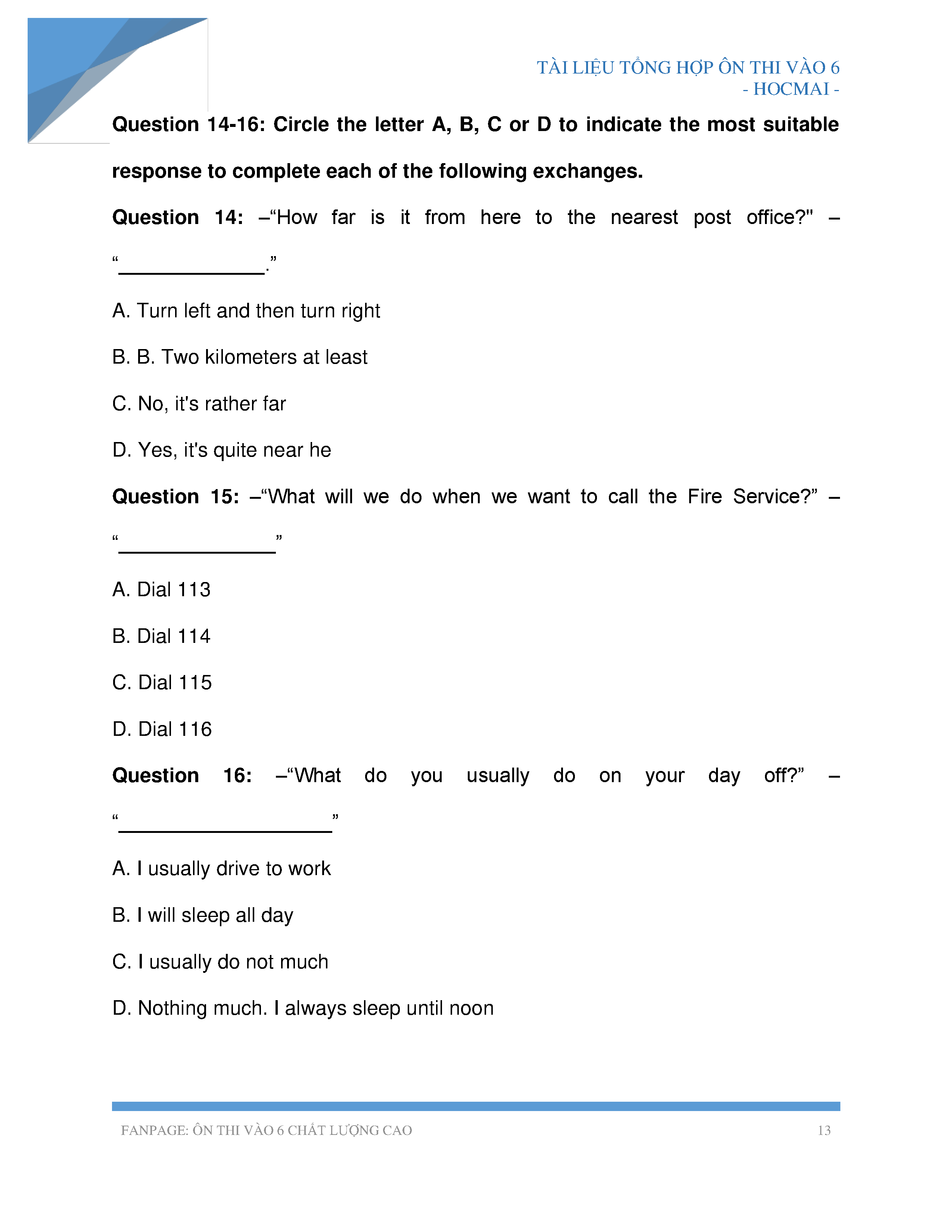 BỘ ĐỀ THI VÀO 6 CÁC TRƯỜNG NĂM 2019-2020 (3 ĐỀ) MÔN TIẾNG ANH