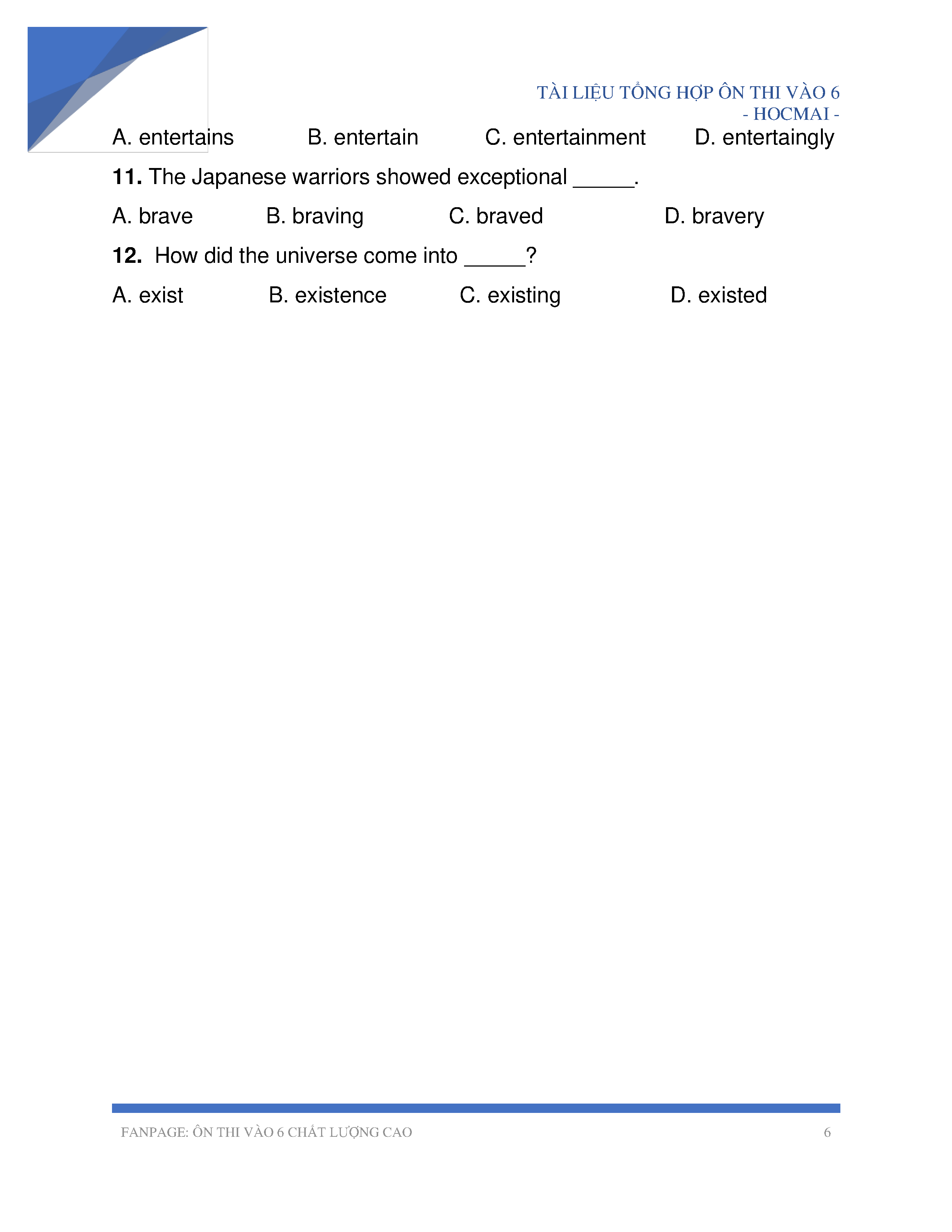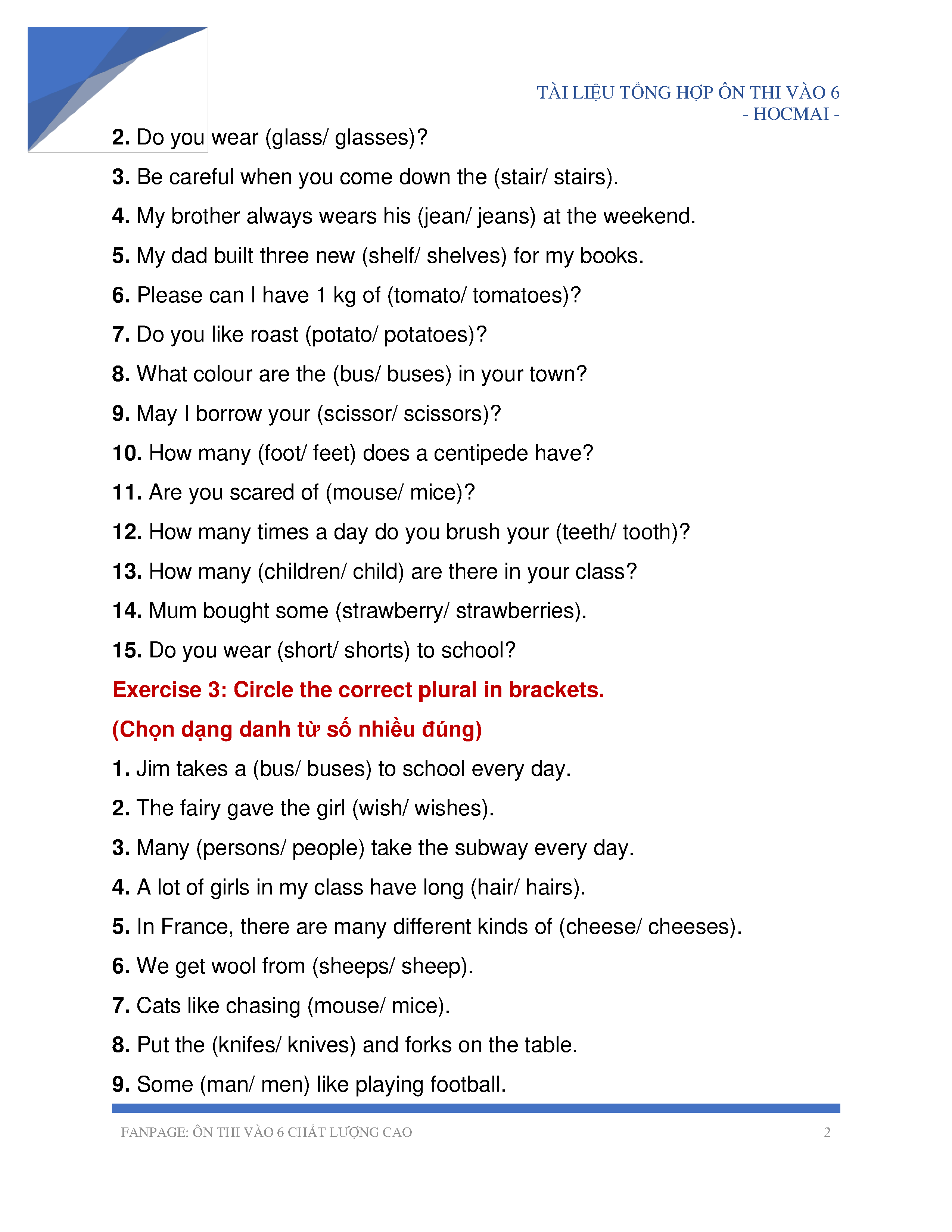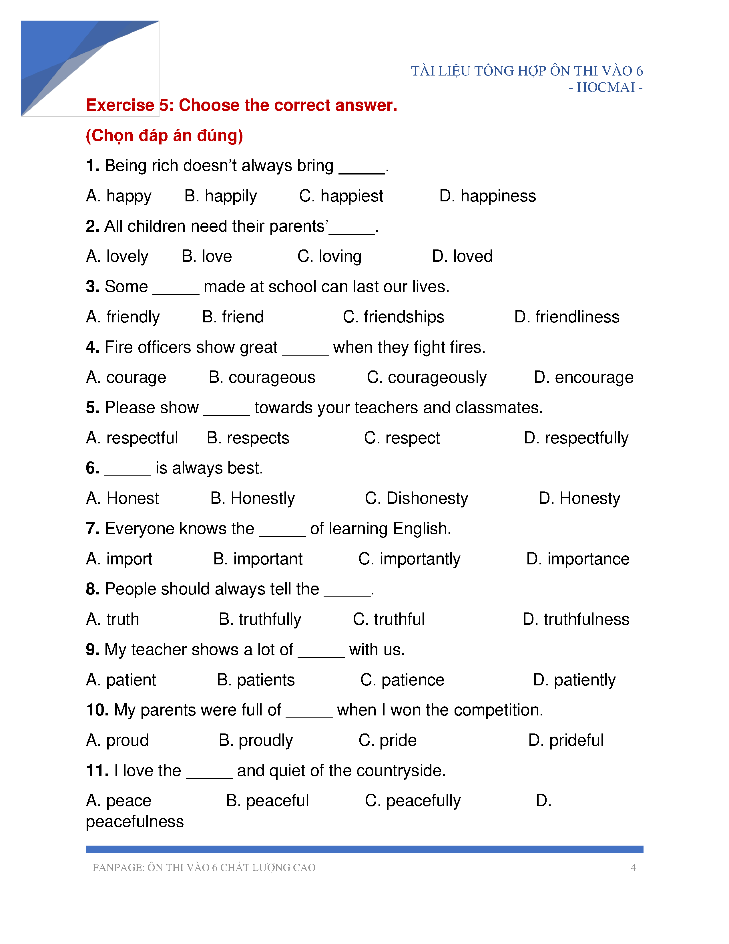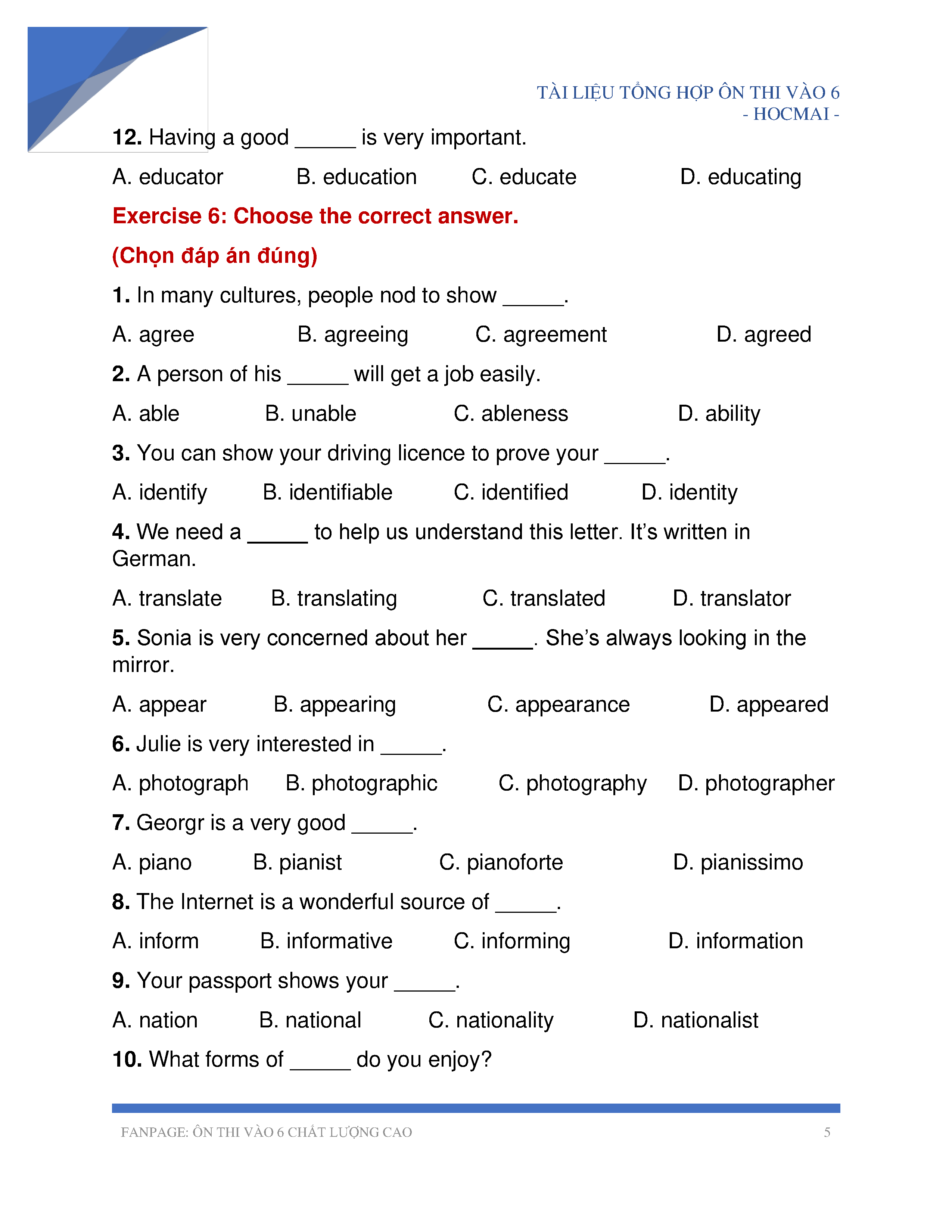 6 BÀI TẬP ÔN LUYỆN TIẾNG ANH VỀ NOUNS (DANH TỪ) CÓ ĐÁP ÁN CHI TIẾT
