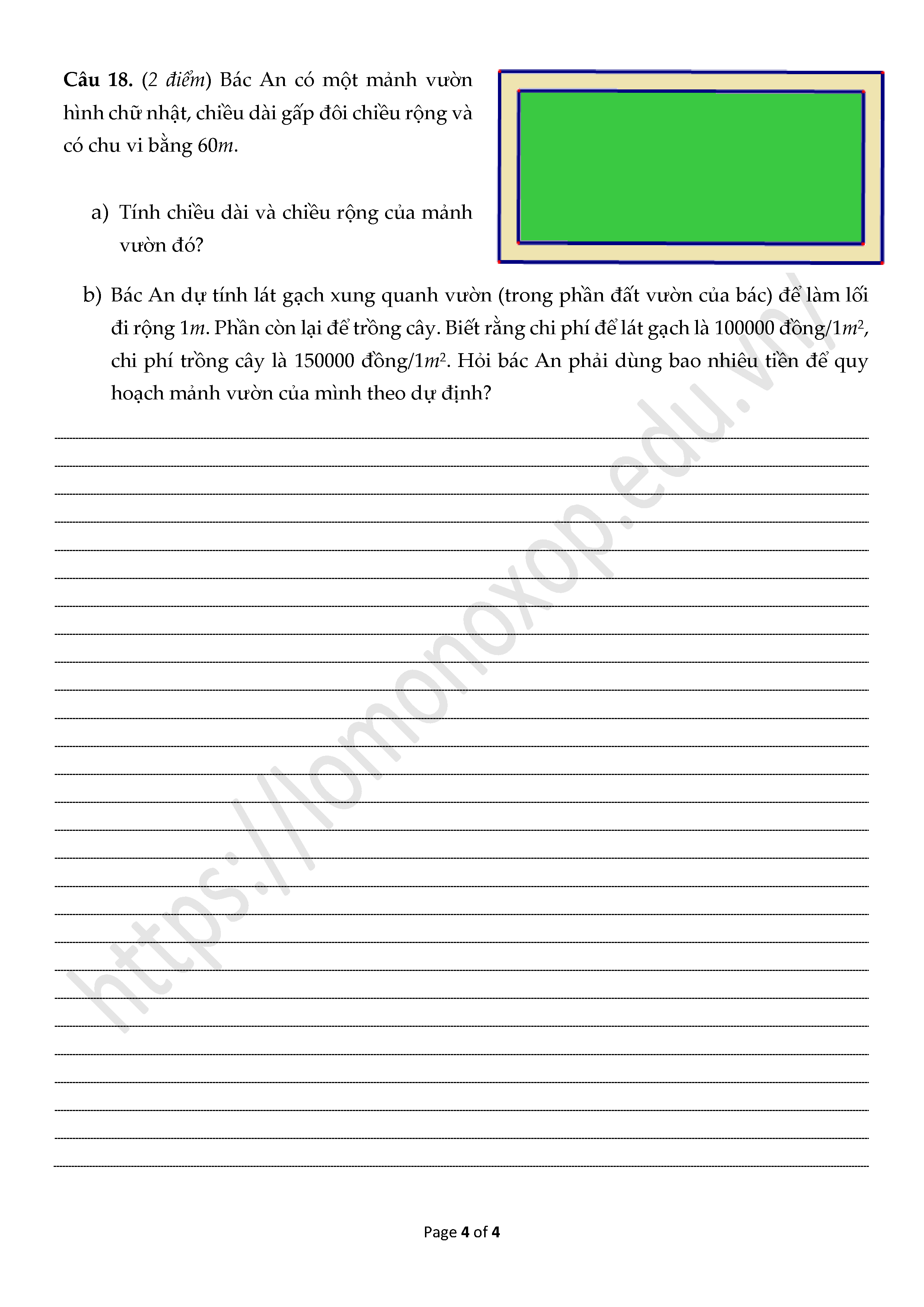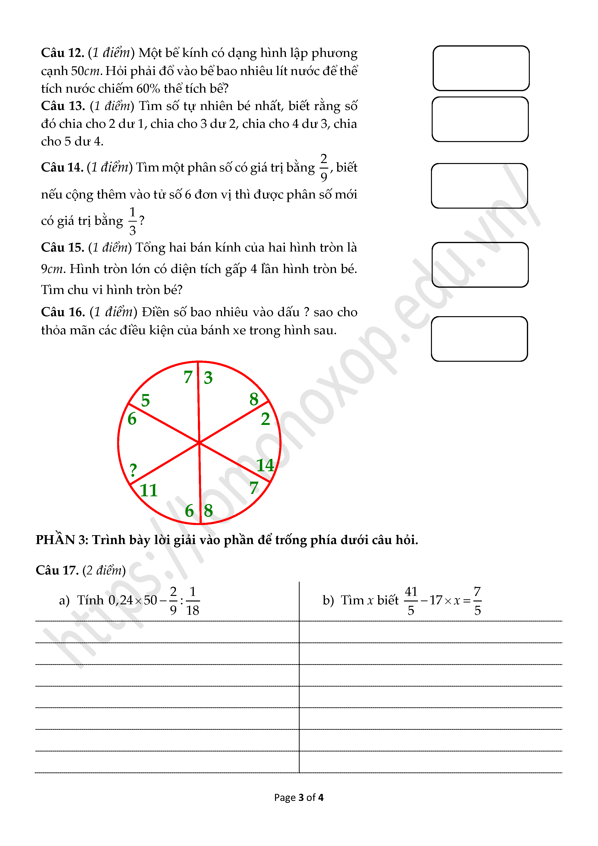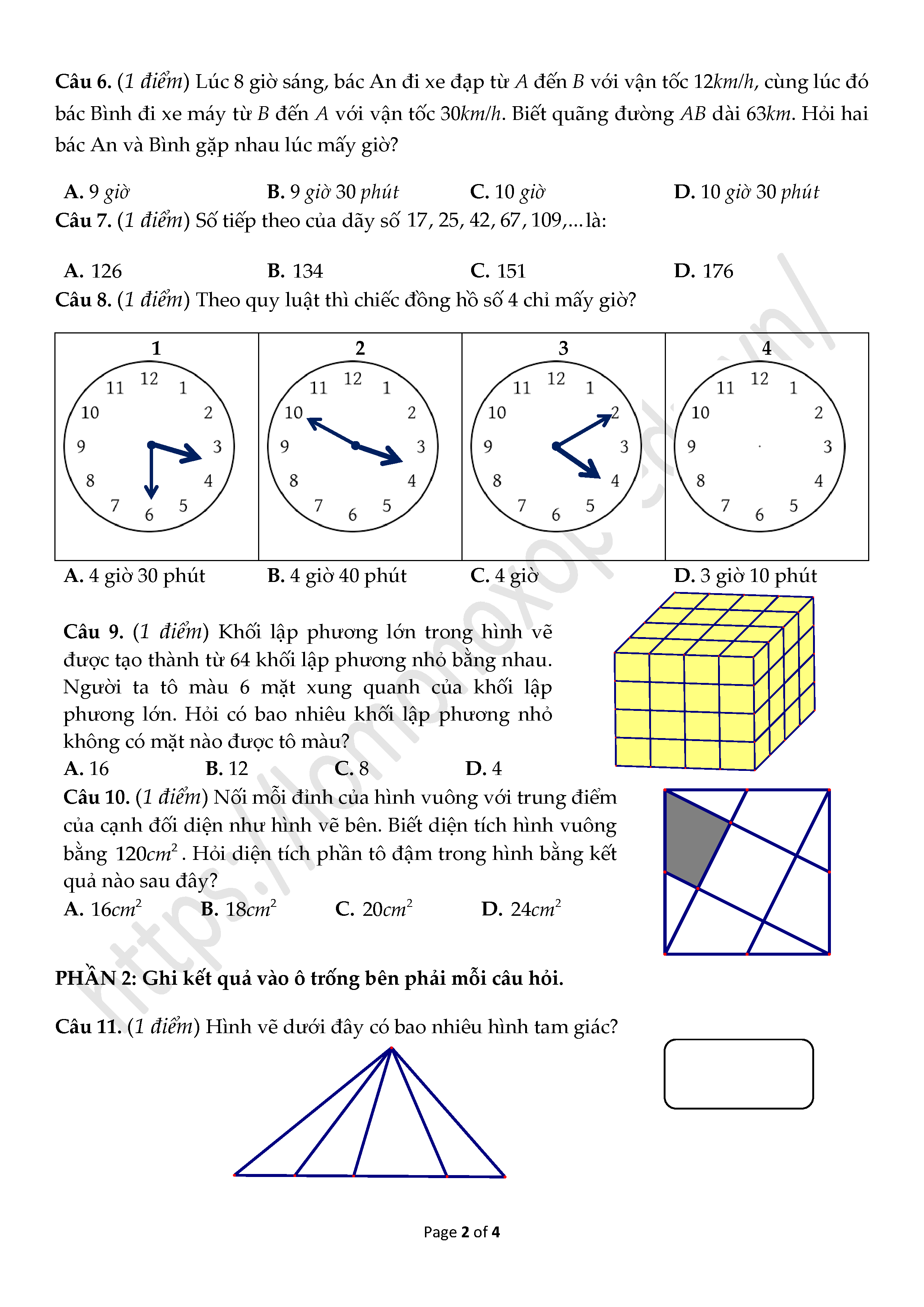 ĐỀ MINH HỌA KHẢO SÁT NĂNG LỰC VÀO LỚP 6 trường THCS & THPT LôMôNÔXốp NĂM HỌC 2020 – 2021 MÔN TOÁN