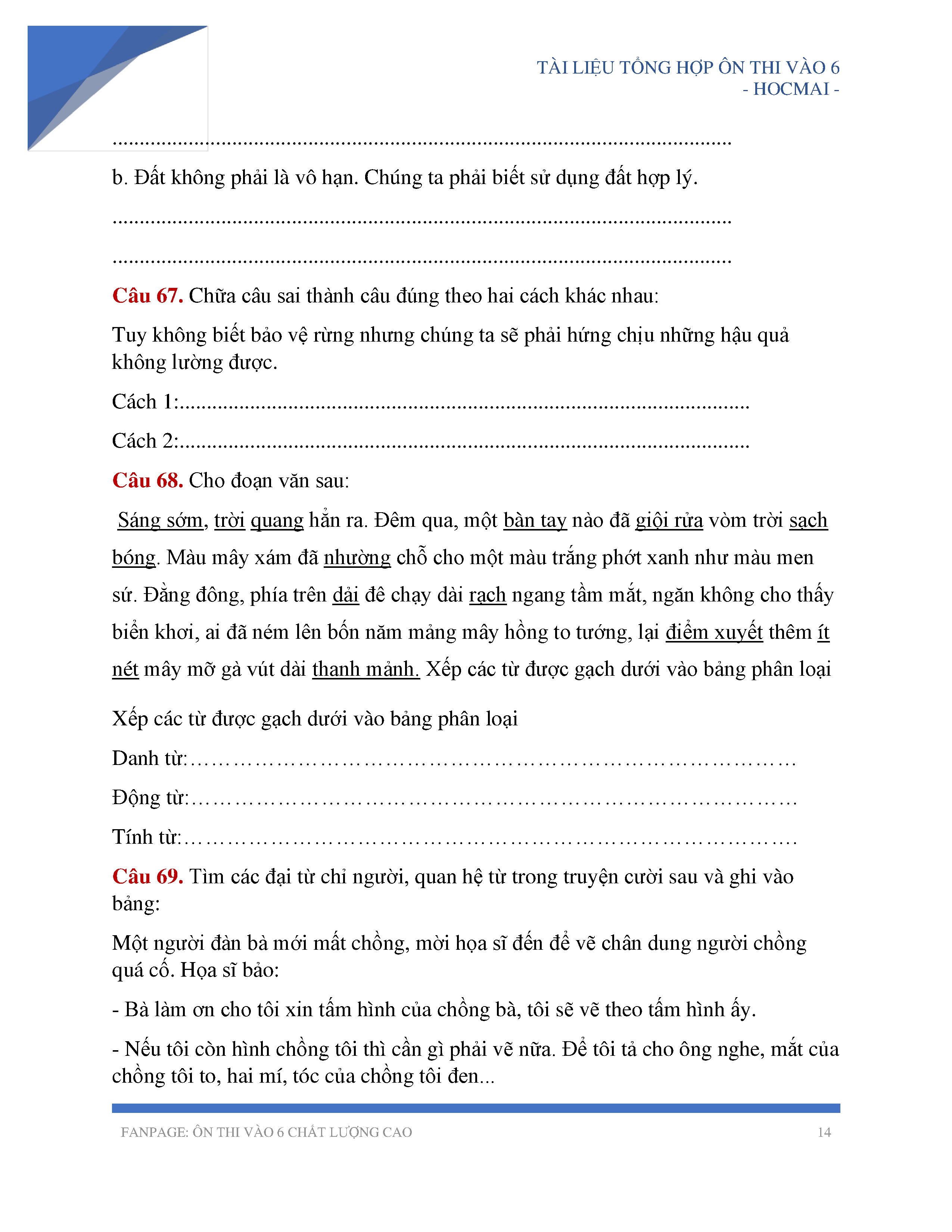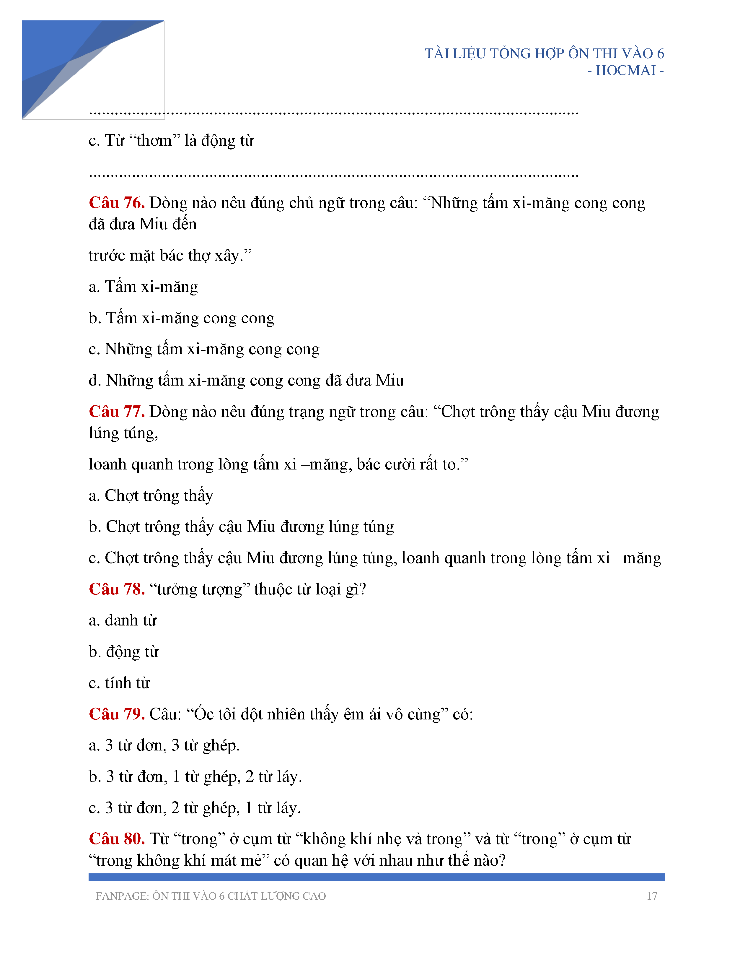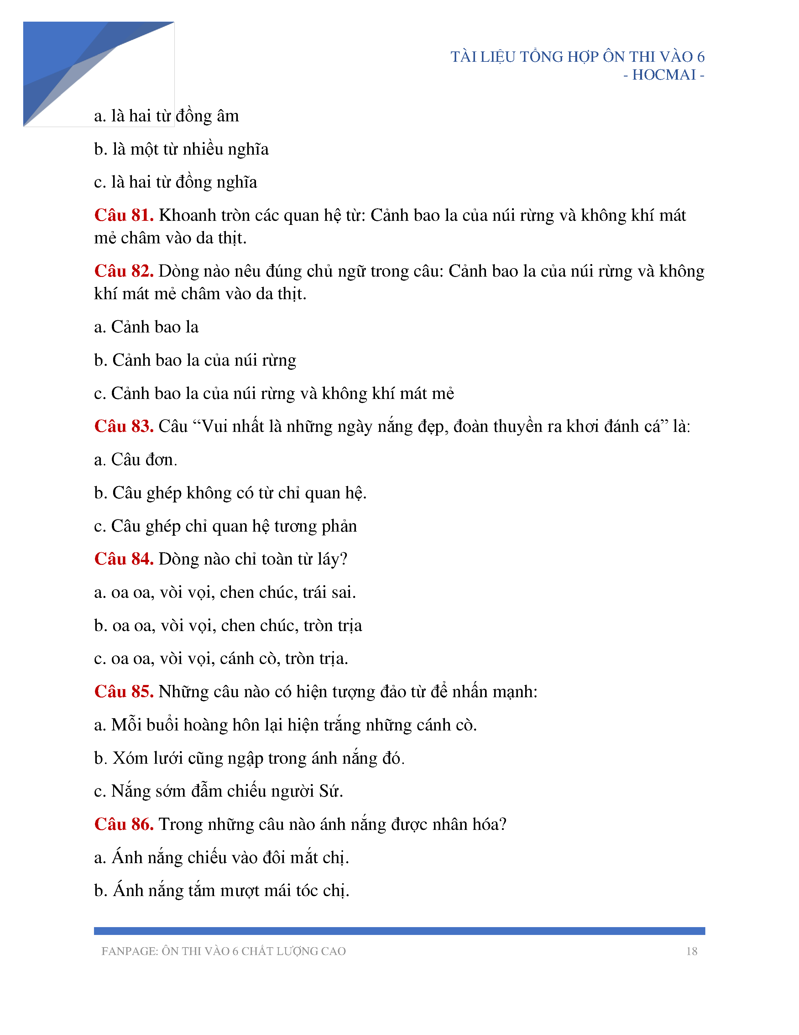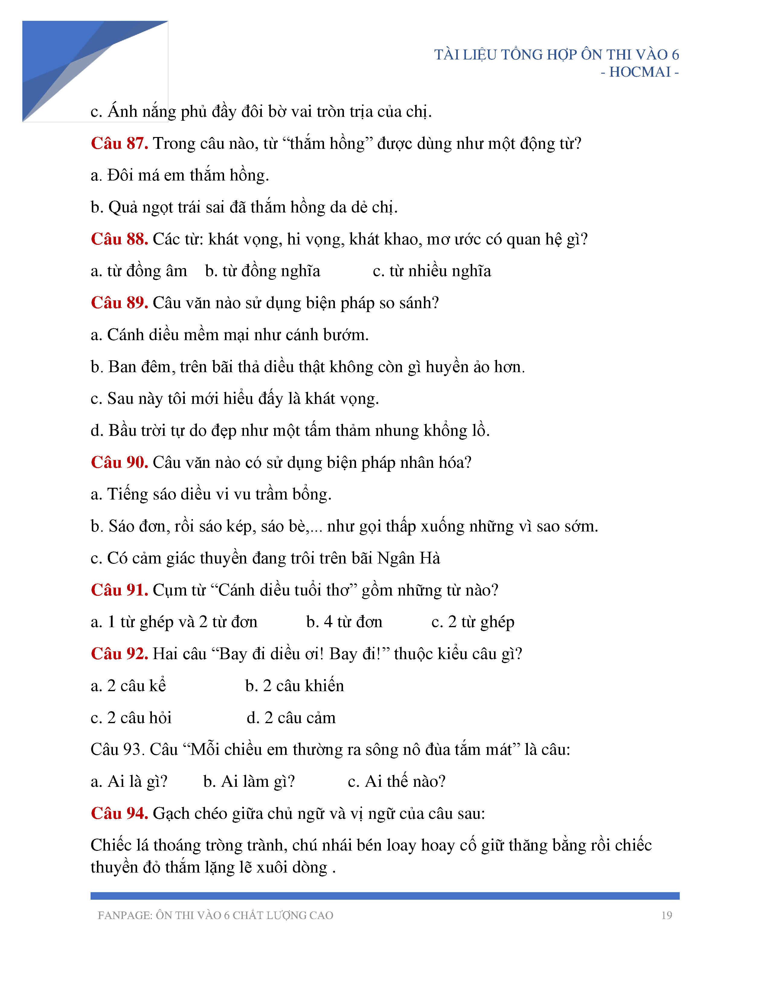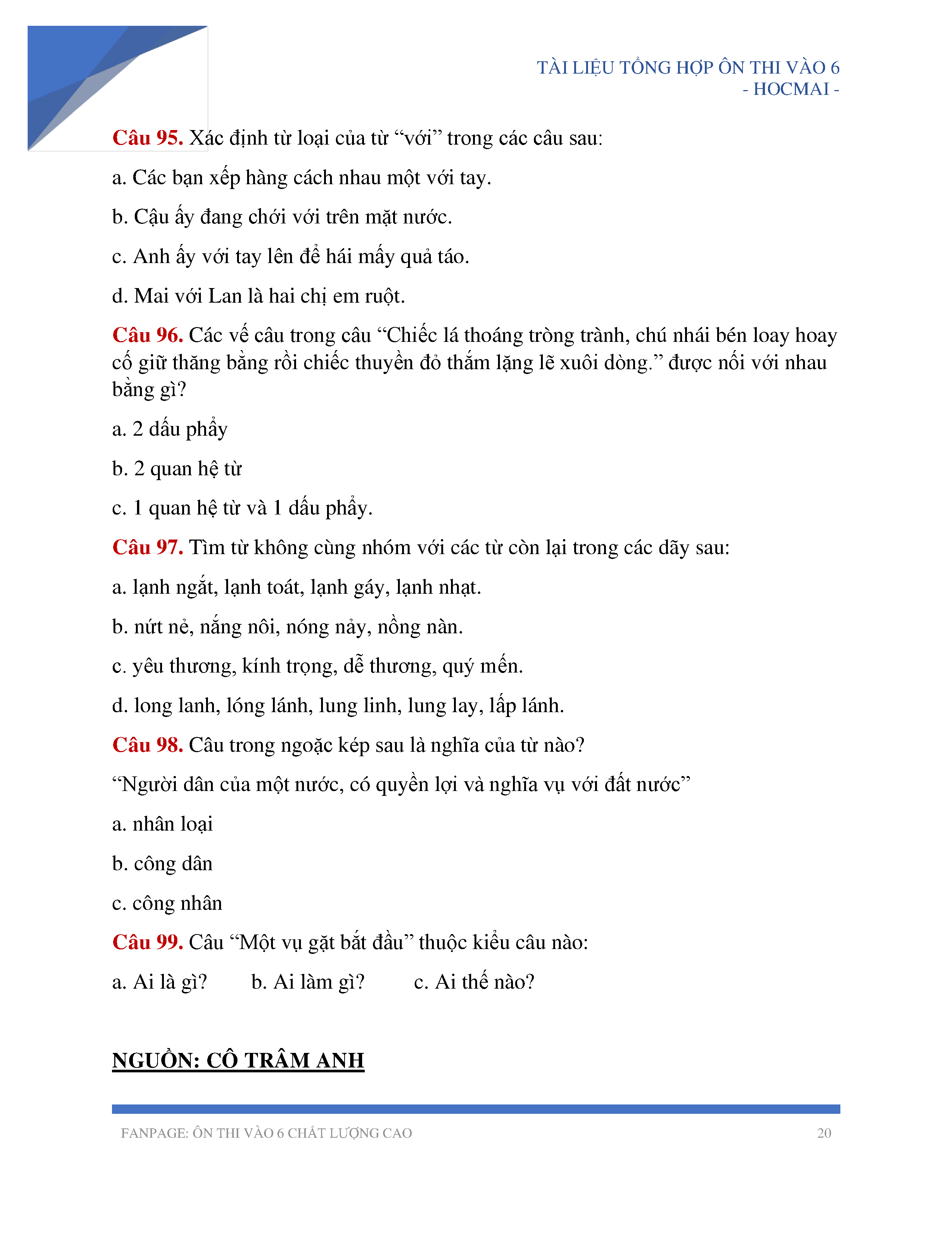 99 CÂU HỎI ÔN LUYỆN PHẦN NGỮ PHÁP QUAN TRỌNG TRONG TIẾNG VIỆT