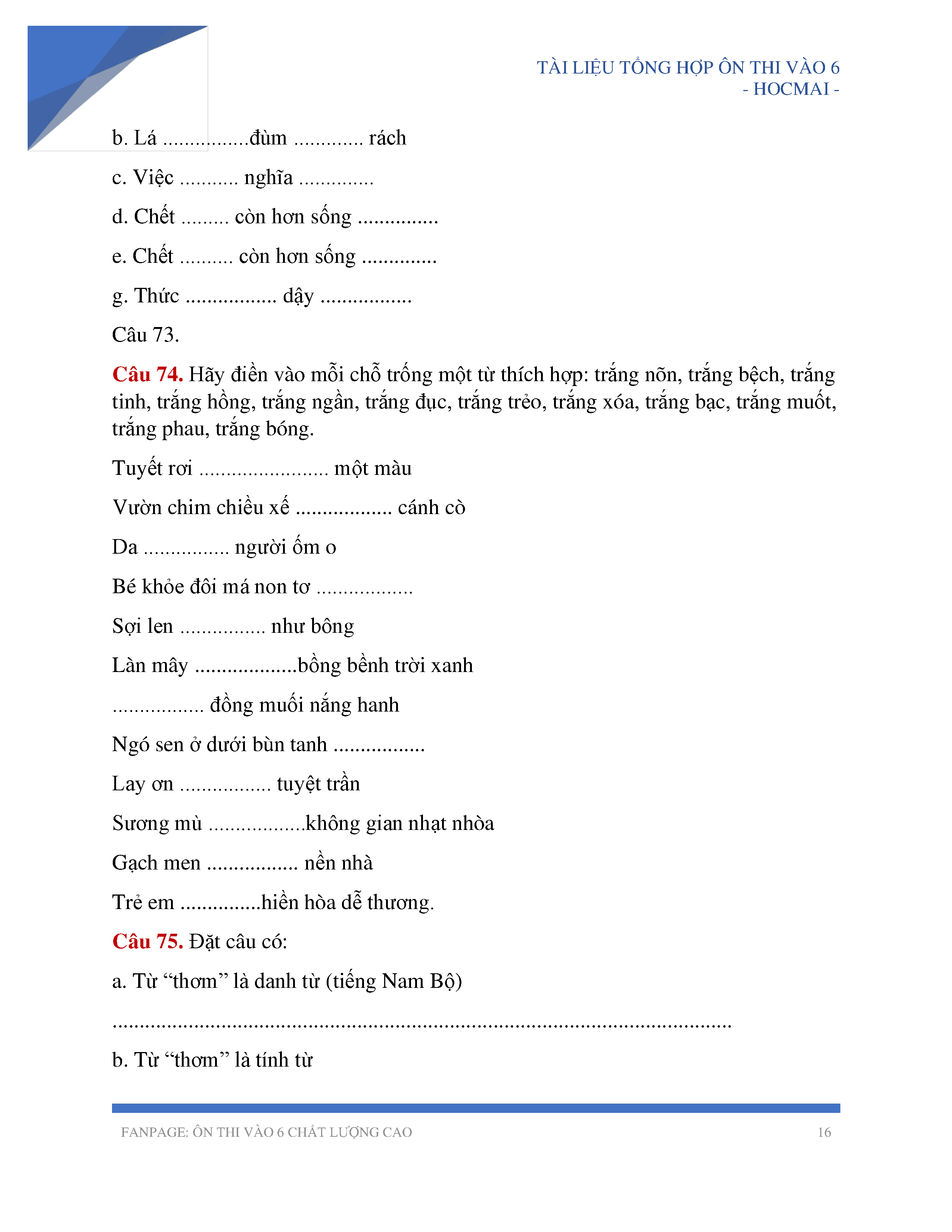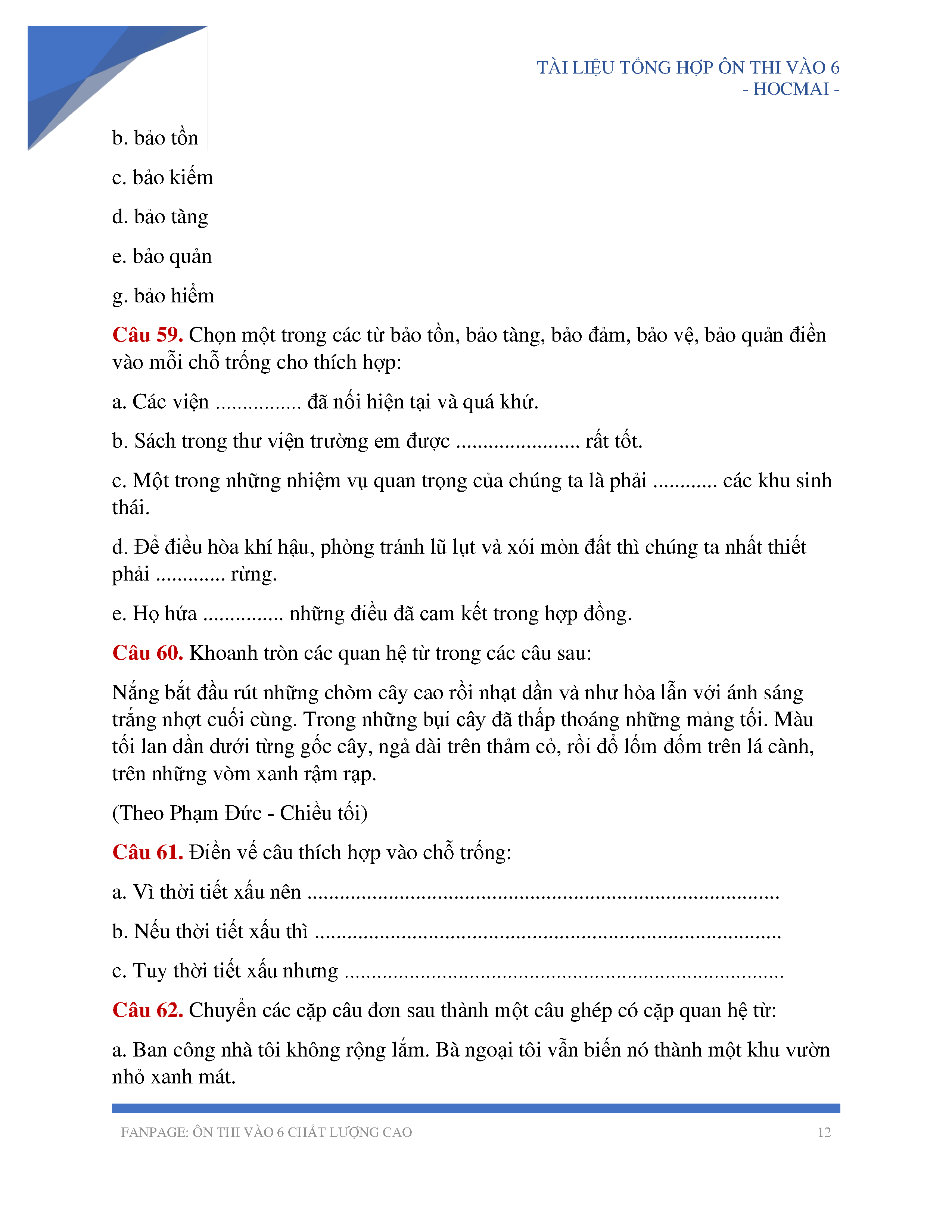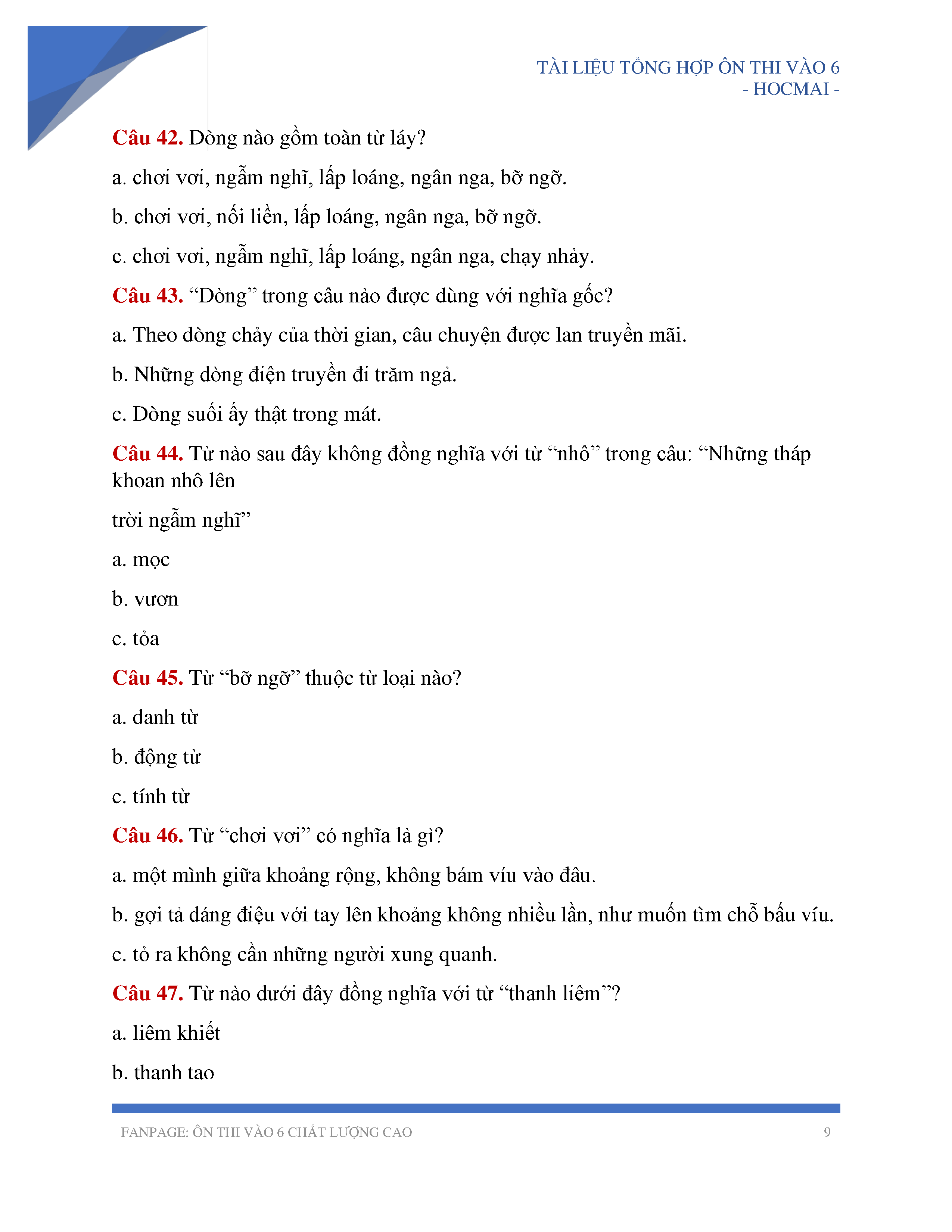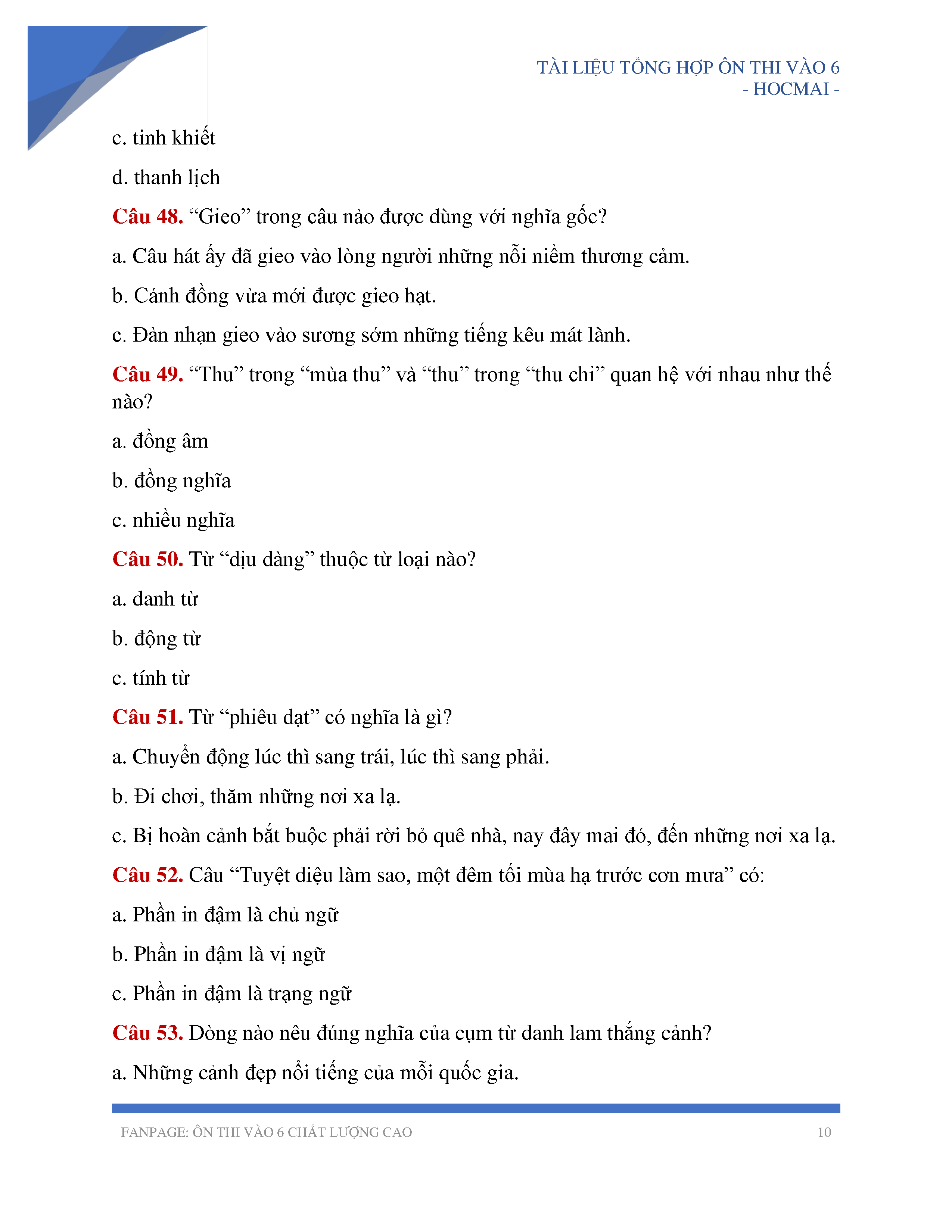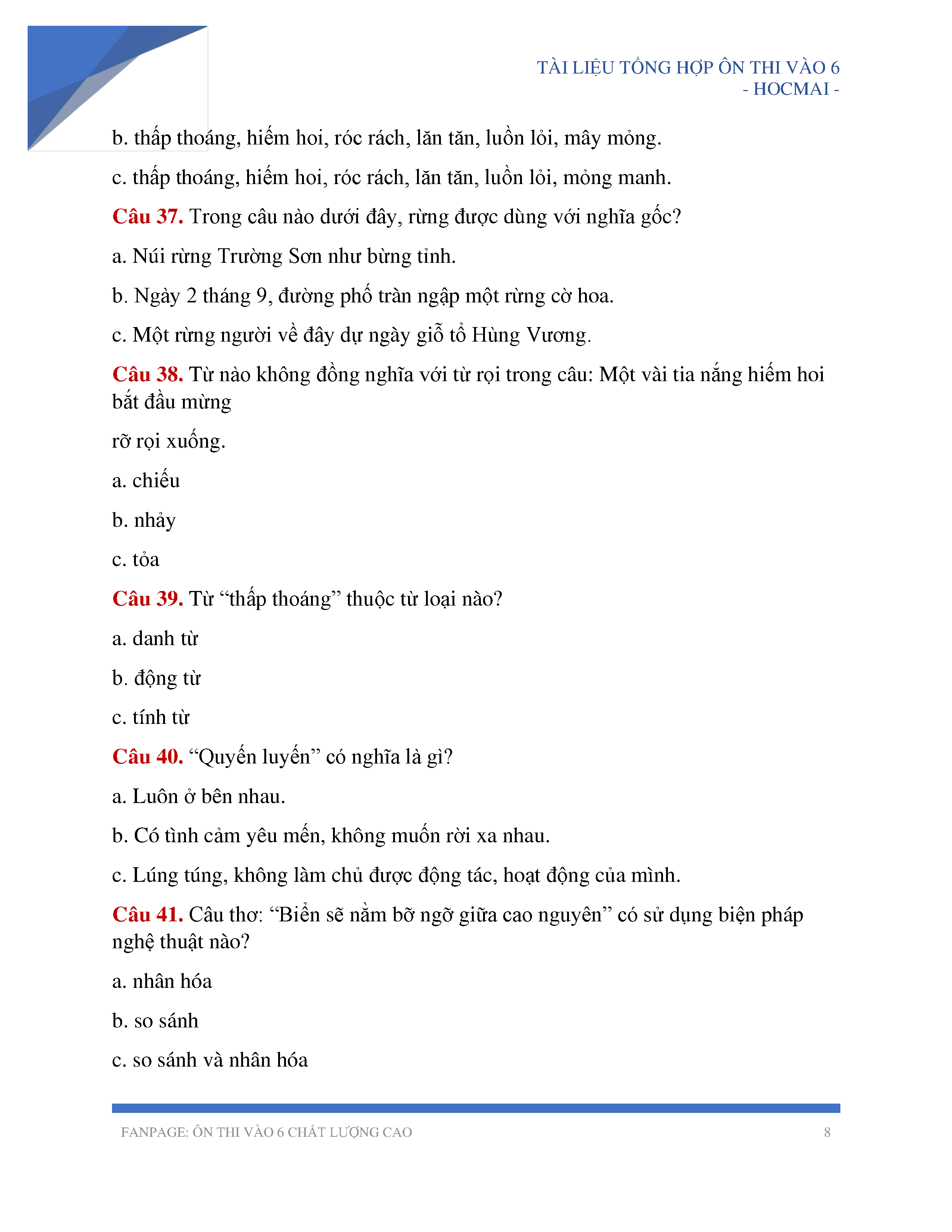 99 CÂU HỎI ÔN LUYỆN PHẦN NGỮ PHÁP QUAN TRỌNG TRONG TIẾNG VIỆT