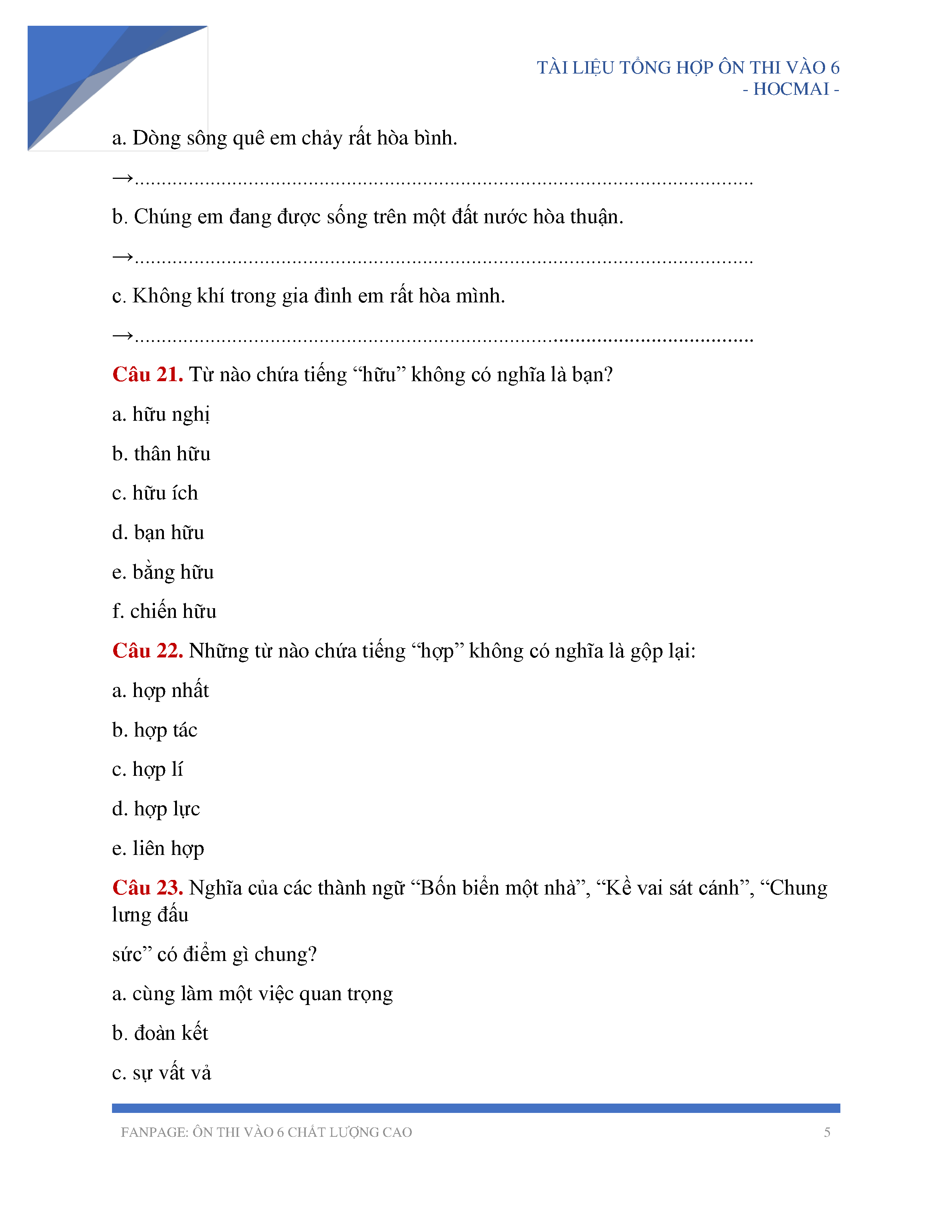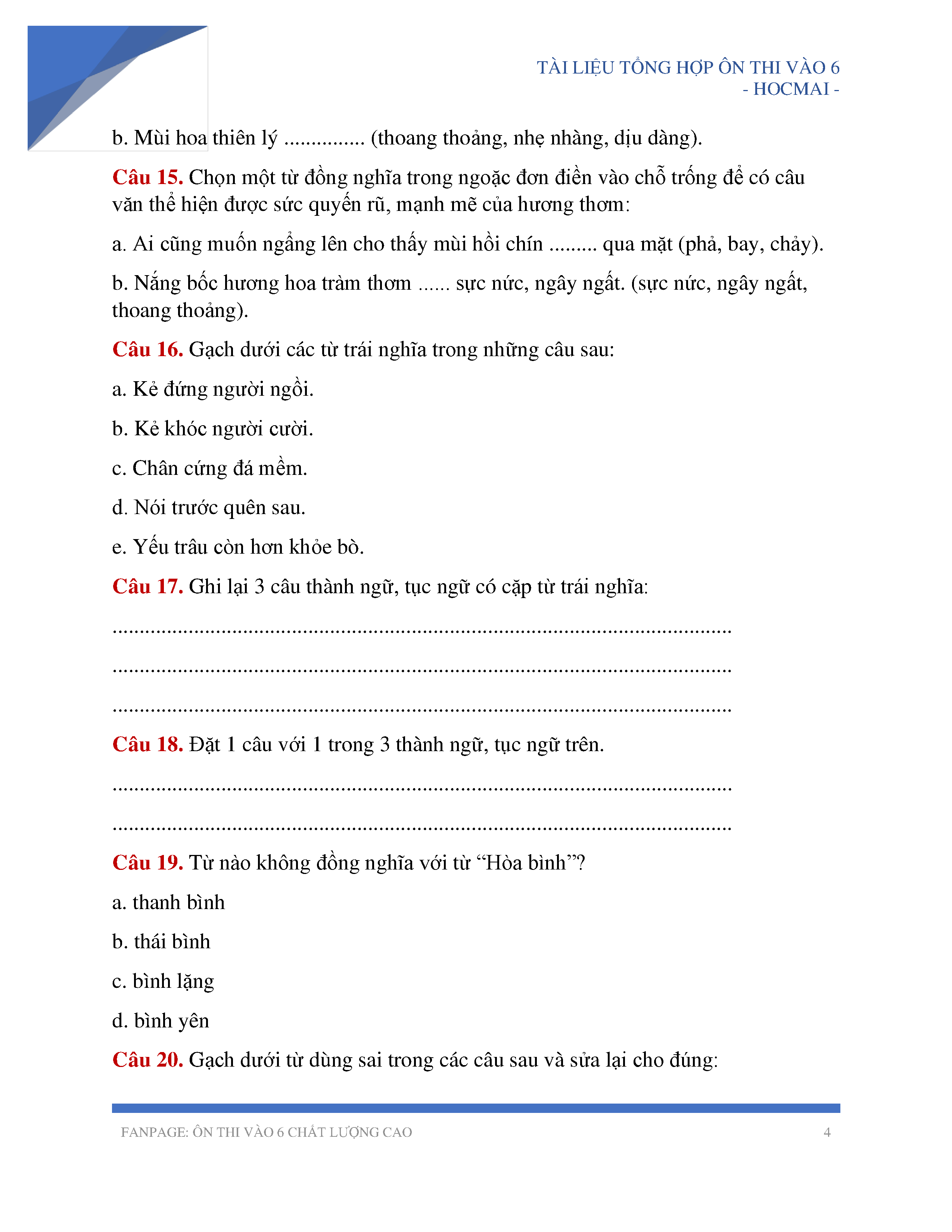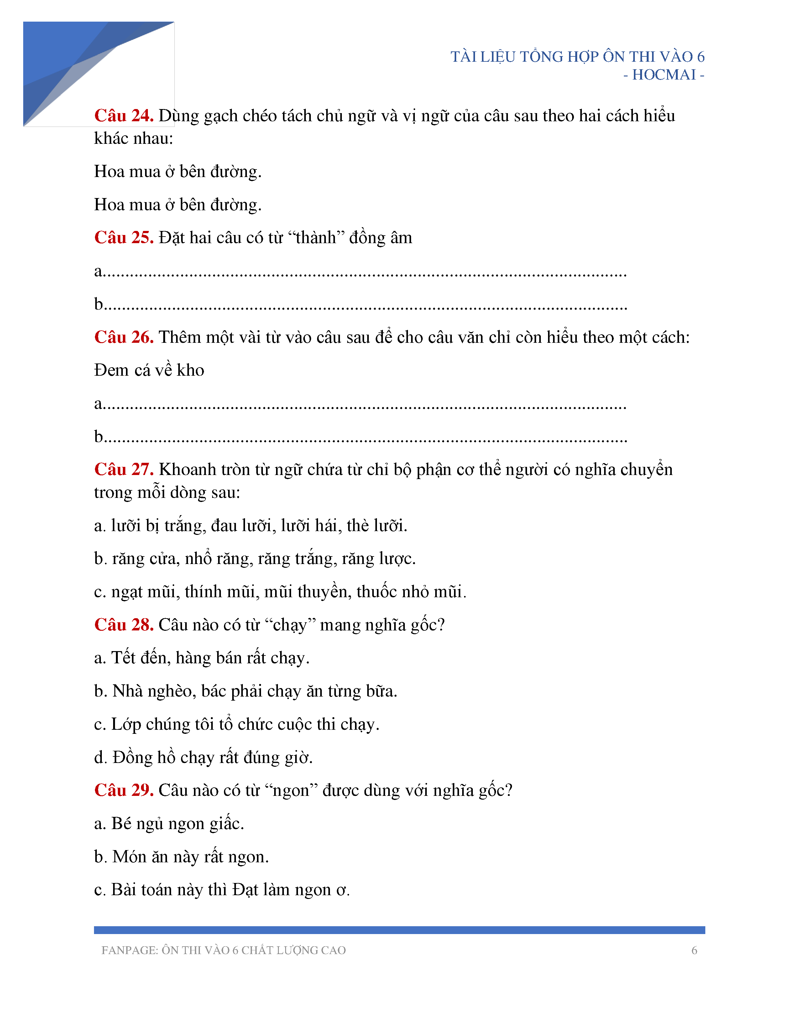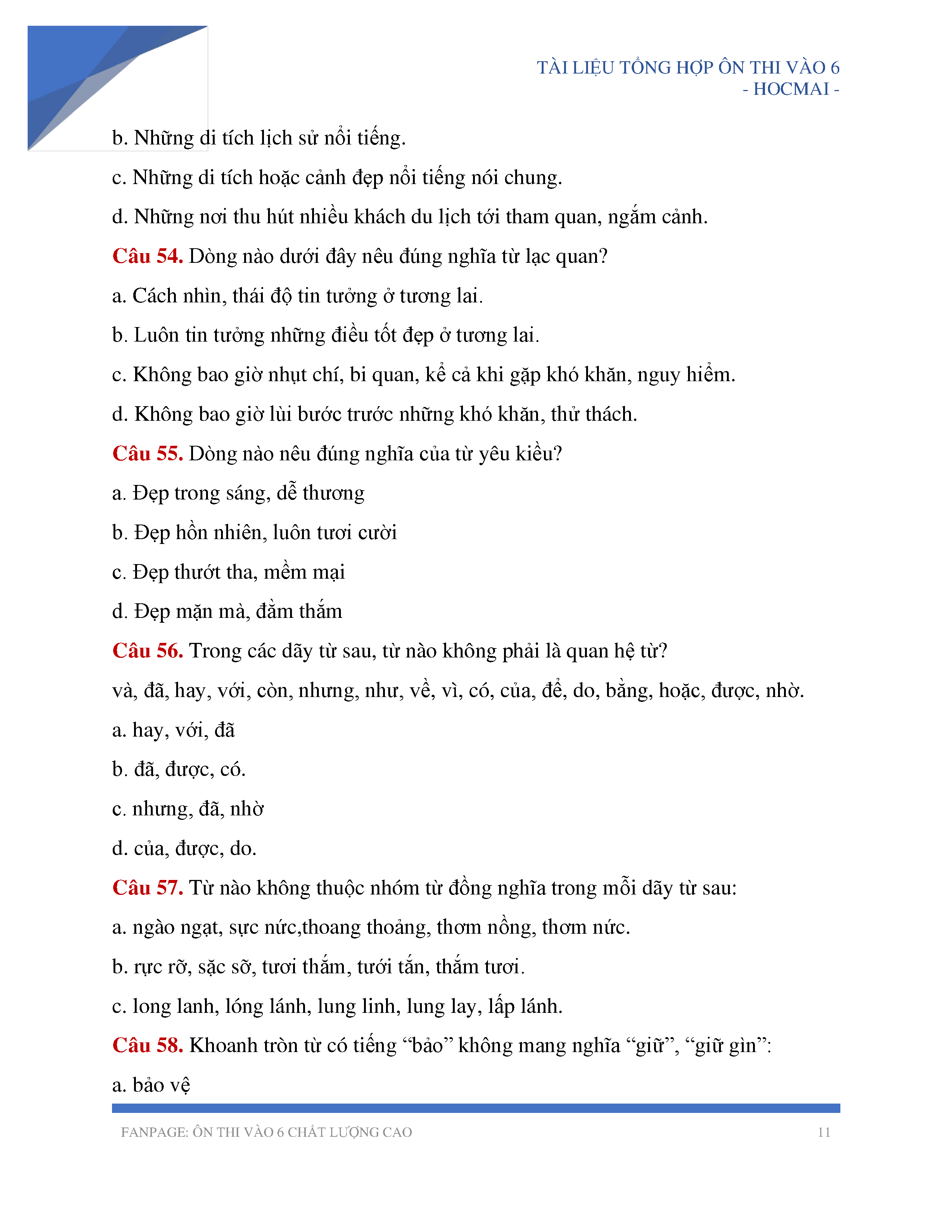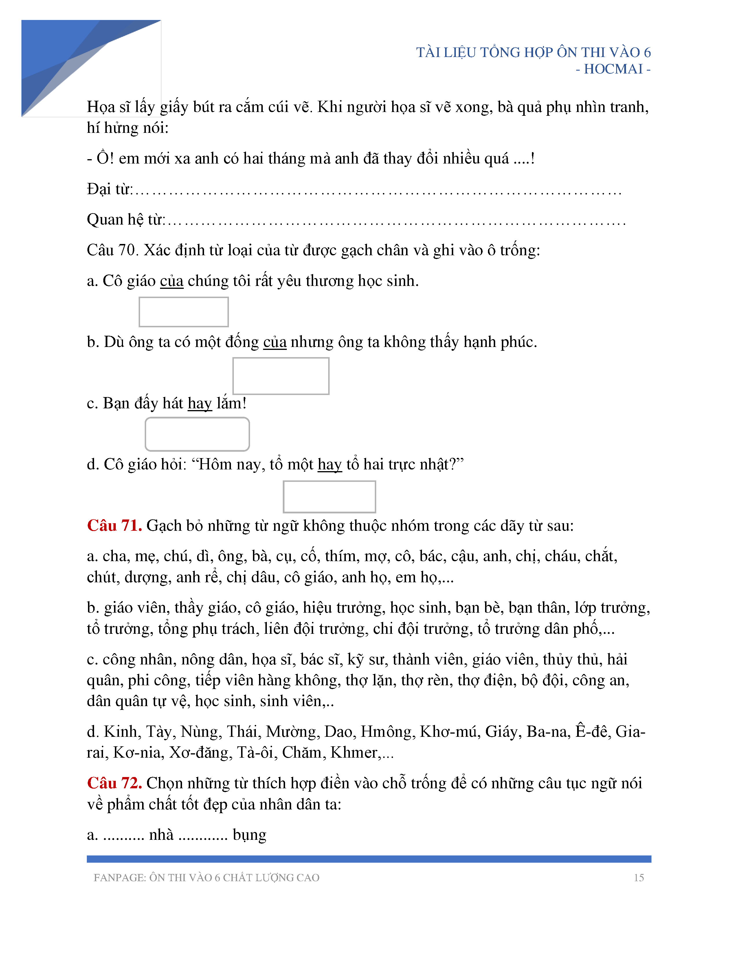 99 CÂU HỎI ÔN LUYỆN PHẦN NGỮ PHÁP QUAN TRỌNG TRONG TIẾNG VIỆT