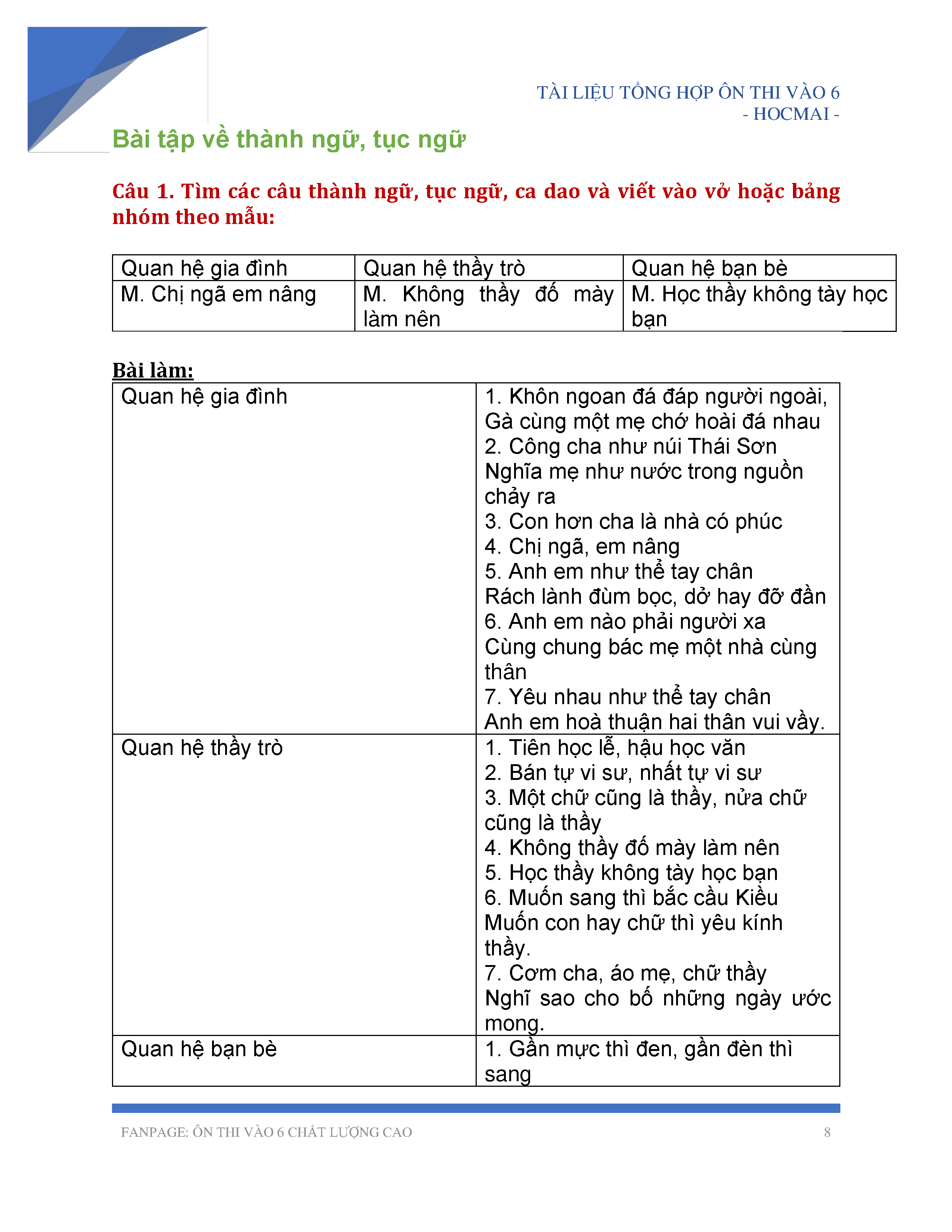 TỔNG HỢP CÁC THÀNH NGỮ, TỤC NGỮ HAY NHẤT TRONG CHƯƠNG TRÌNH TIÊNG VIỆT