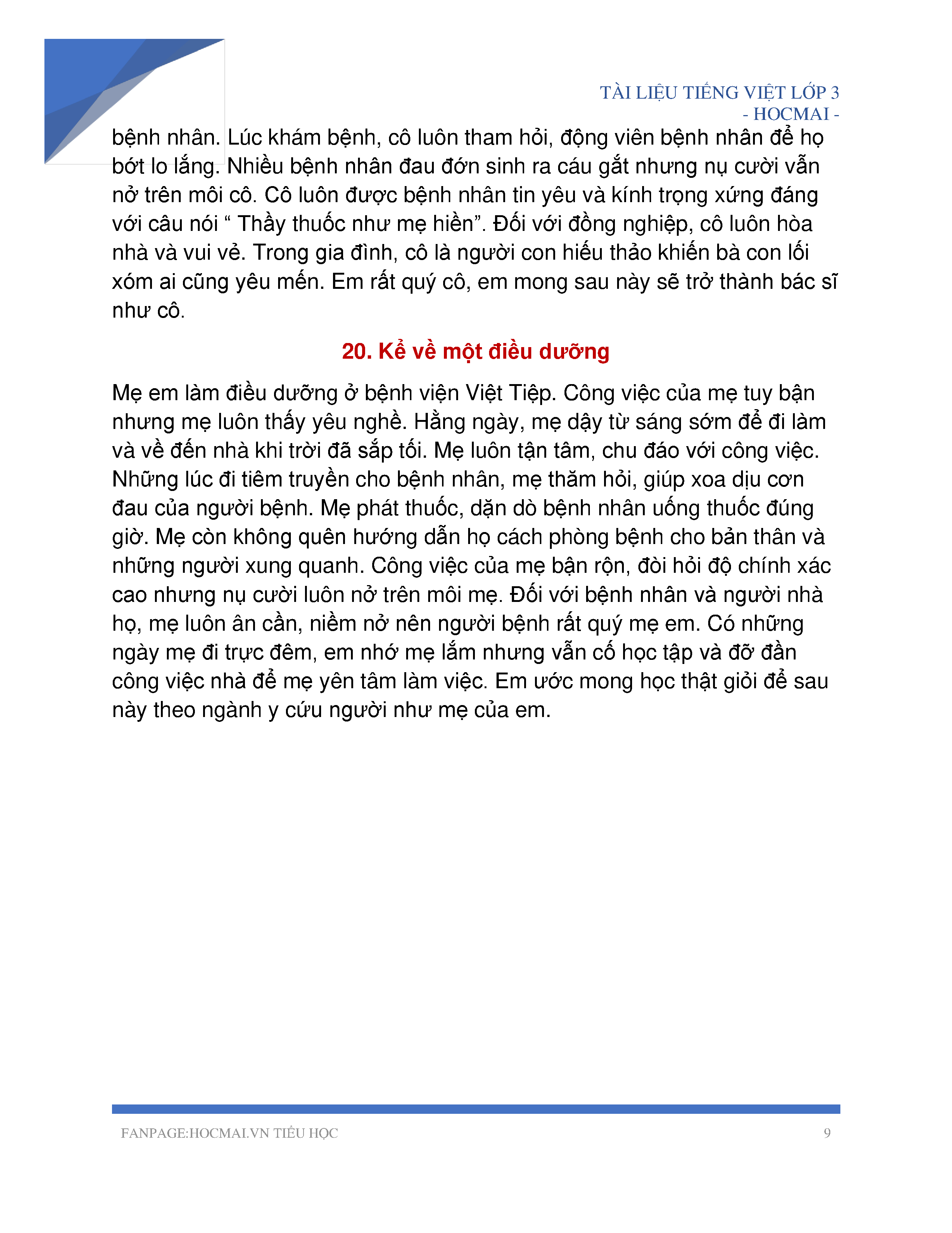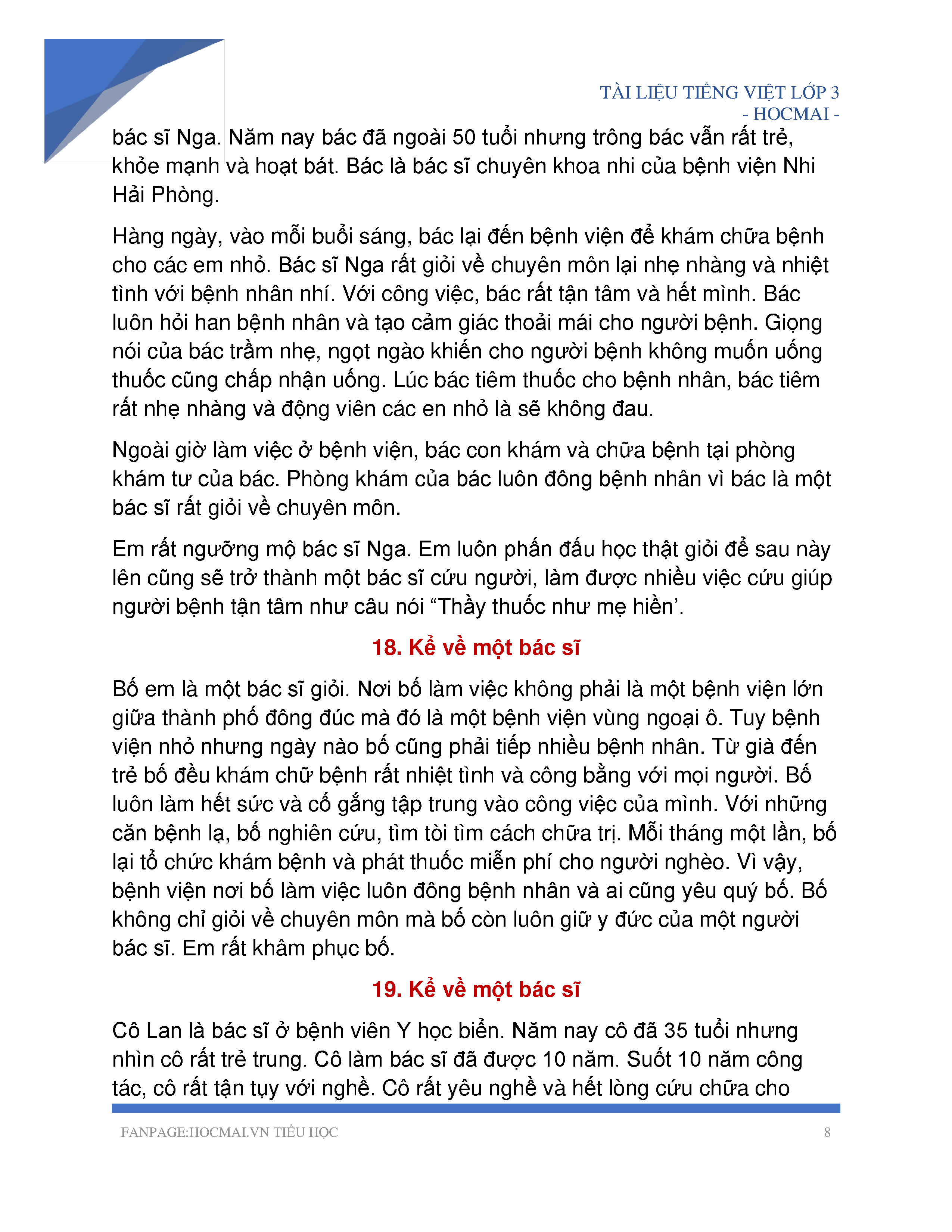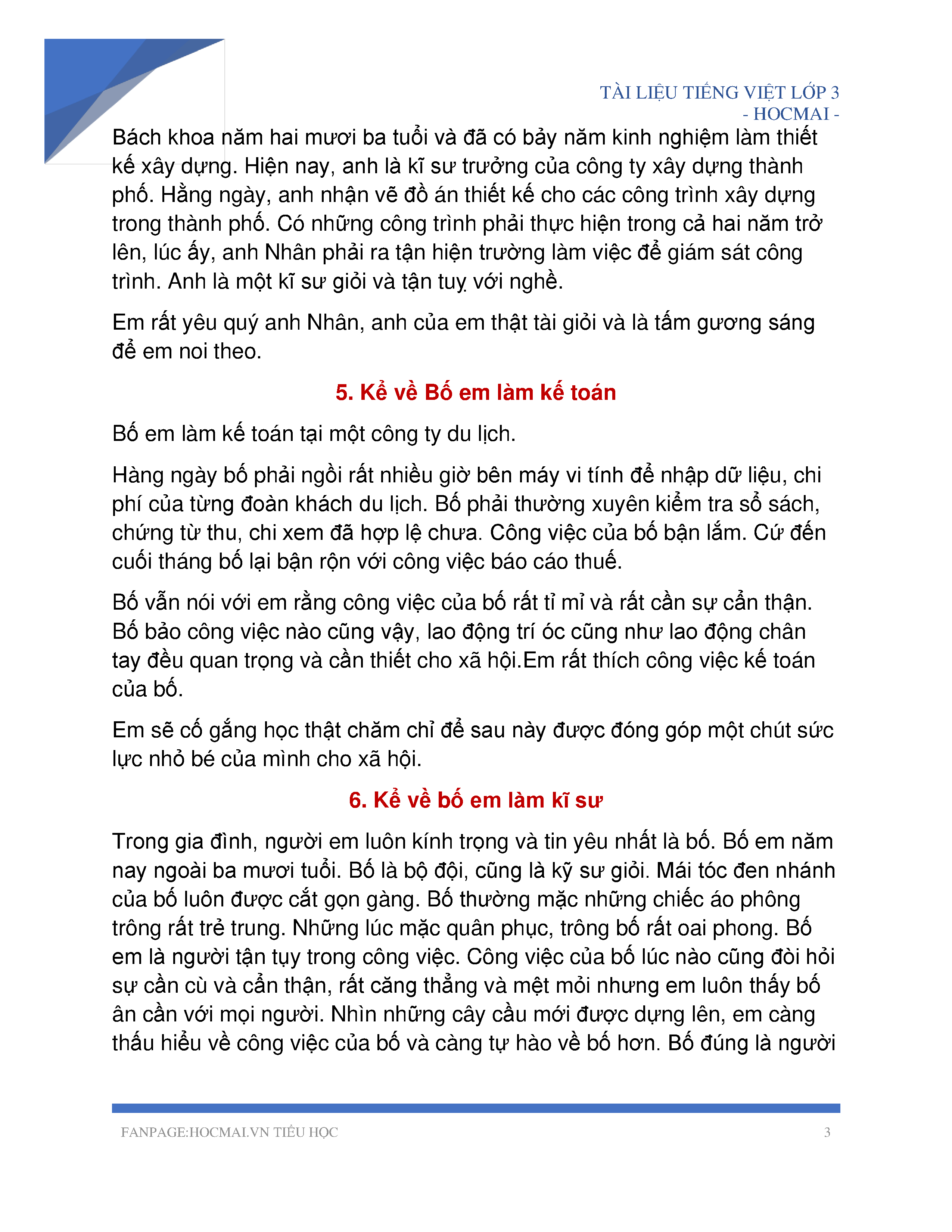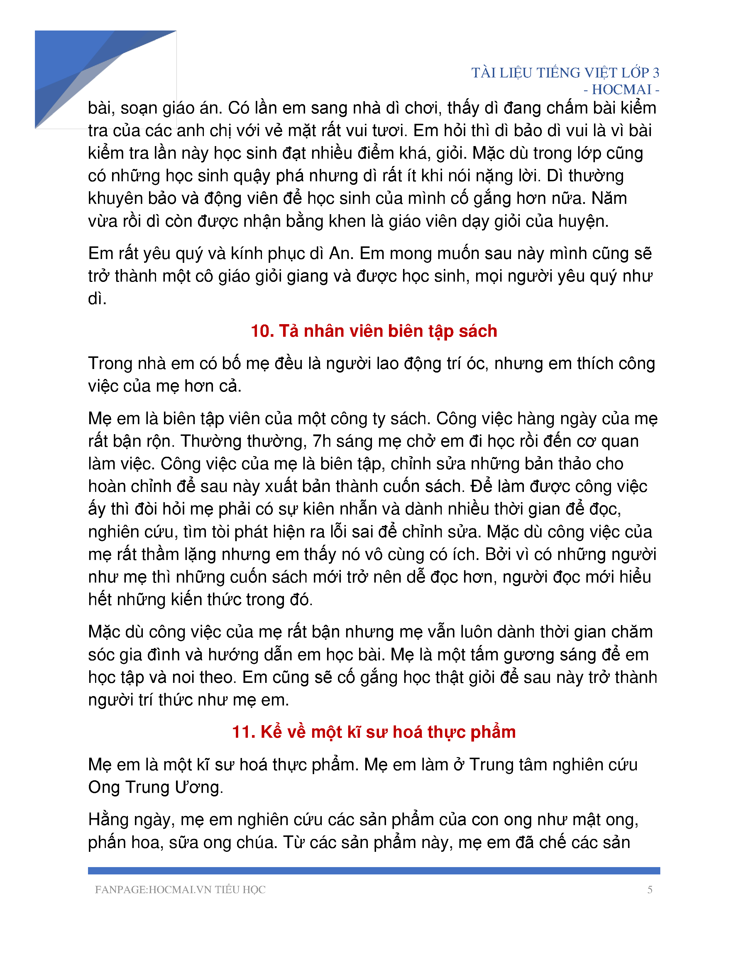 20 đoạn văn mẫu phần tập làm văn, chủ đề: kể về một người lao động trí óc- Tiếng Việt 3