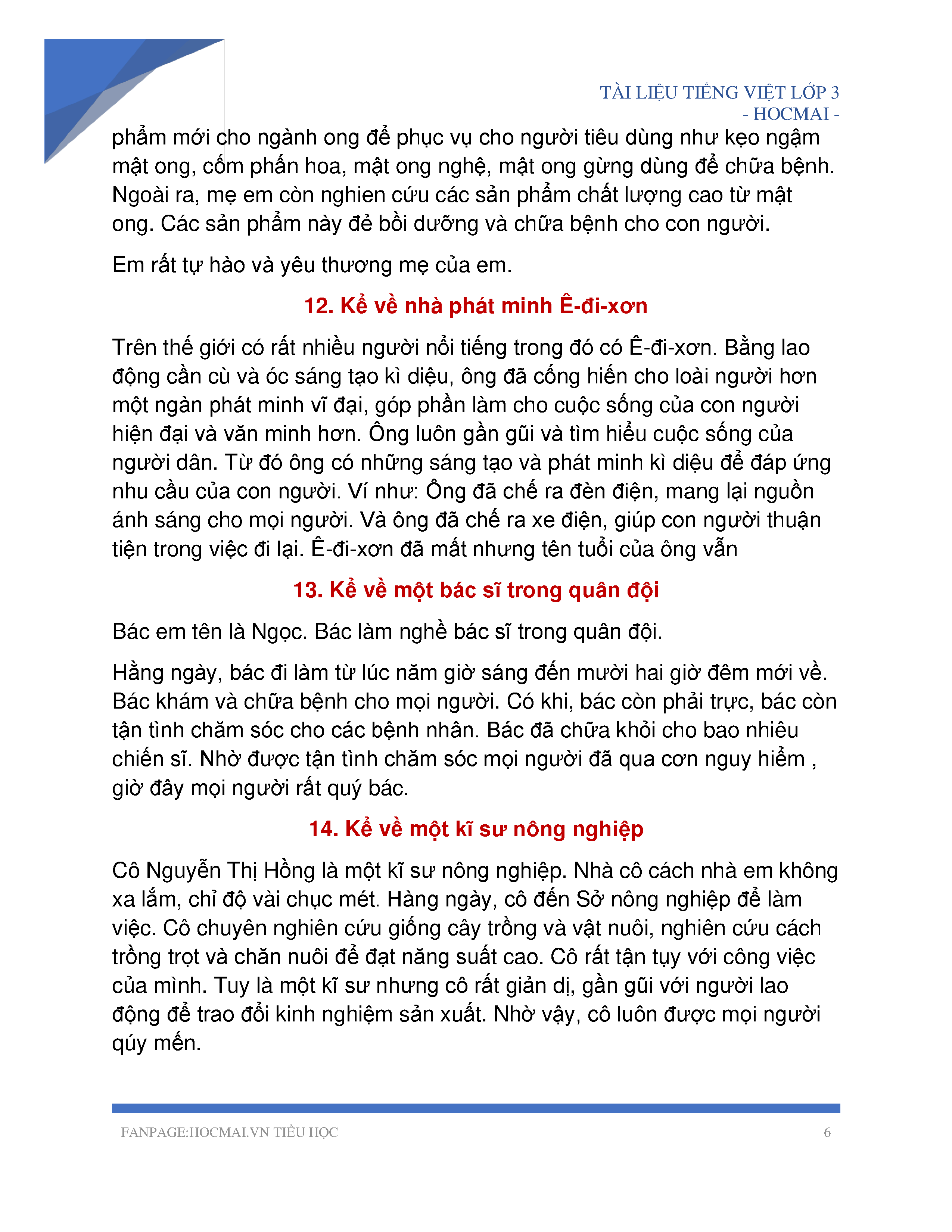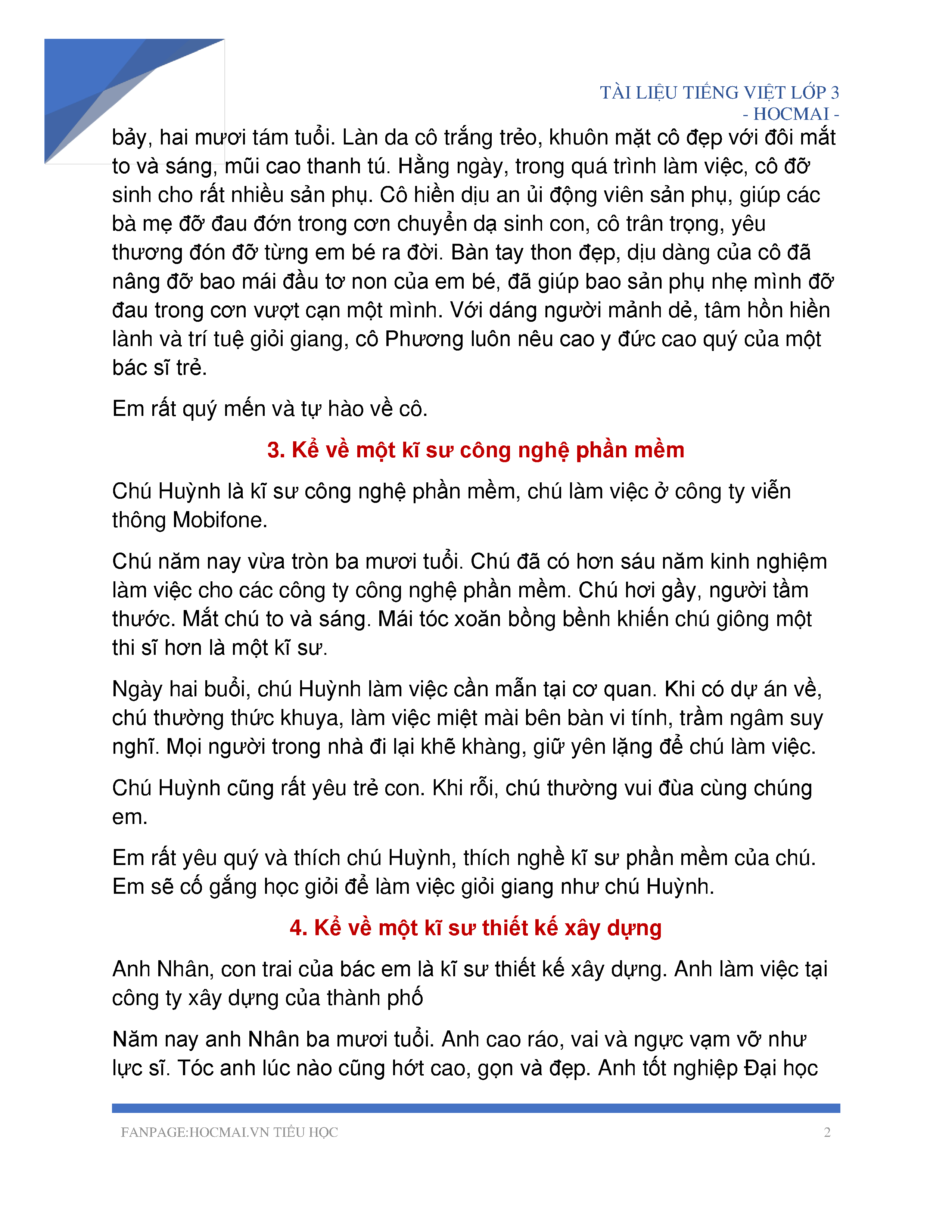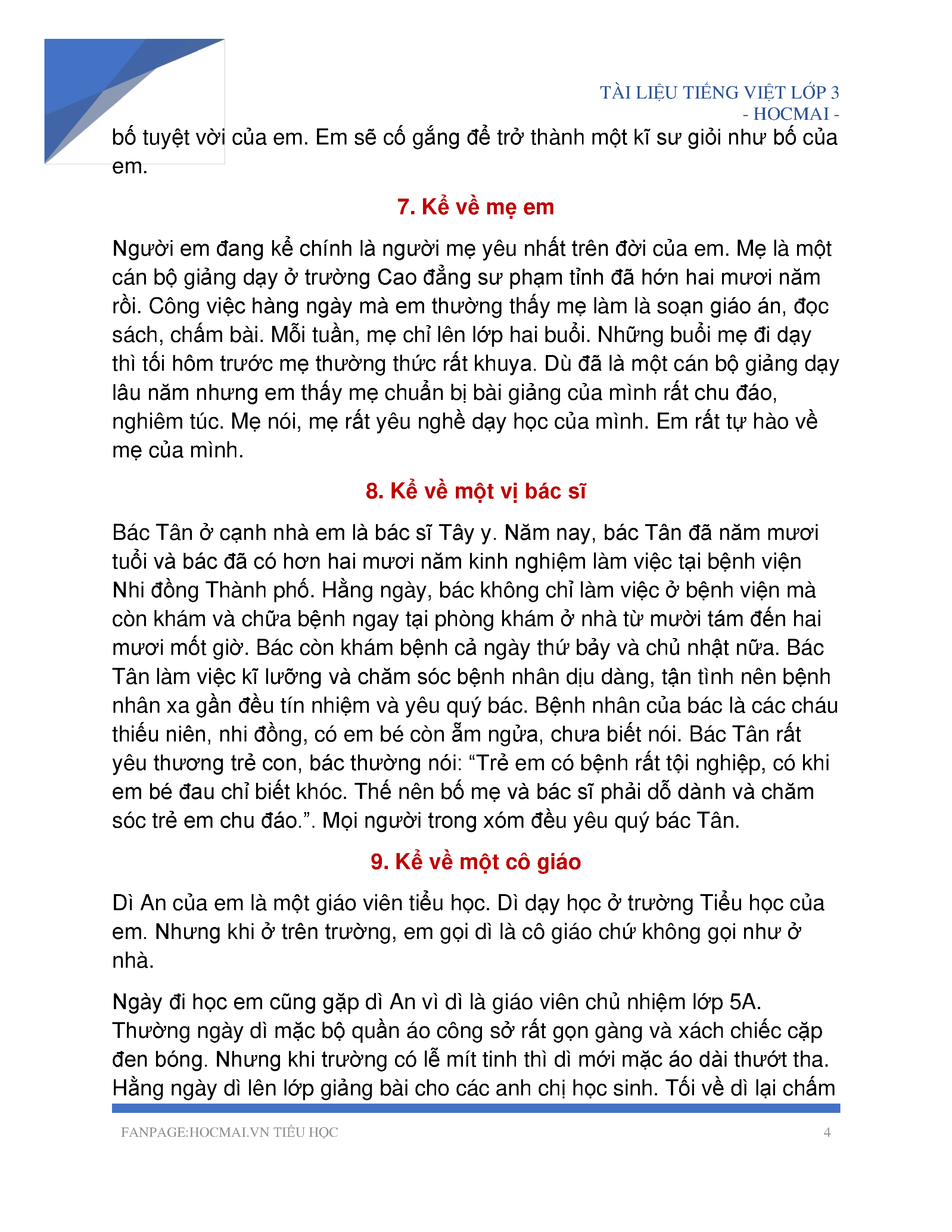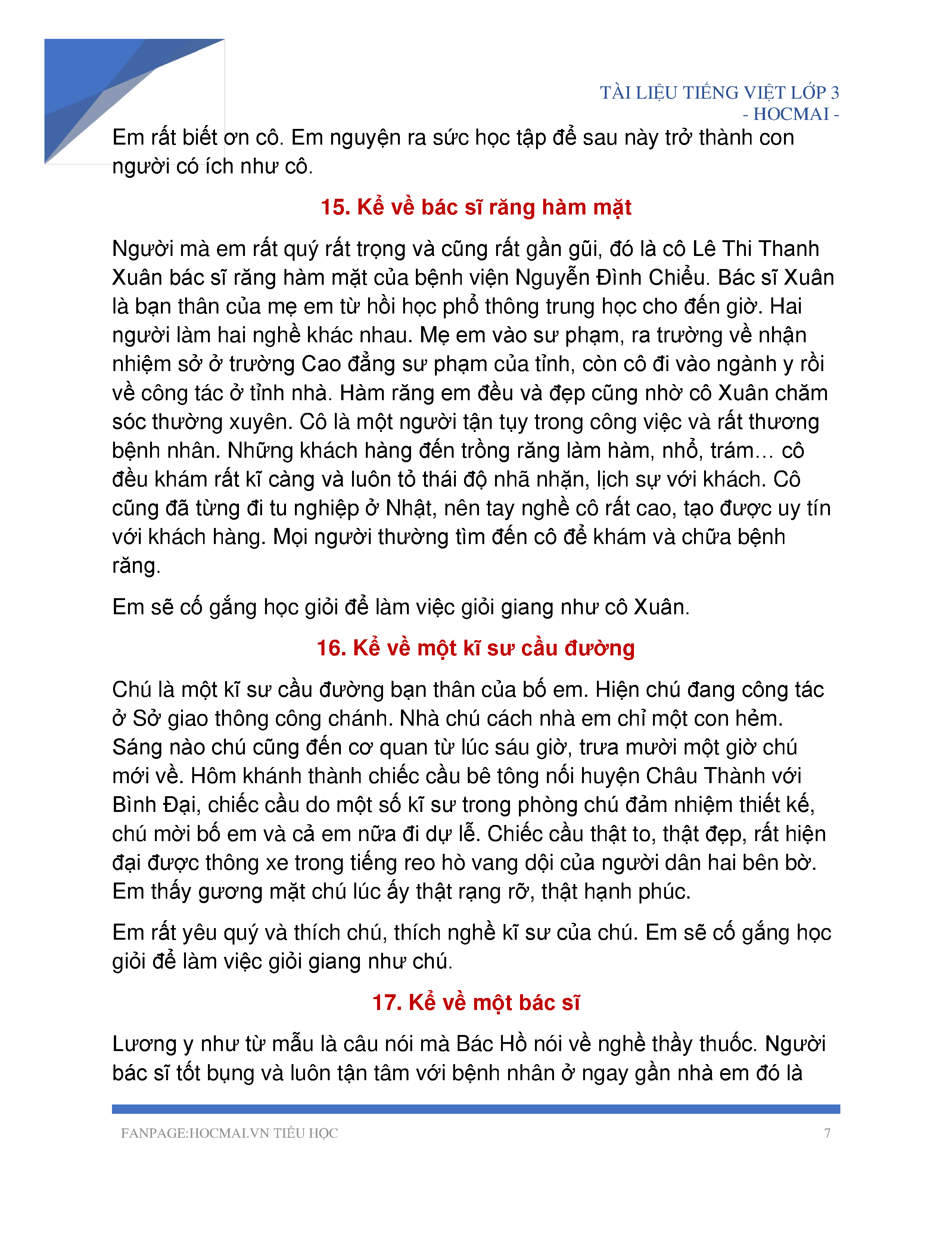20 đoạn văn mẫu phần tập làm văn, chủ đề: kể về một người lao động trí óc- Tiếng Việt 3