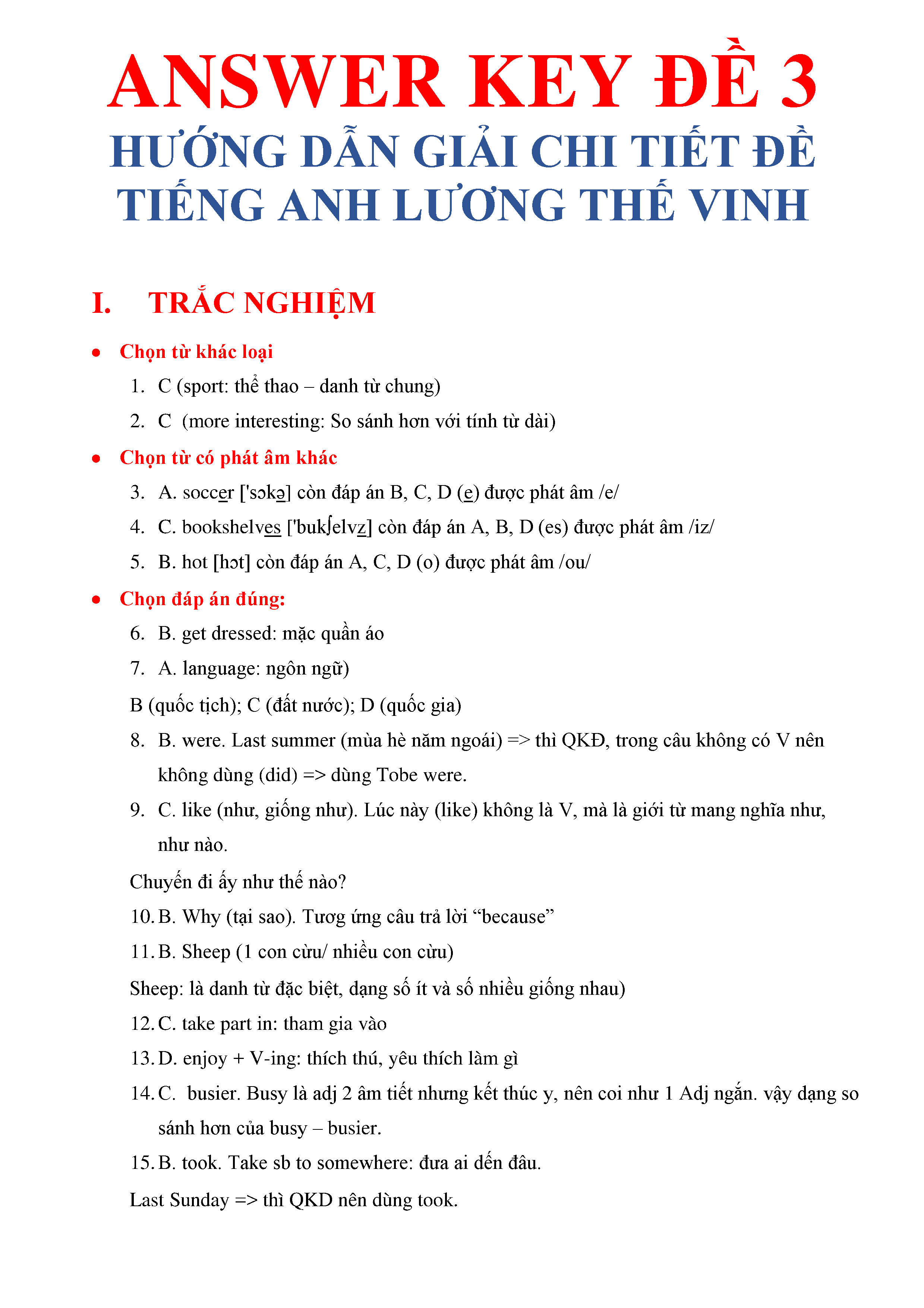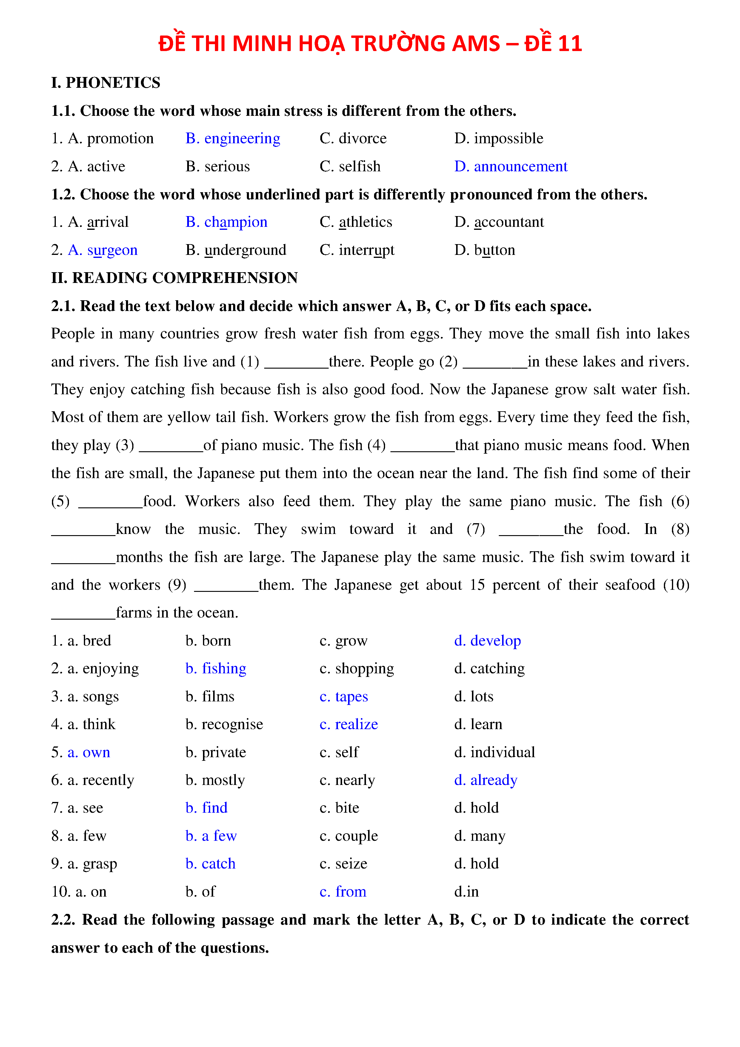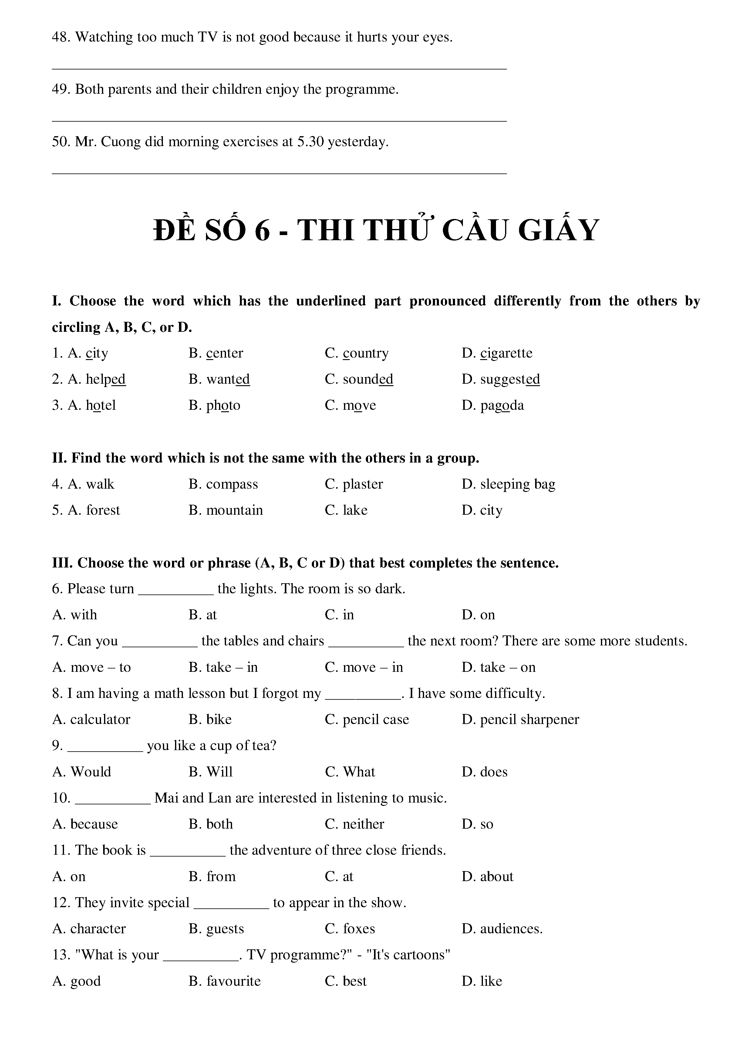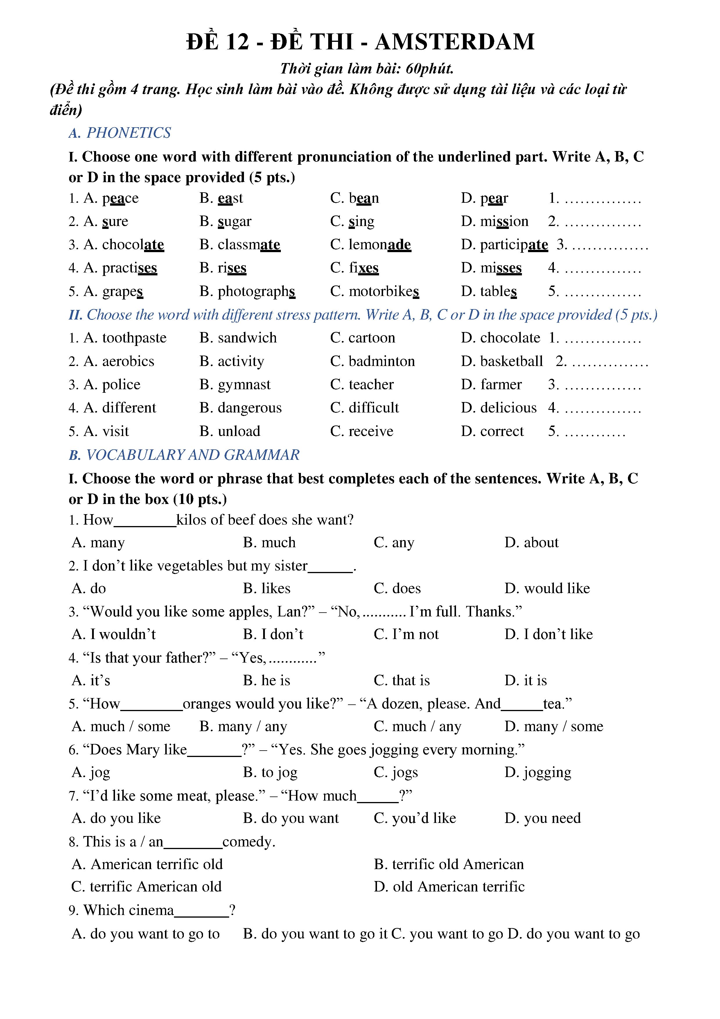 TỔNG HỢP ĐỀ THI TIẾNG ANH VÀO 6 CÁC TRƯỜNG CLC HÀ NỘI