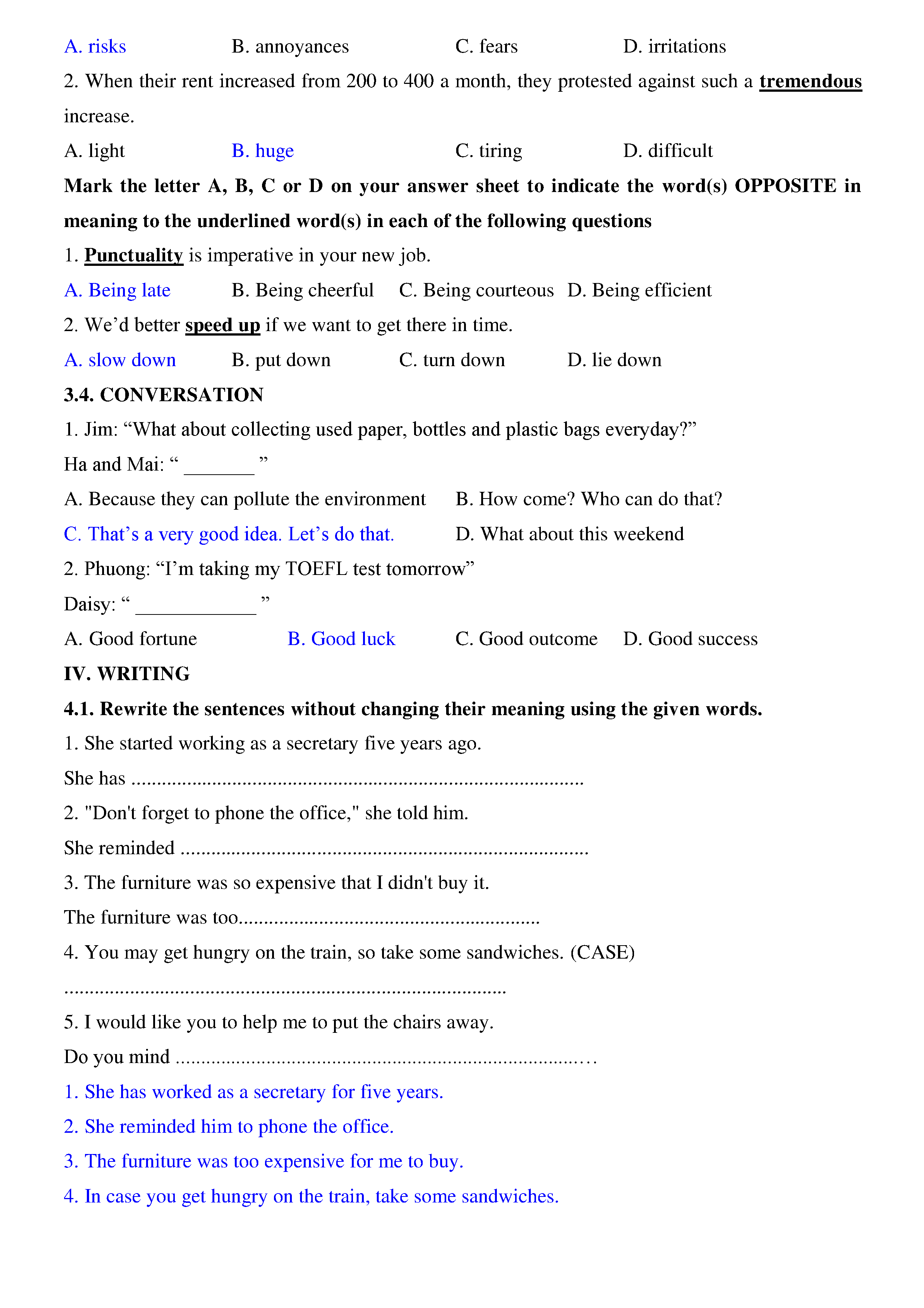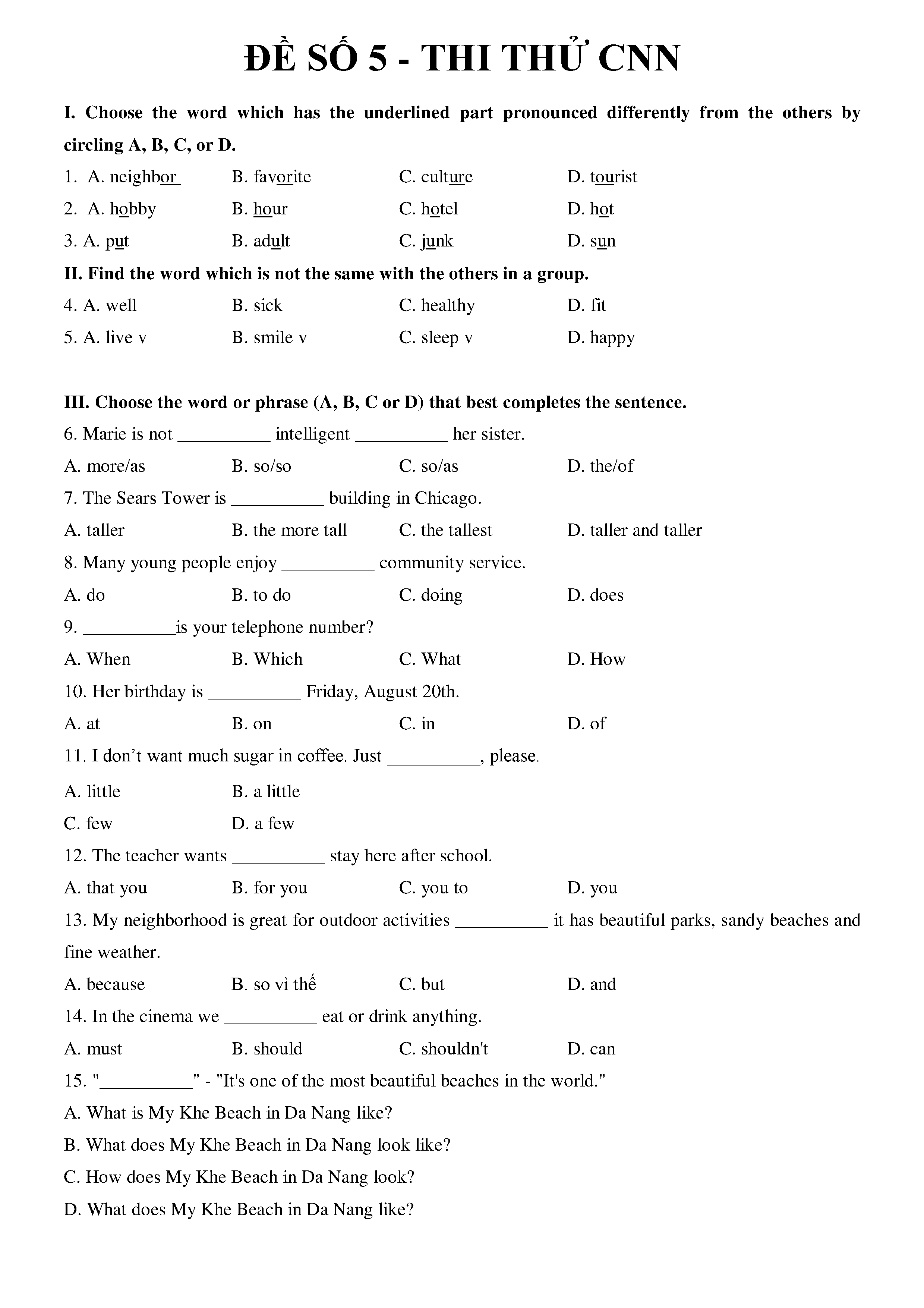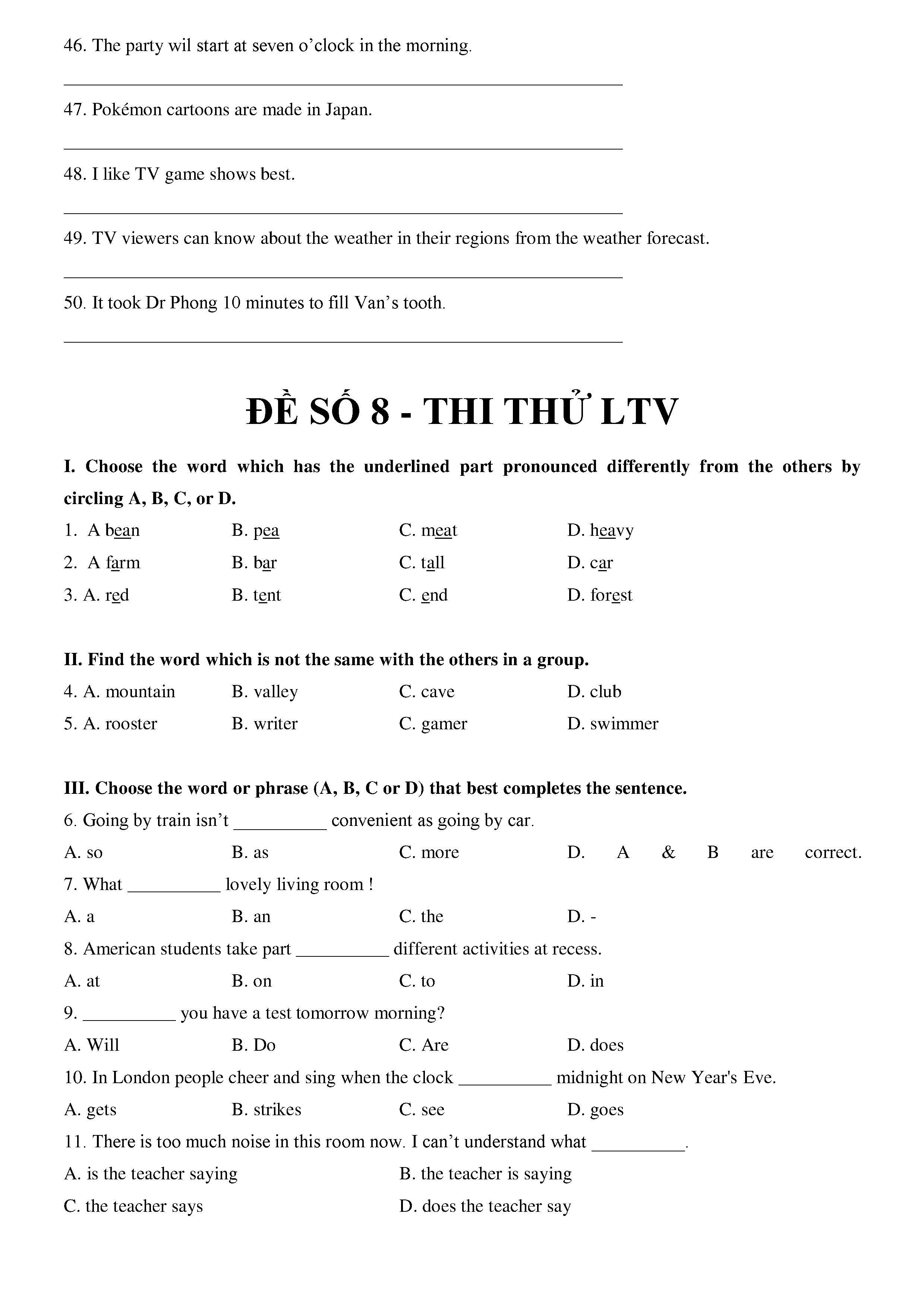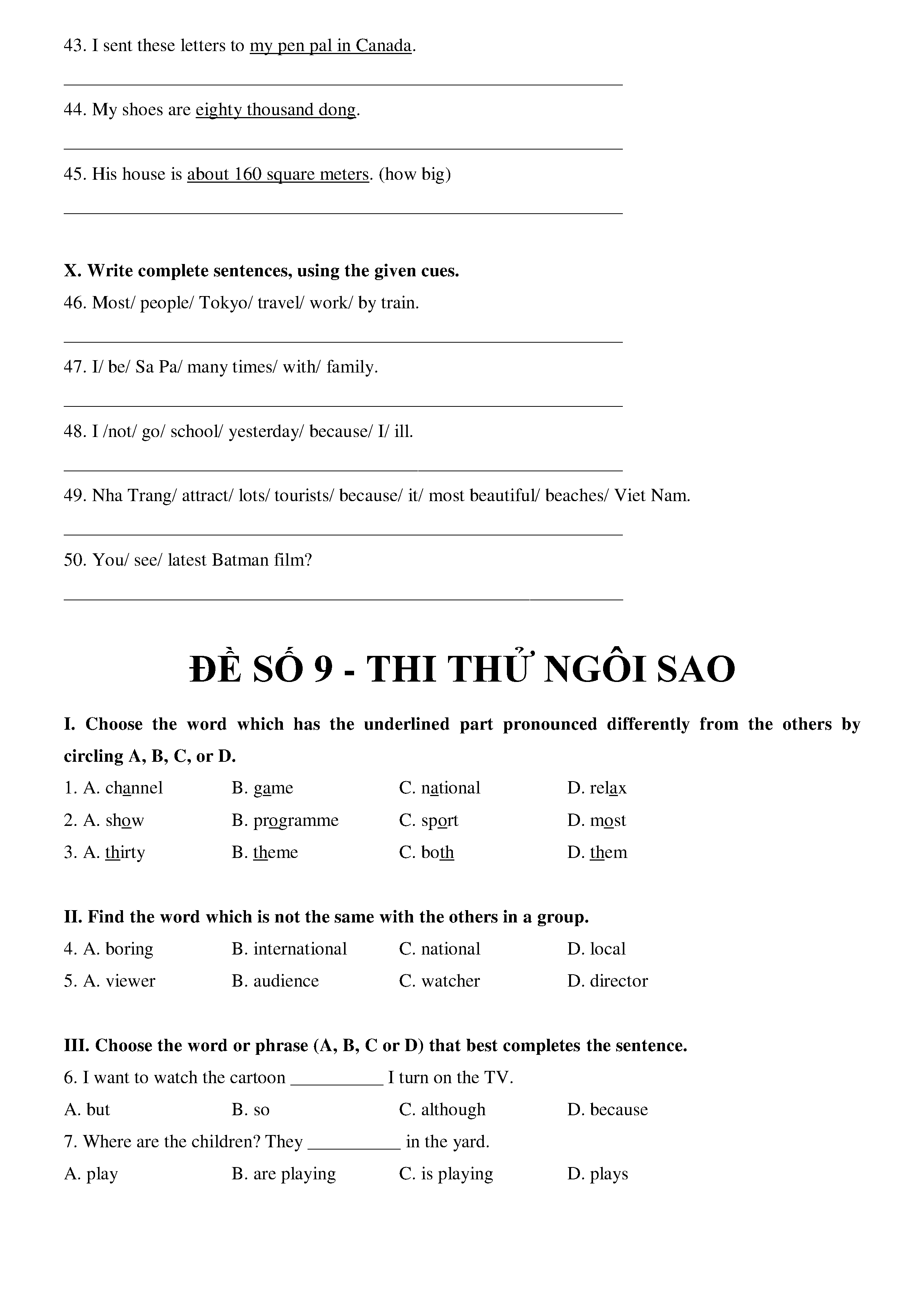 TỔNG HỢP ĐỀ THI TIẾNG ANH VÀO 6 CÁC TRƯỜNG CLC HÀ NỘI