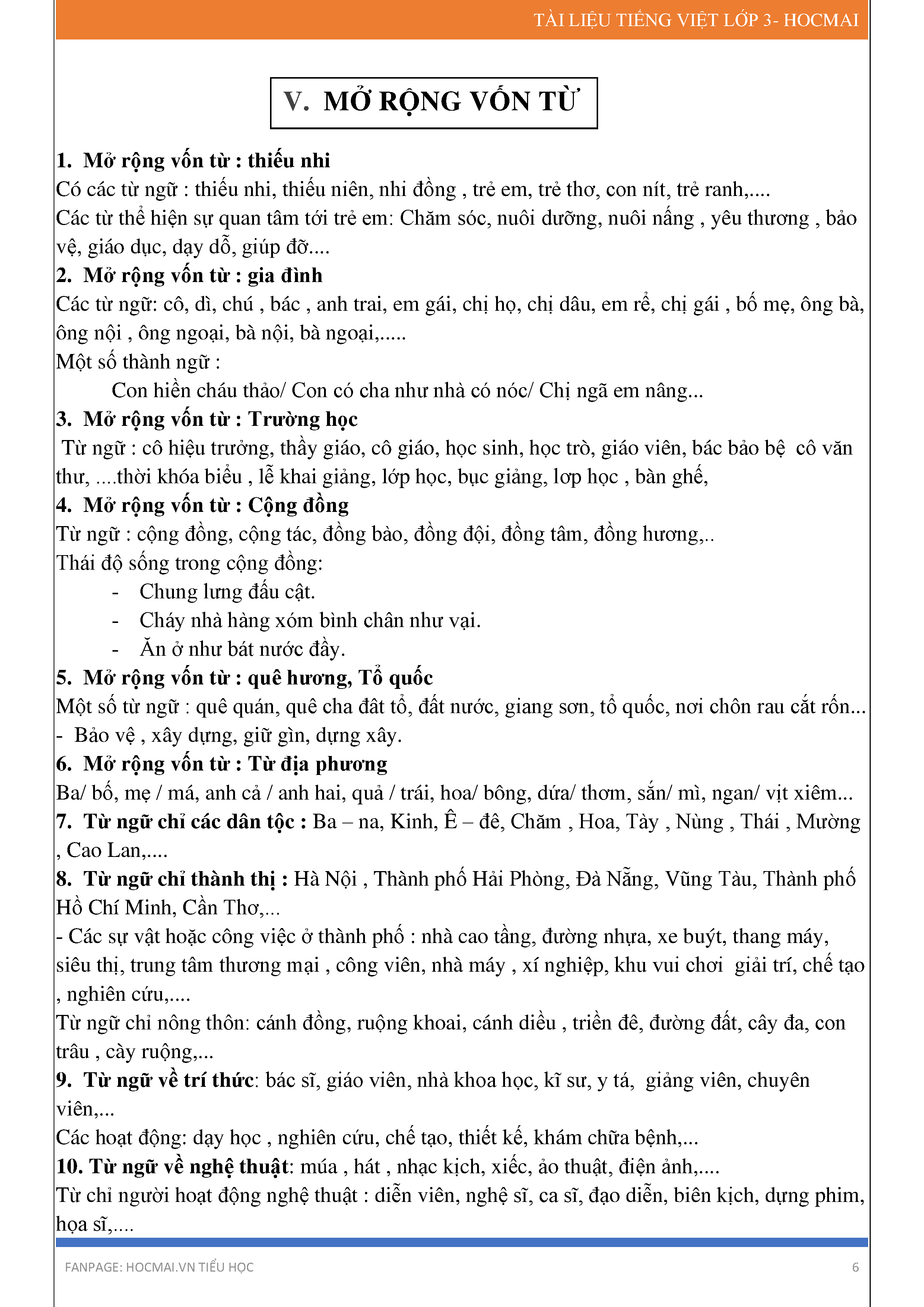 TỔNG HỢP KIẾN THỨC LUYỆN TỪ VÀ CÂU TIẾNG VIỆT LỚP 3