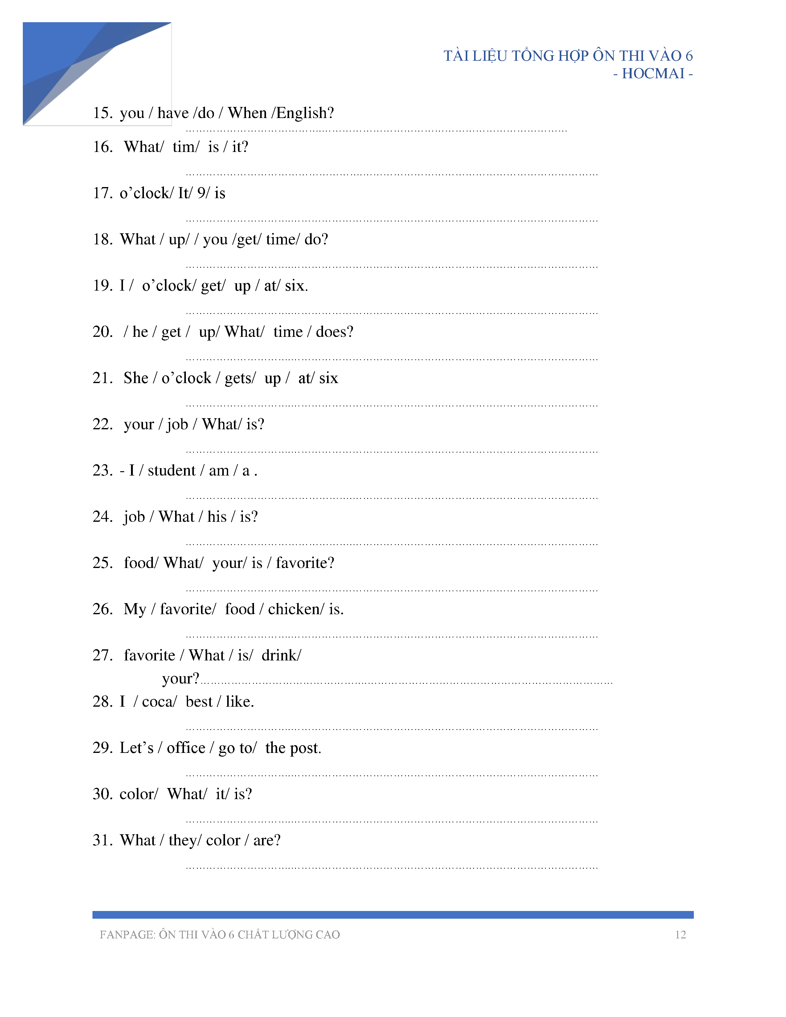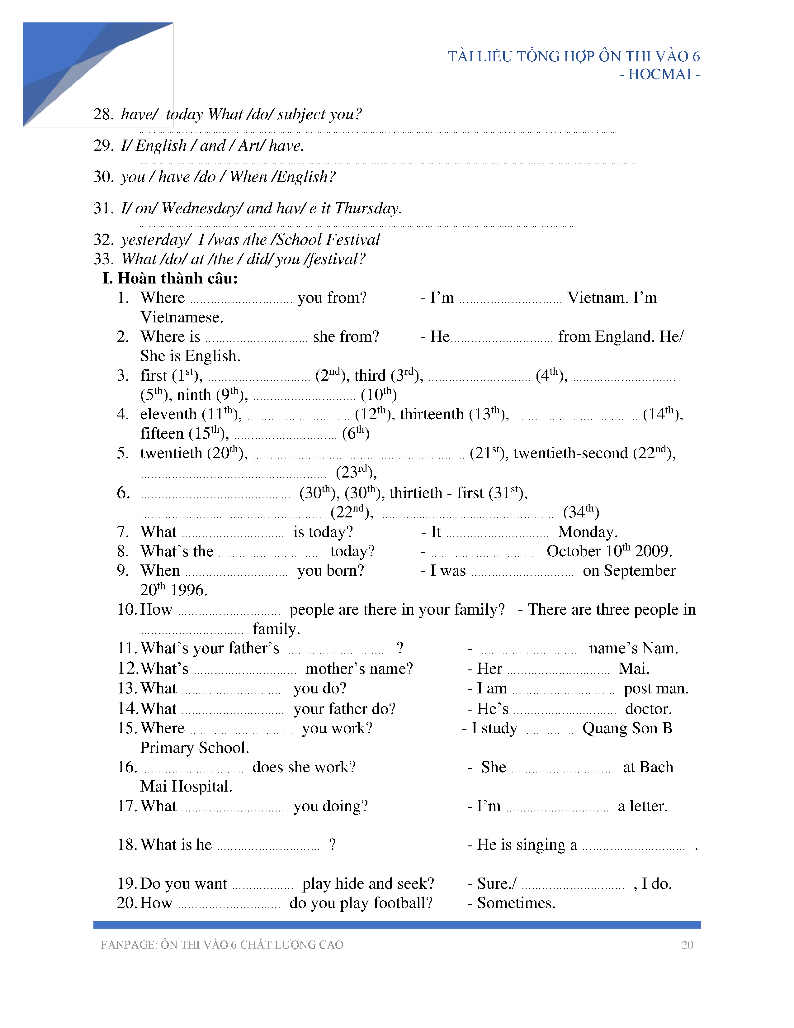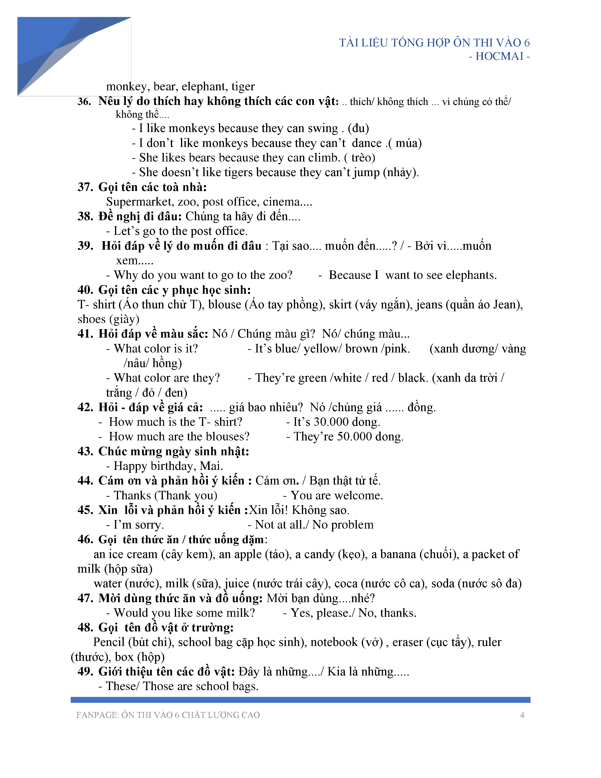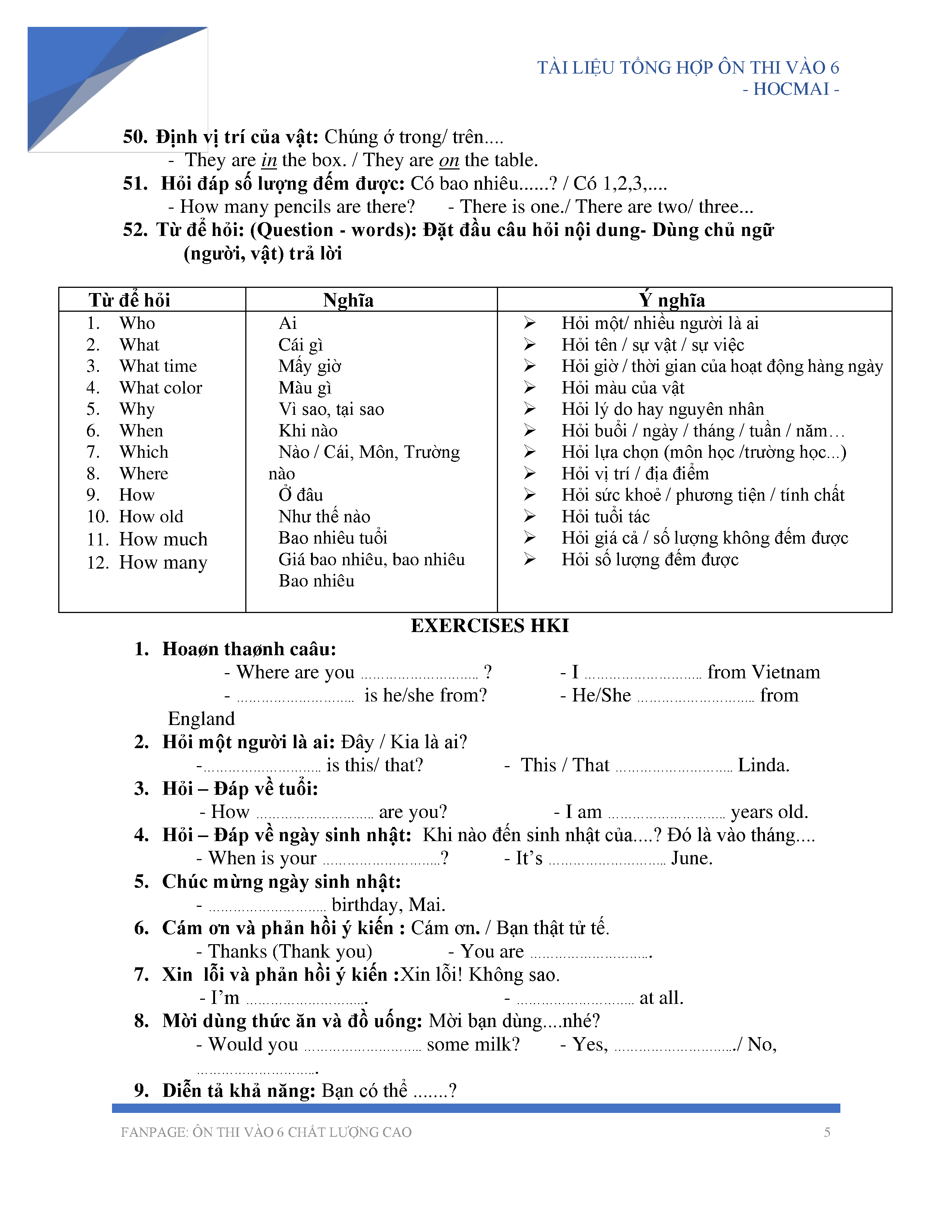 TỔNG HỢP TOÀN BỘ KIẾN THỨC NGỮ PHÁP VÀ BÀI TẬP TIẾNG ANH TIỂU HỌC