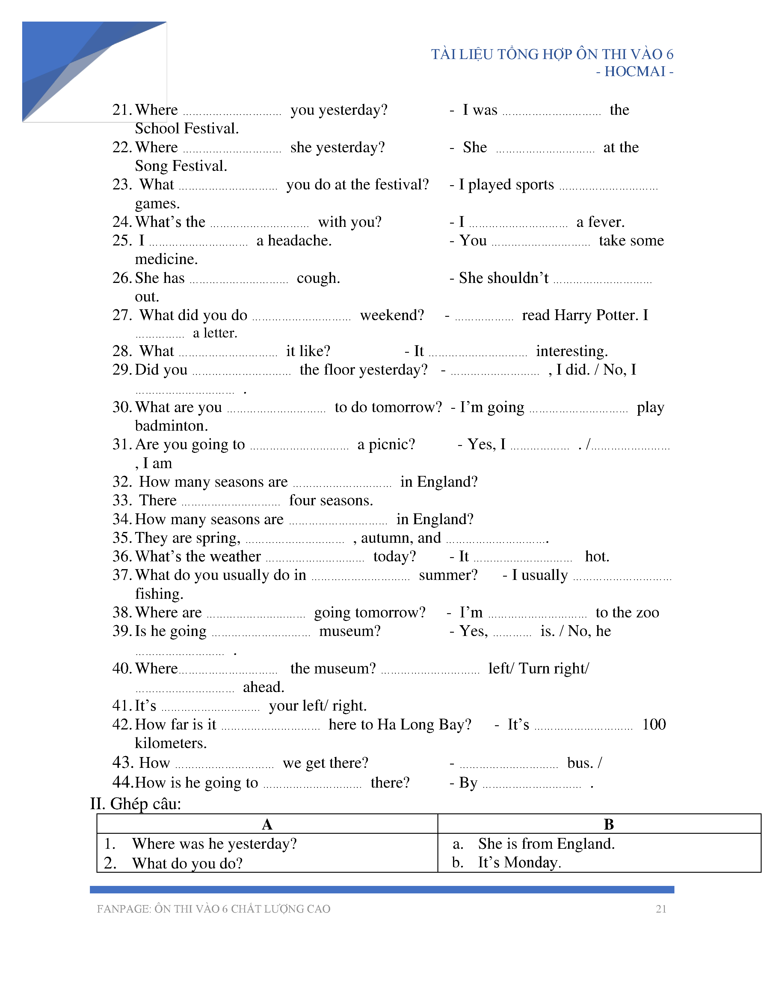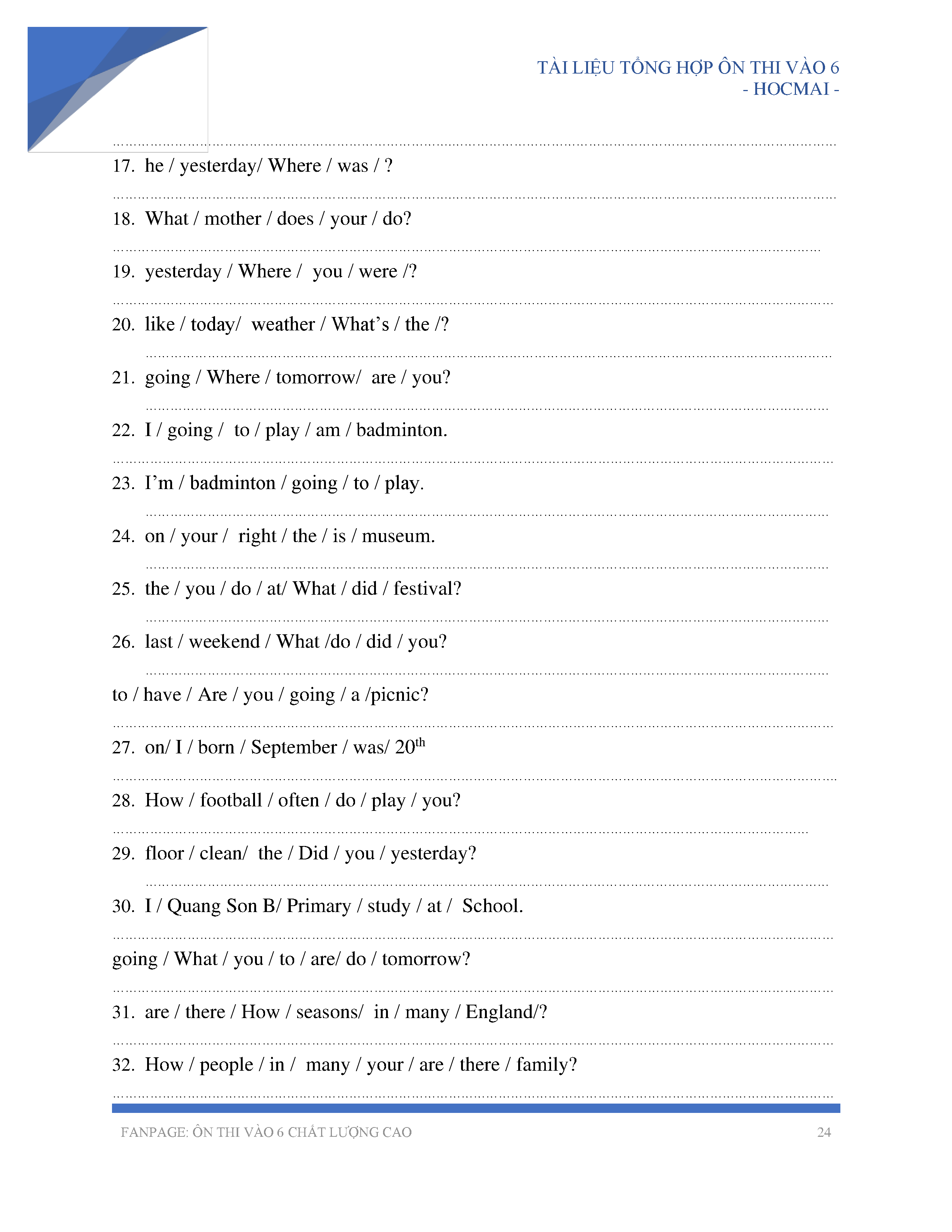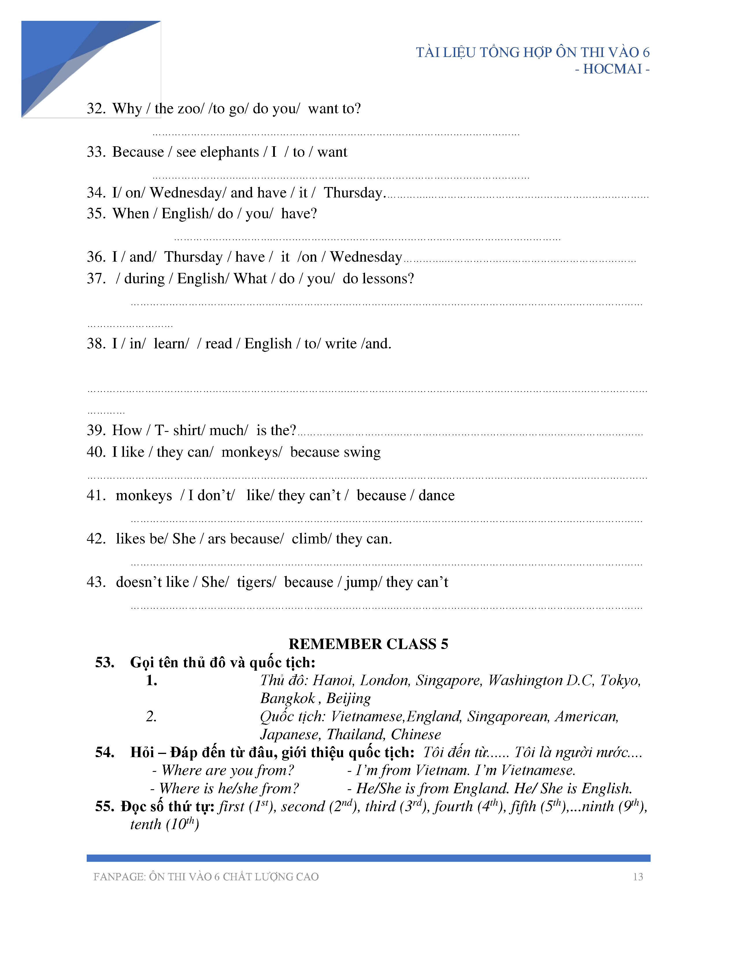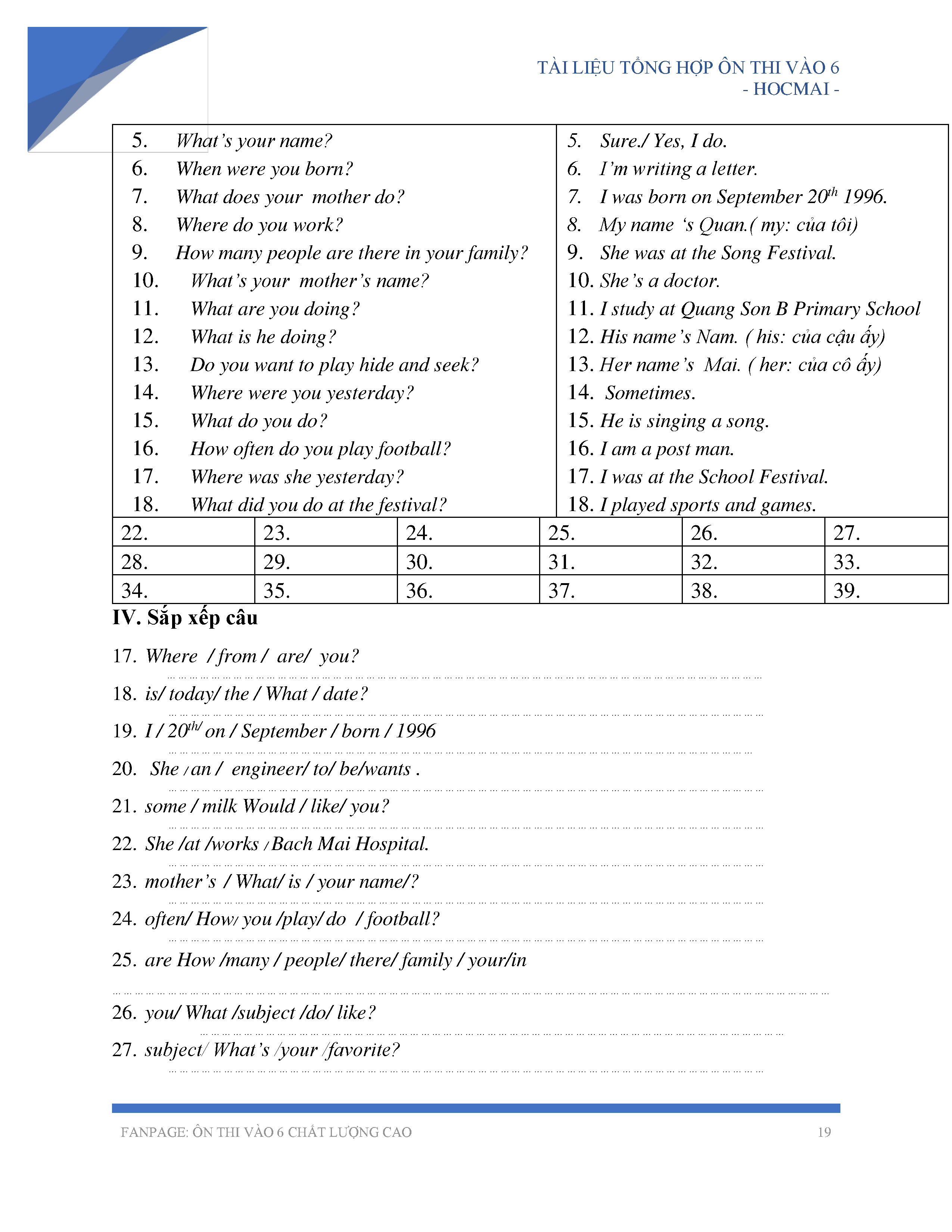 TỔNG HỢP TOÀN BỘ KIẾN THỨC NGỮ PHÁP VÀ BÀI TẬP TIẾNG ANH TIỂU HỌC