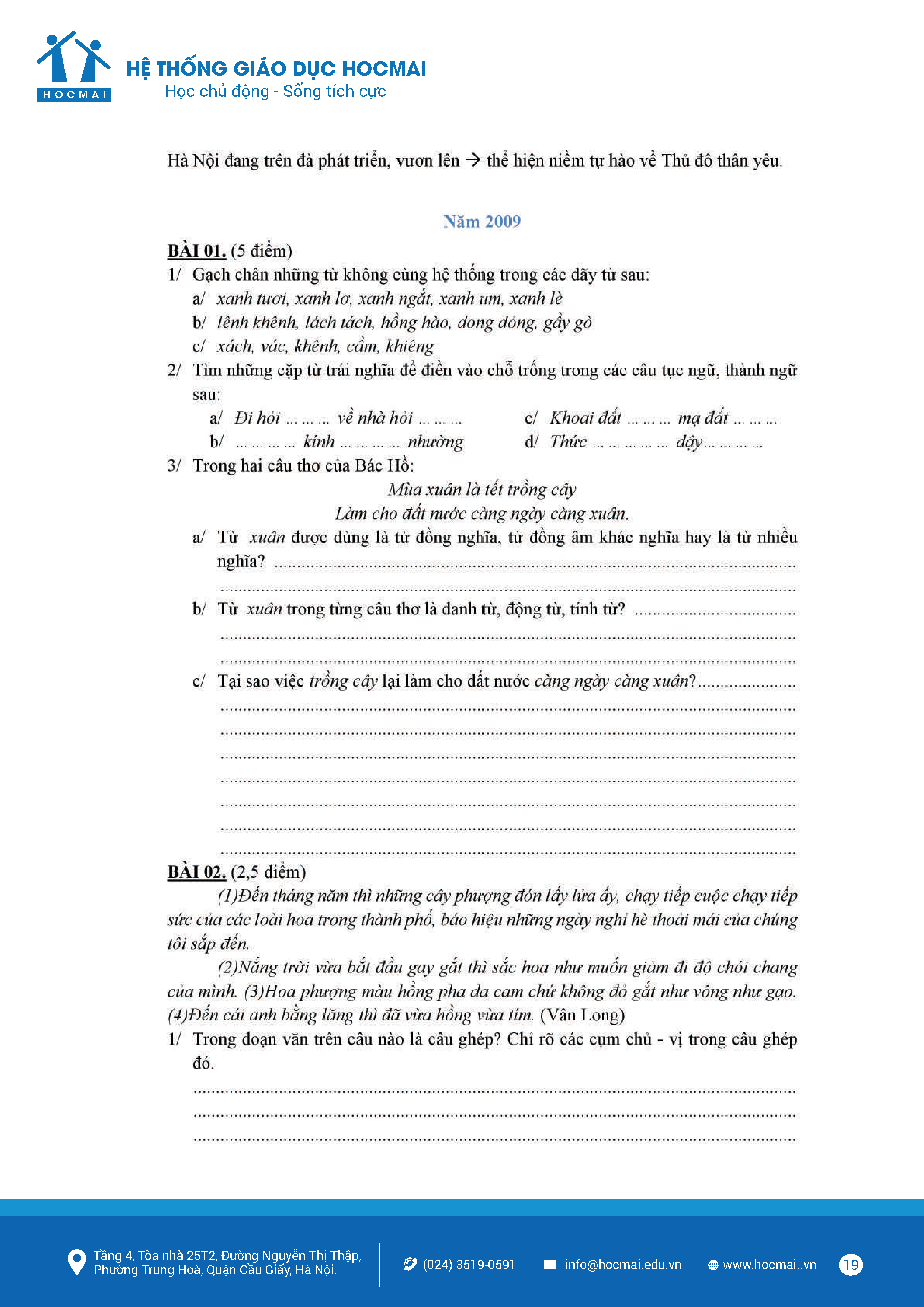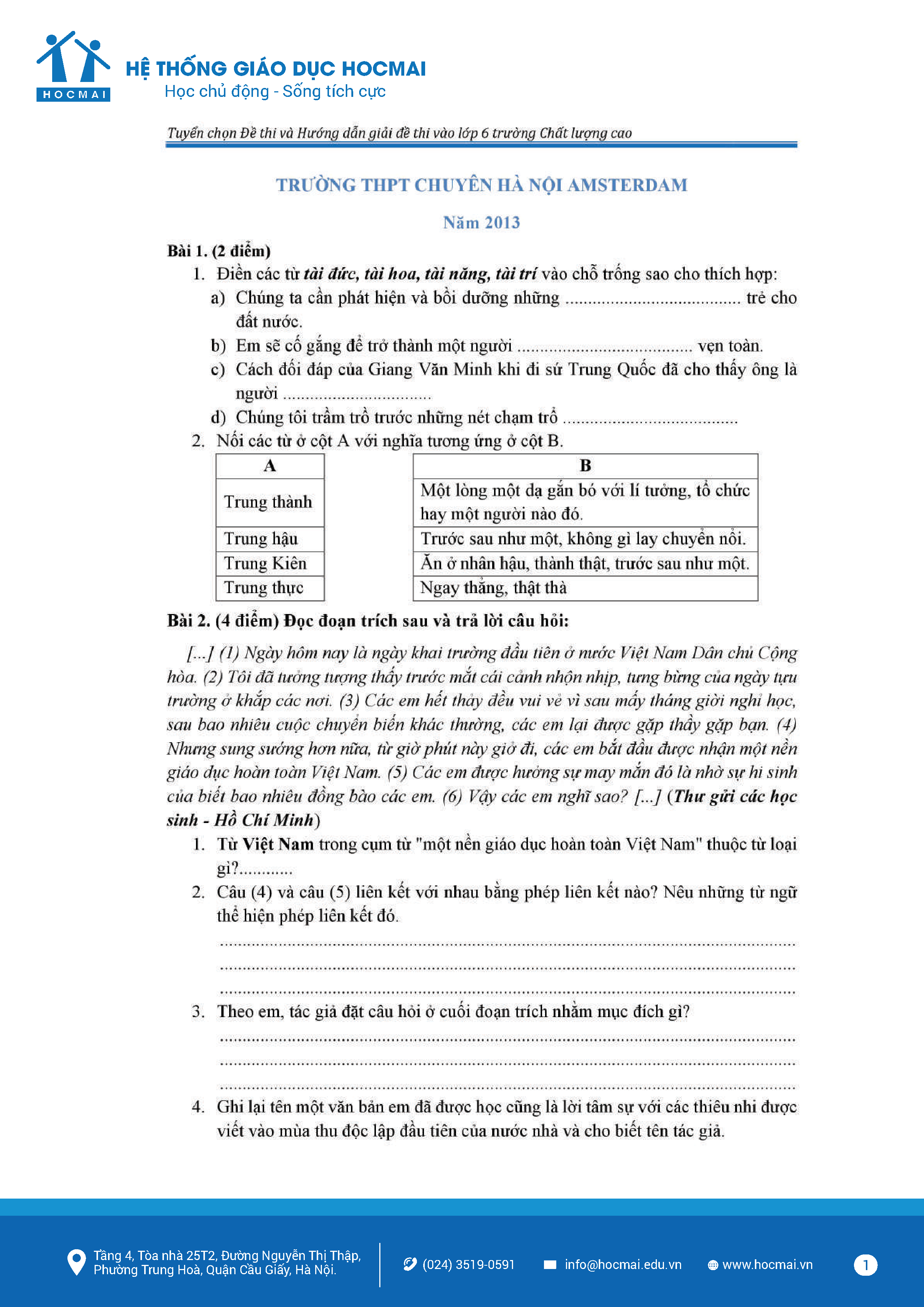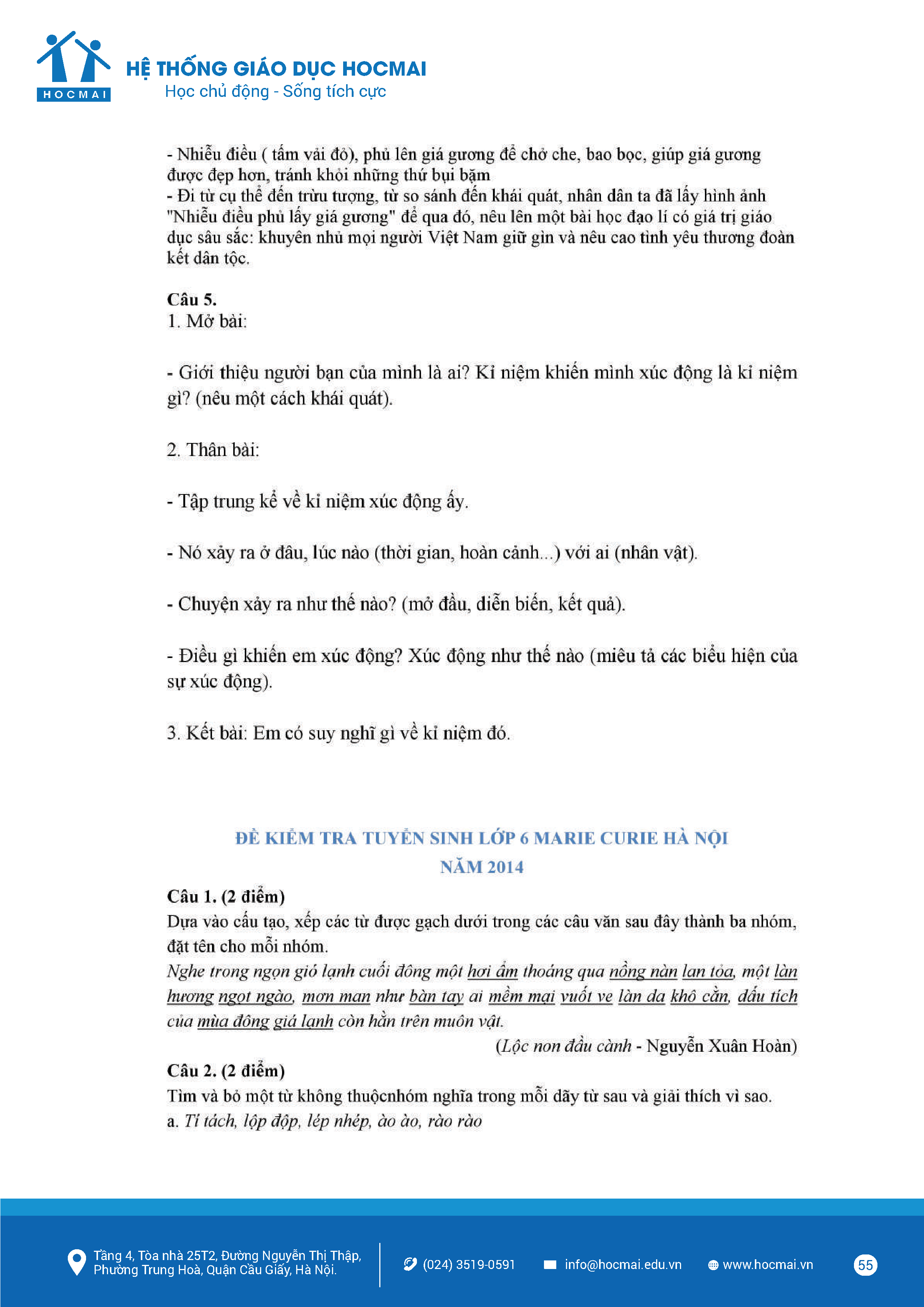 TỔNG HỢP ĐỀ THI VÀO 6 CÁC TRƯỜNG CLC HÀ NỘI
