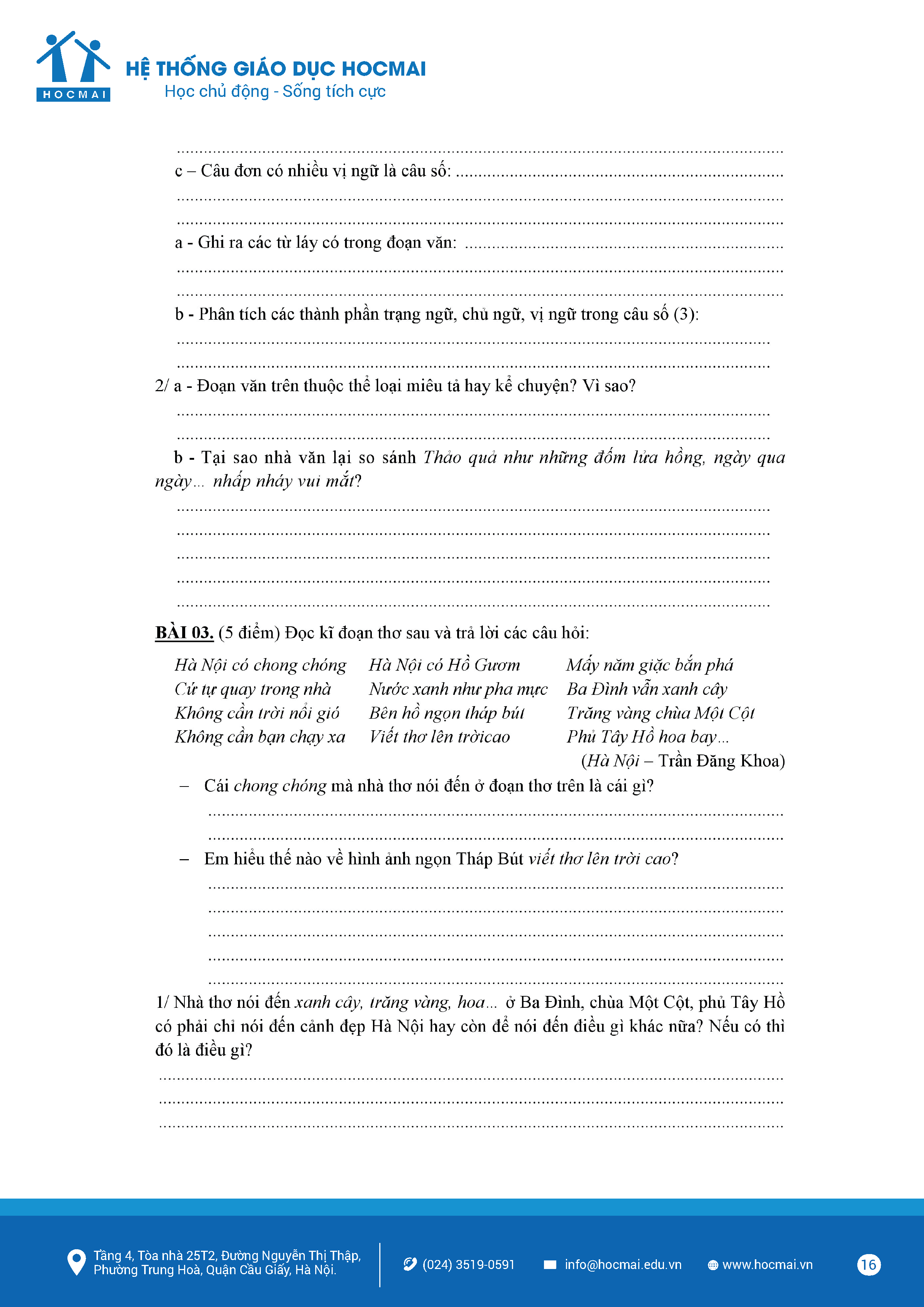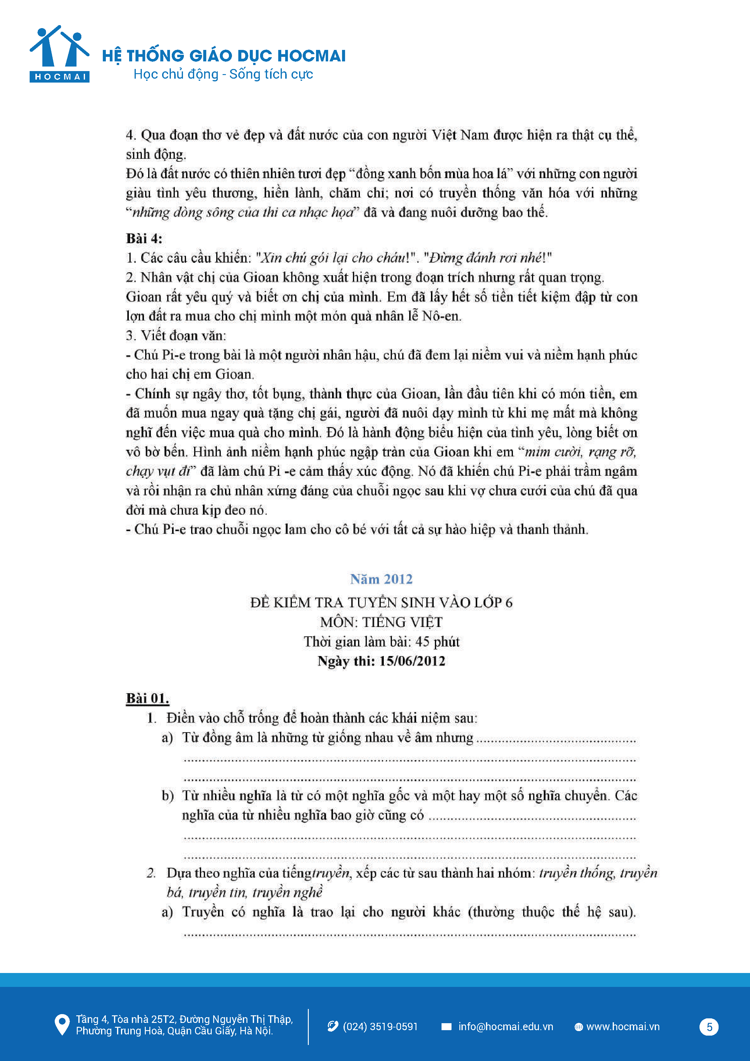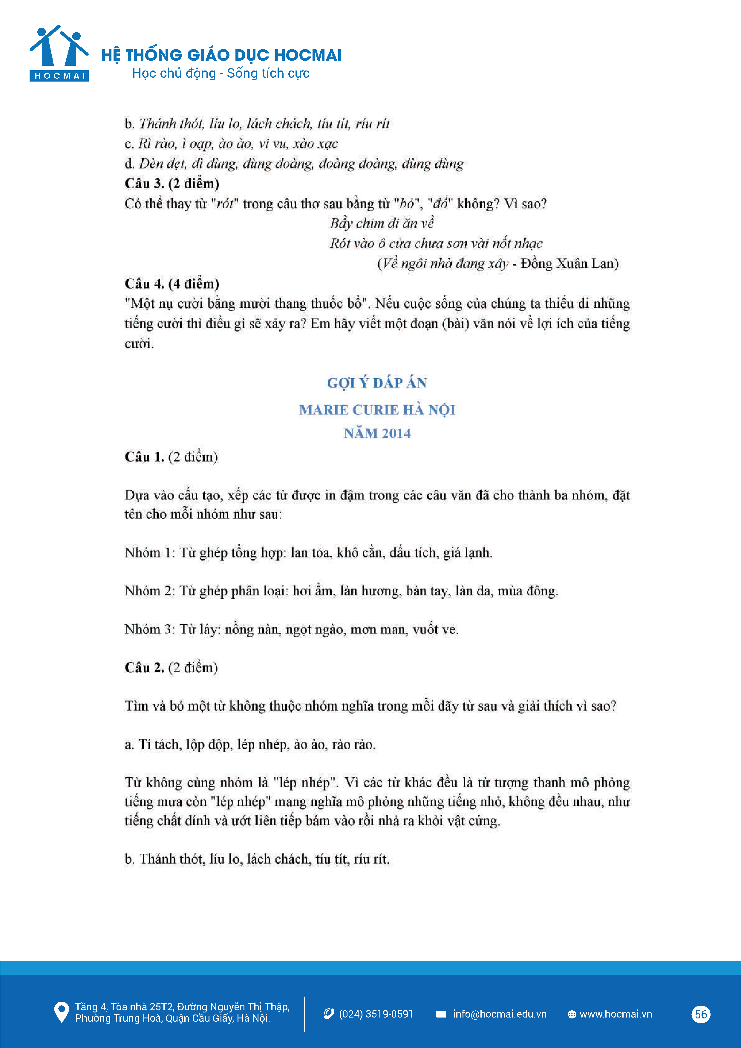 TỔNG HỢP ĐỀ THI VÀO 6 CÁC TRƯỜNG CLC HÀ NỘI