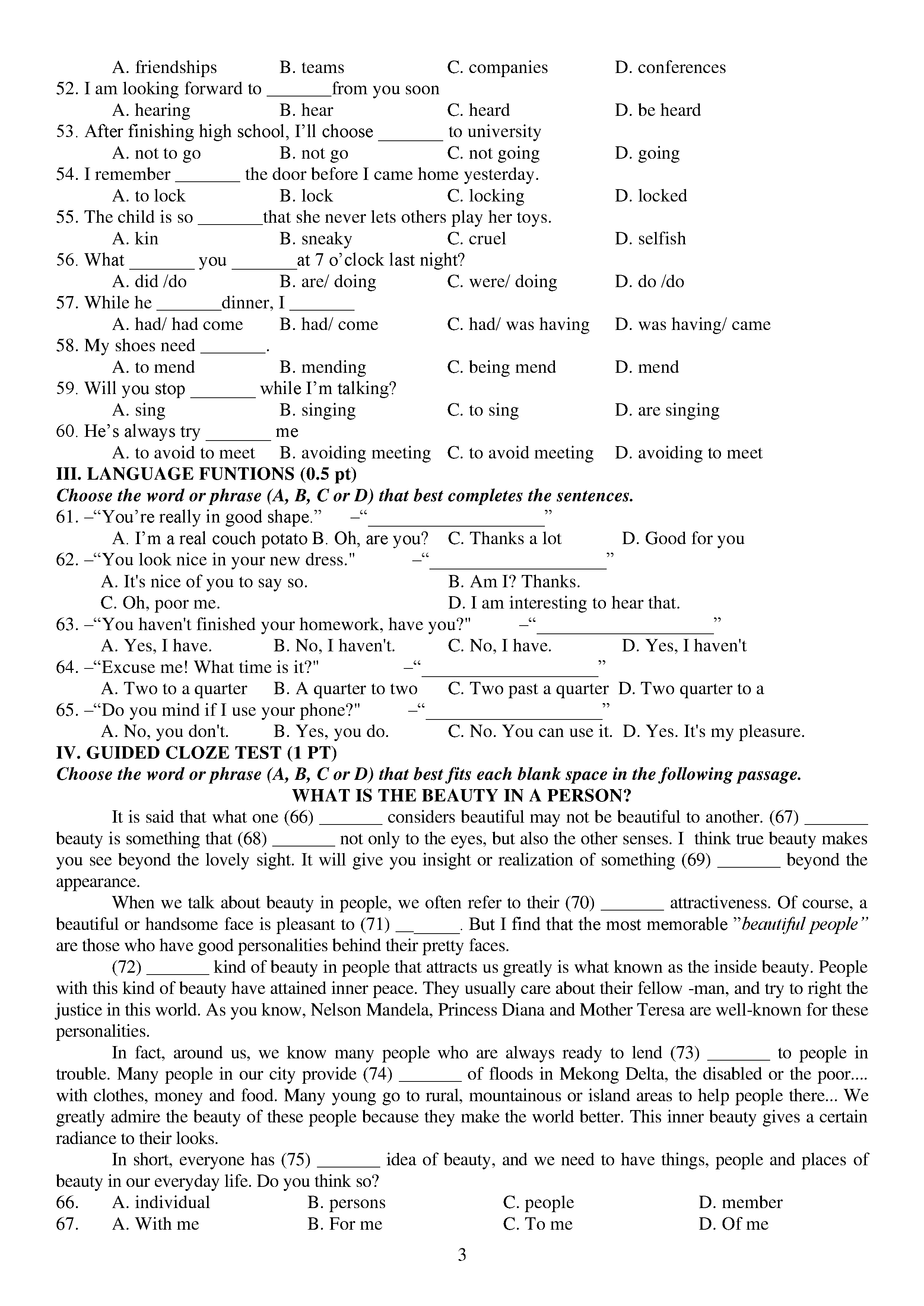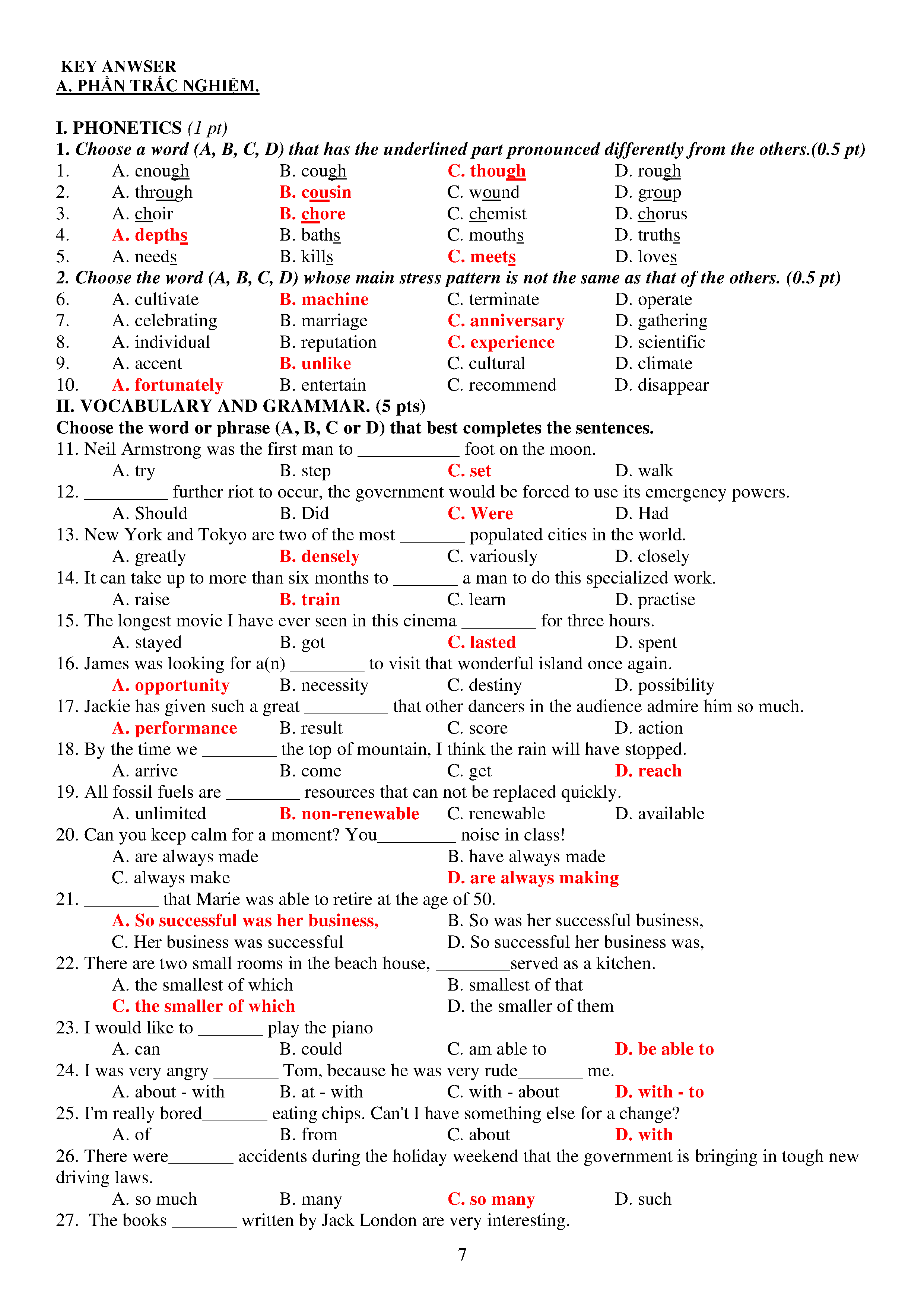KỲ THI TUYỂN SINH LỚP 10 THPT CHUYÊN ANH (Đề thi thử) NĂM HỌC 2020-2021