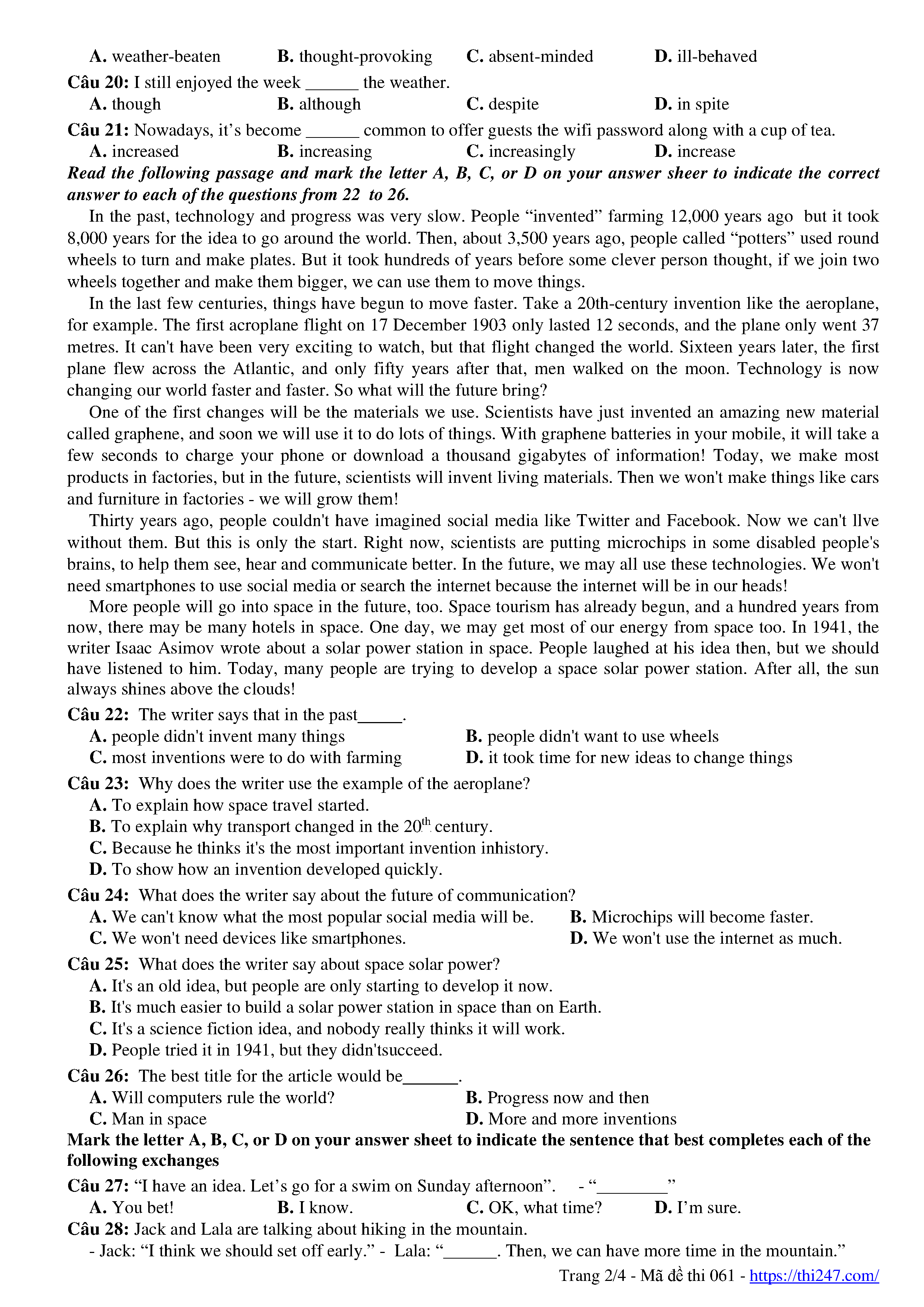 ĐỀ KHẢO SÁT CHẤT LƯỢNG LẦN 1 - MÔN TIẾNG ANH - Năm học 2019 – 2020 - TRƯỜNG THPT NGUYỄN VIẾT XUÂN