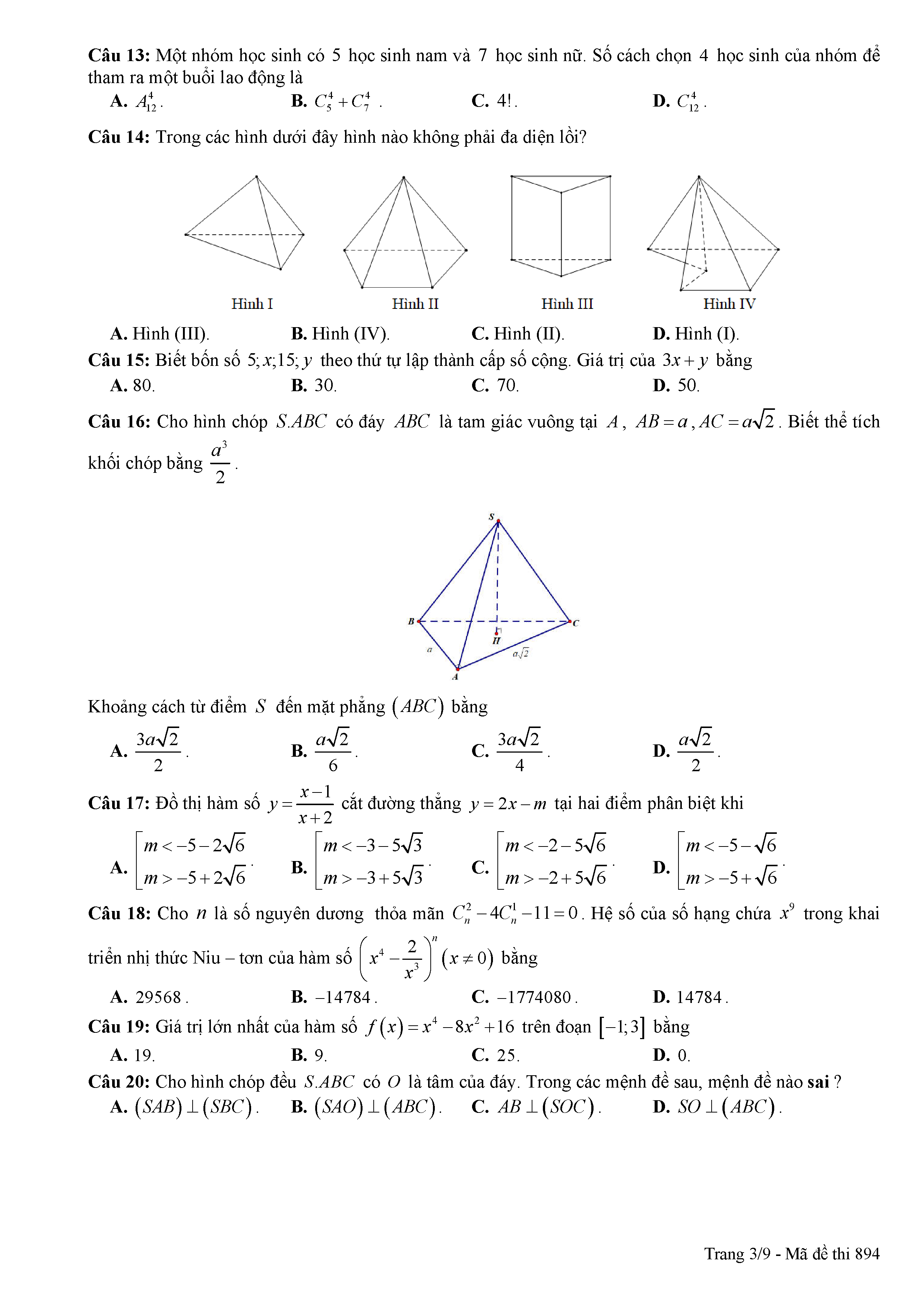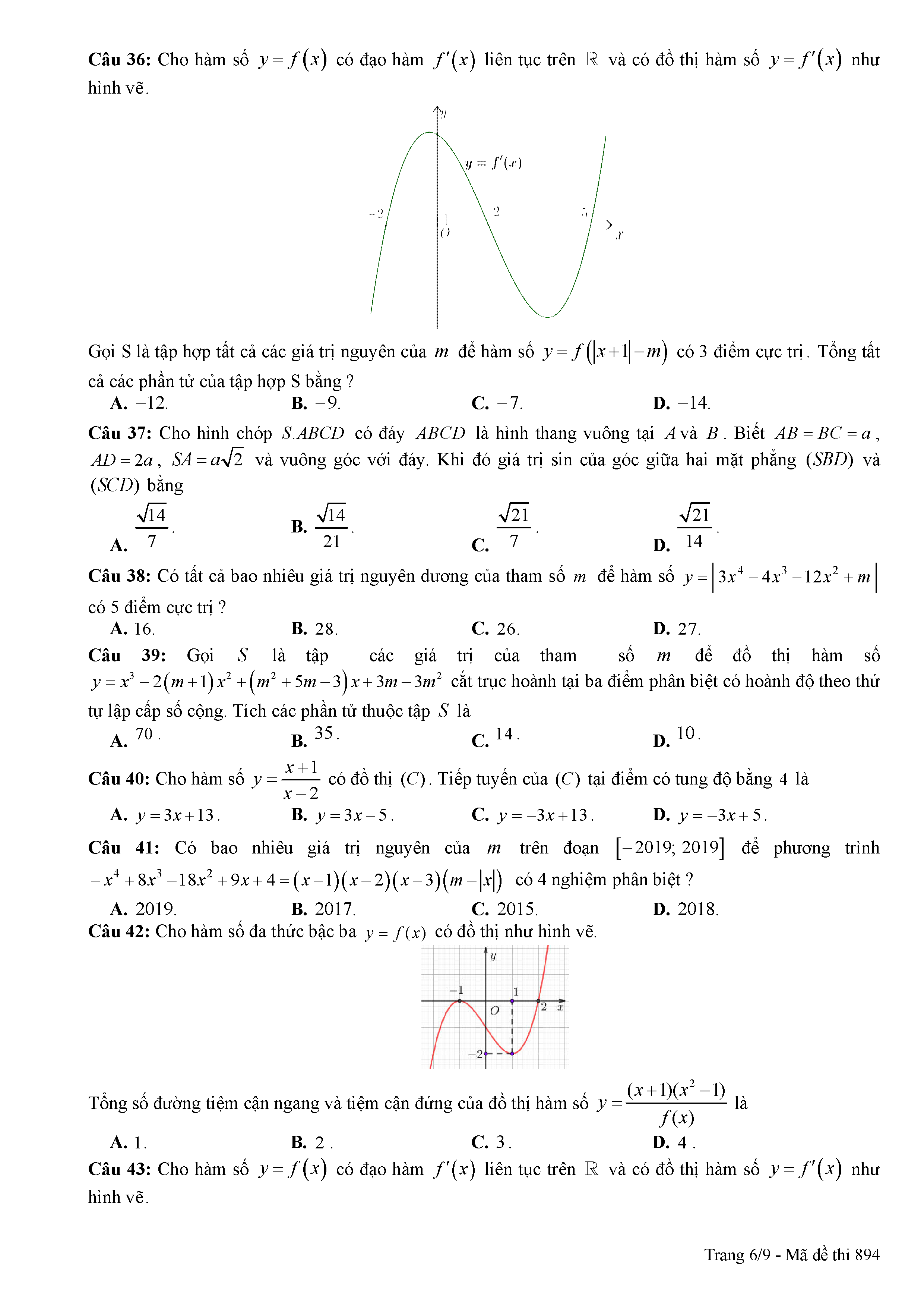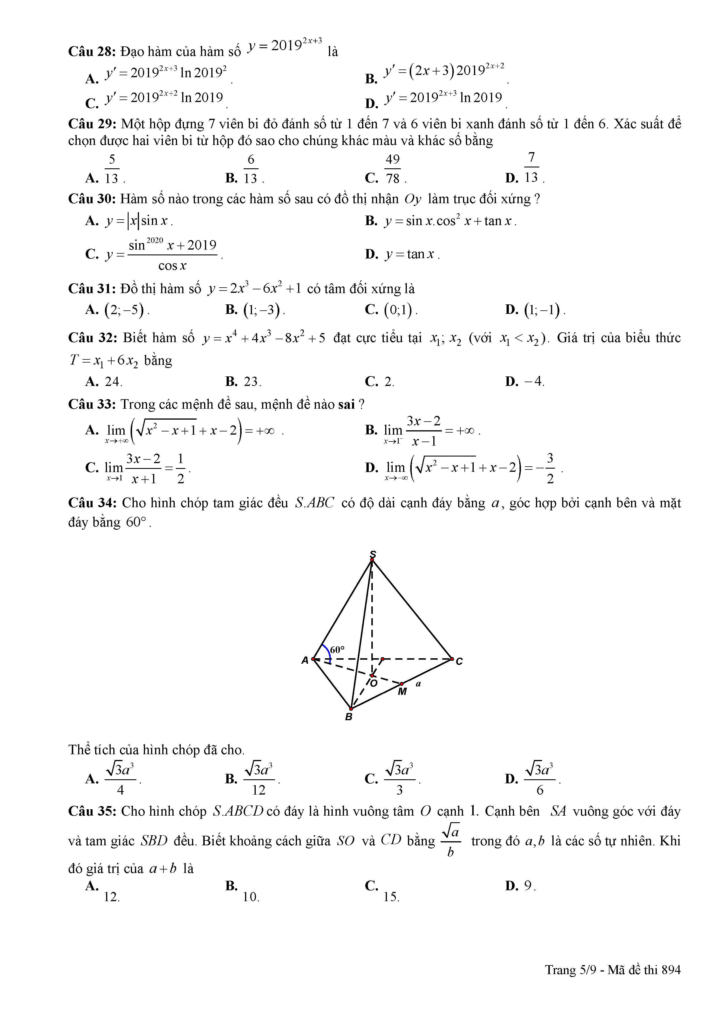 ĐỀ THI THỬ KỲ THI THPT QUỐC GIA LẦN 1 - MÔN TOÁN - NĂM 2019 - 2020 - TRƯỜNG THPT NGÔ SĨ LIÊN - BẮC GIANG