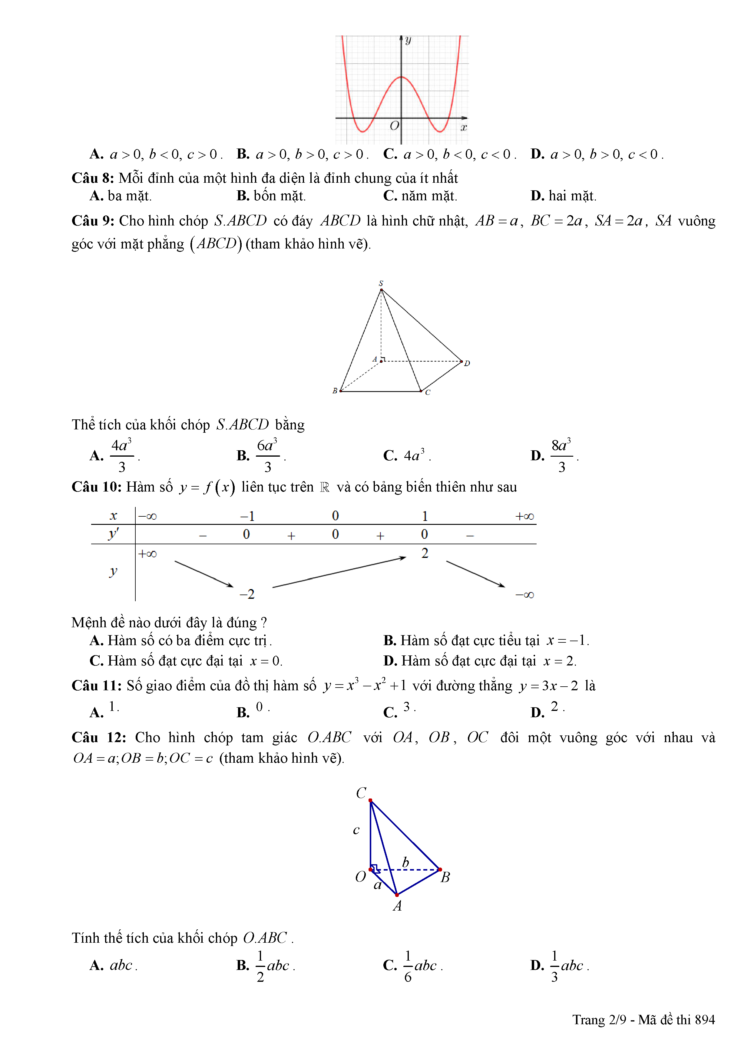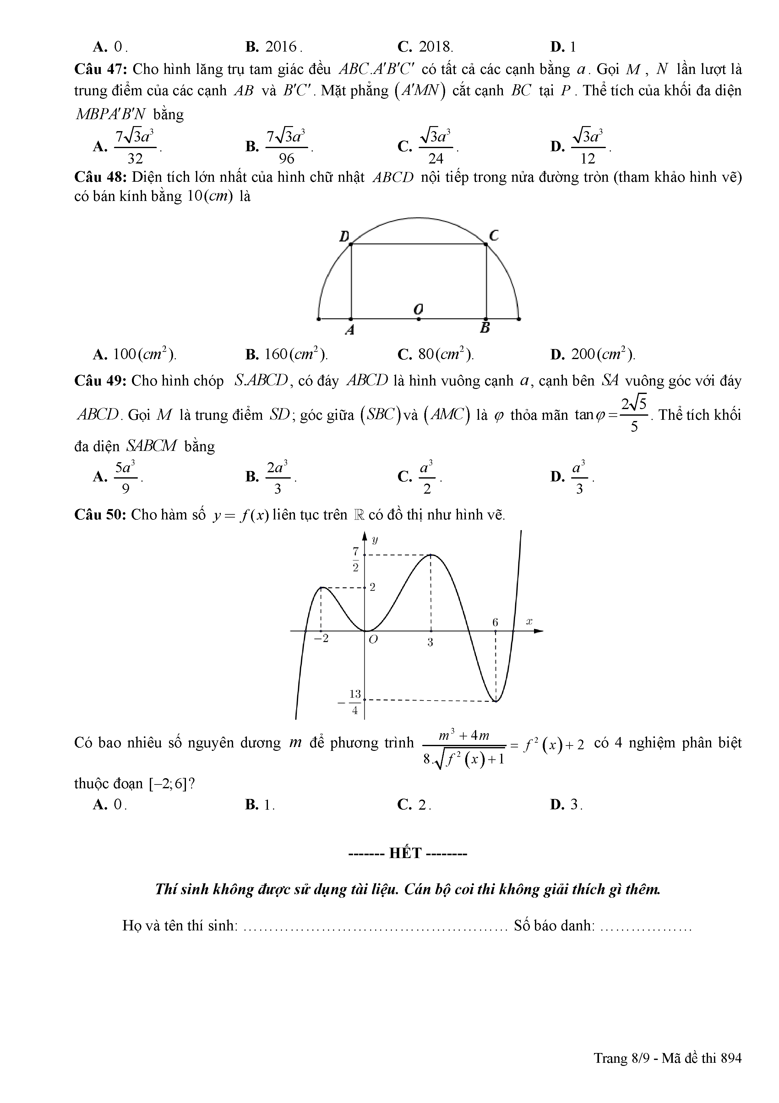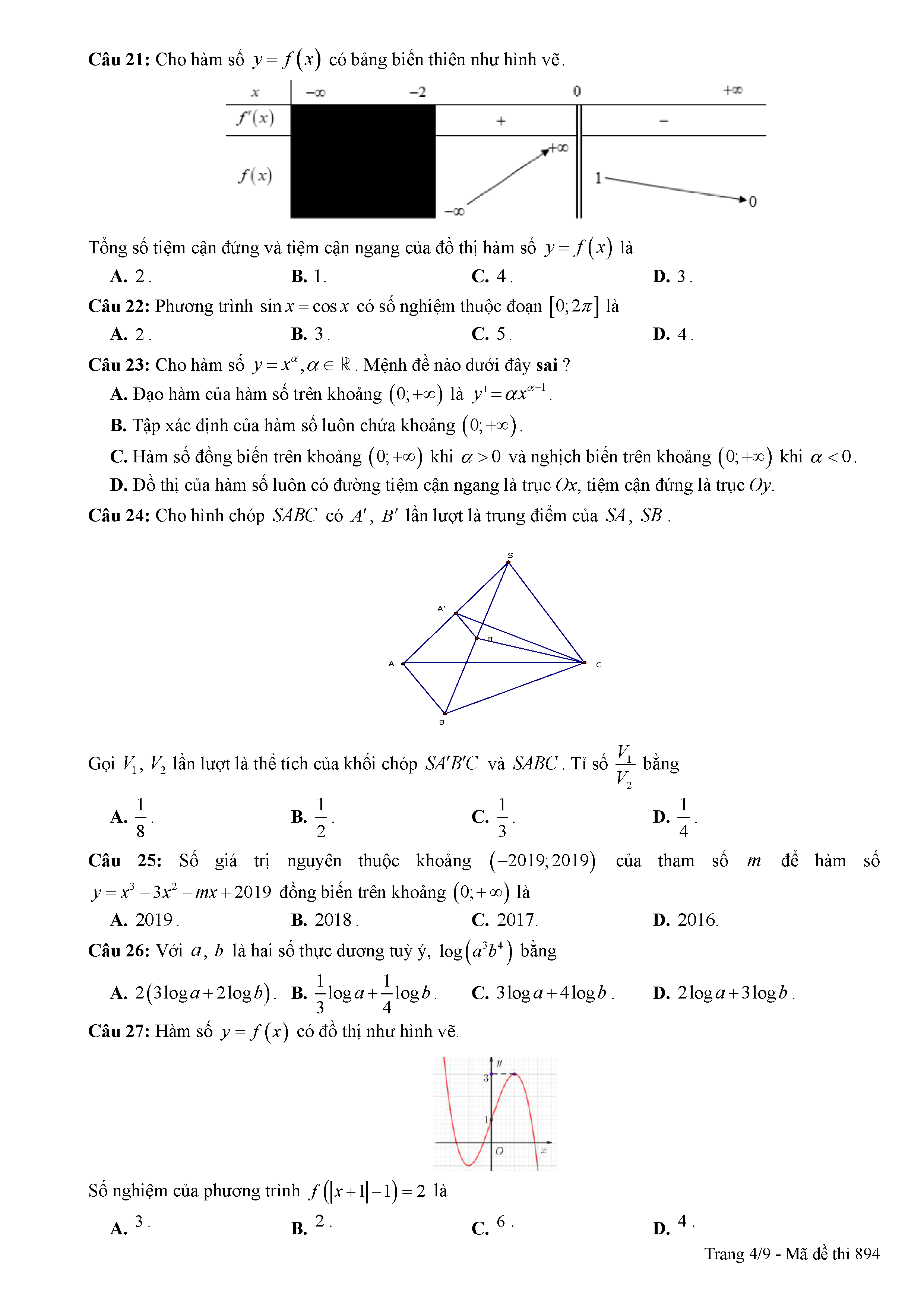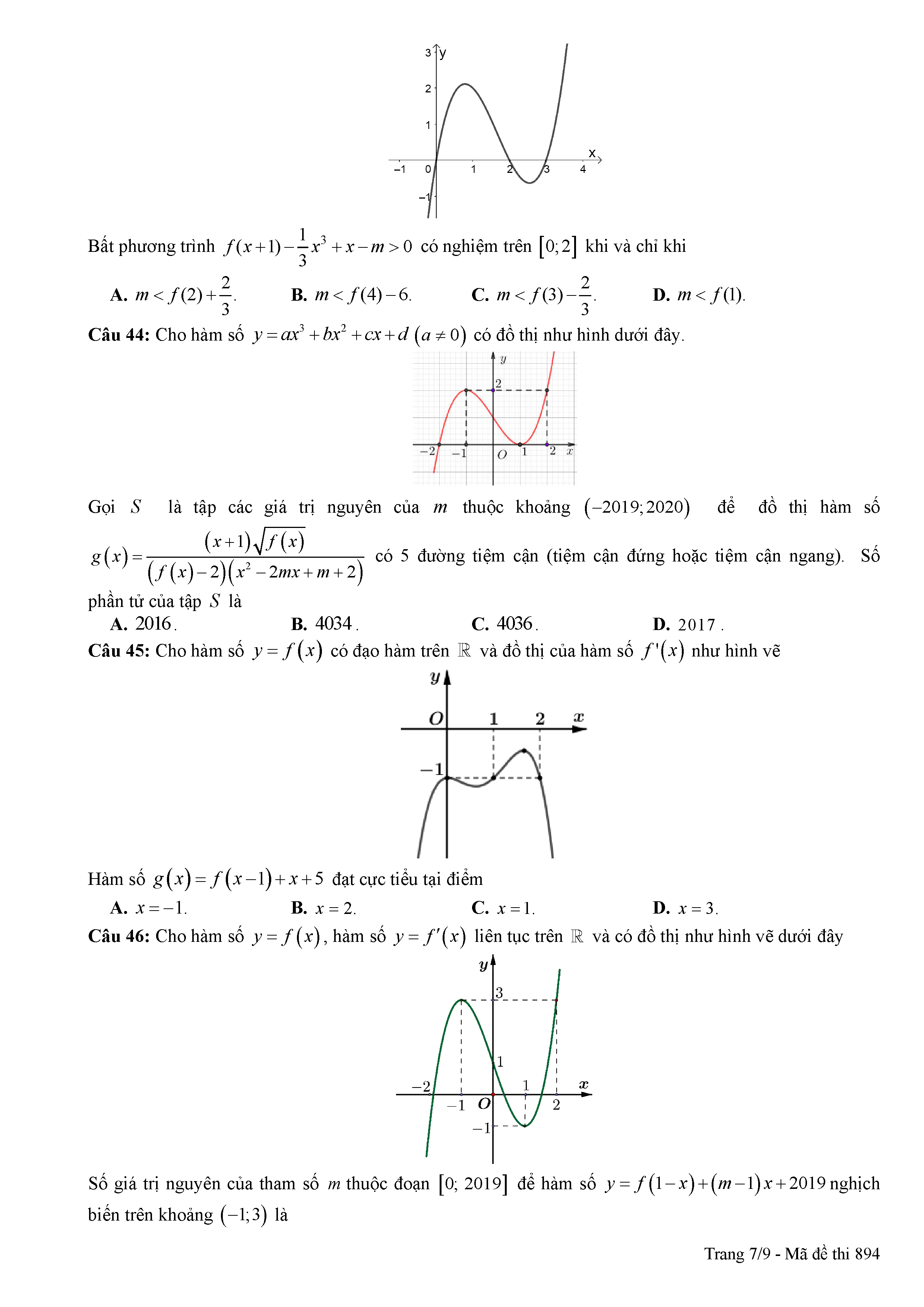 ĐỀ THI THỬ KỲ THI THPT QUỐC GIA LẦN 1 - MÔN TOÁN - NĂM 2019 - 2020 - TRƯỜNG THPT NGÔ SĨ LIÊN - BẮC GIANG