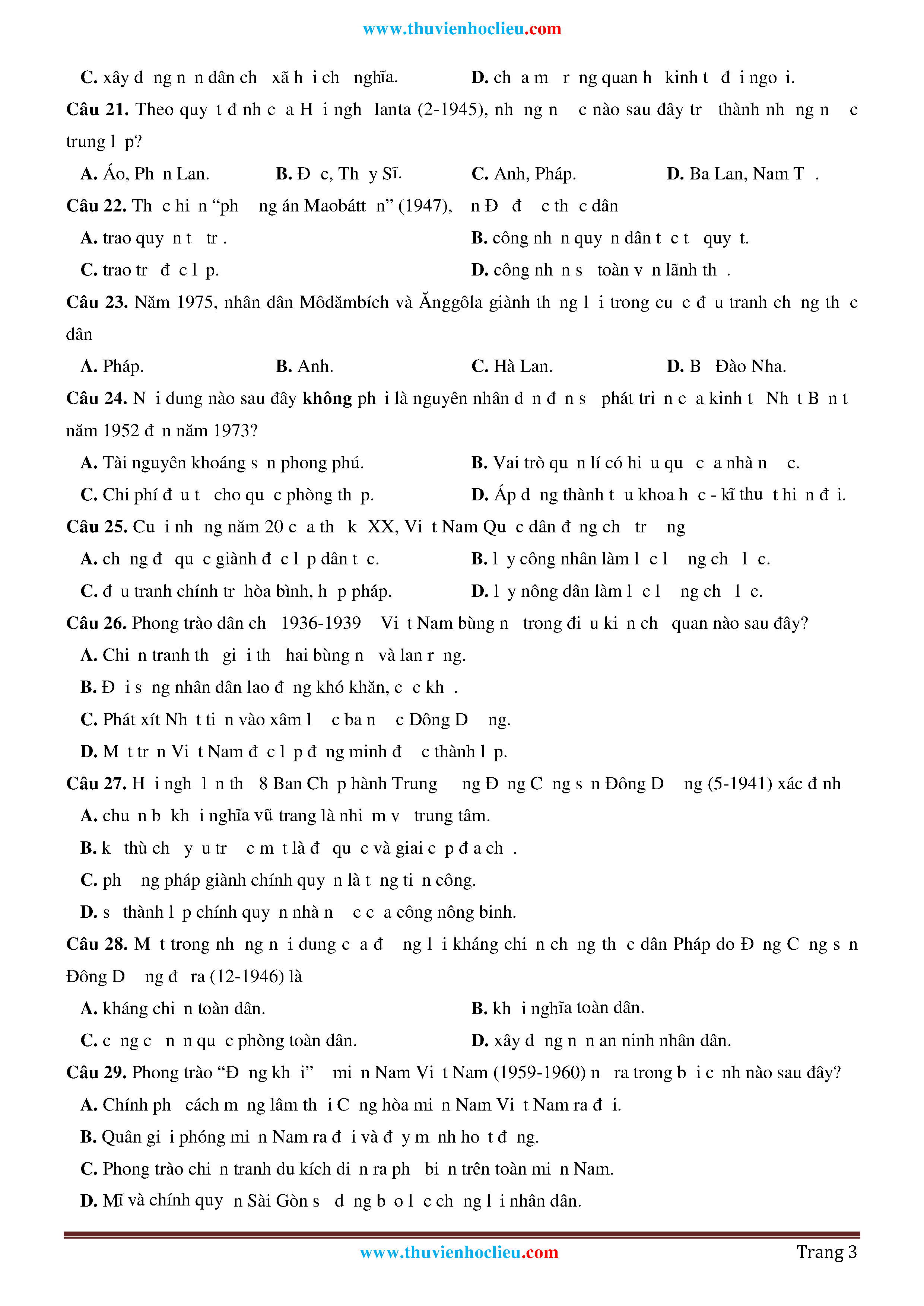 Đề thi tham khảoTHPT năm 2020 môn Lịch sử - Bộ GD - ĐT - lần 2