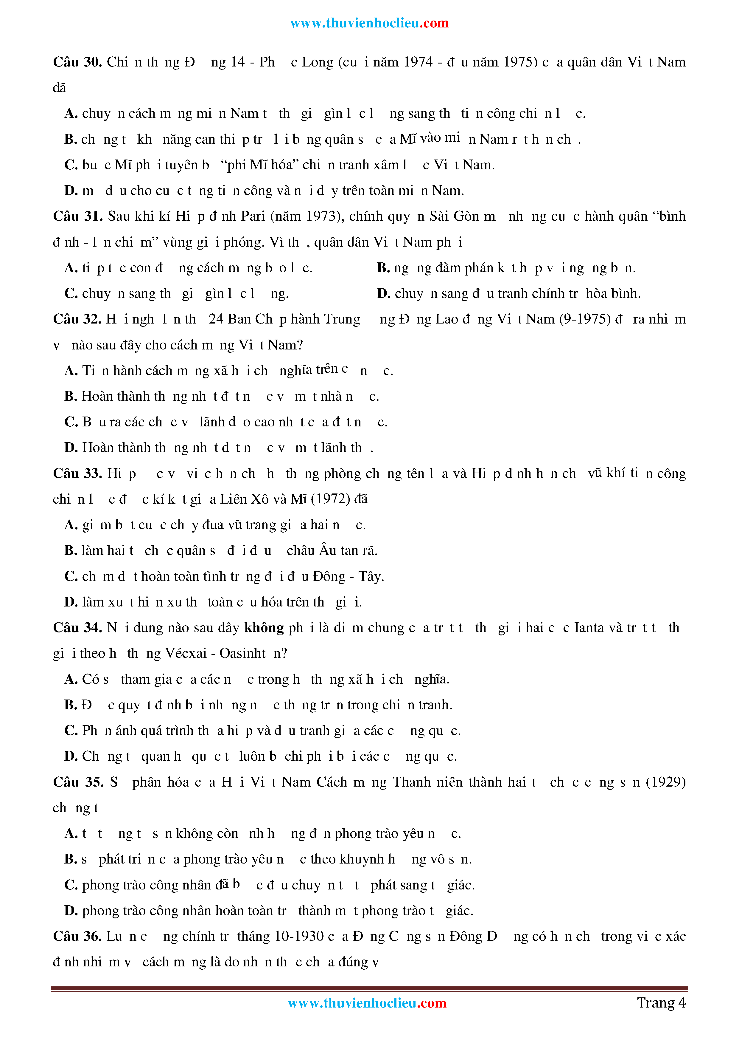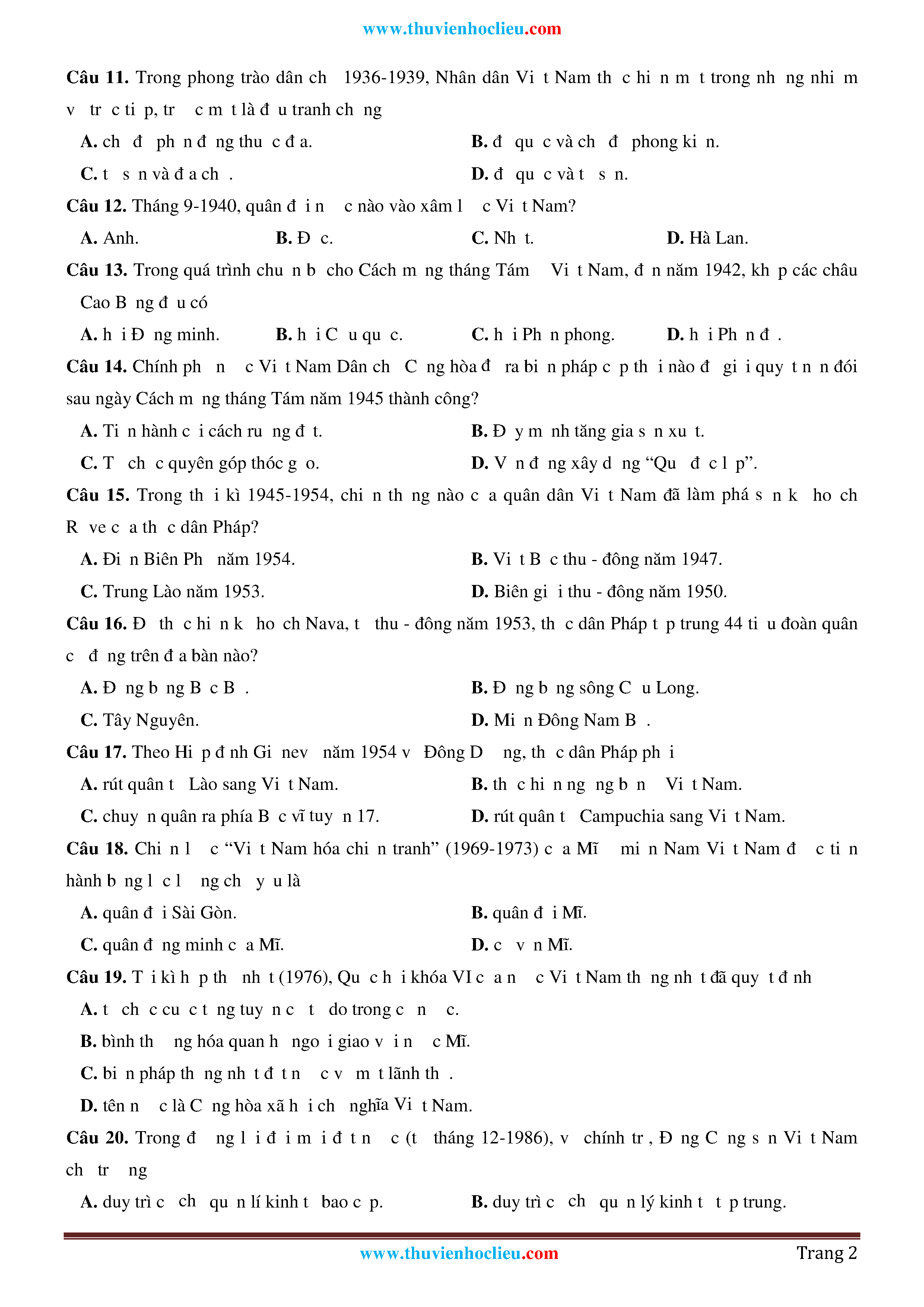 Đề thi tham khảoTHPT năm 2020 môn Lịch sử - Bộ GD - ĐT - lần 2