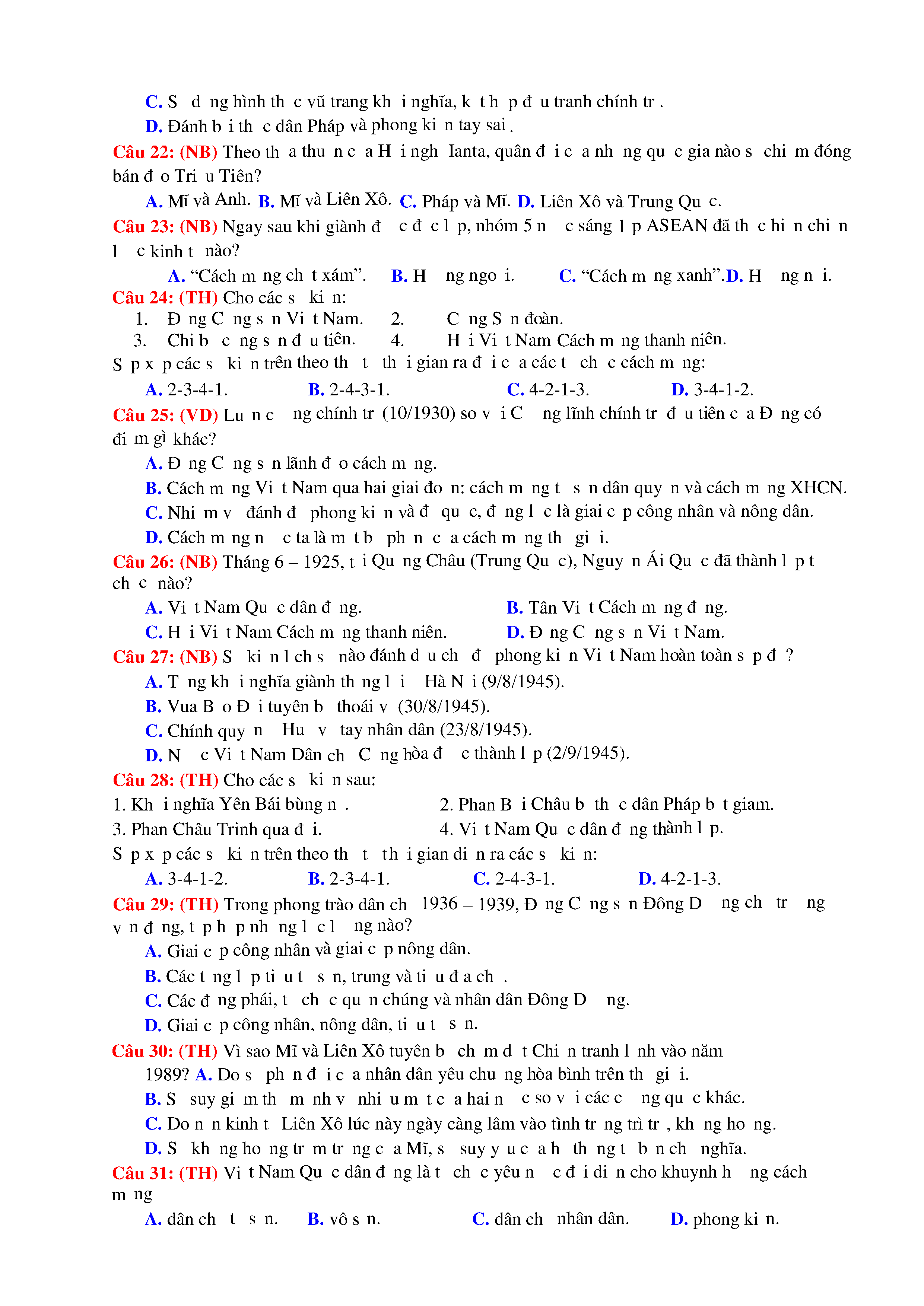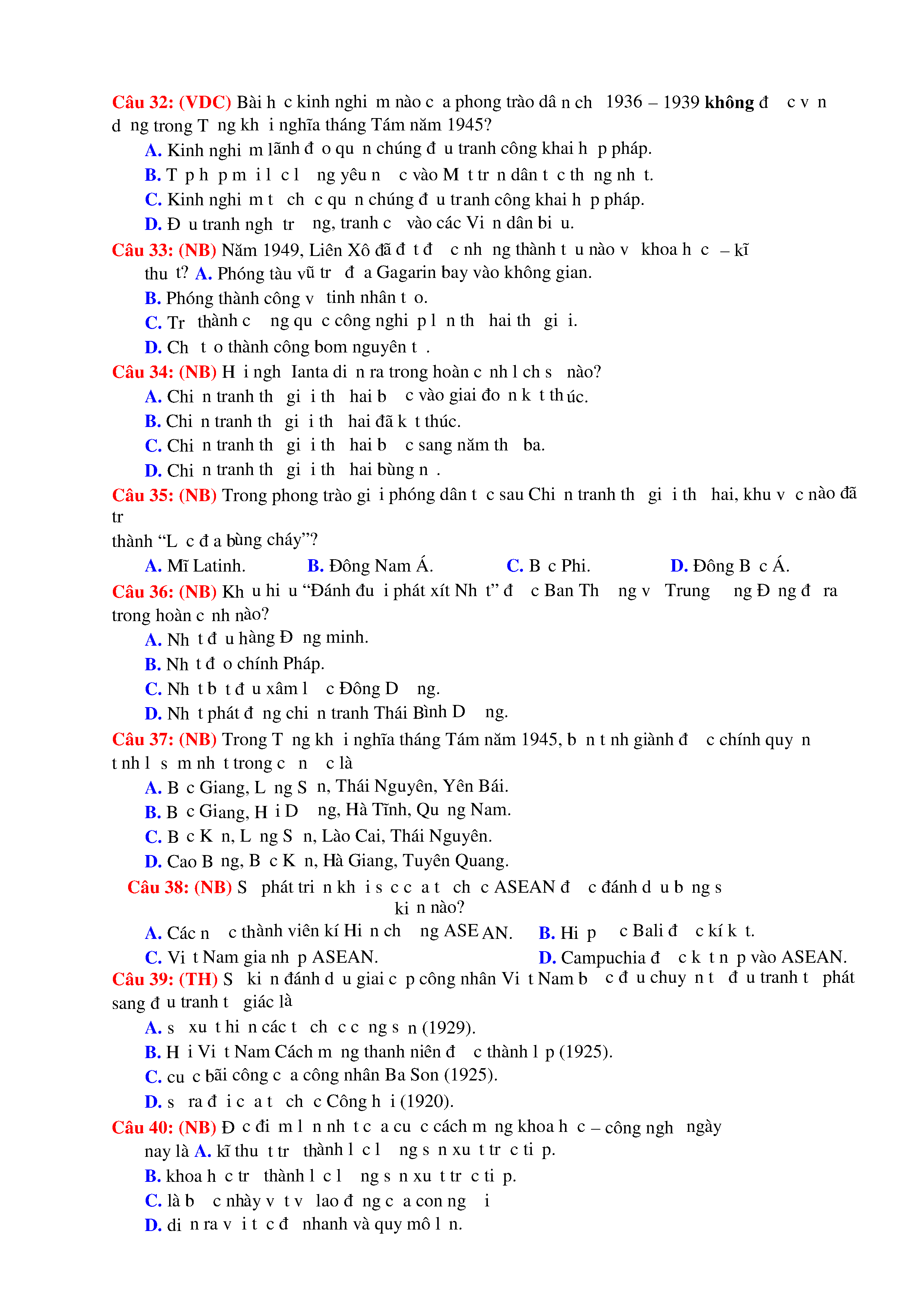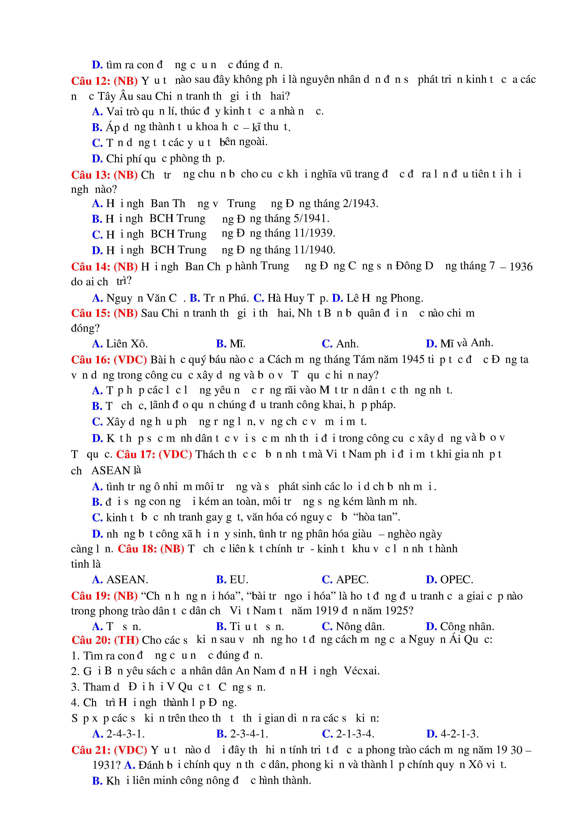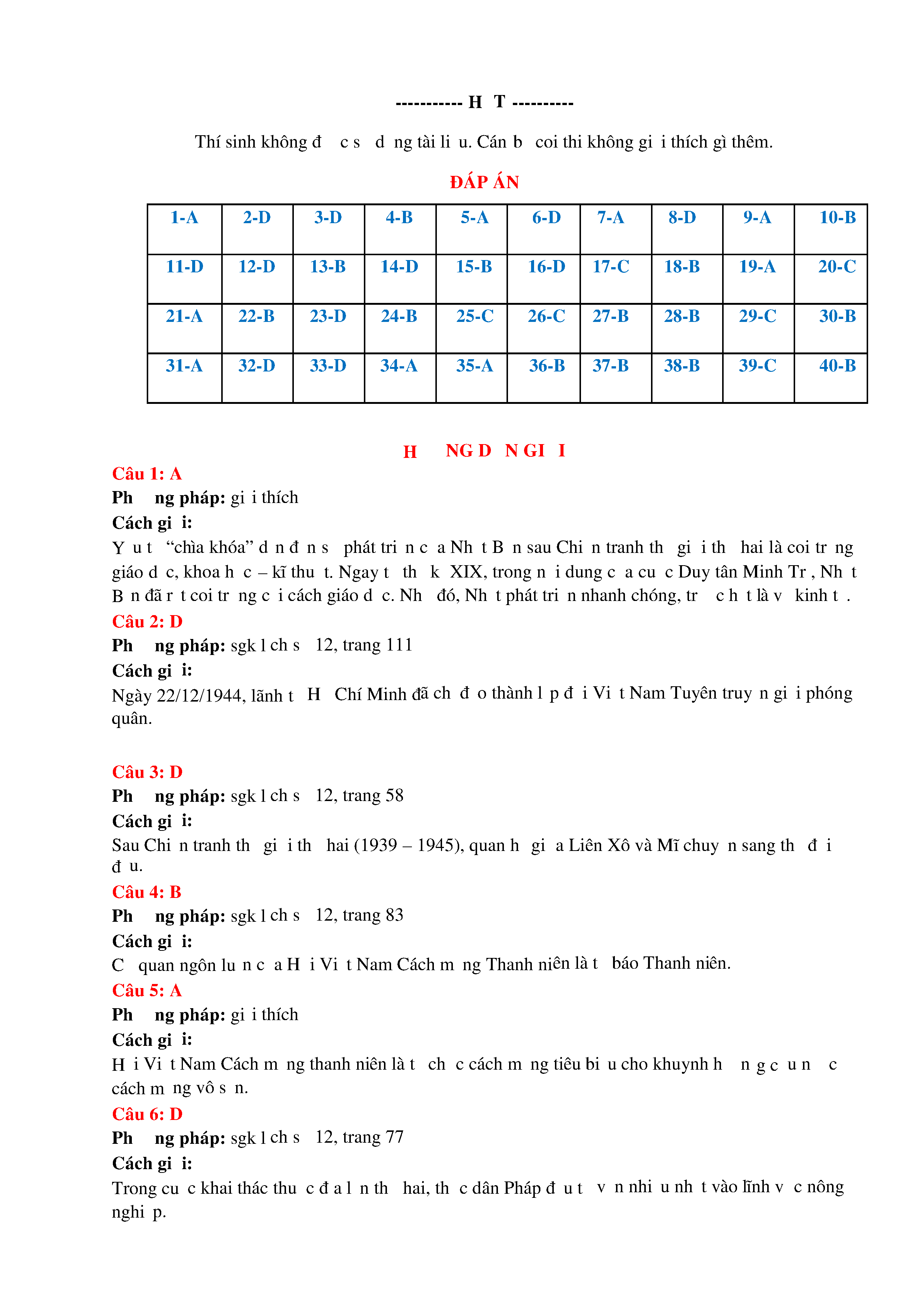 Đề thi thử THPT năm 2020 môn Lịch sử - Sở GD-ĐT Hưng Yên - lần 1