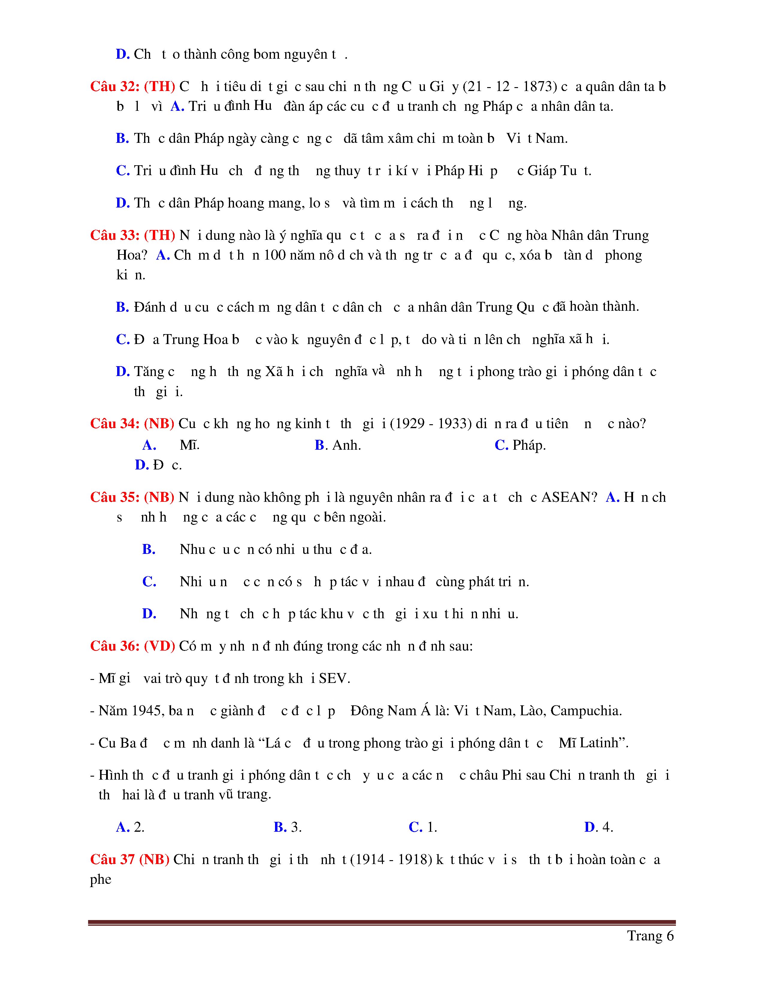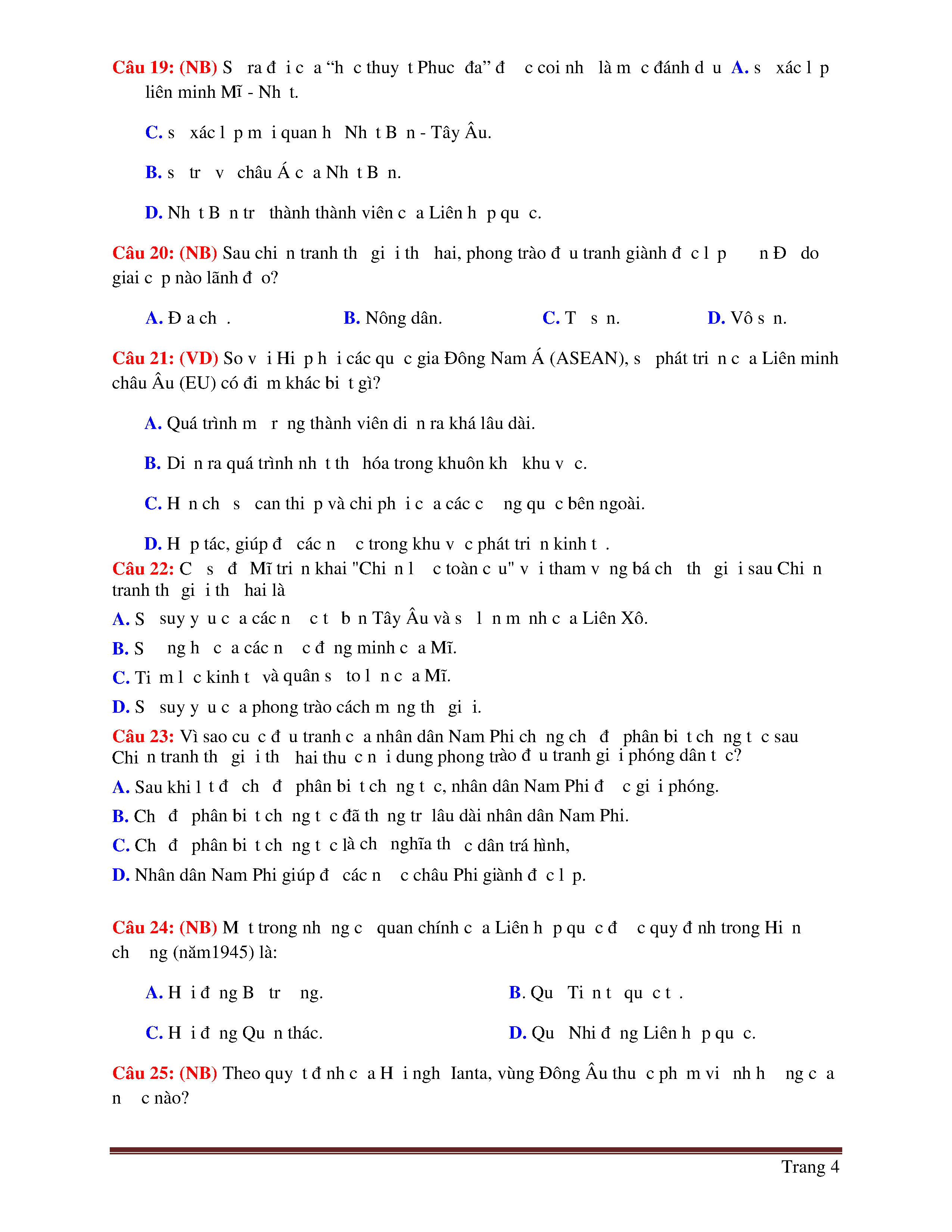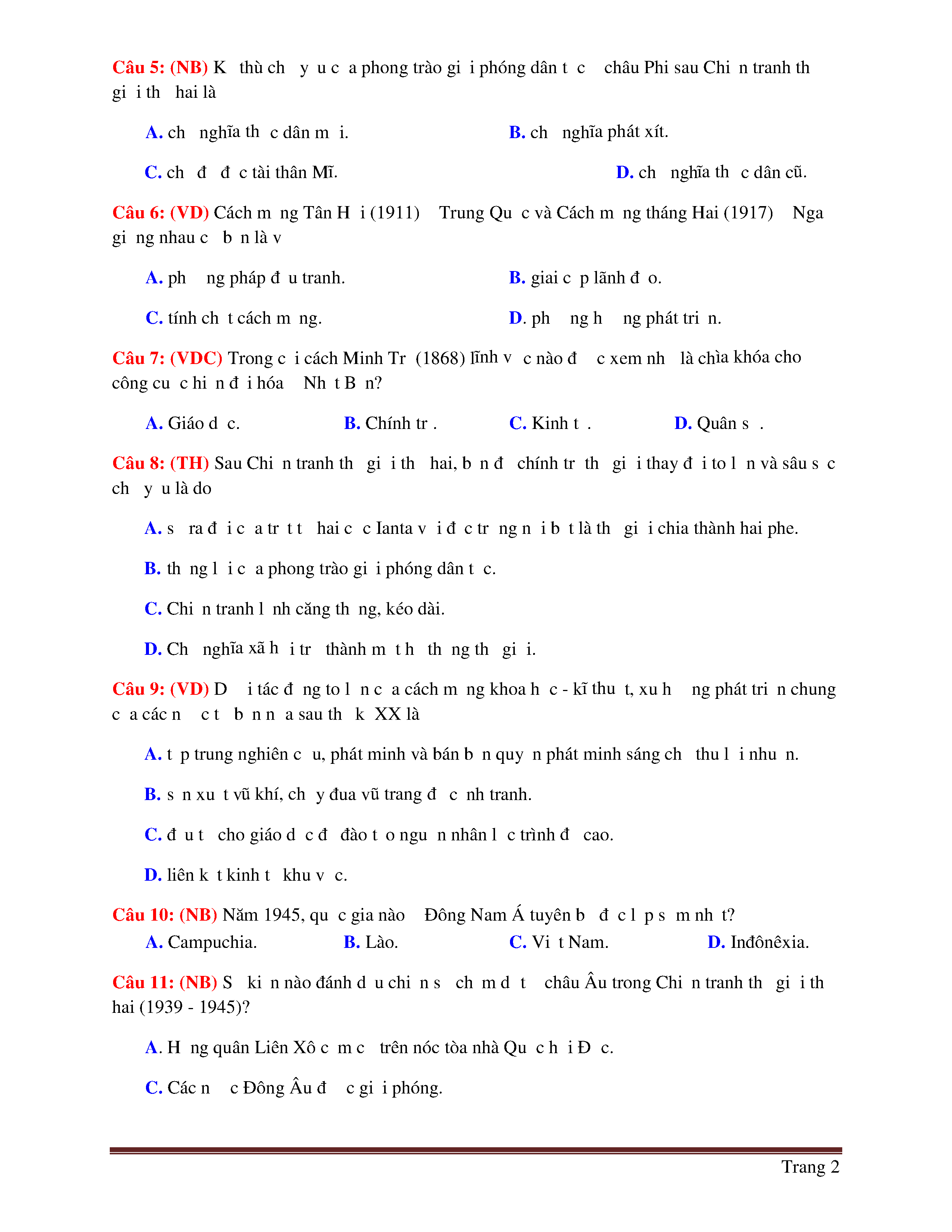 Đề thi thử THPT năm 2020 môn Lịch sử - Trường THPT Đội Cấn
