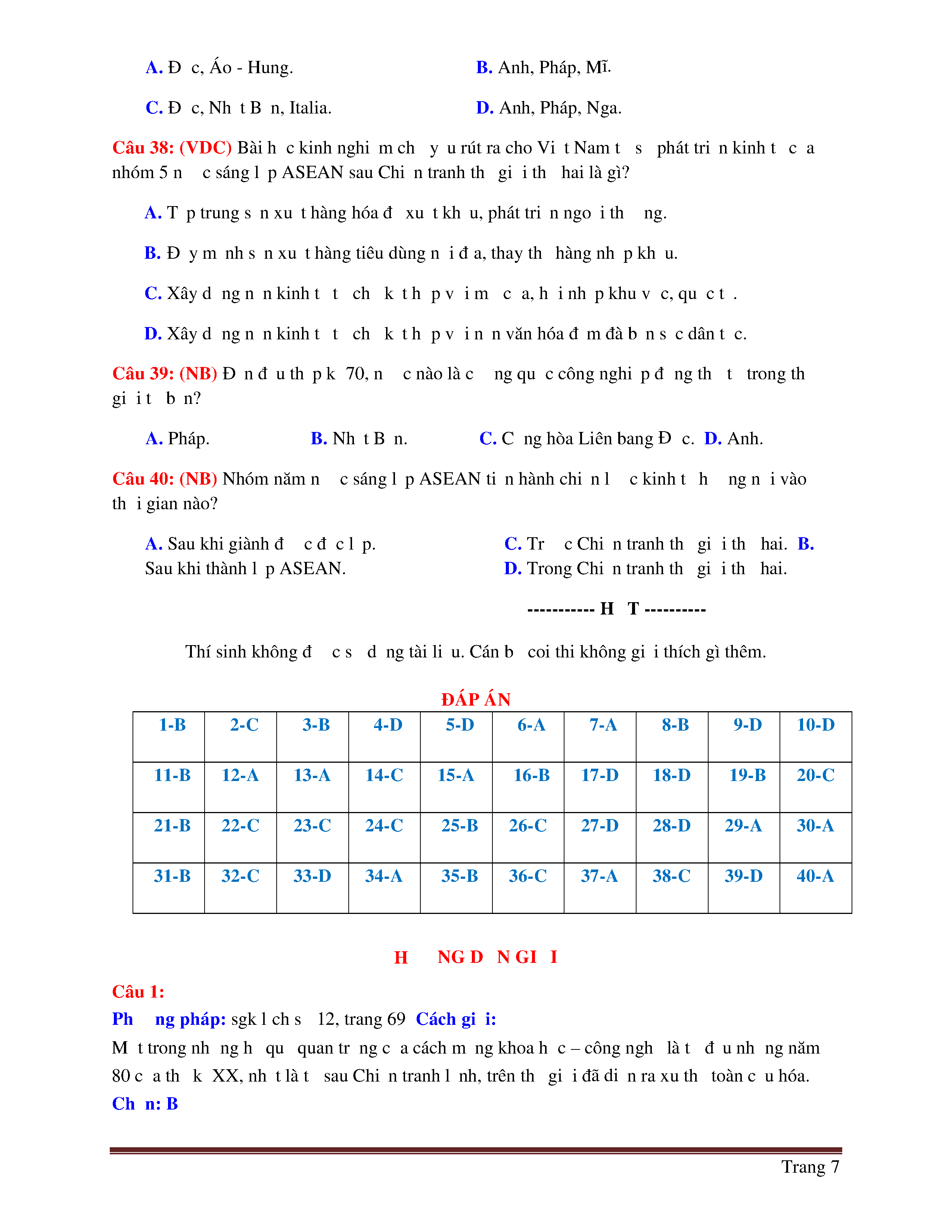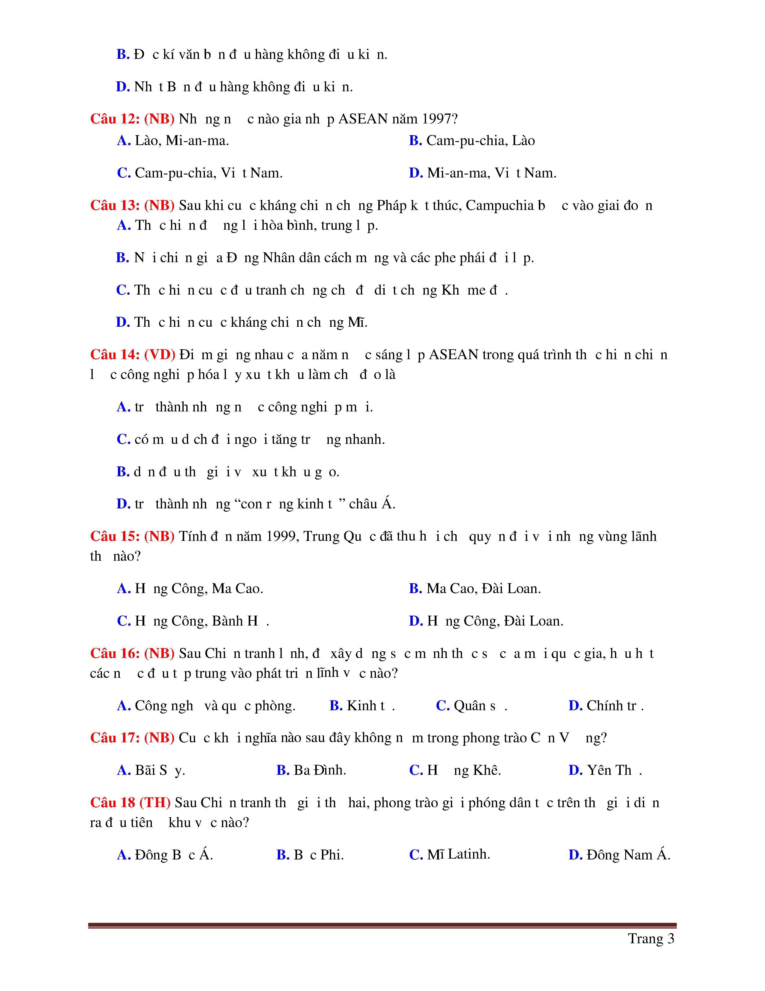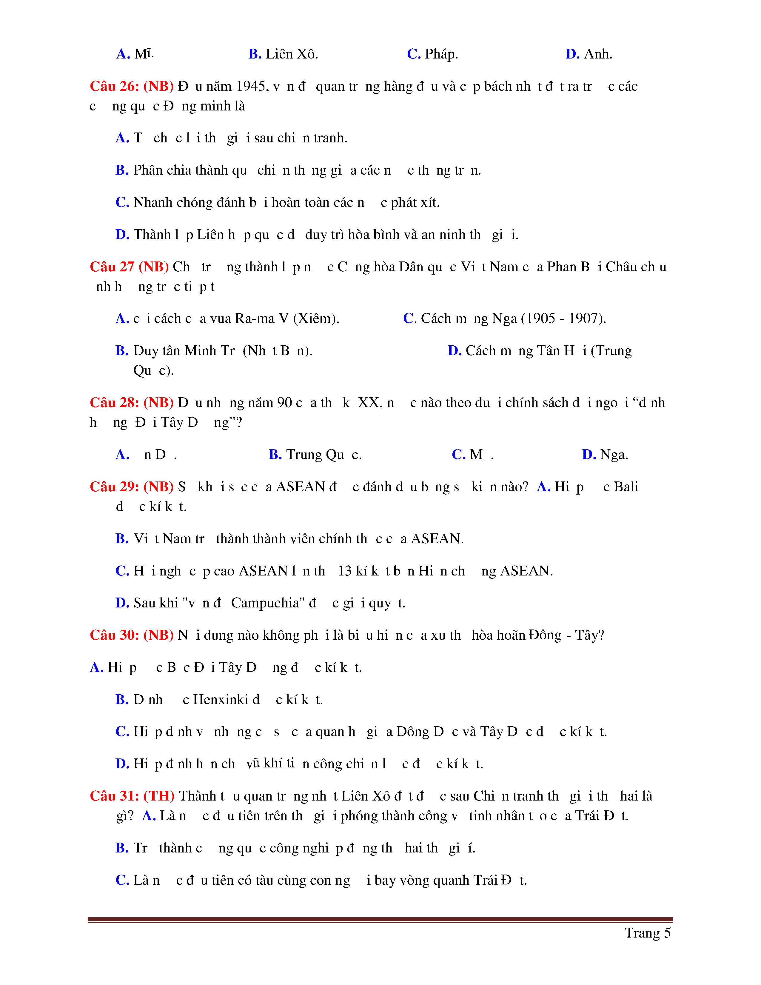 Đề thi thử THPT năm 2020 môn Lịch sử - Trường THPT Đội Cấn
