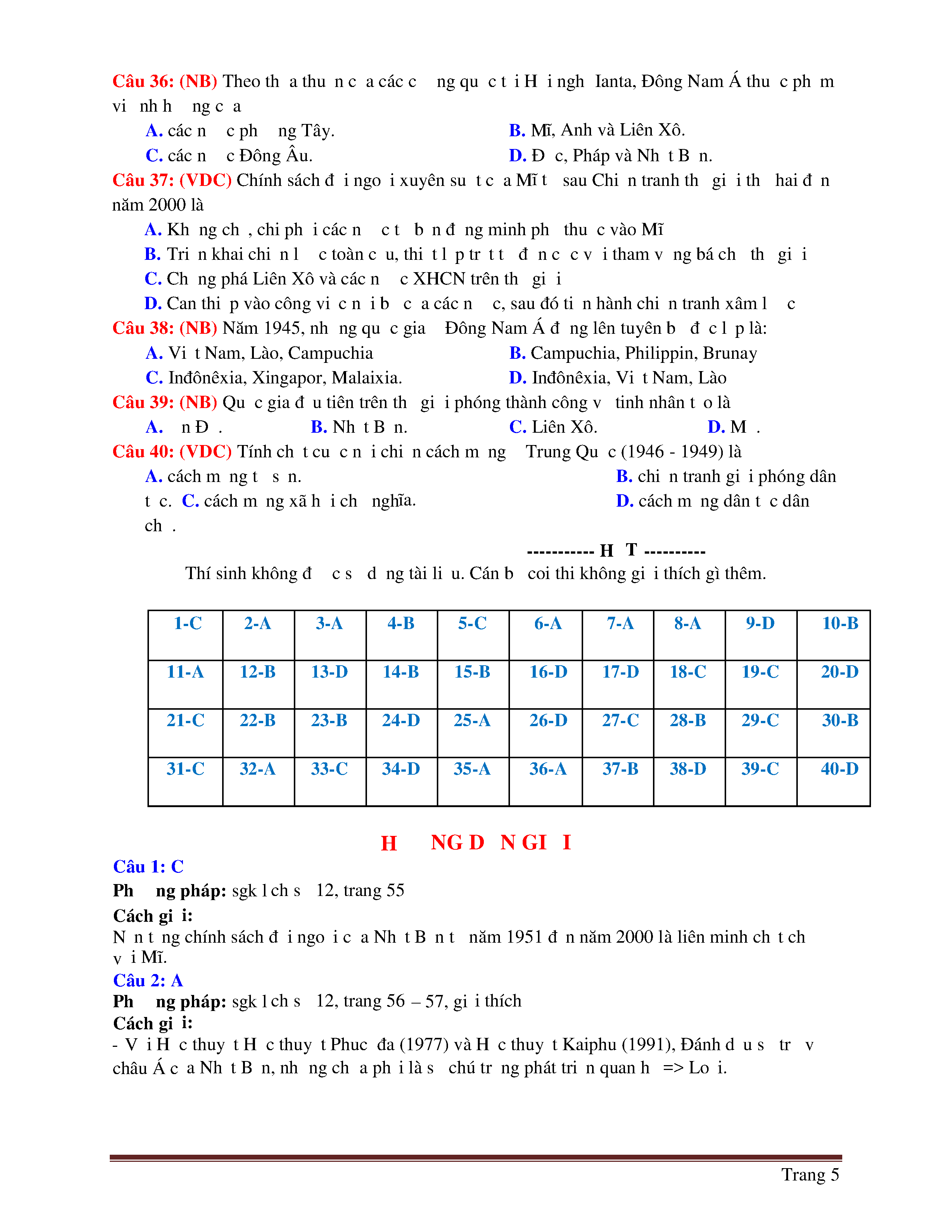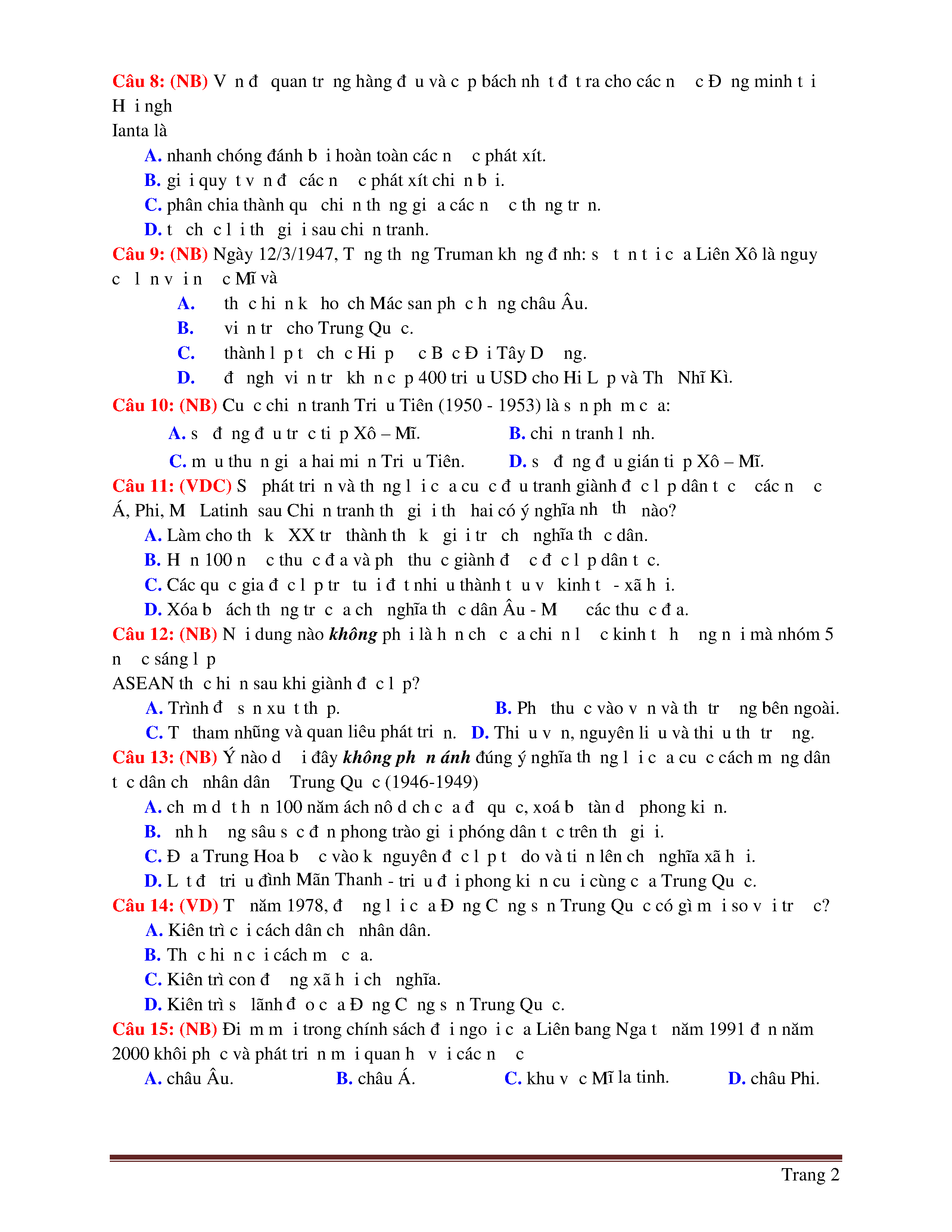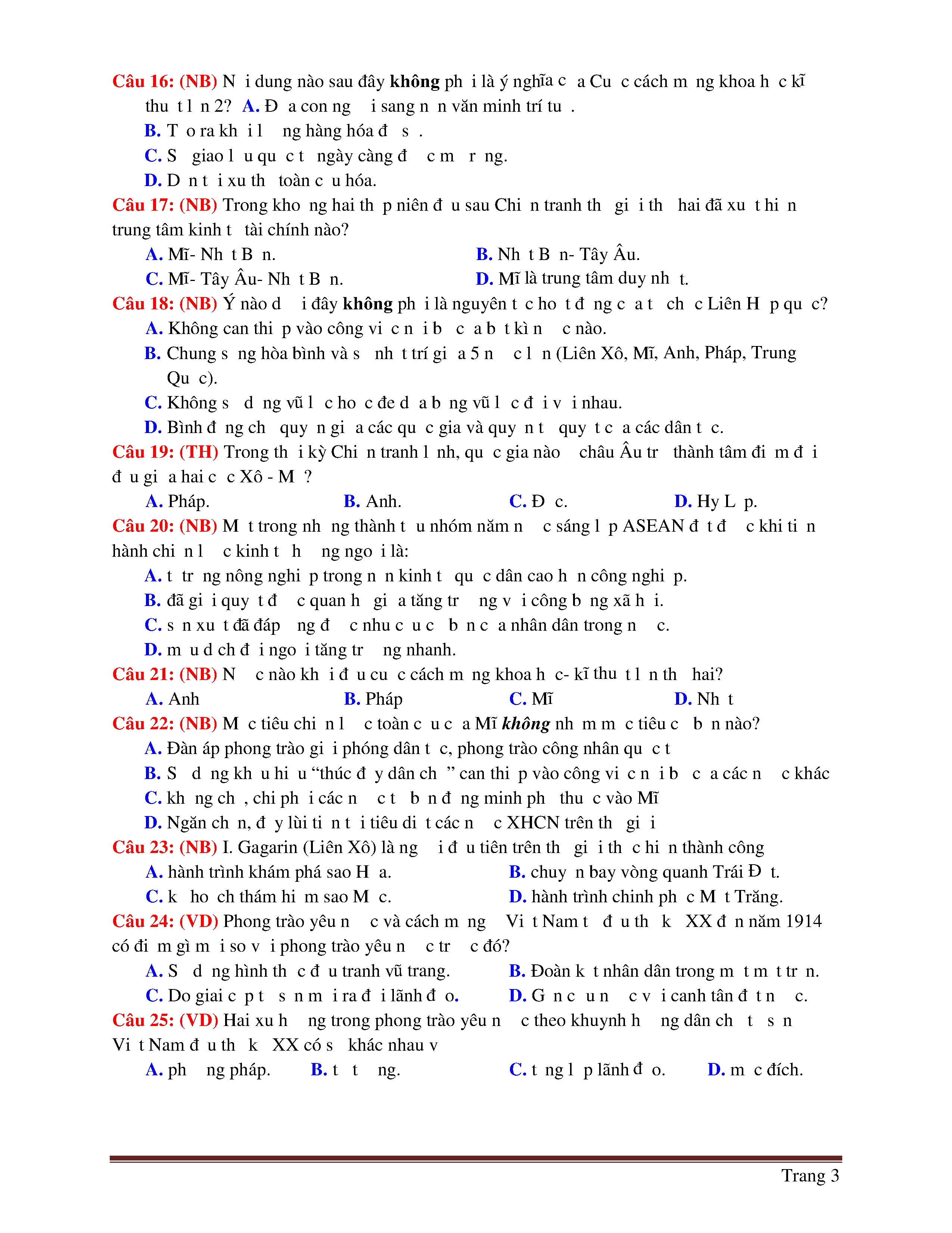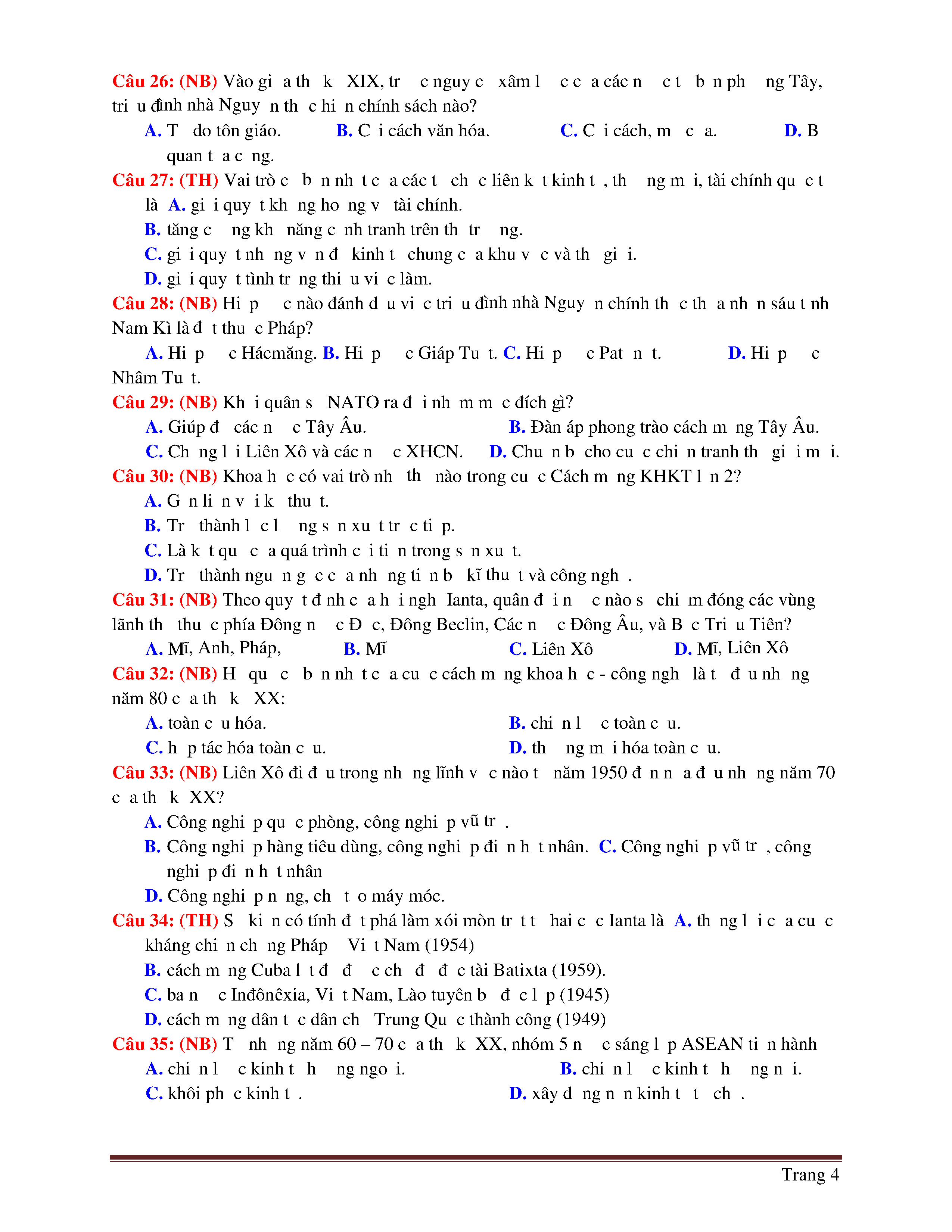 Đề thi thử THPT năm 2020 môn Lịch sử - Trường THPT Quang Hà - Vĩnh Phúc - lần 1