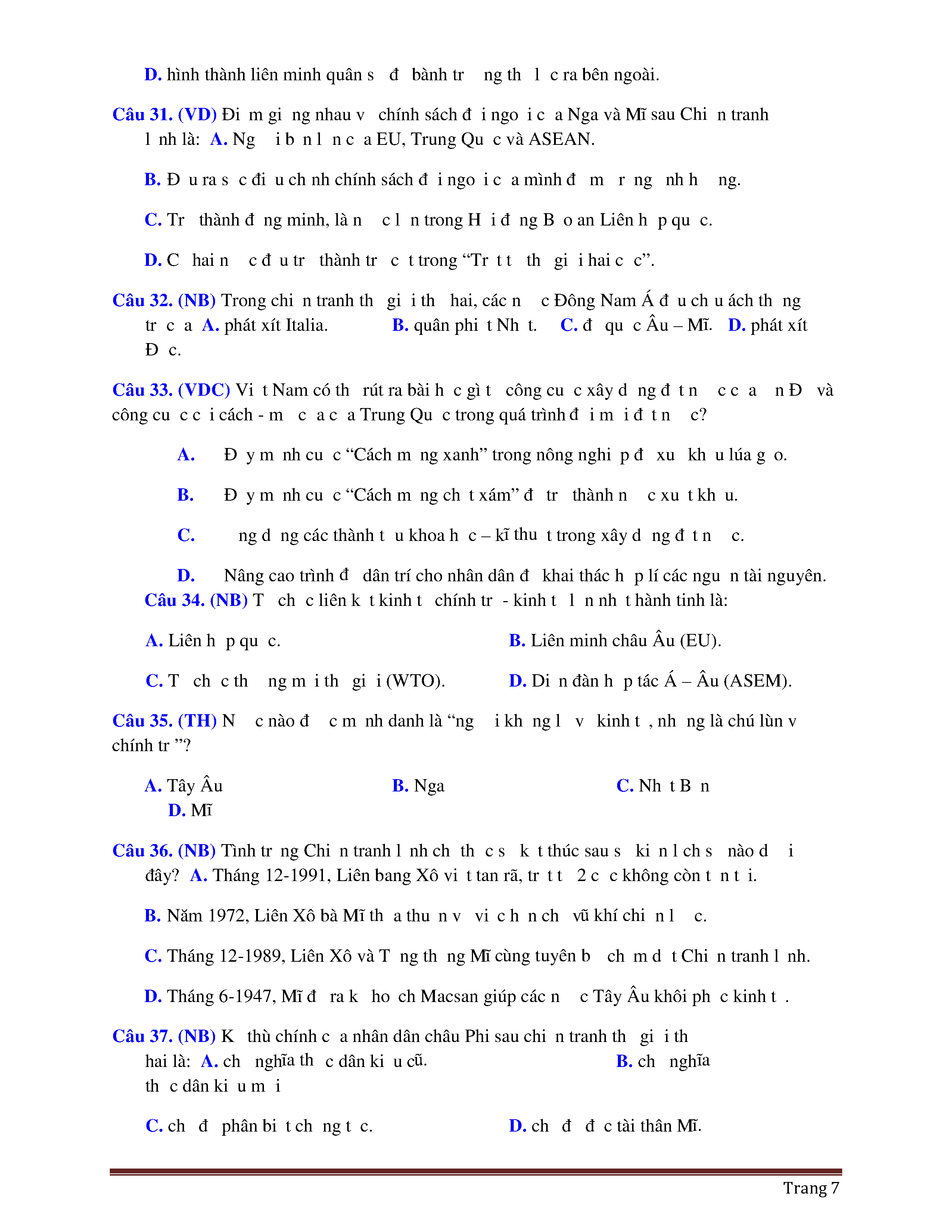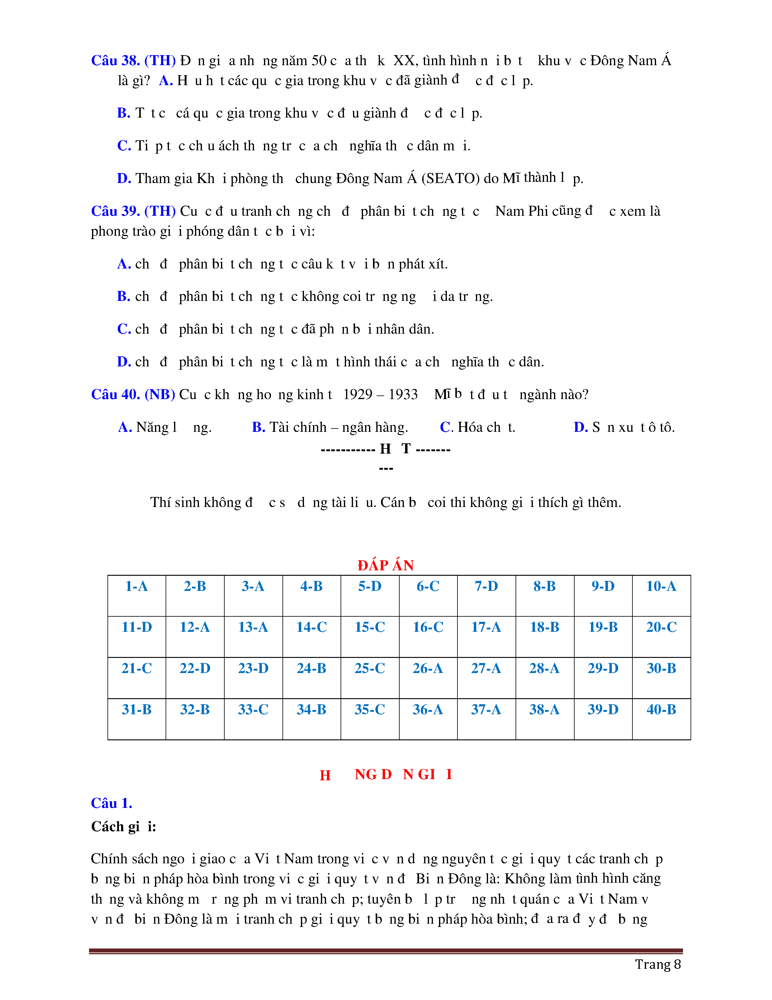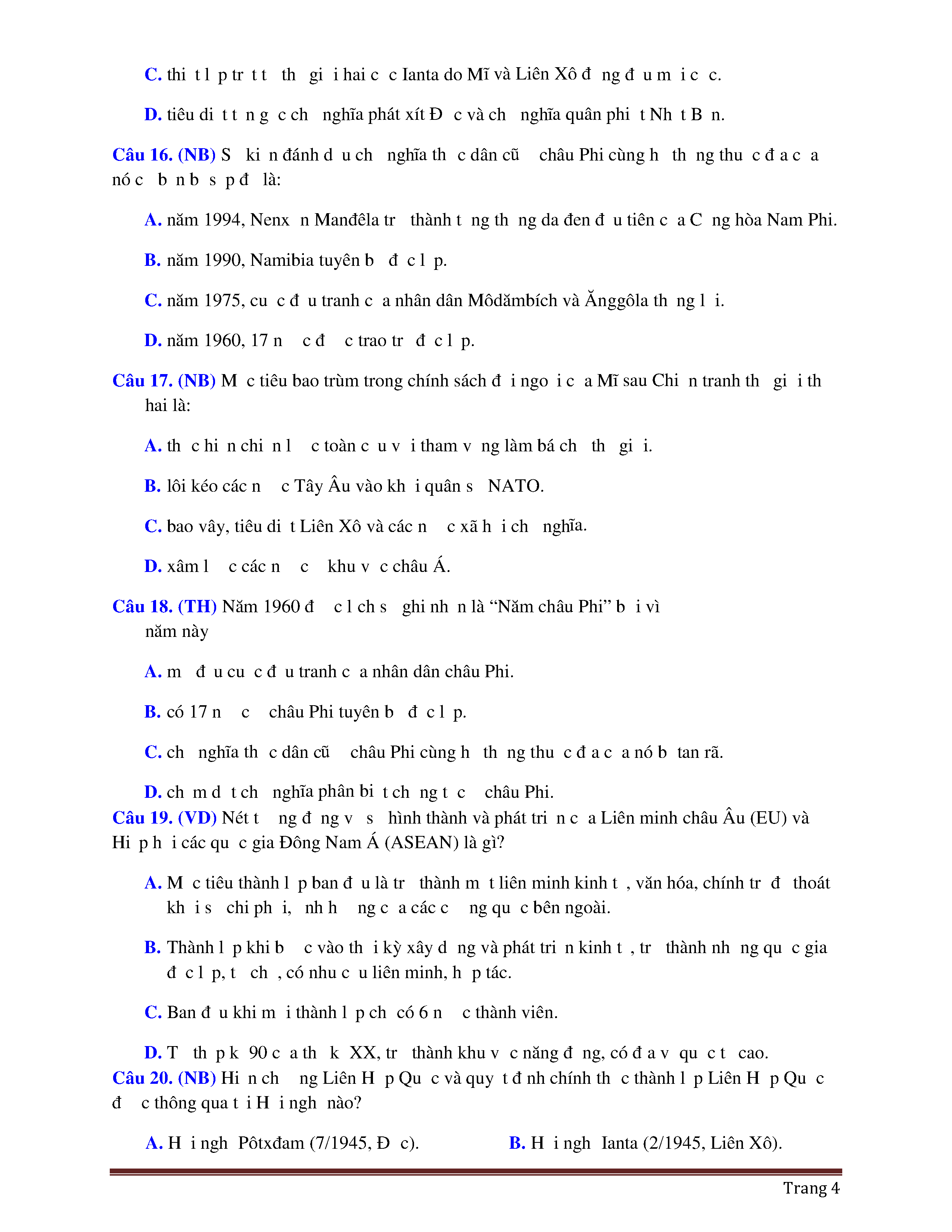 Đề thi thử THPT năm 2020 môn Lịch sử - Trường THPT Yên Lạc 2 - lần 1