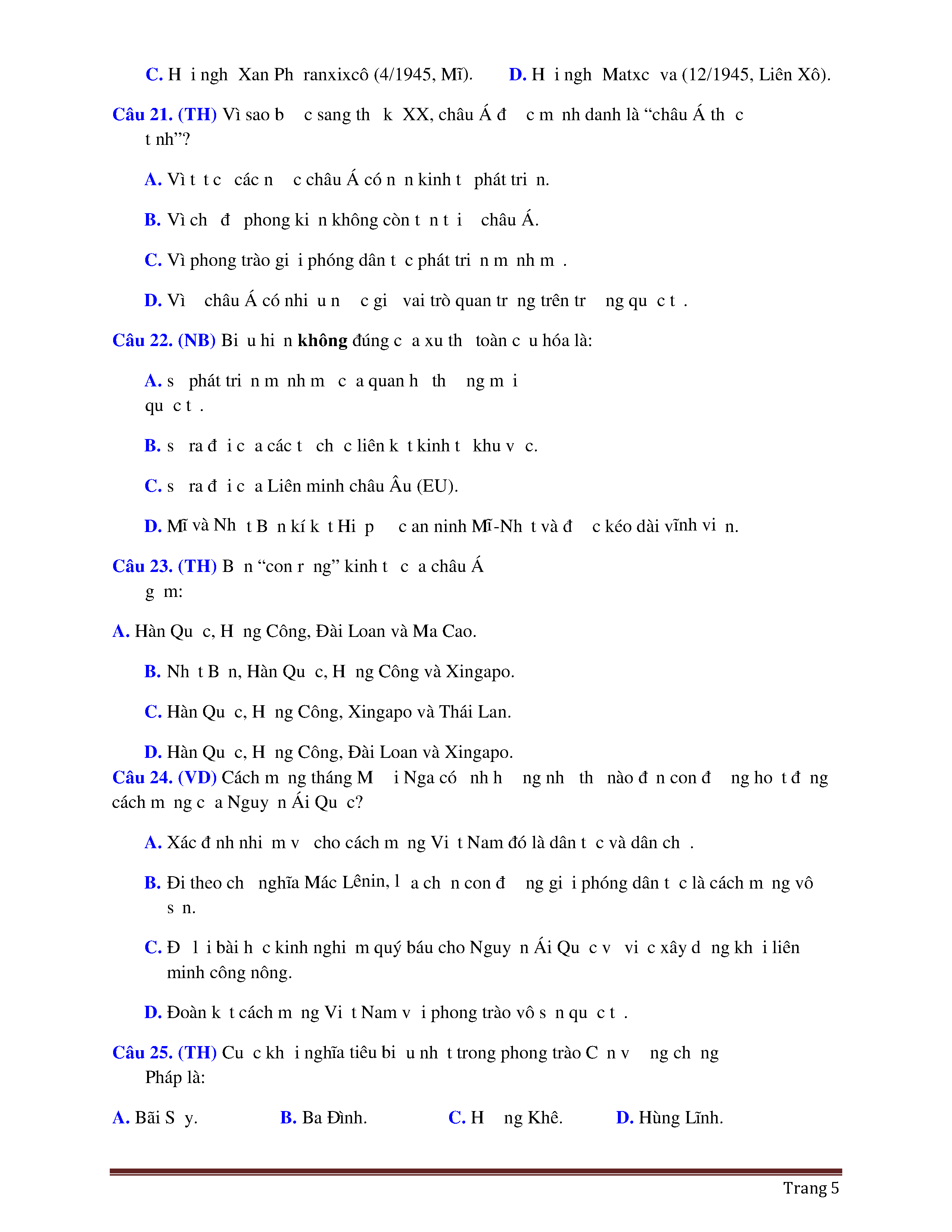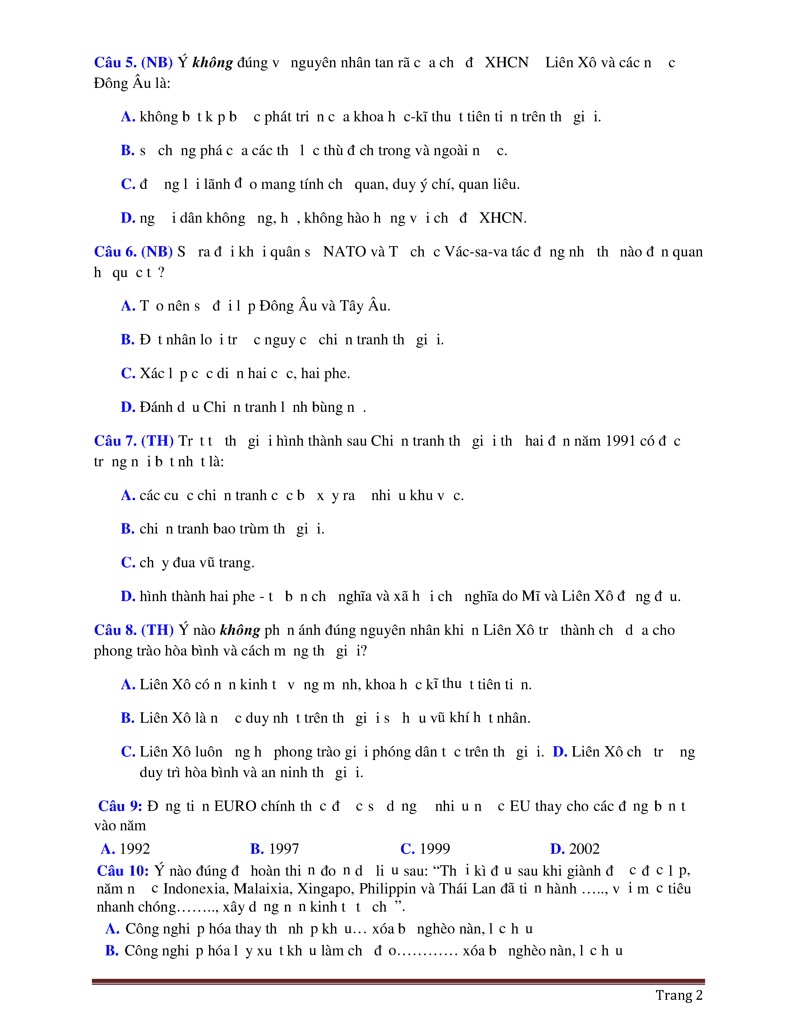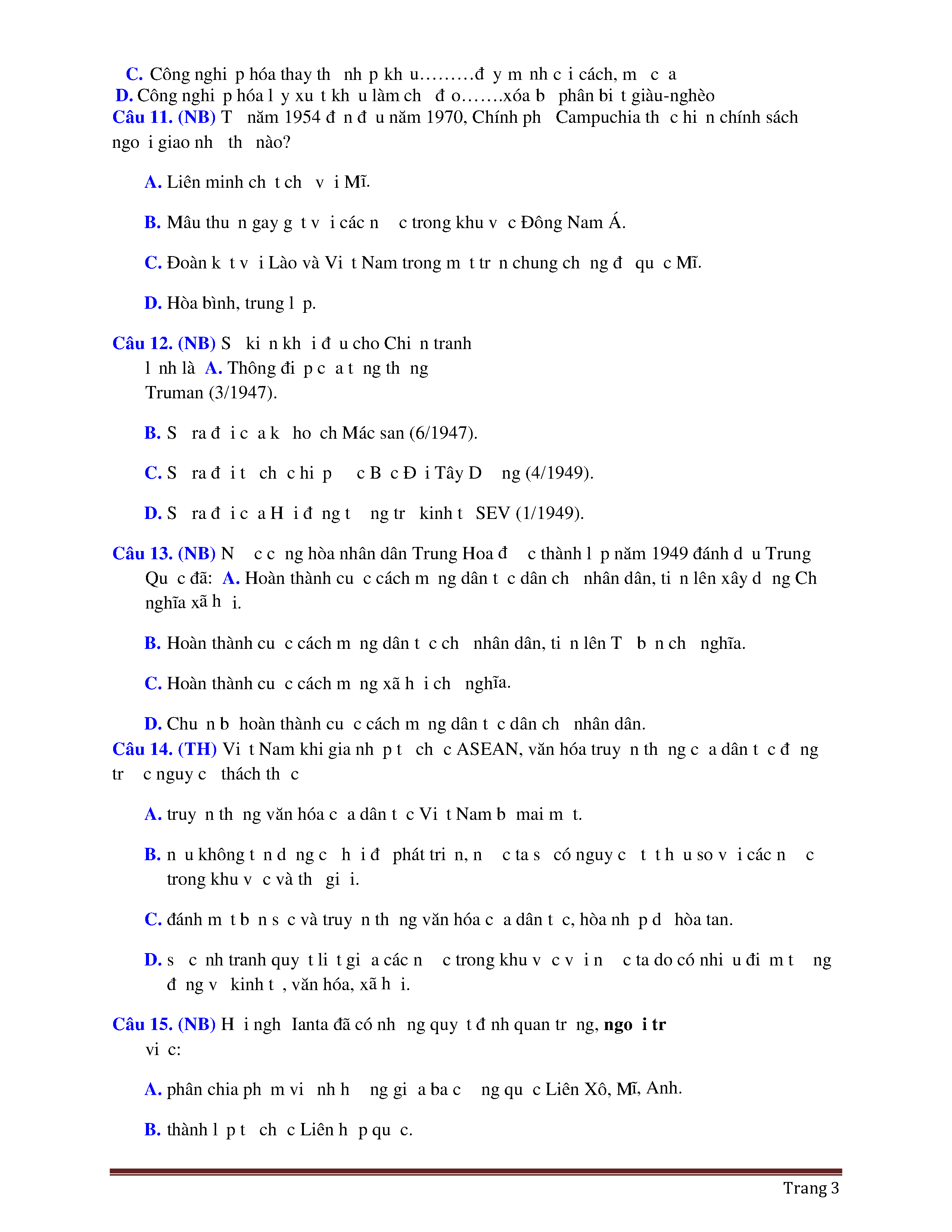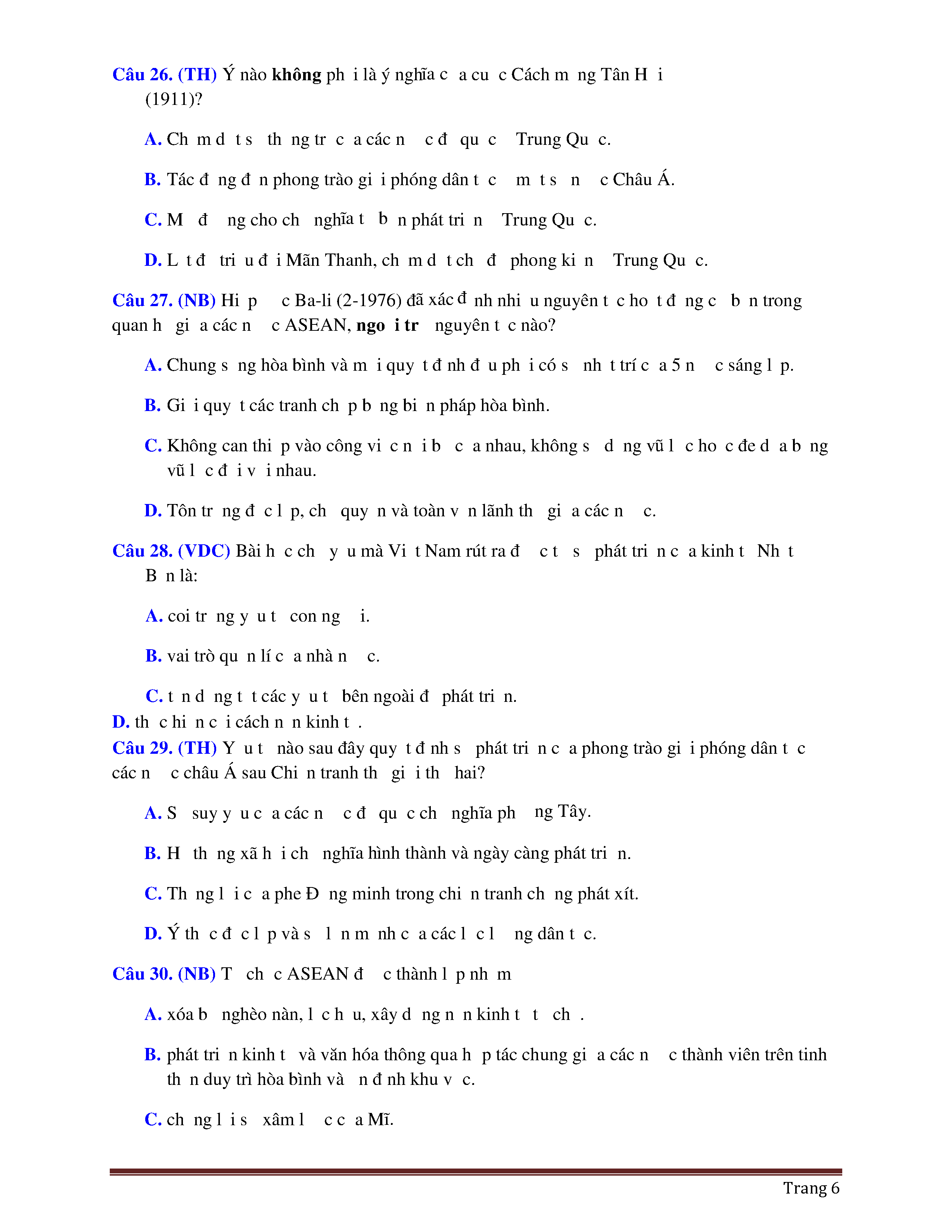 Đề thi thử THPT năm 2020 môn Lịch sử - Trường THPT Yên Lạc 2 - lần 1