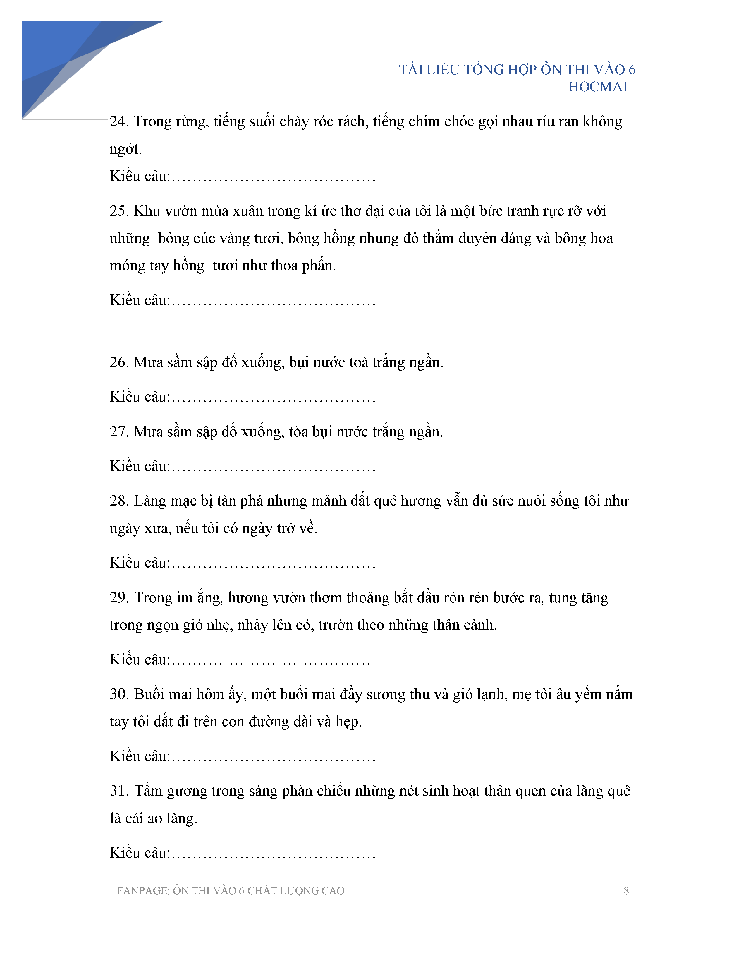 BÀI TẬP XÁC ĐỊNH CHỦ NGỮ, VỊ NGỮ, TRẠNG NGỮ TRONG CÂU