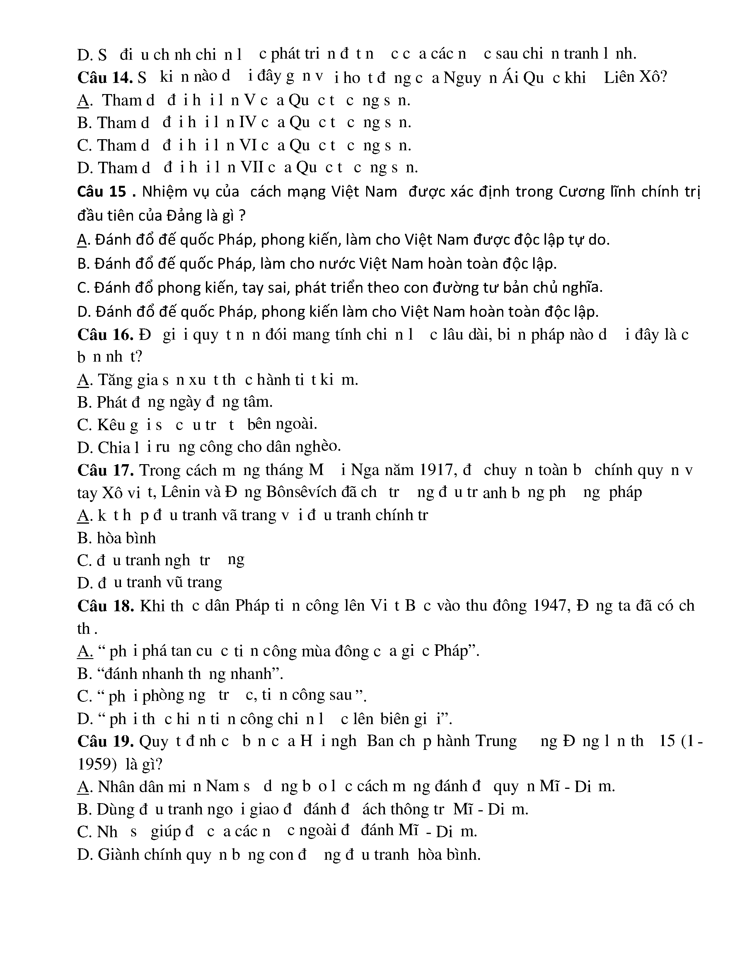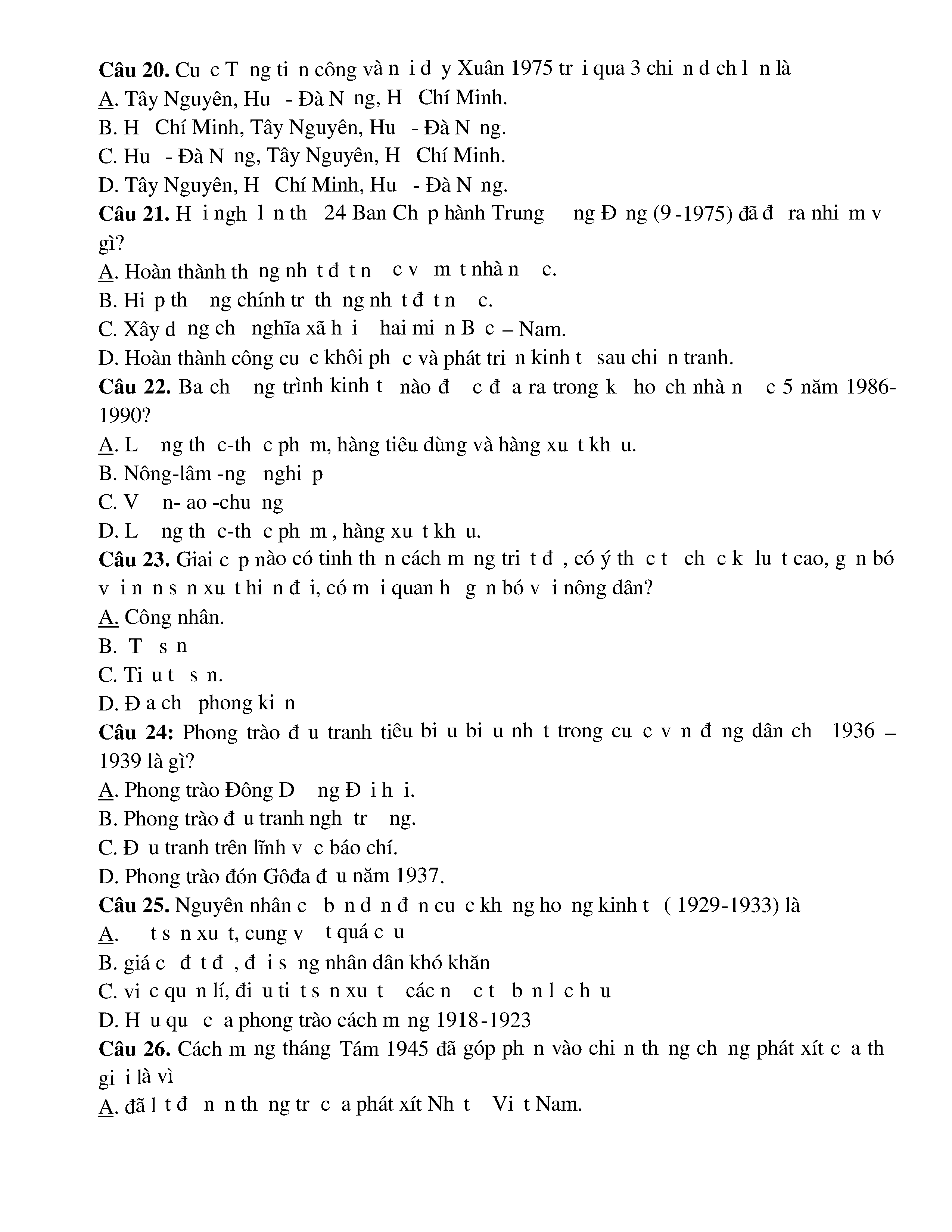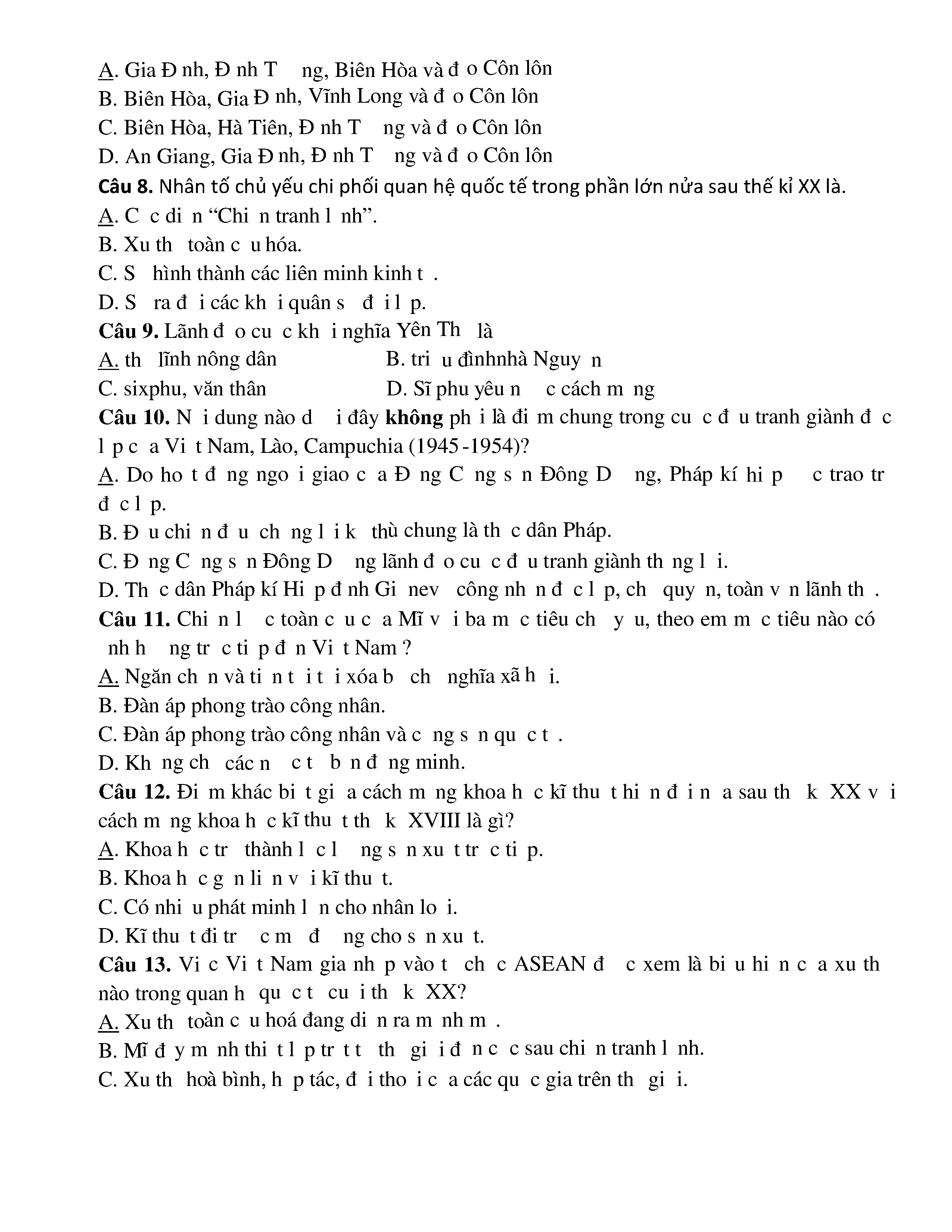 Đề thi thử THPT năm 2020 môn Lịch sử - Đề số 23