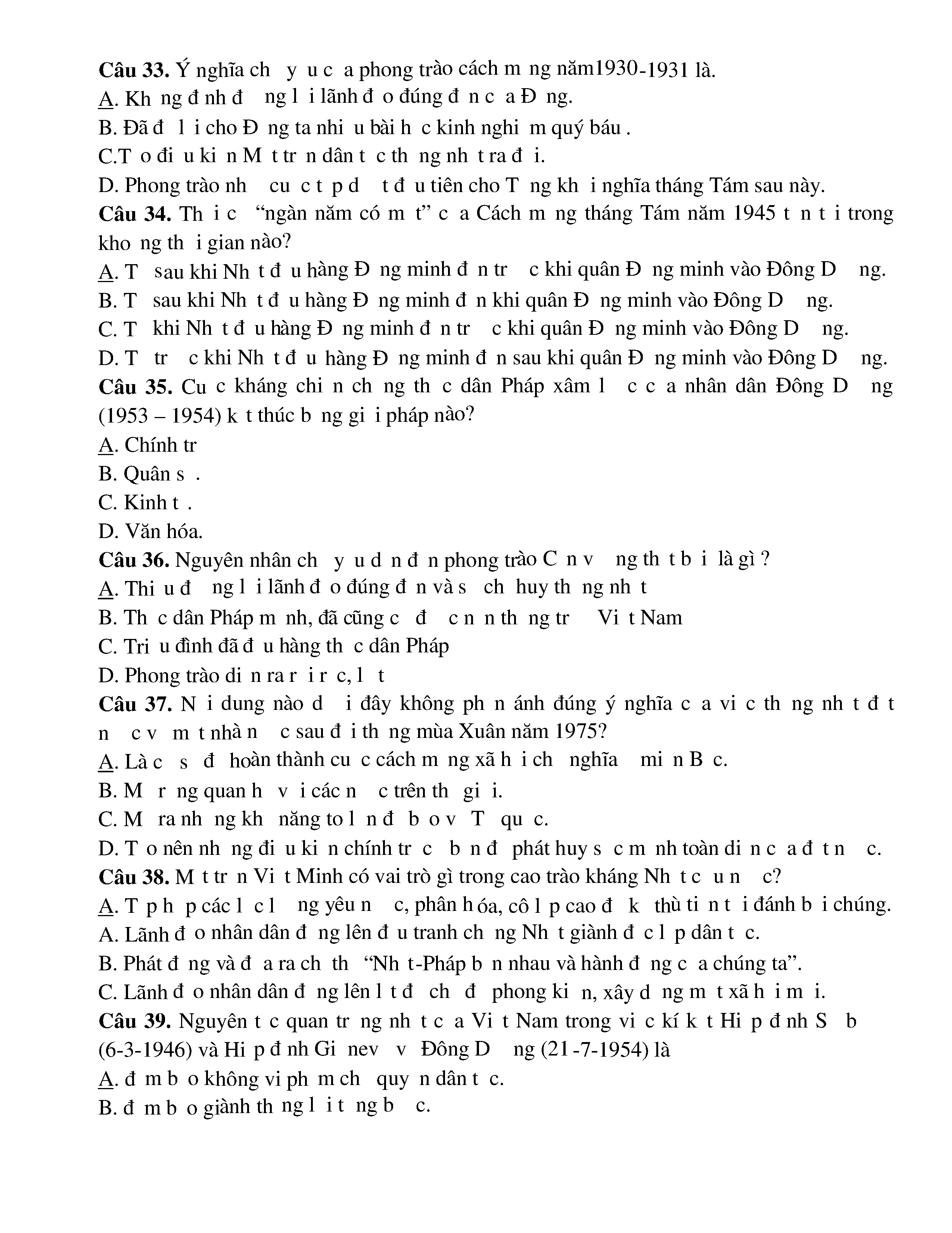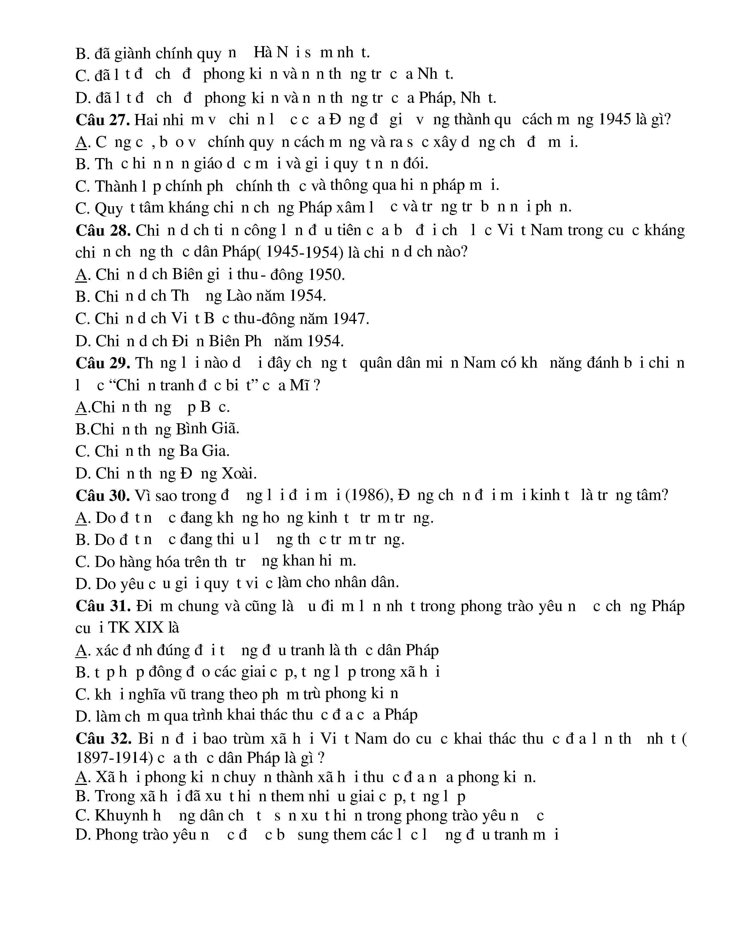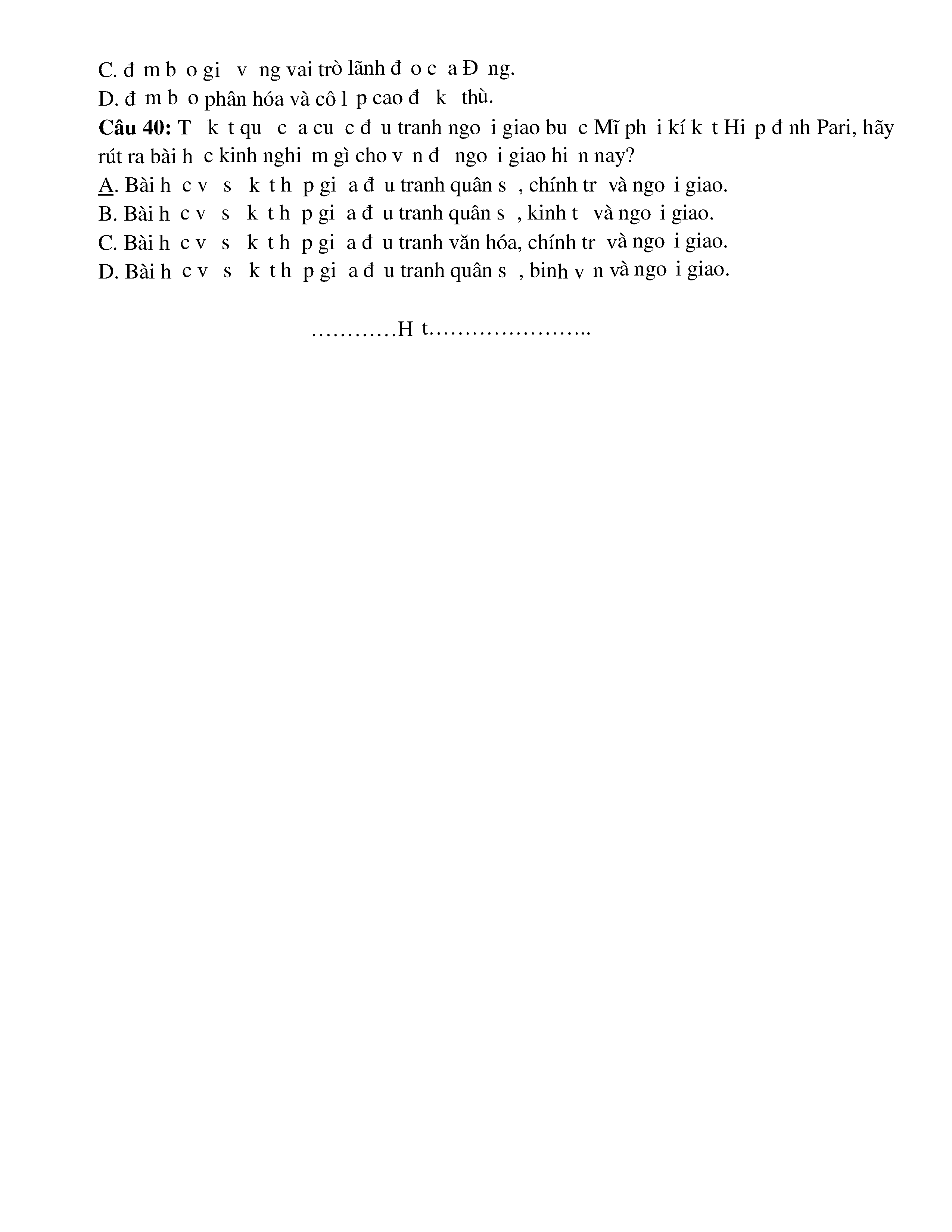 Đề thi thử THPT năm 2020 môn Lịch sử - Đề số 23