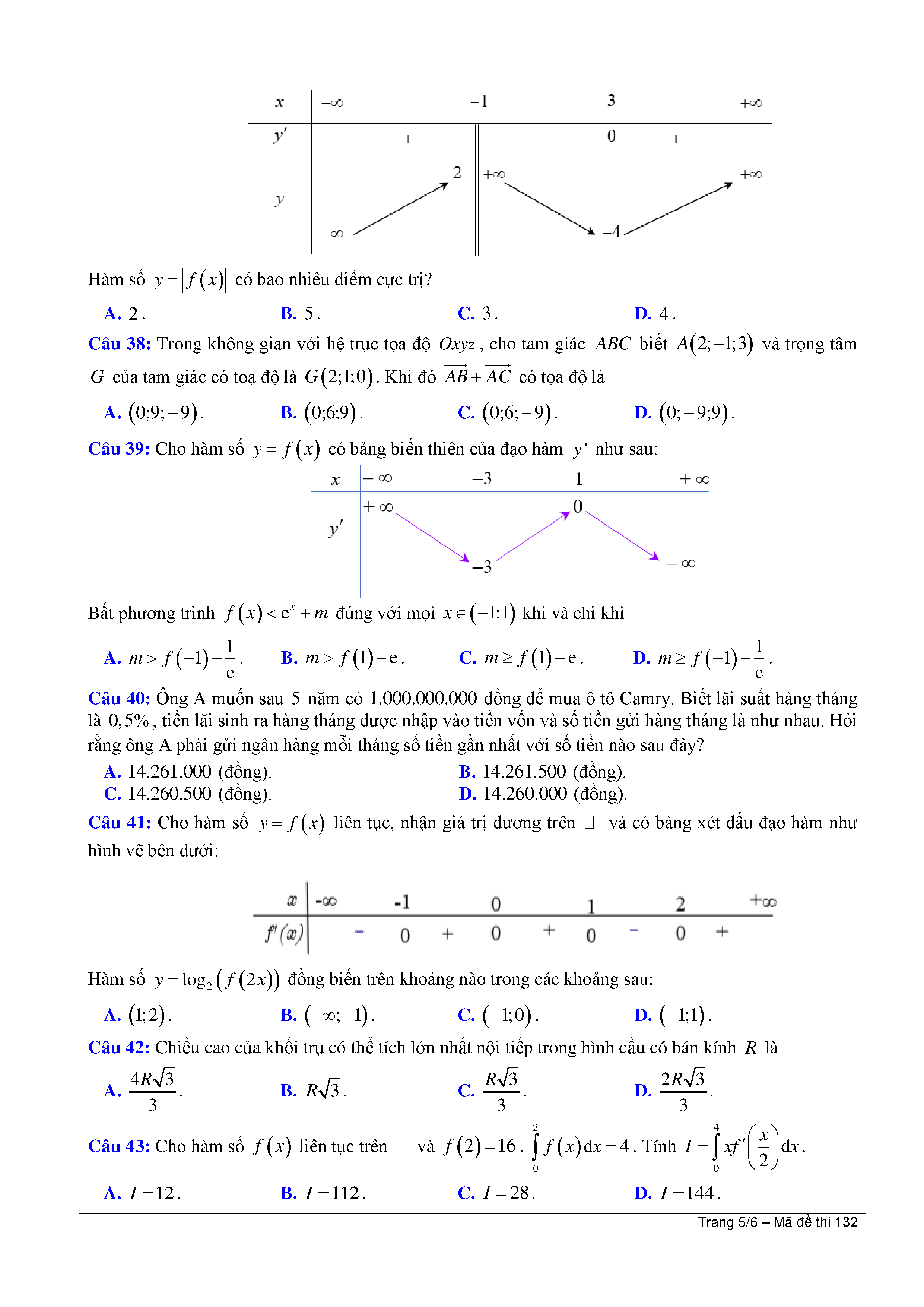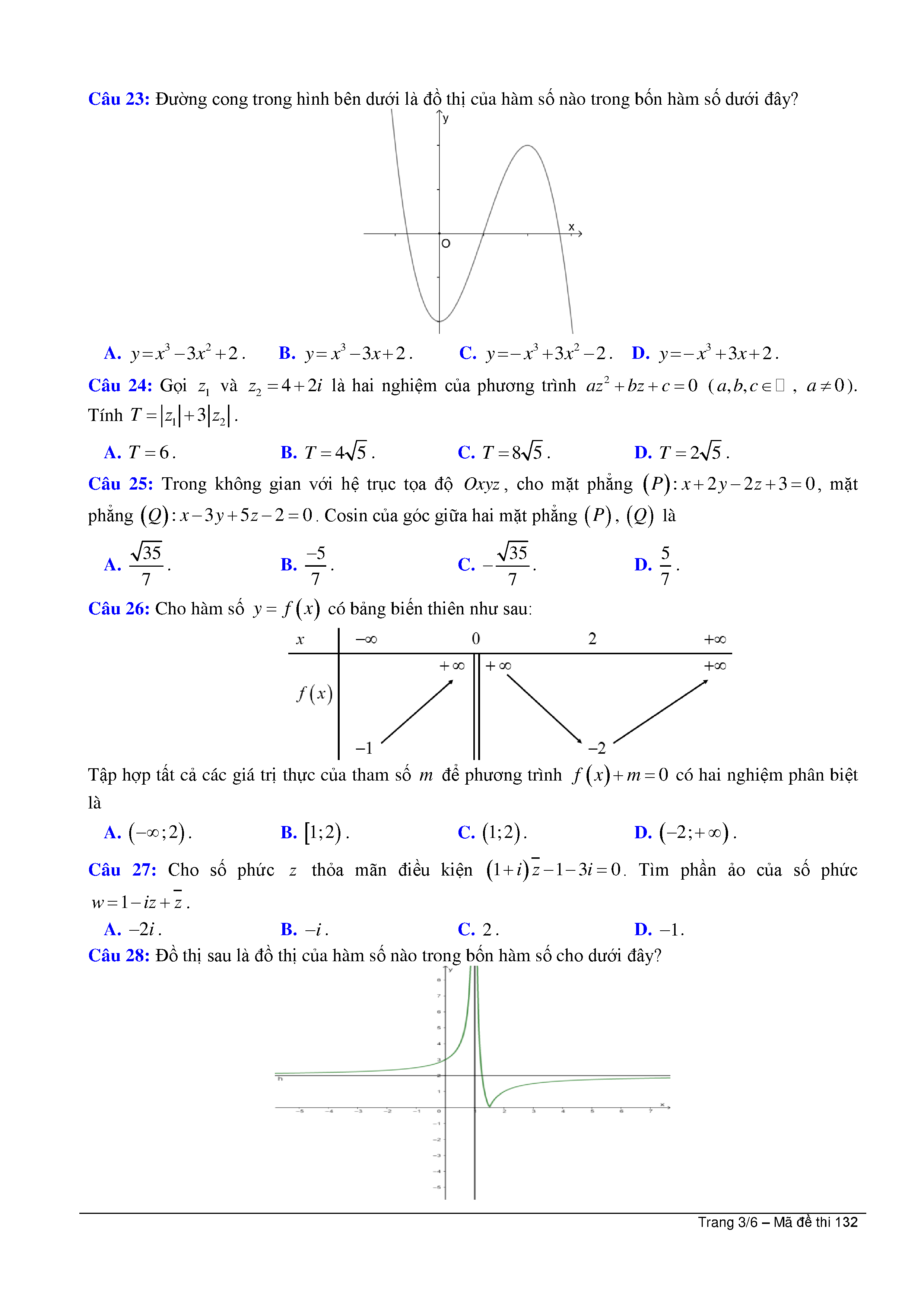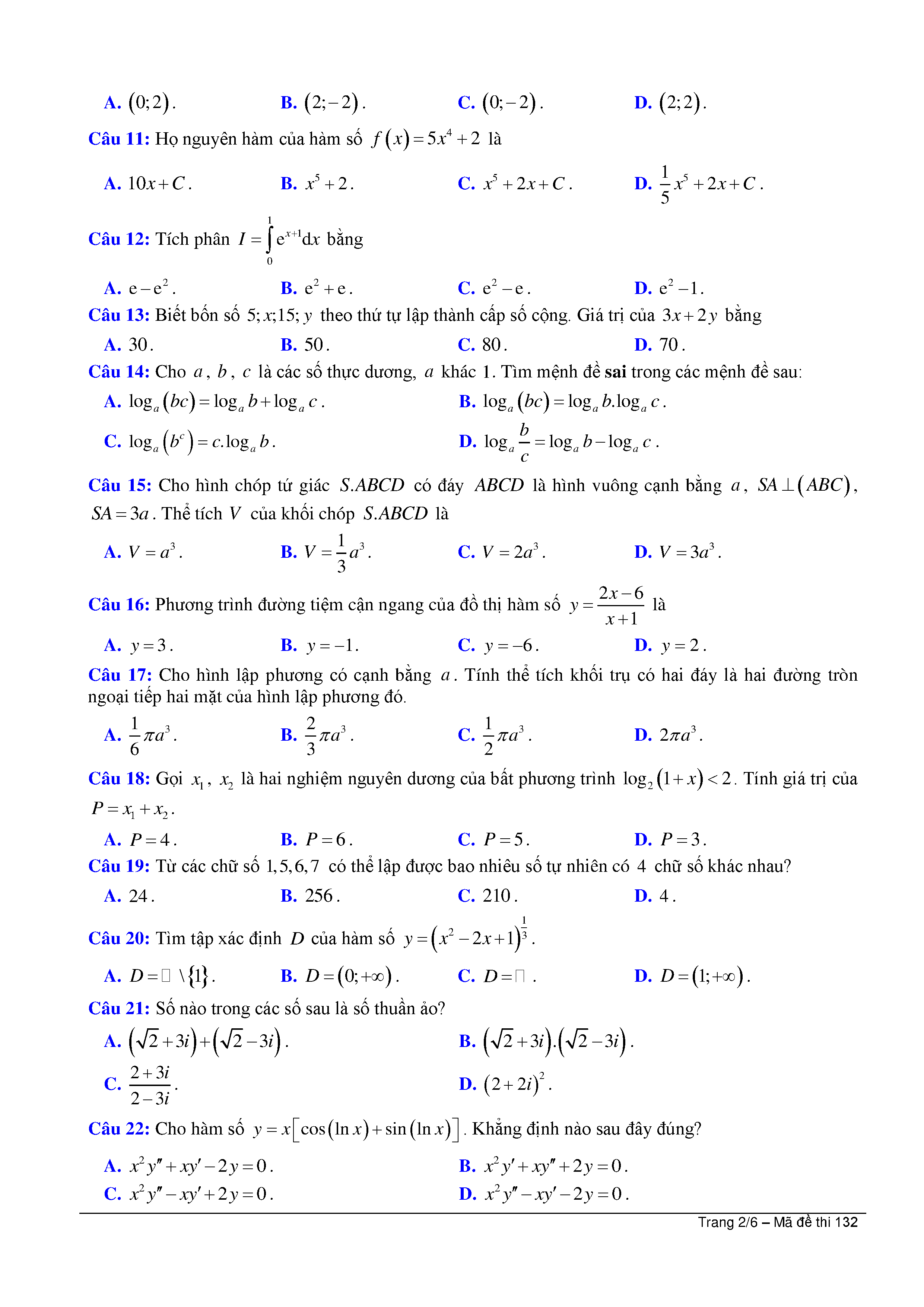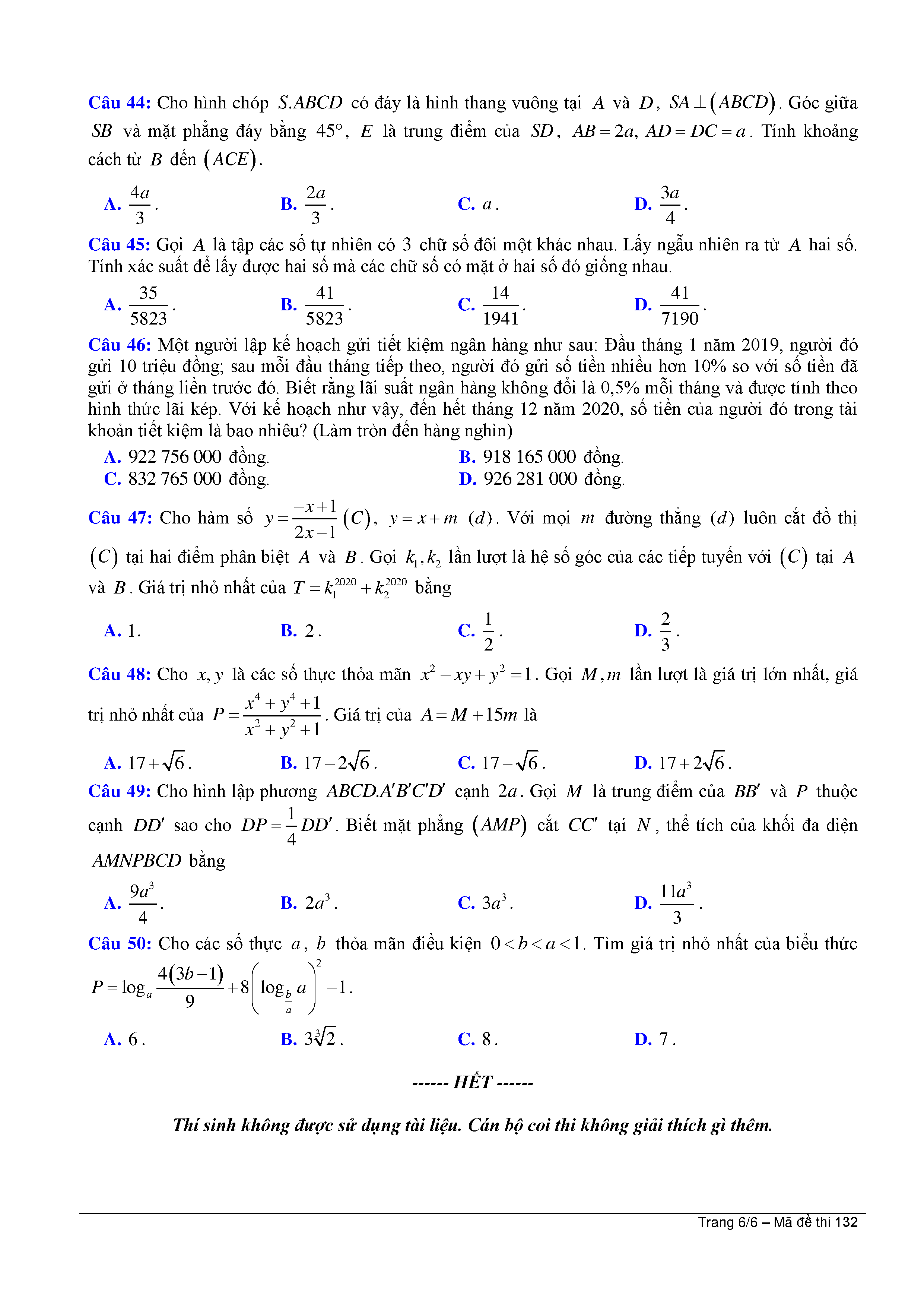 ĐỀ THI THỬ TỐT NGHIỆP THPT LẦN 2 - Môn Toán - NĂM HỌC 2019 - 2020 - Tỉnh Hải Phòng