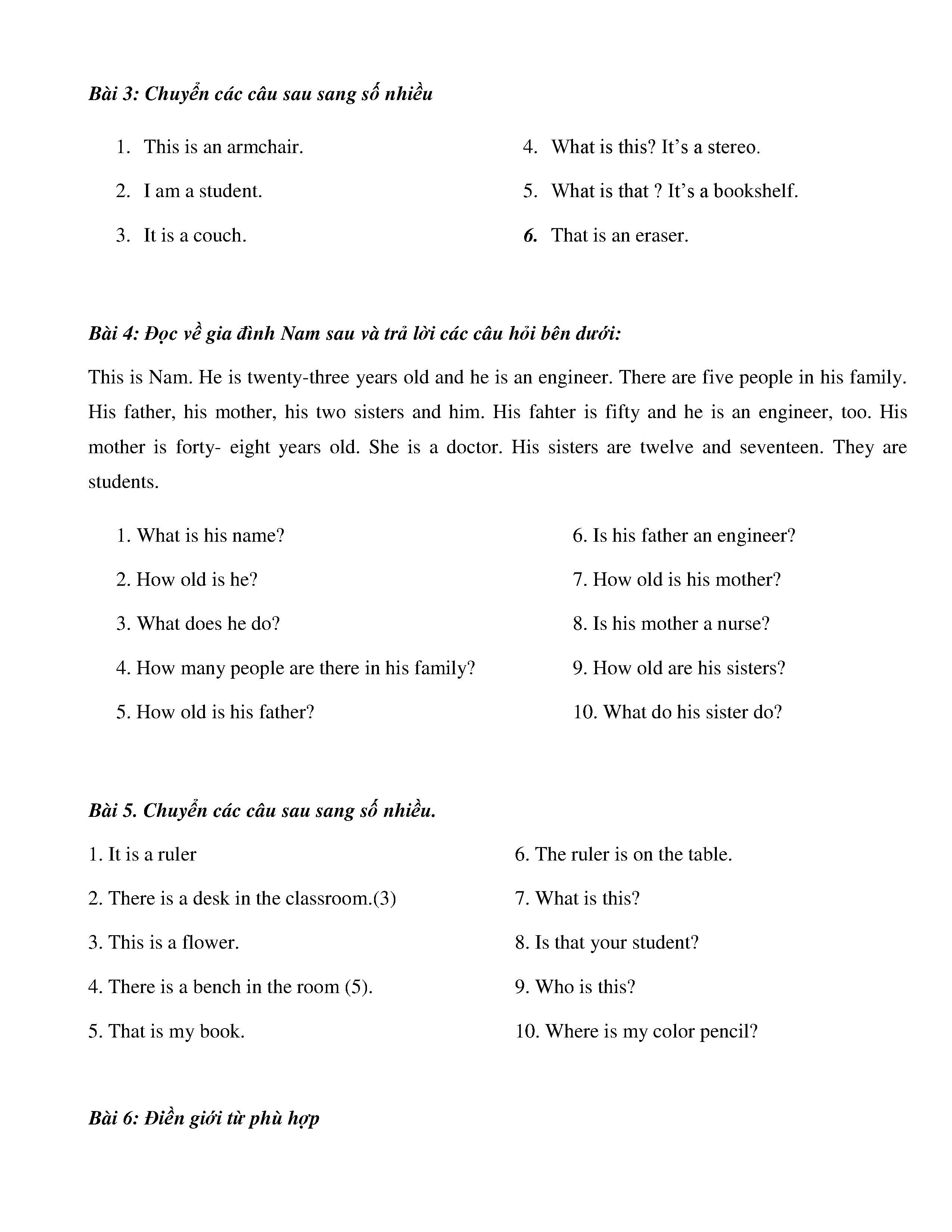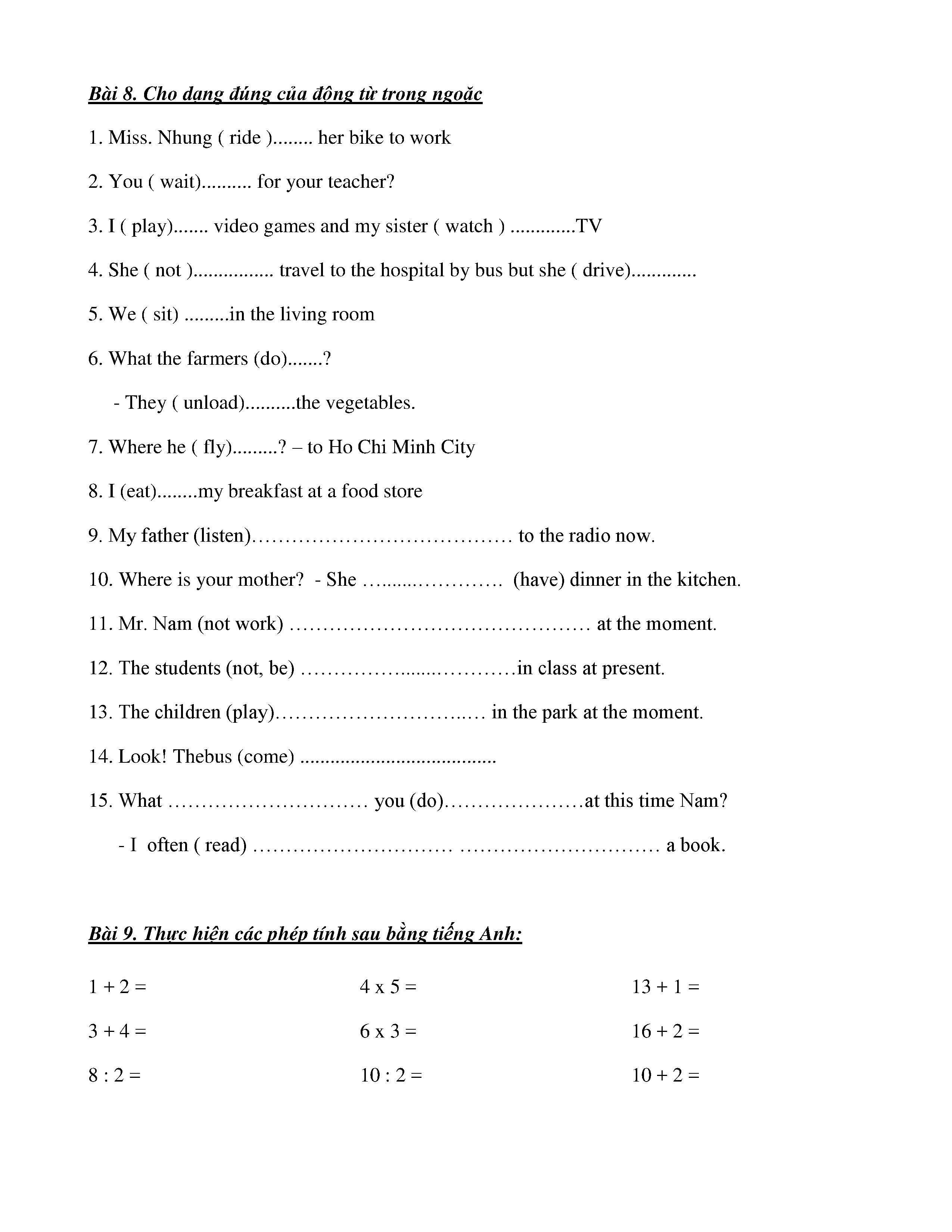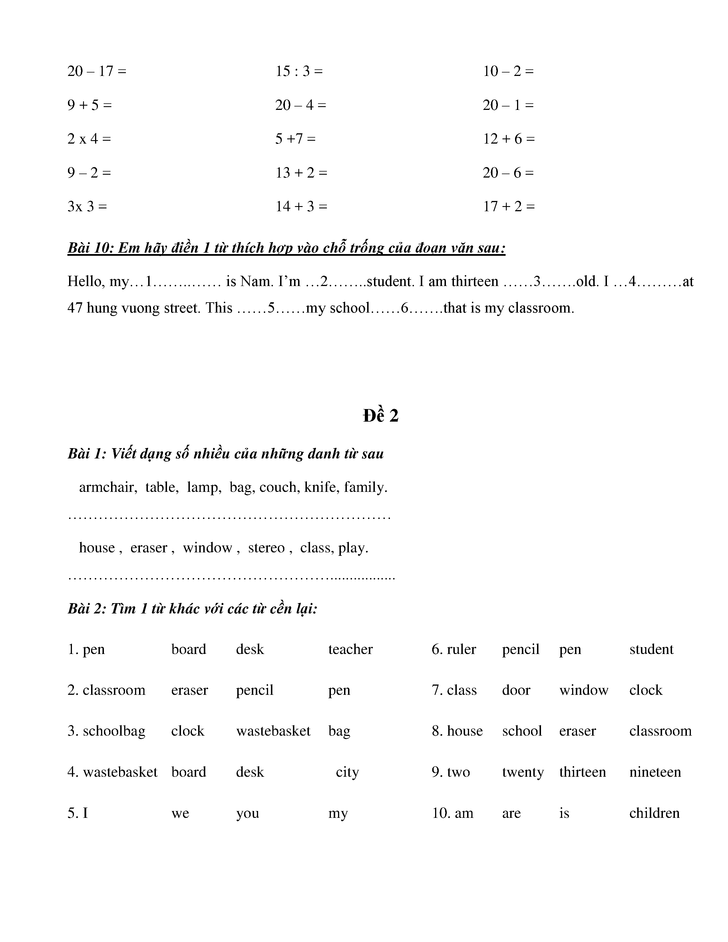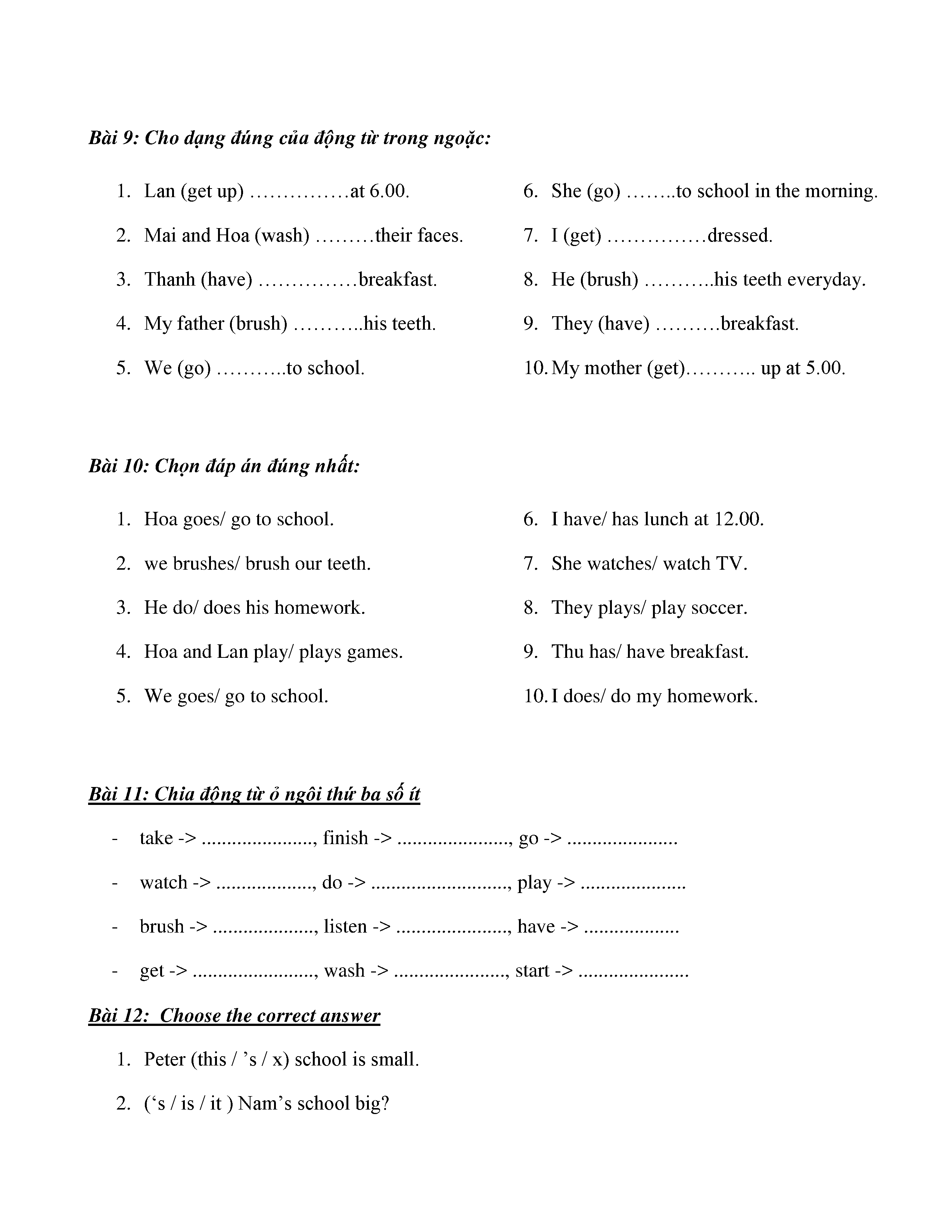 BÀI TẬP ÔN HÈ TIẾNG ANH CHO HỌC SINH TỪ LỚP 5 LÊN LỚP 6